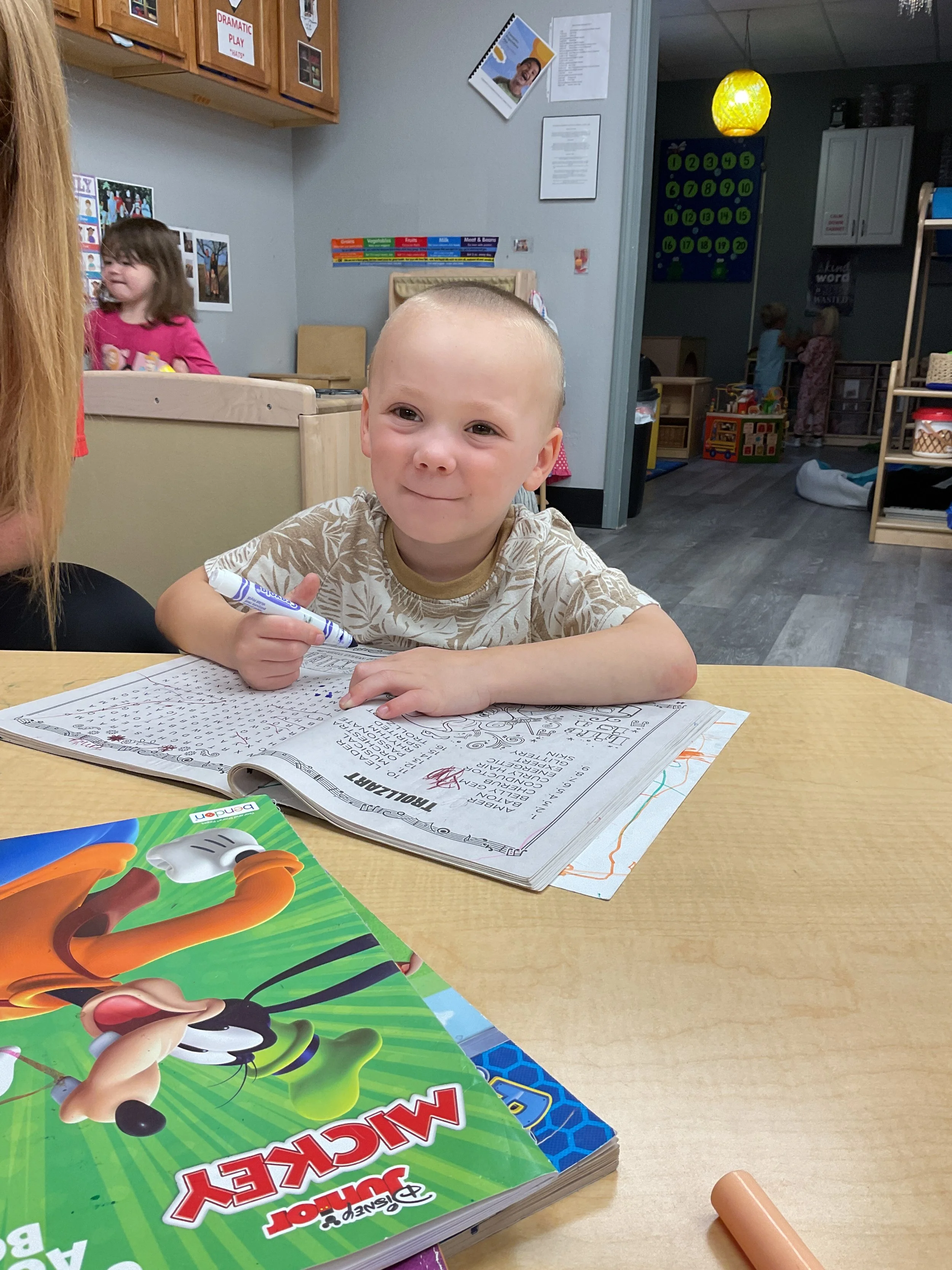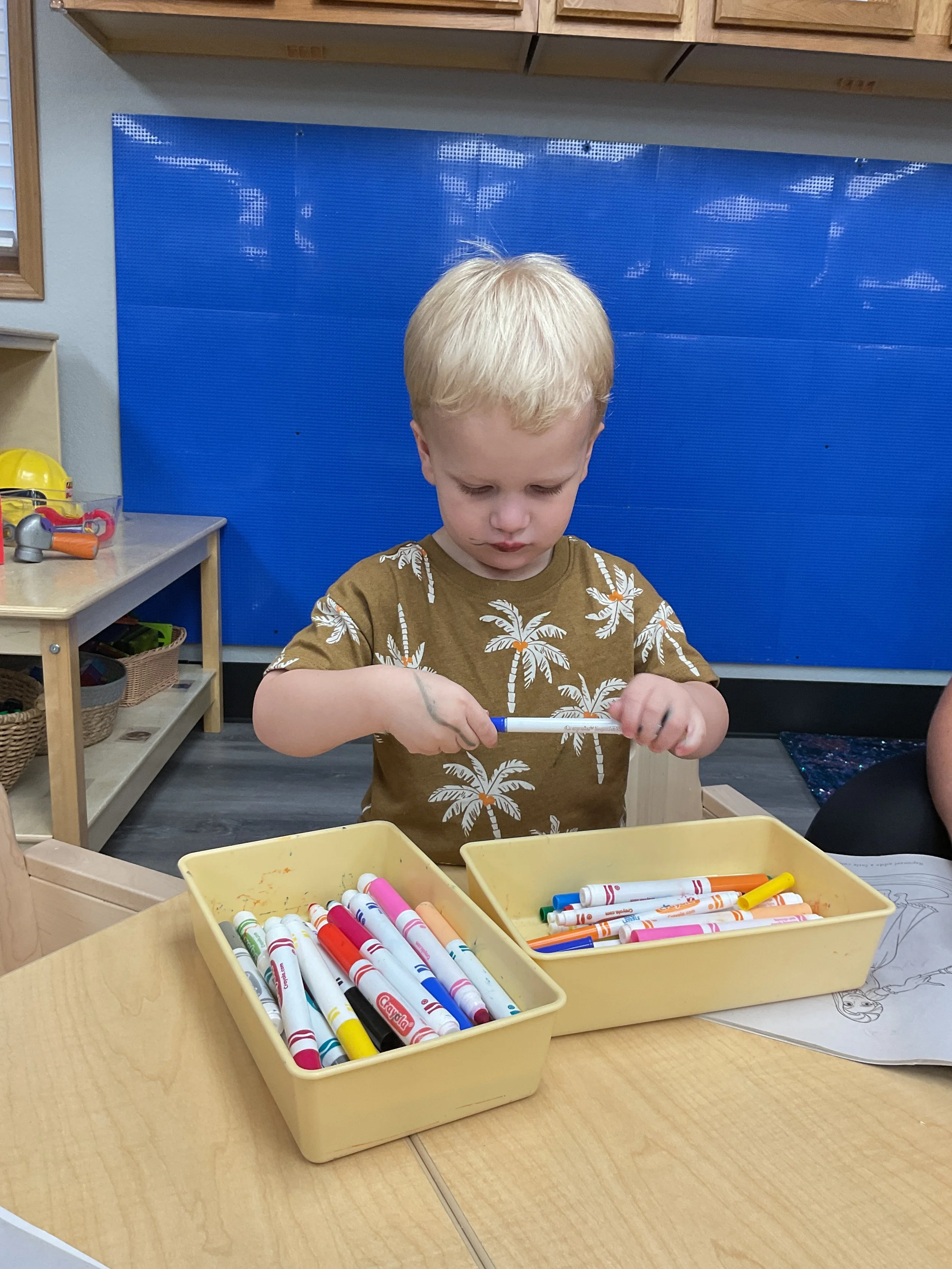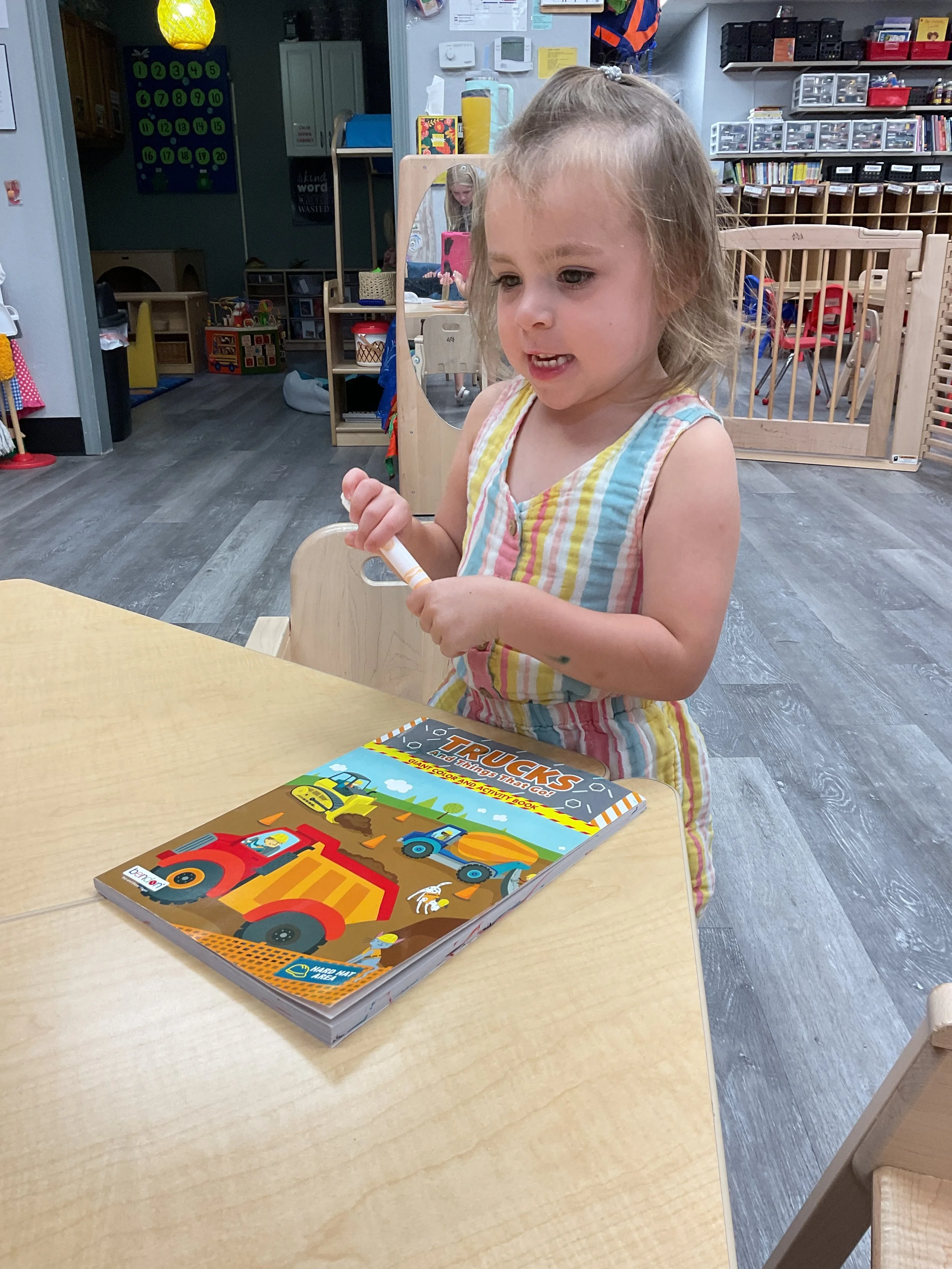 Today we read the book Jamberry written by Bruce Degen. During our music and movement time, we calmed and stretched our bodies with yoga poses. Then, during our math and cognition lesson, we counted how many squares, triangles, circles, stars, and rectangles we could find in our classroom. Next, during our science and sensory lesson, we filled our sensory bin with numbers. We were able to make all the numbers from 1 to 100! Finally, for our fine motor and literacy lesson, we worked on number tracing and pin pushing!