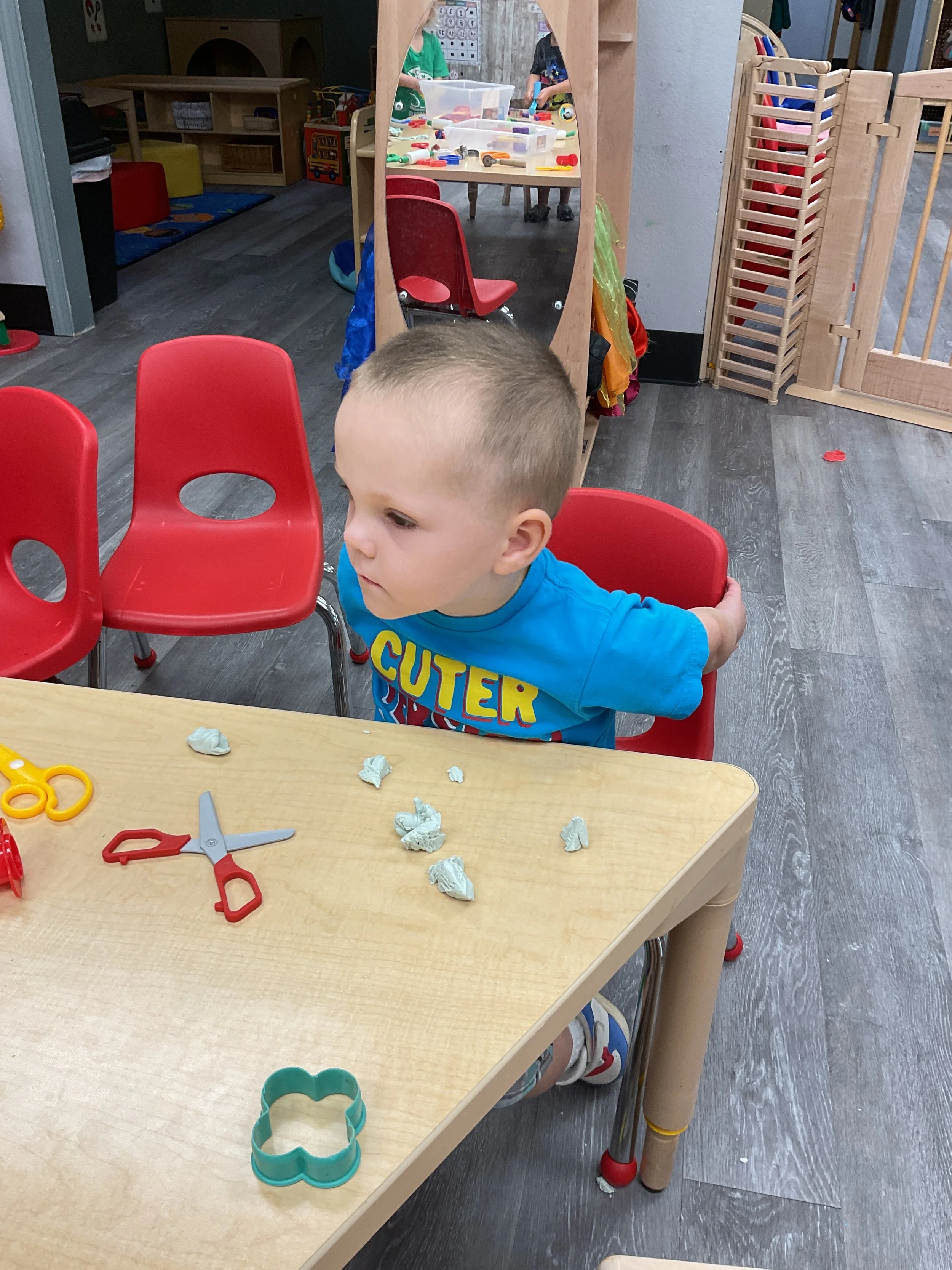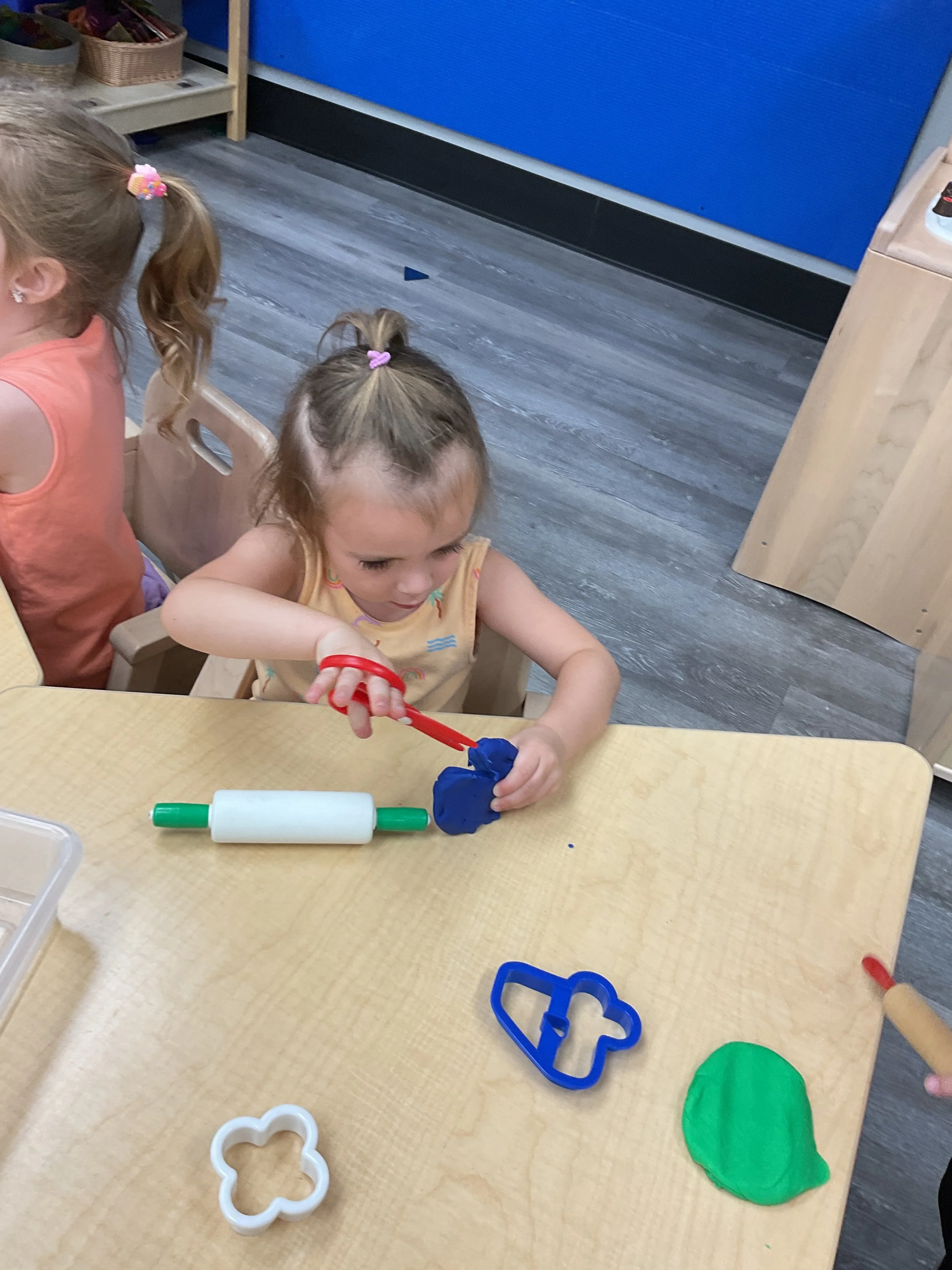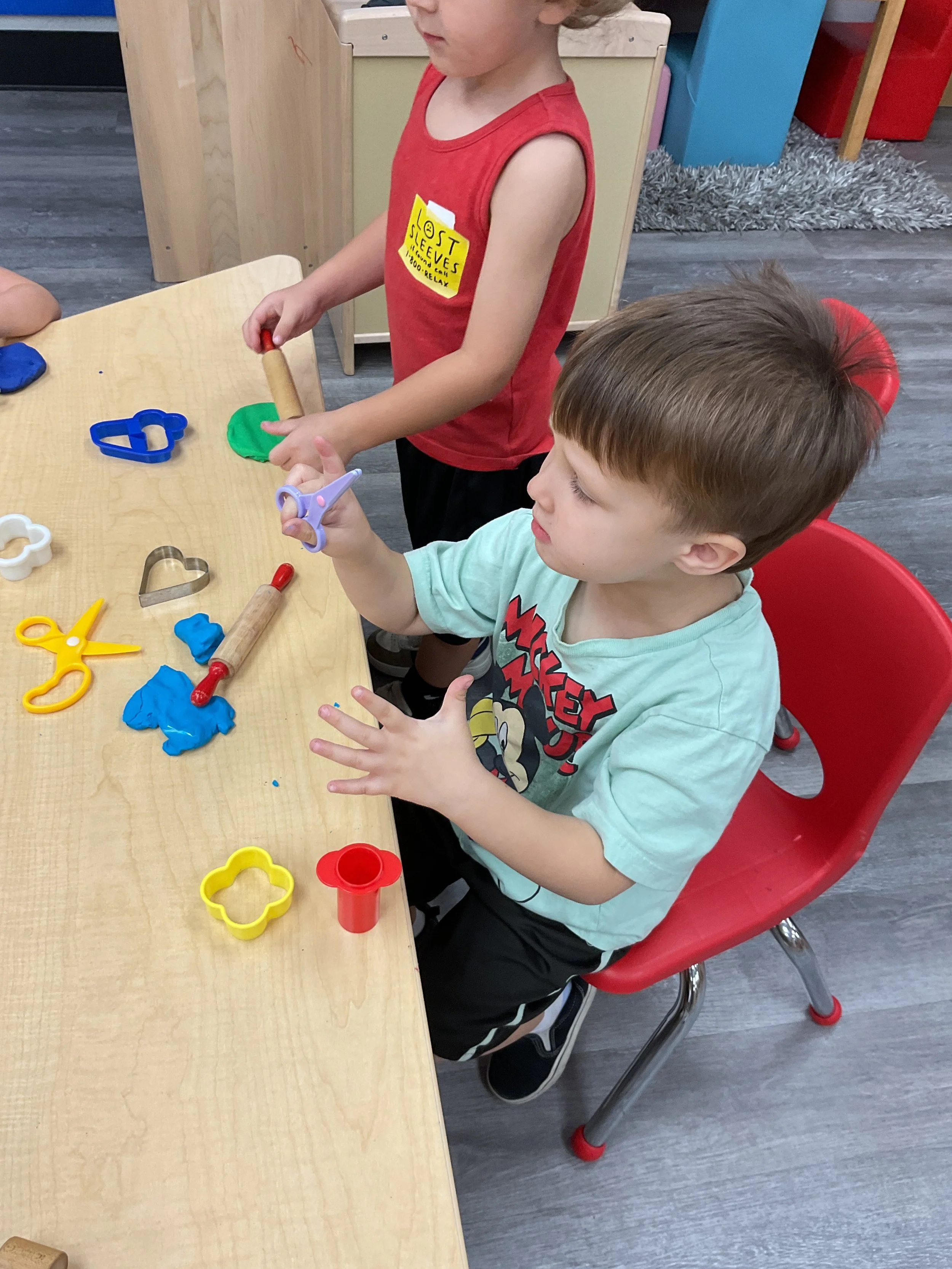 Today we read the book Doctor Ted written by Andrea Beaty and Pascal Lemaitre. During our music and movement time, we played catch with each other! Then, during our math and cognition lesson, we worked on simple patterning using pictures of germs. Next, during our science and sensory lesson, we played with playdough. Finally, for our fine motor and literacy lesson, we practiced cutting.
