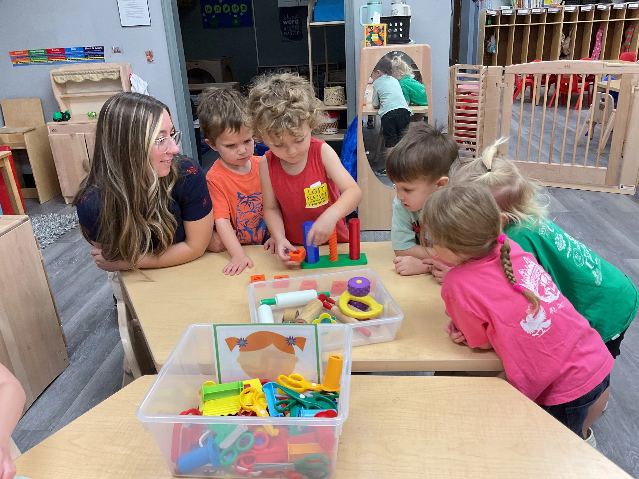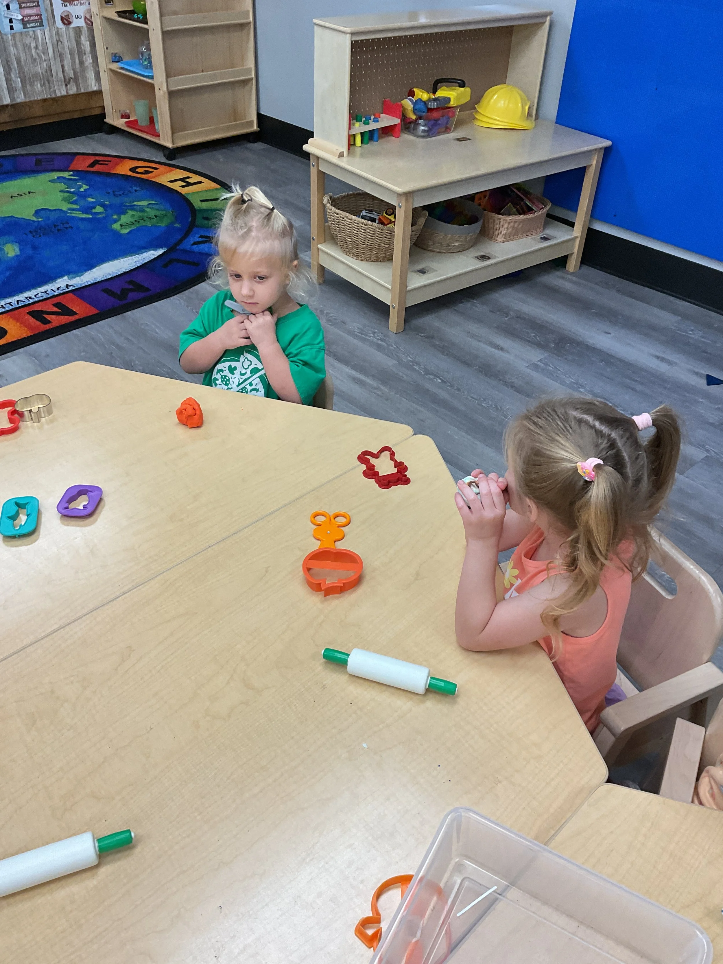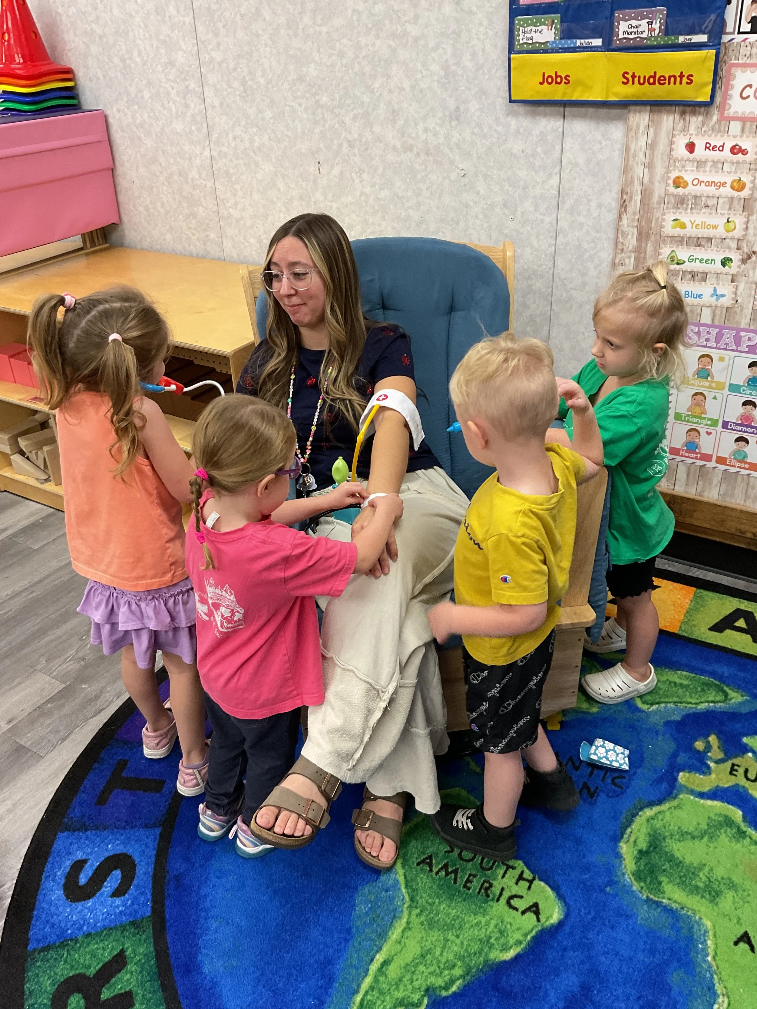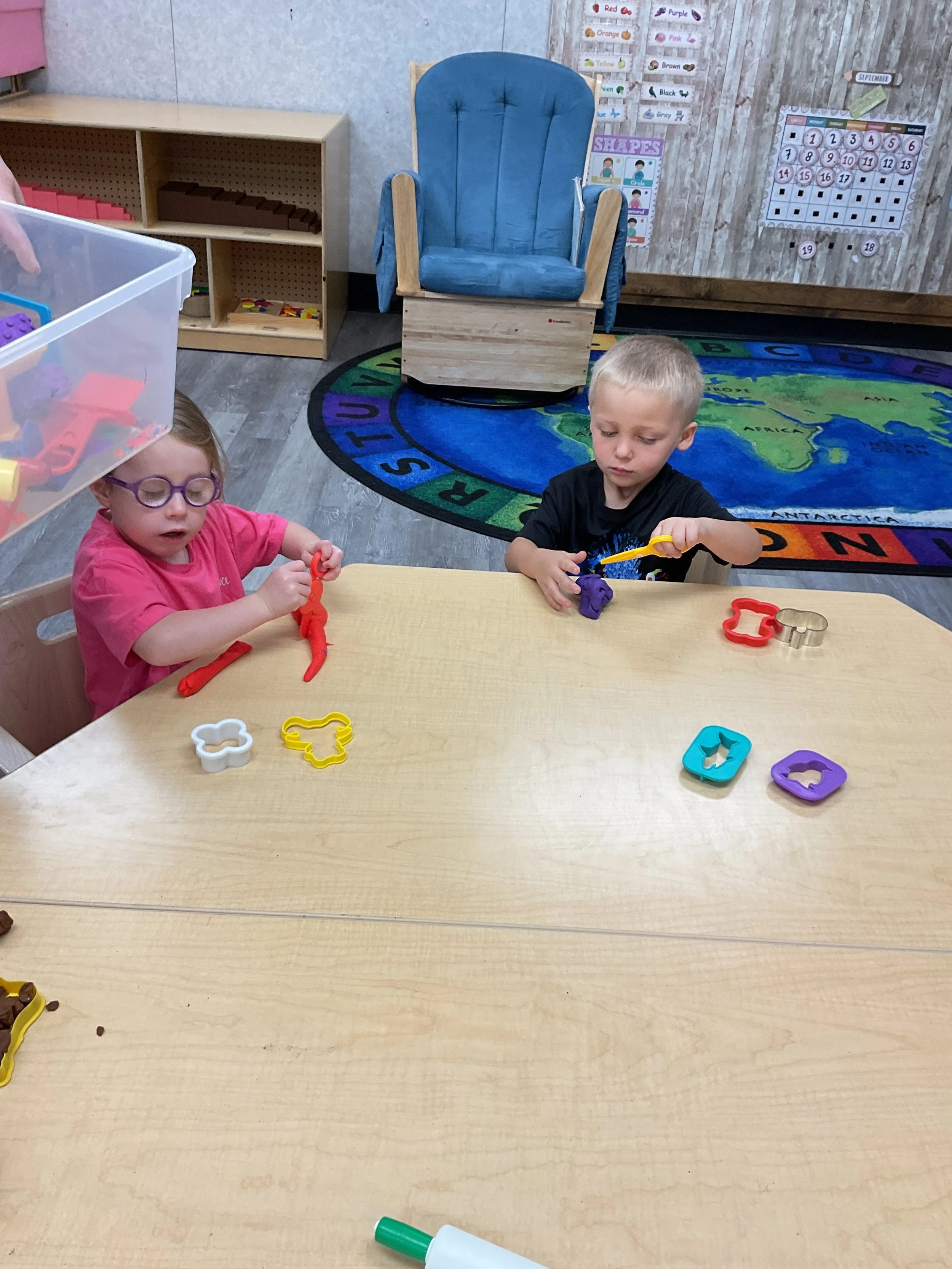 Today we read the book Doctor Ted written by Andrea Beaty and Pascal Lemaitre. During our music and movement time, we played catch with each other! Then, during our math and cognition lesson, we worked on simple patterning using pictures of germs. Next, during our science and sensory lesson, we played with playdough. Finally, for our fine motor and literacy lesson, we practiced cutting.
