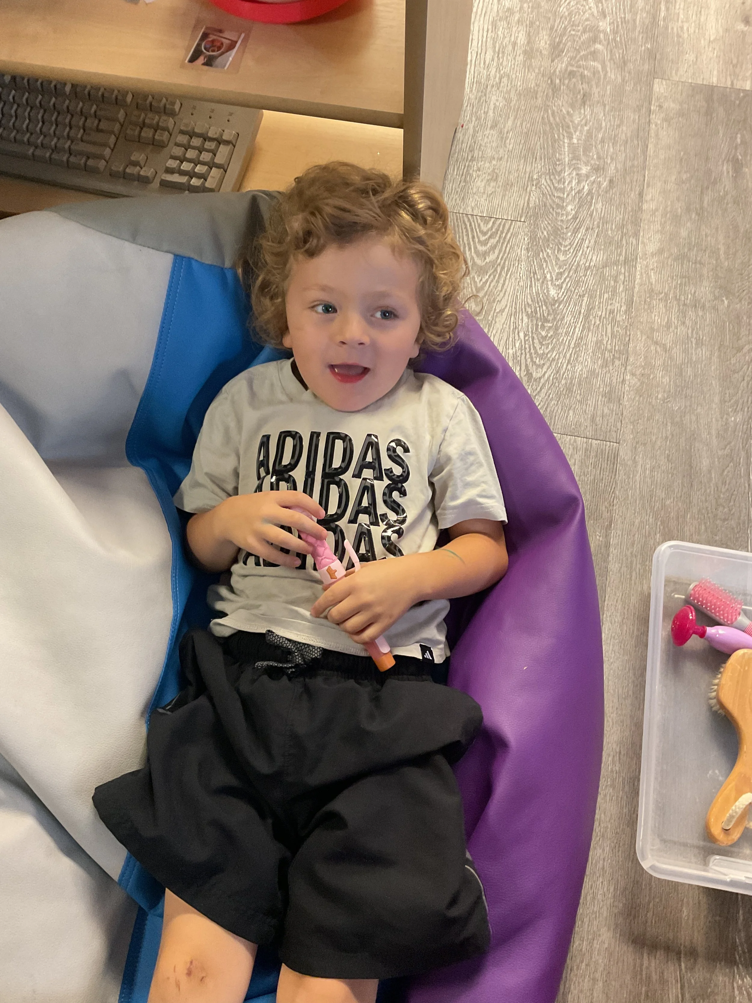This morning, we read the book Johnny Appleseed written by Jodie Shepherd and illustrated by Masumi Furkawa. During our music and movement time, we made an obstacle course that included a tunnel! The tunnel was so much fun. Next, during our math and cognition lesson, we matched different apple patterns together. Then, for our science and sensory lesson, we made homemade applesauce. Finally, during our fine motor and literacy lesson, we painted our hands like an apple and made sweet handprint apples.