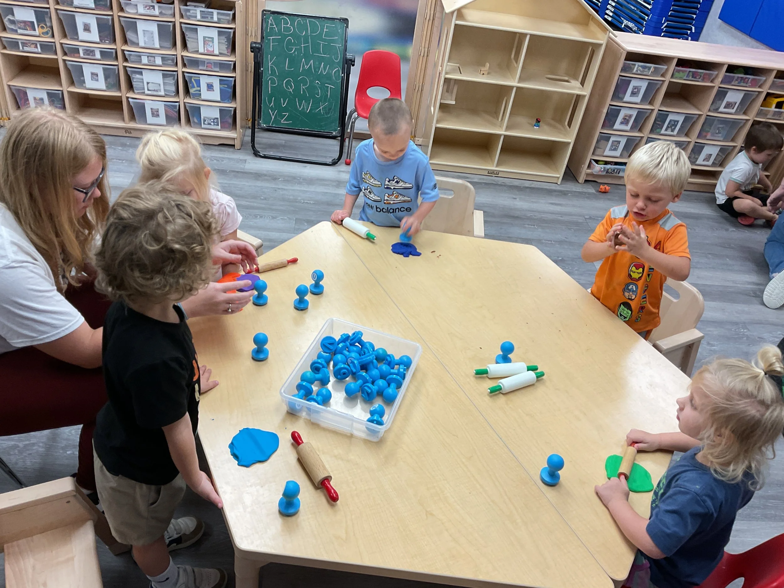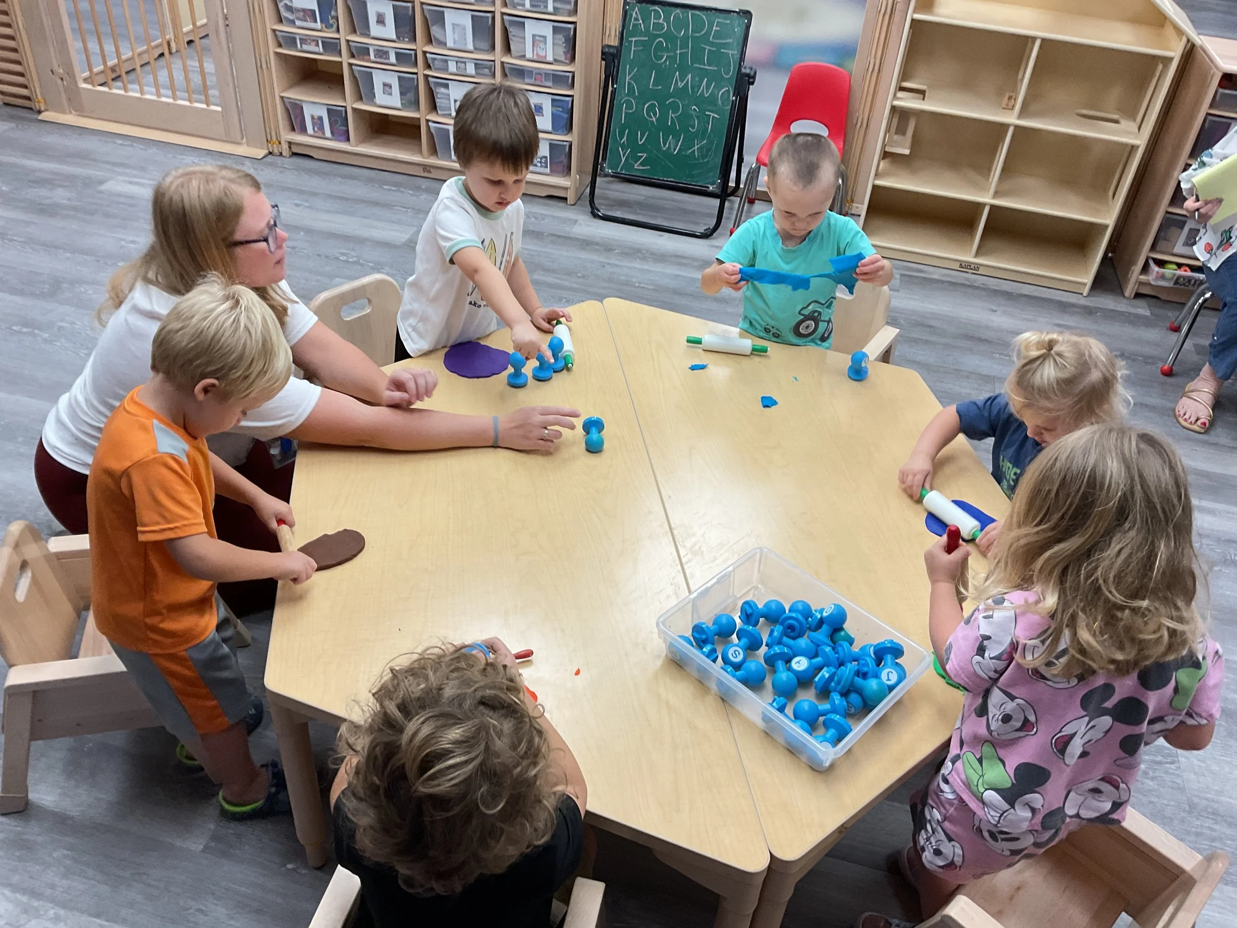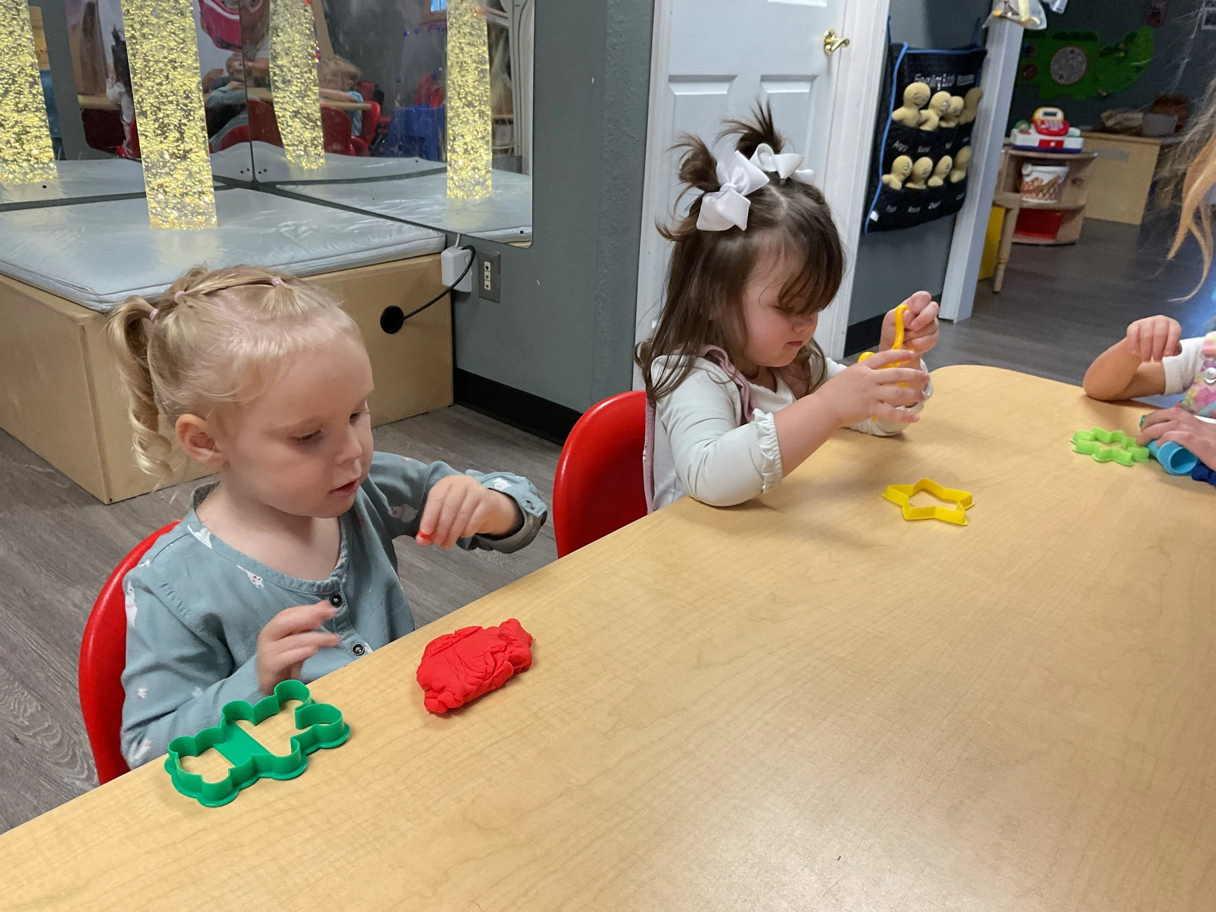 This morning, we read the book Bad Kitty written by Nick Bruel. During music and movement time, we stretched our bodies with yoga poses. For our math and cognition lesson, we had a very mixed-up alphabet and we had to organize them in correct alphabet order. Then, for our science and sensory lesson, we used playdough and letter stamps to make words. Lastly, for our fine motor and literacy lesson, we practiced our cutting skills.