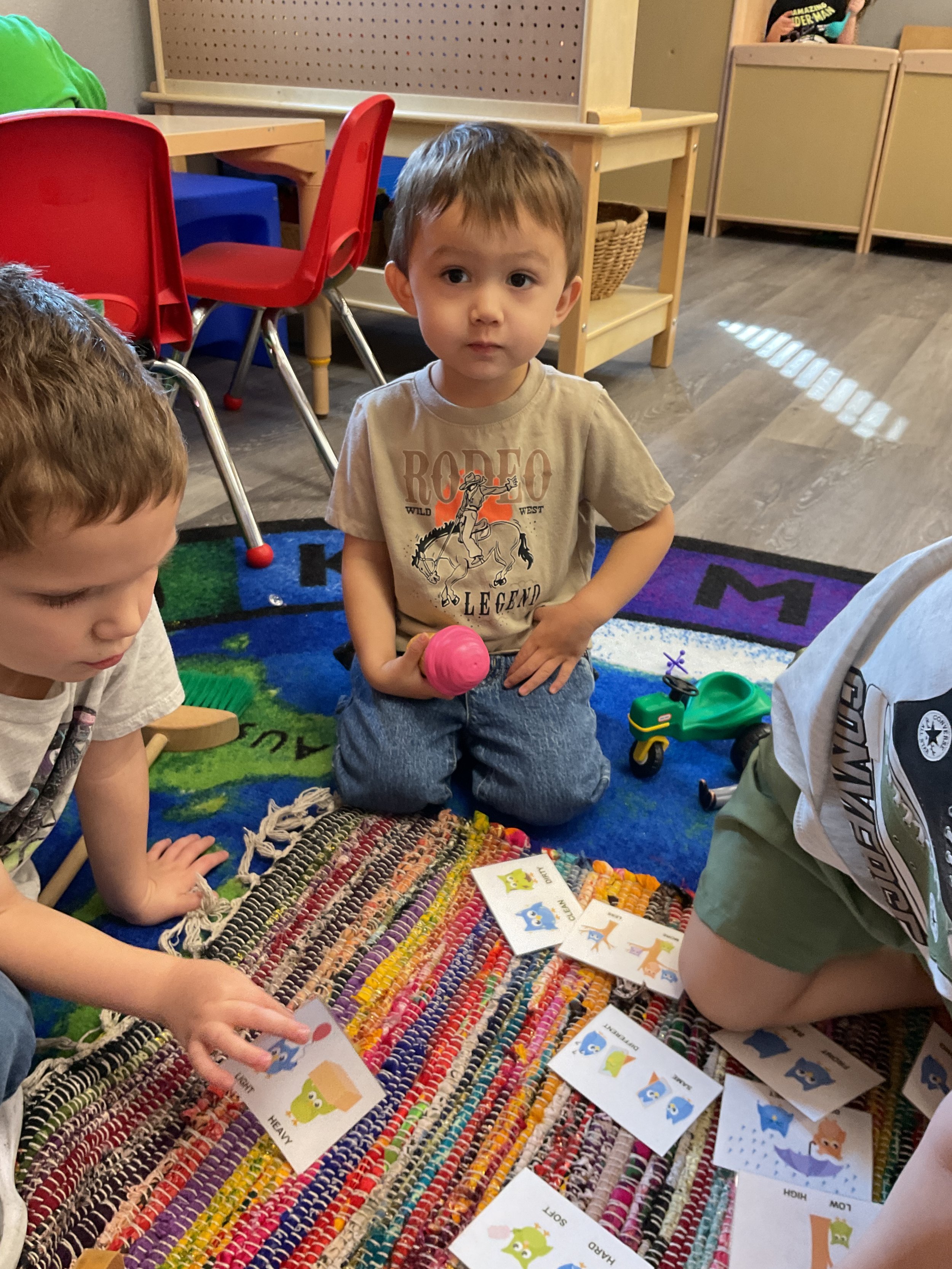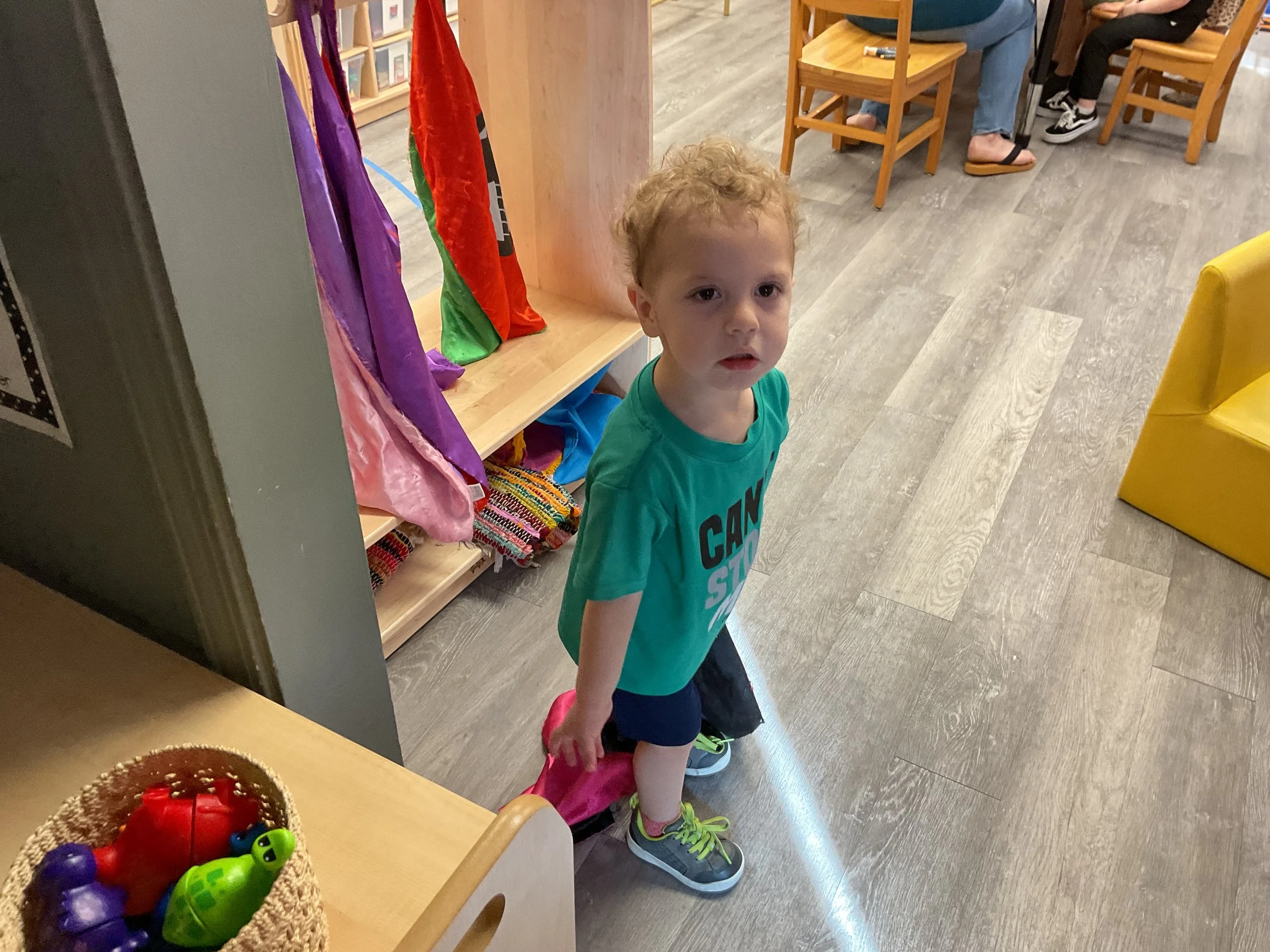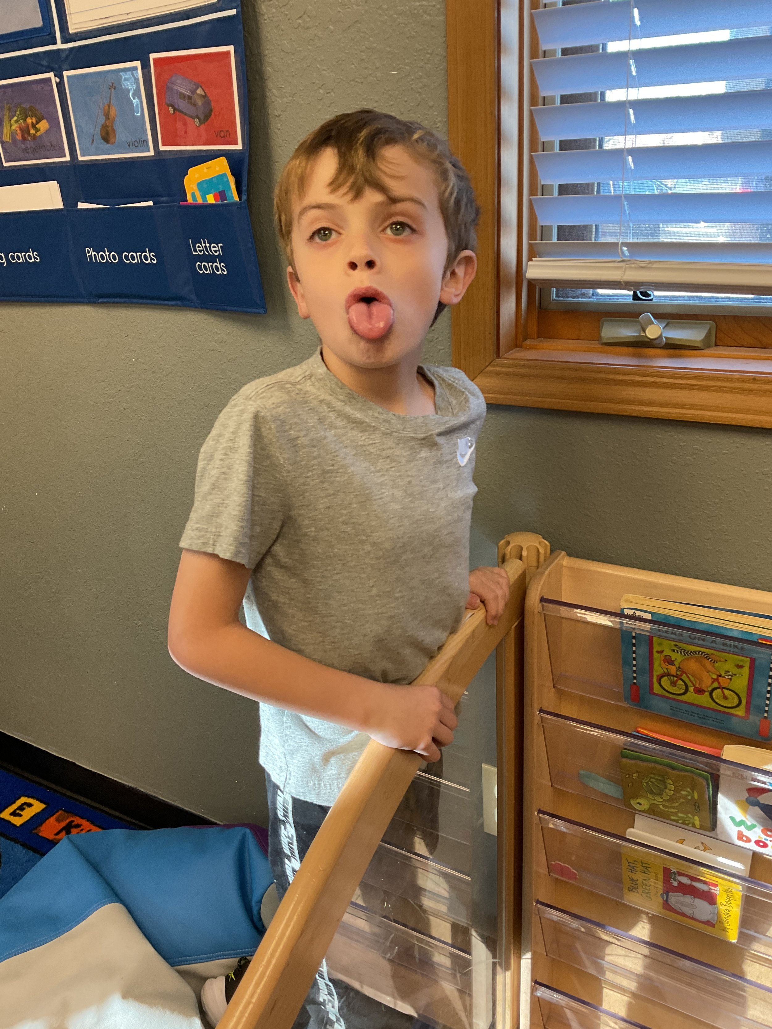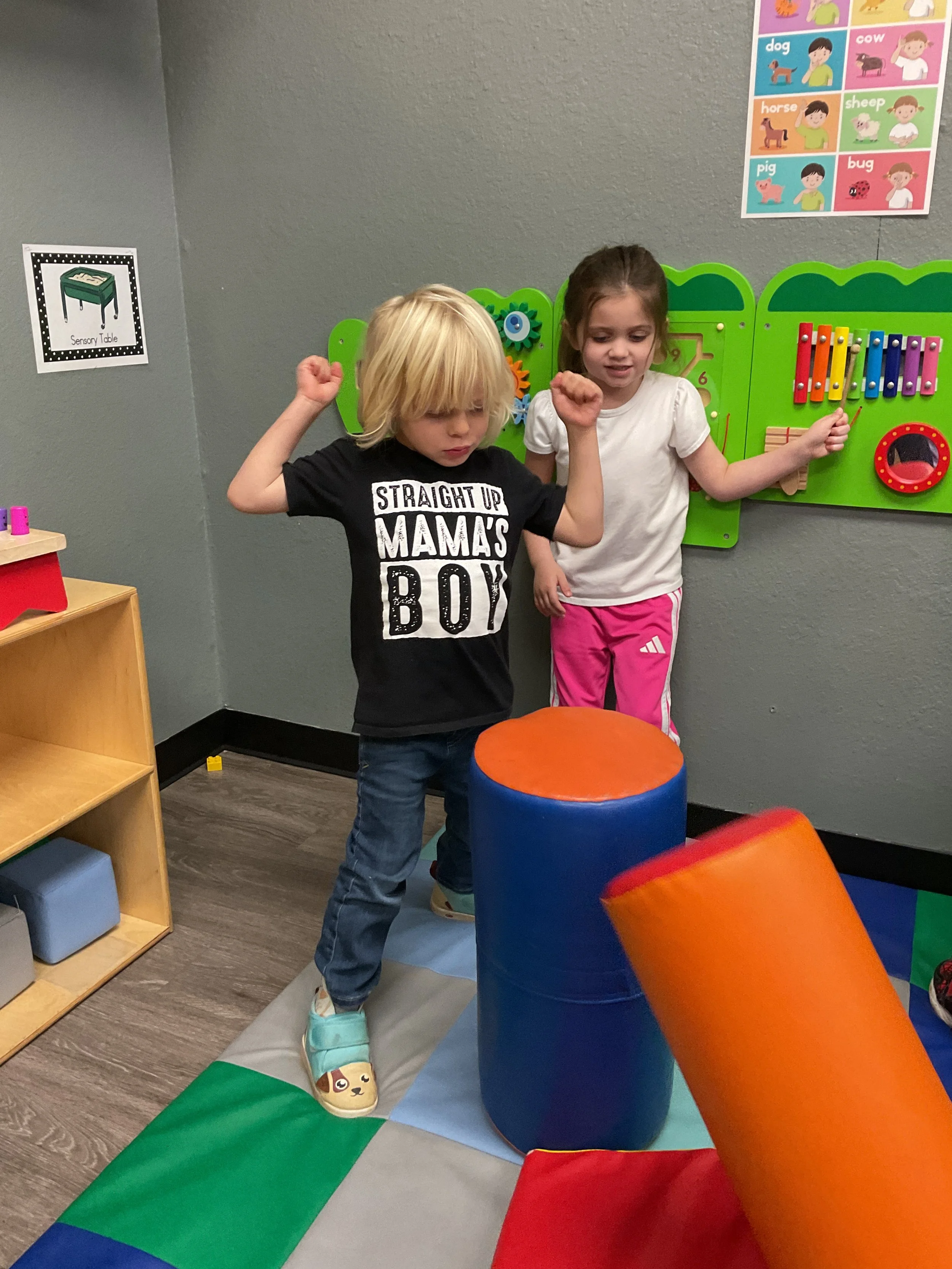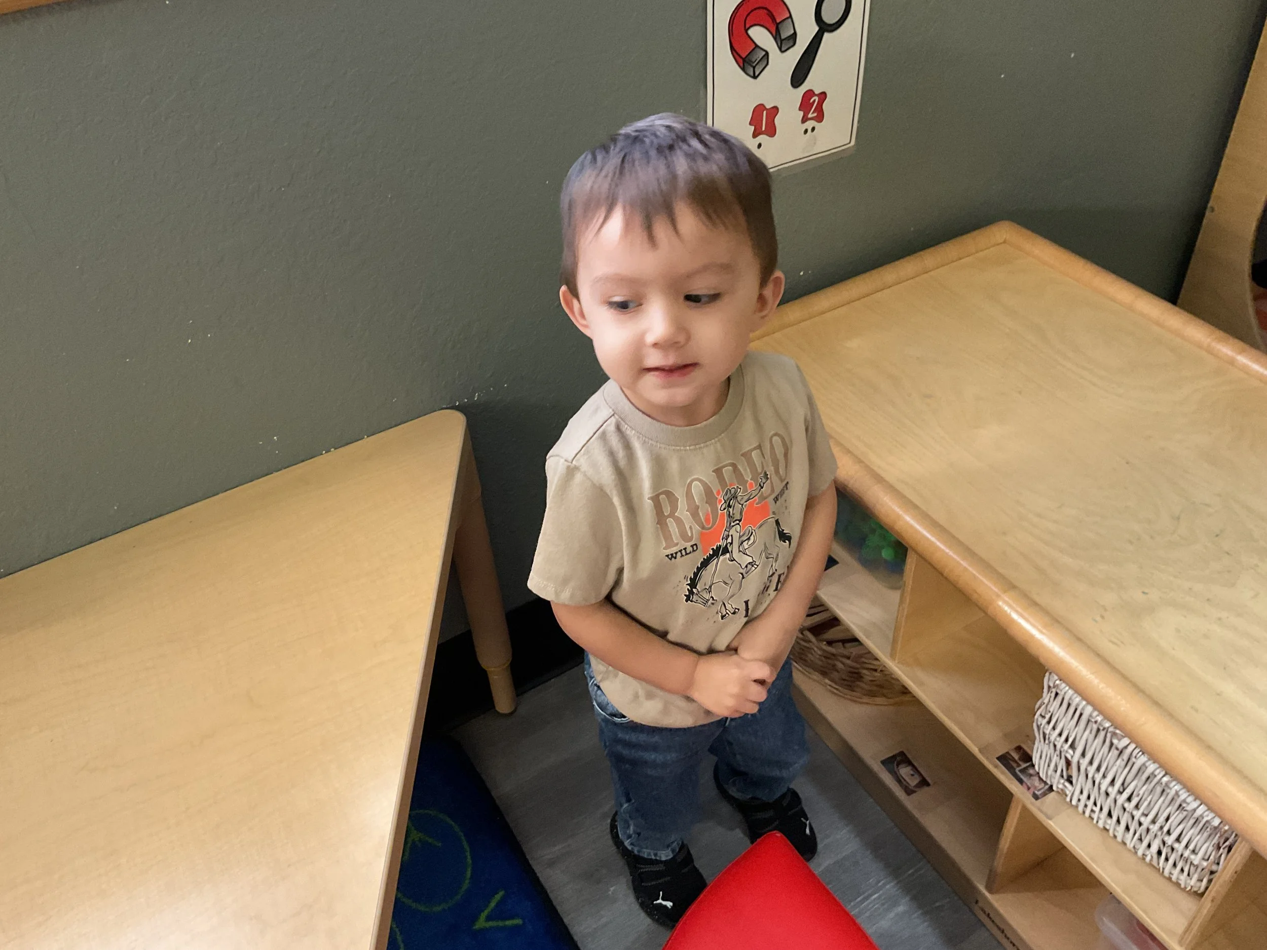 This morning, we read the book Zipping, Zapping, Zooming Bats written by Ann Earle and illustrated by Henry Cole. During our music and movement time, we had a Monday morning dance party! Then, during our math and cognition lesson, we worked on opposites. Next, for our science and sensory lesson, we drew moons so our nocturnal animals can see when they explore at night. Finally, for our literacy and fine motor lesson, we practiced tracing lines and writing our names.