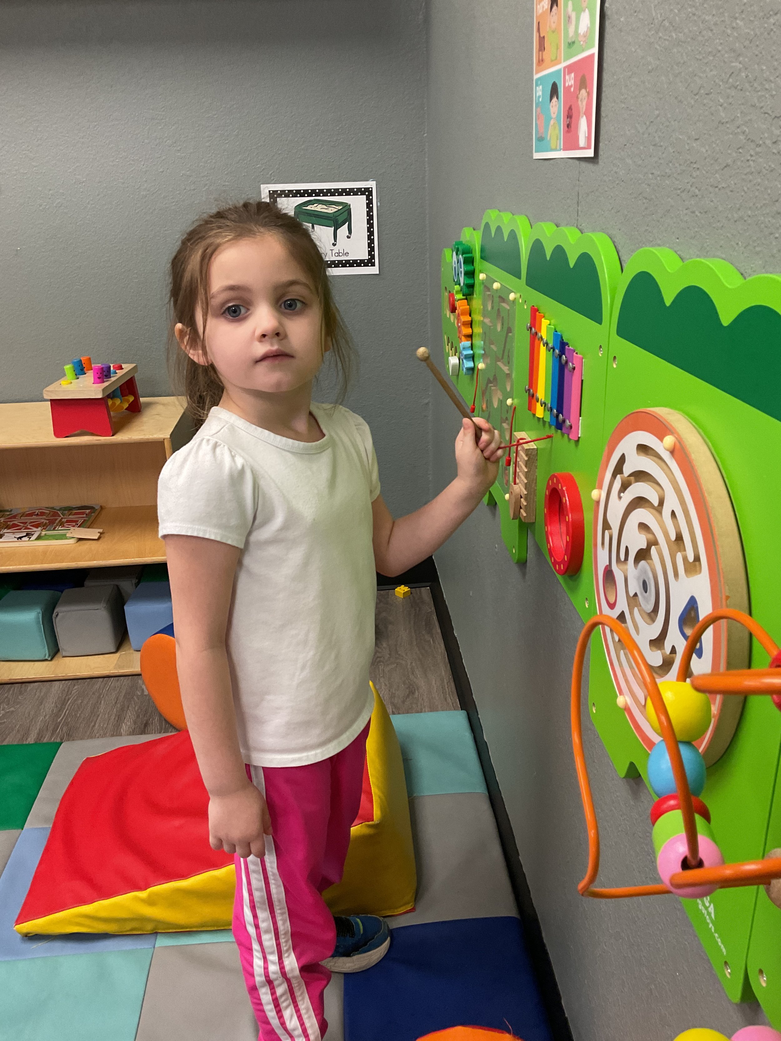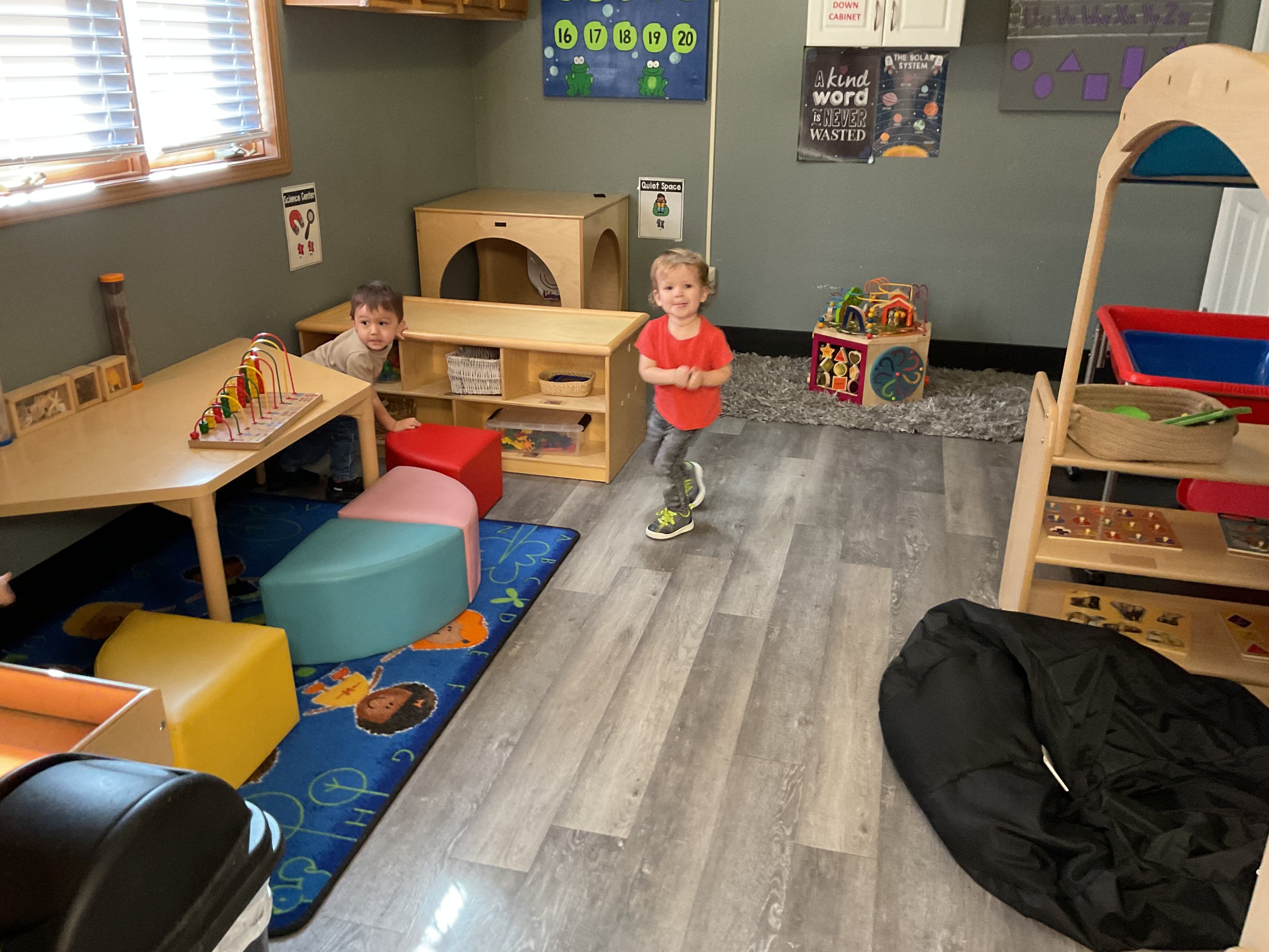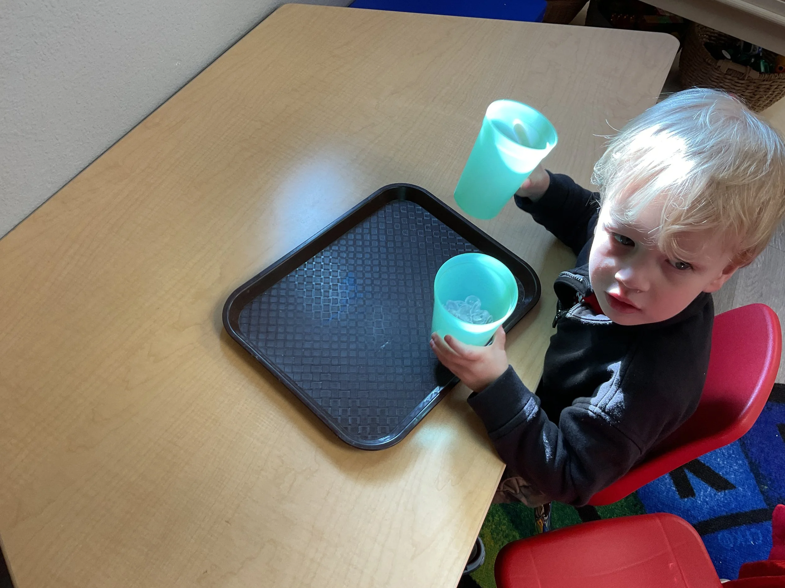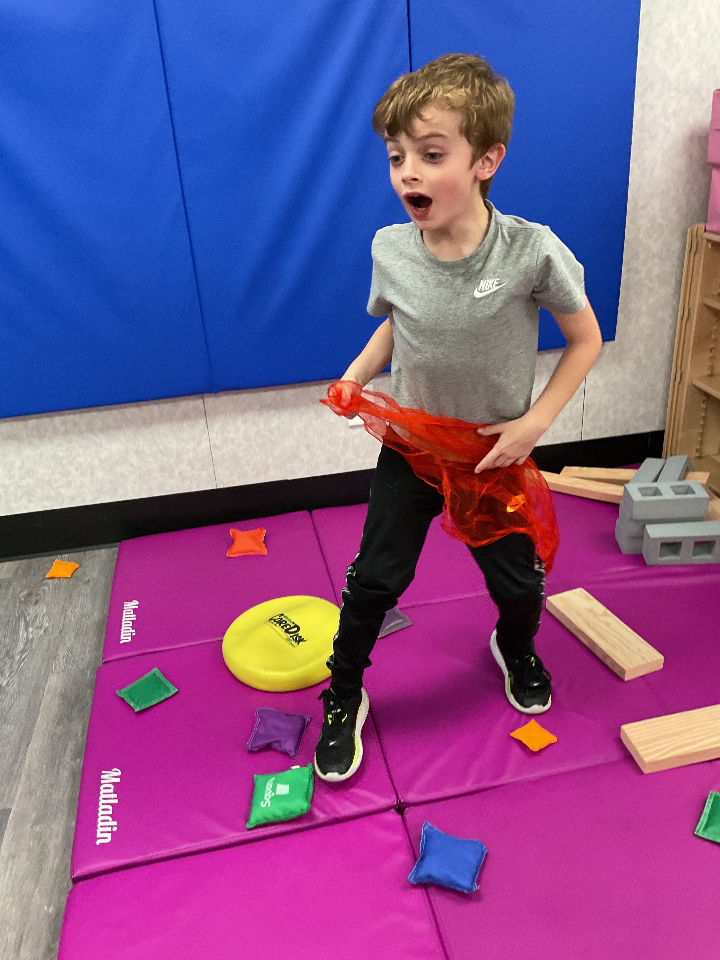 This morning, we read the book Zipping, Zapping, Zooming Bats written by Ann Earle and illustrated by Henry Cole. During our music and movement time, we had a Monday morning dance party! Then, during our math and cognition lesson, we worked on opposites. Next, for our science and sensory lesson, we drew moons so our nocturnal animals can see when they explore at night. Finally, for our literacy and fine motor lesson, we practiced tracing lines and writing our names.