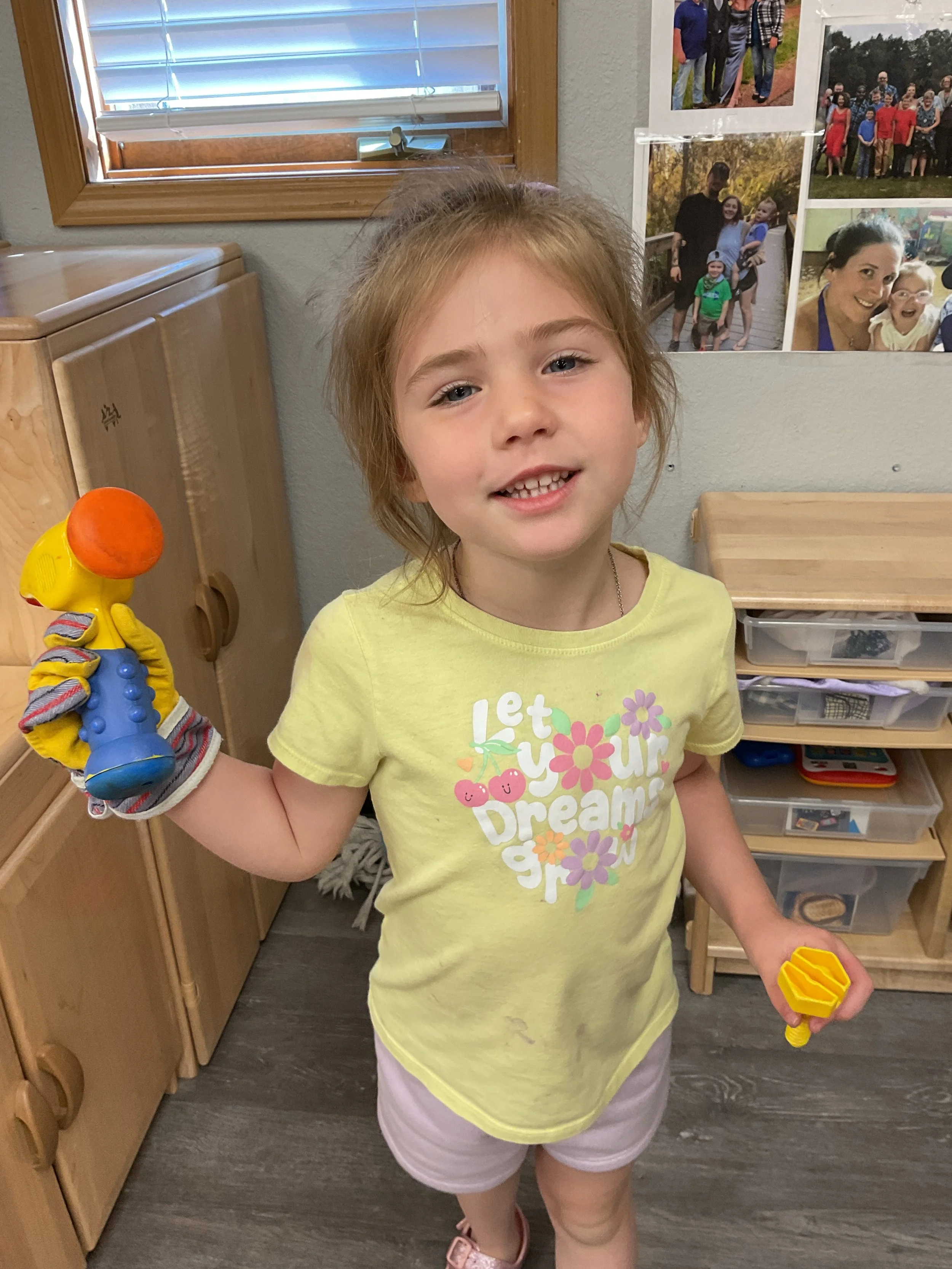This morning, we read the book Beetle Bop written by Denise Fleming. During our music and movement time, we played catch with each other! Then, during our math and cognition lesson, we used colorful bugs to make patterns. Next, for our science and sensory lesson, we used playdough to make our own bugs. Finally, for our literacy and fine motor lesson, we worked on our cutting skills.