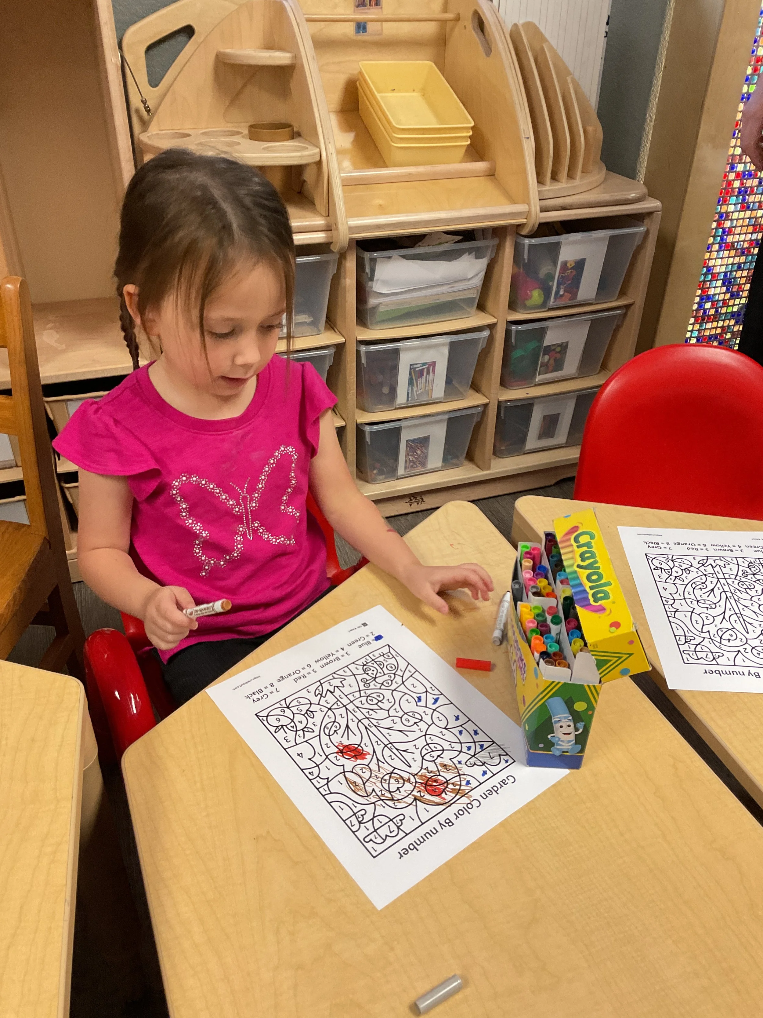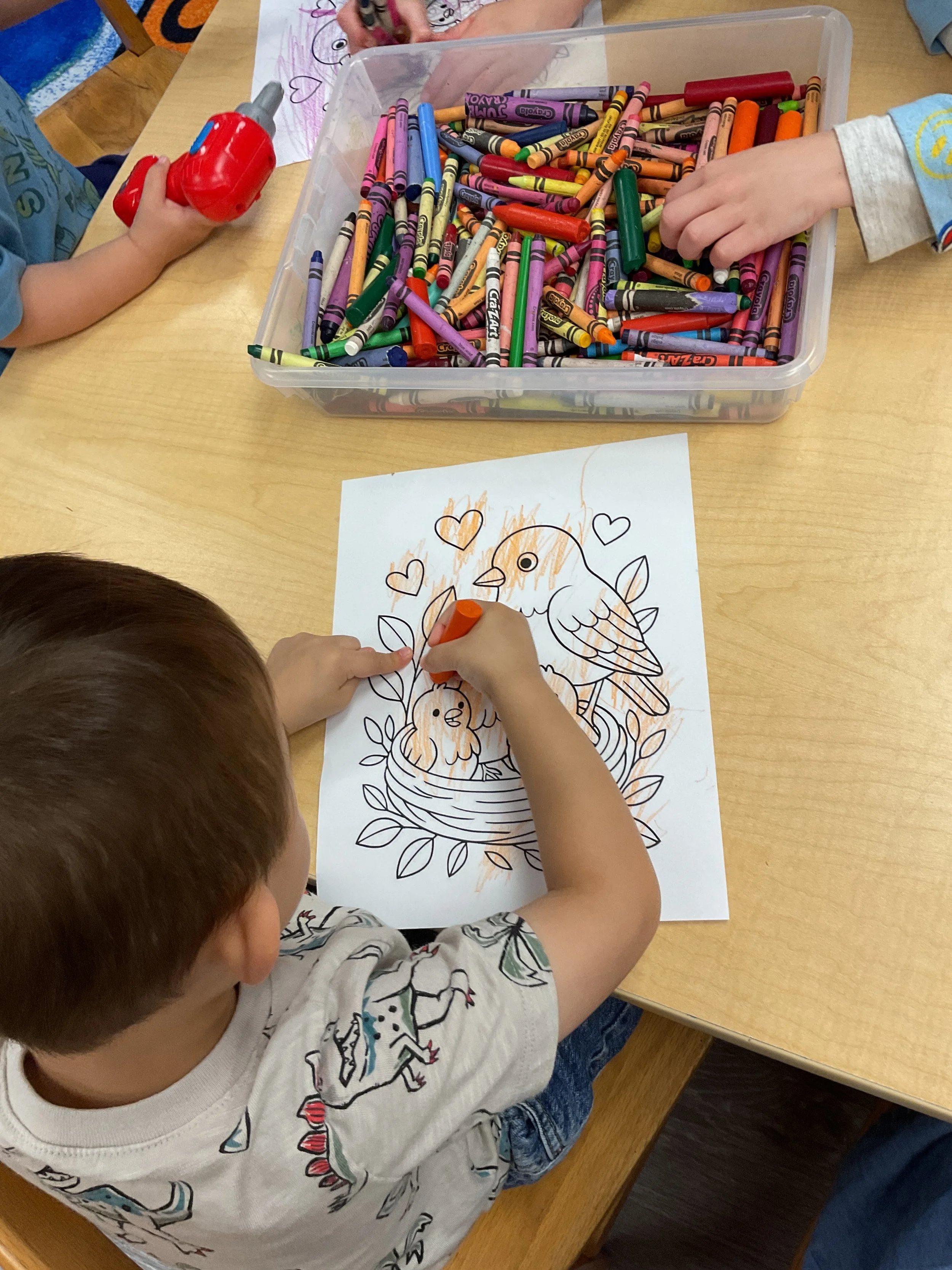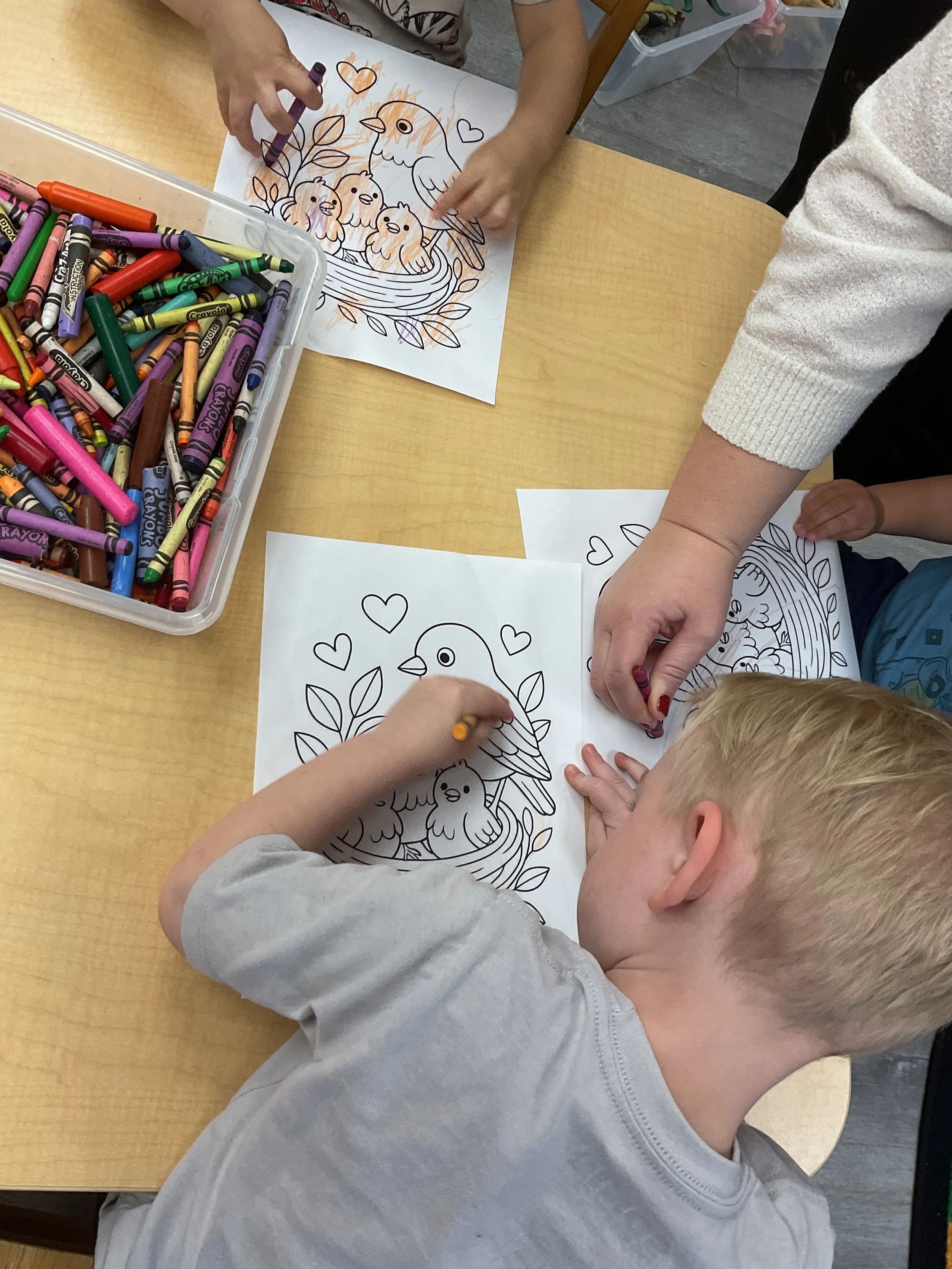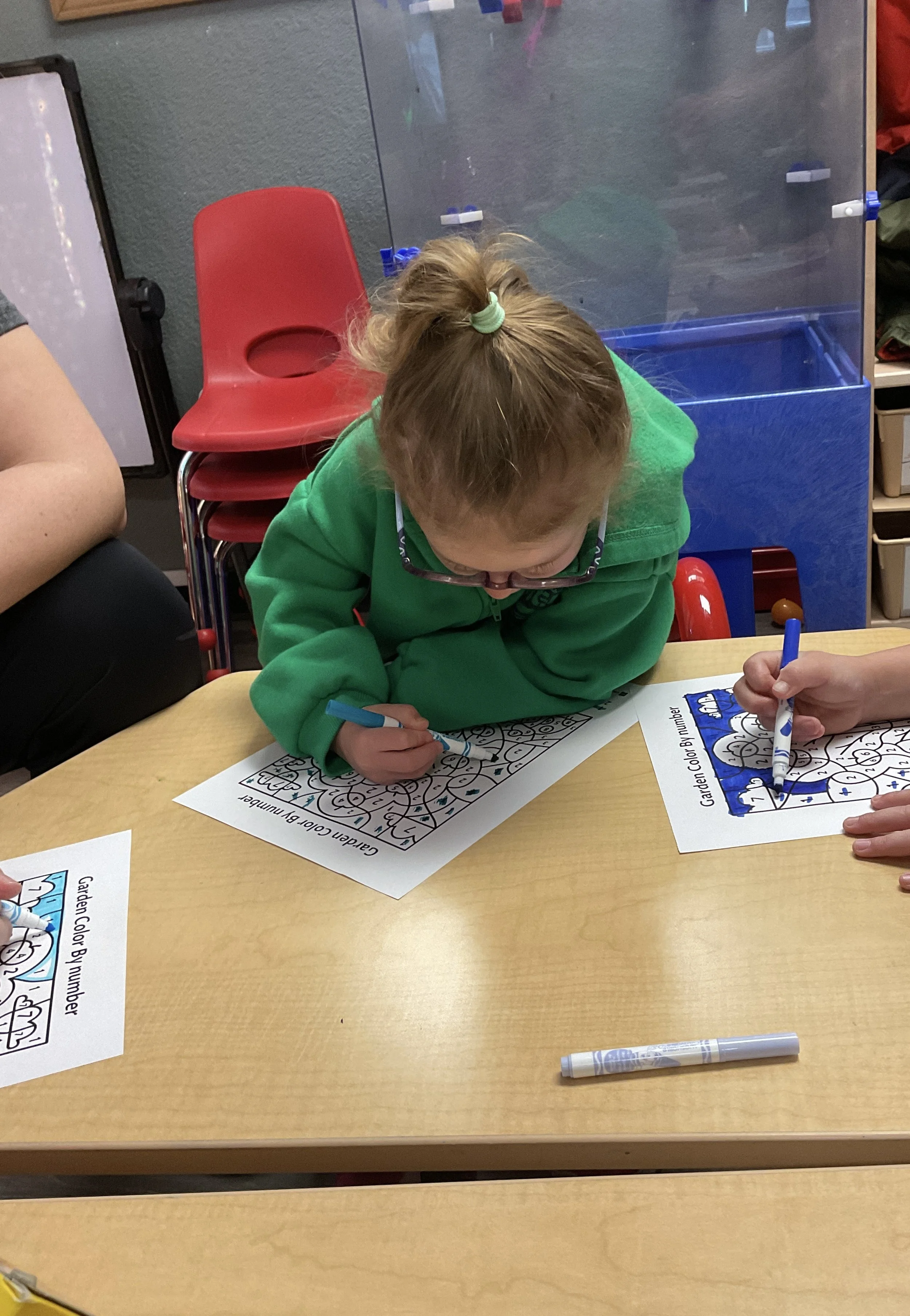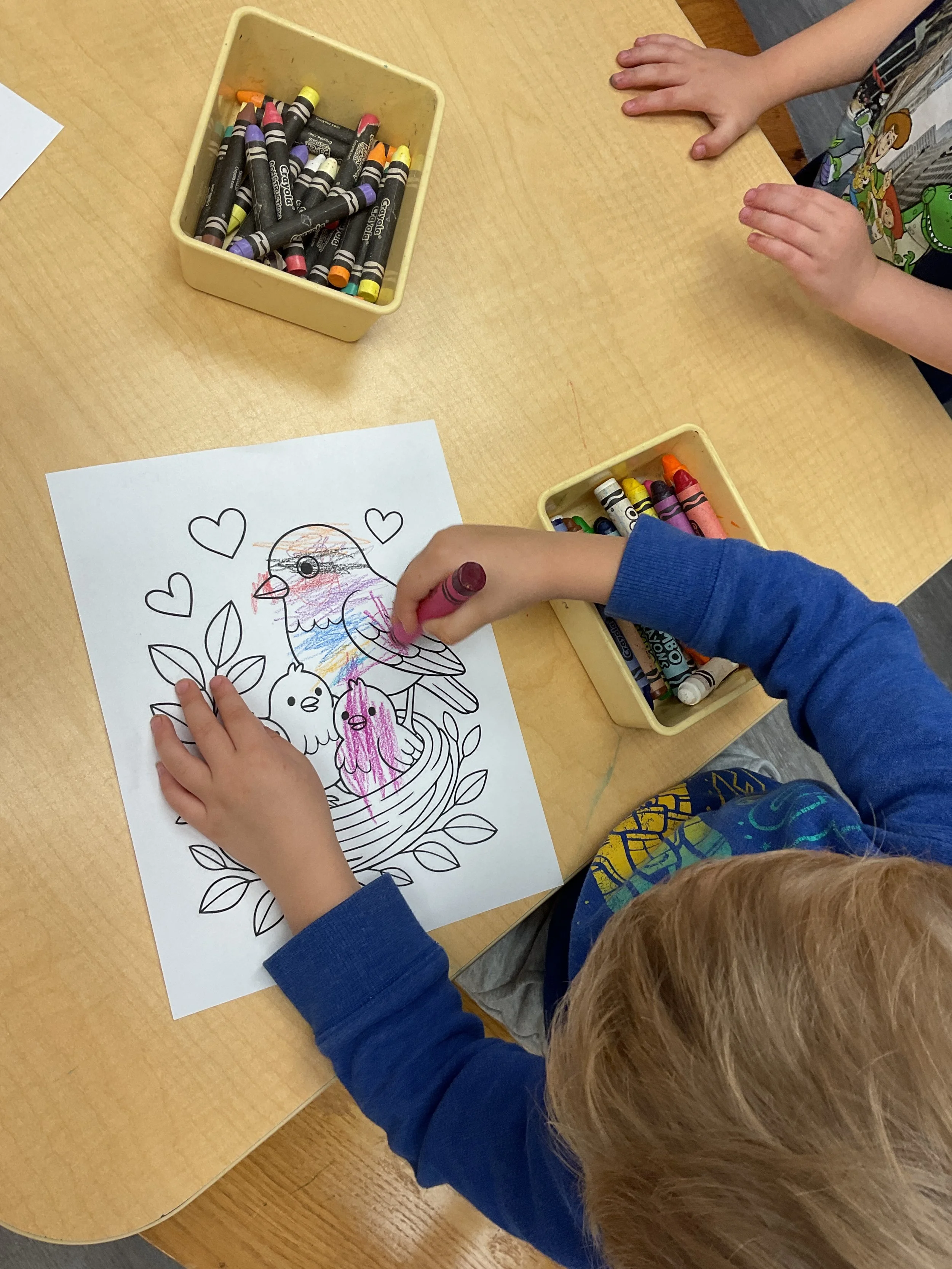 This morning, we read the book Parrots written by Helen Frost. During our music and movement time, we played with different sized balls. Then, during our math and cognition lesson, we worked on number recognition and 1 to 1 correspondence for numbers 1 through 20. Next, for our science and sensory lesson, we colored a picture of birds in a tree. Finally, for our literacy and fine motor lesson, we listened to a book on tape.