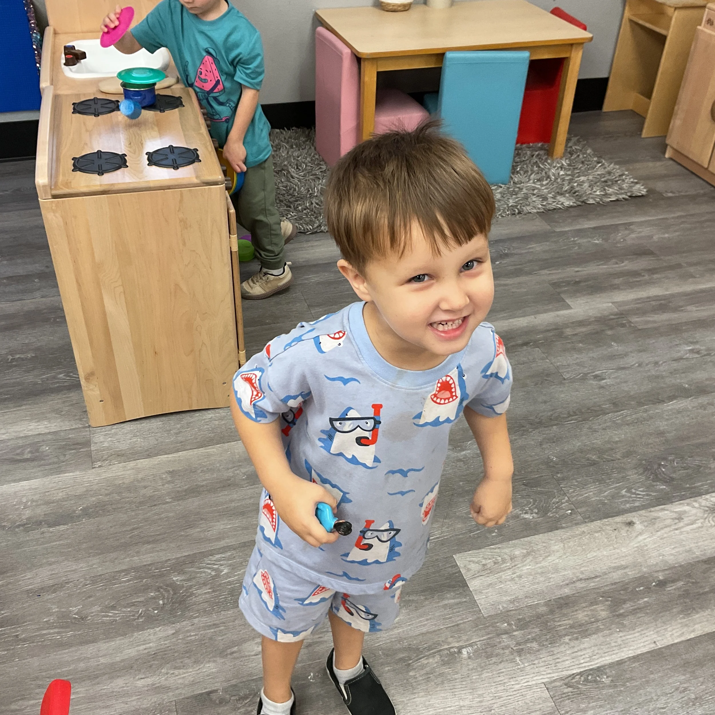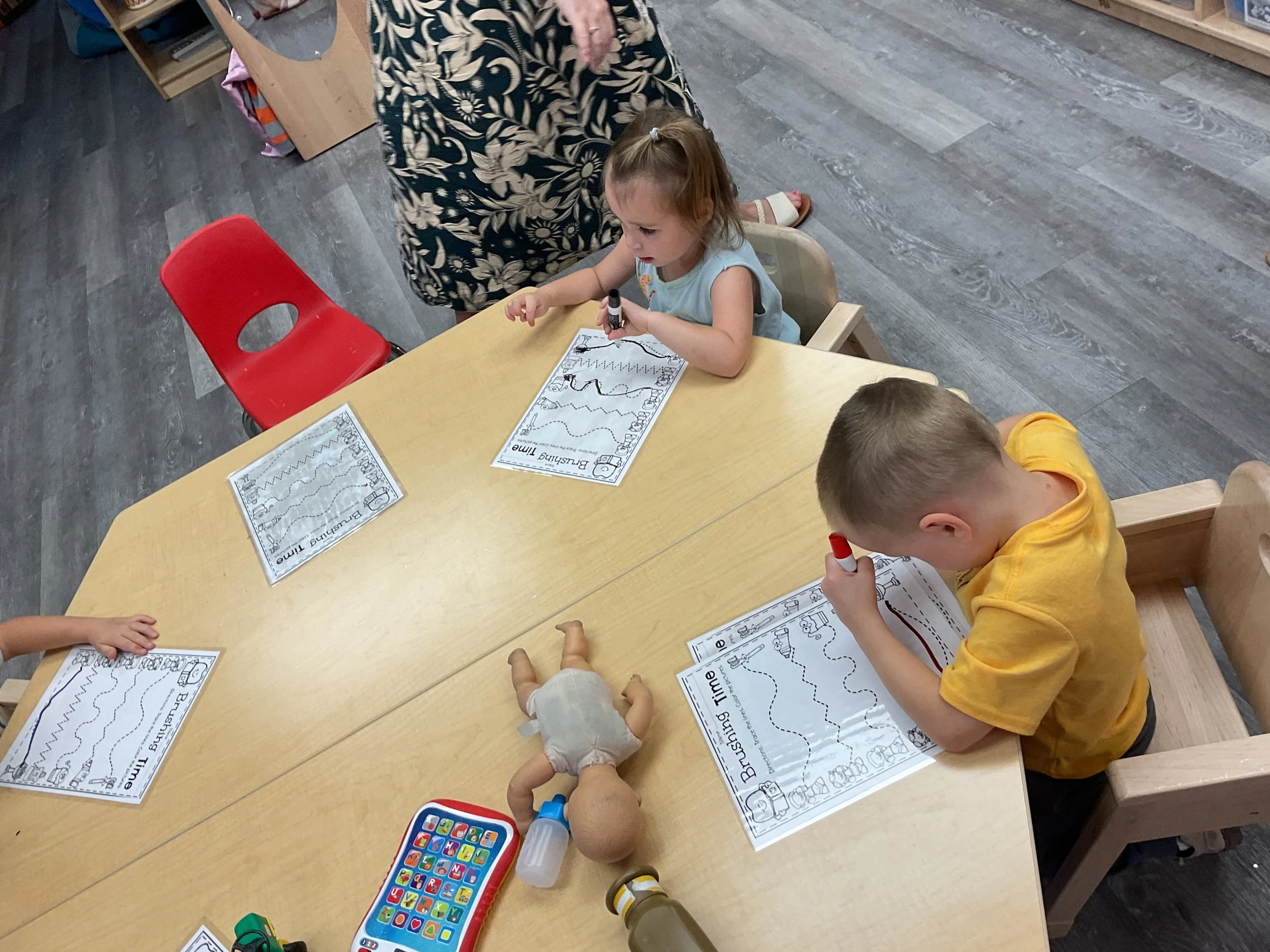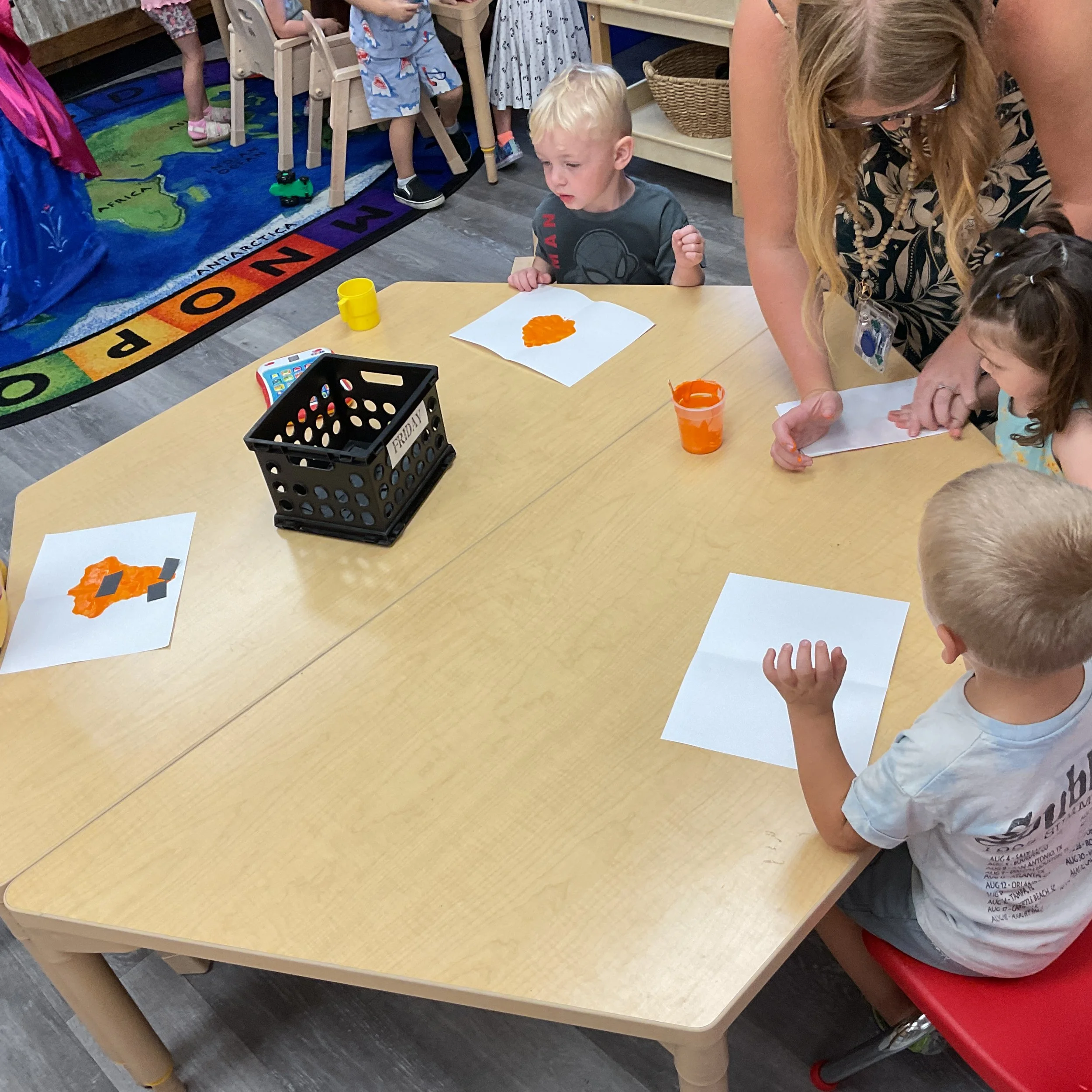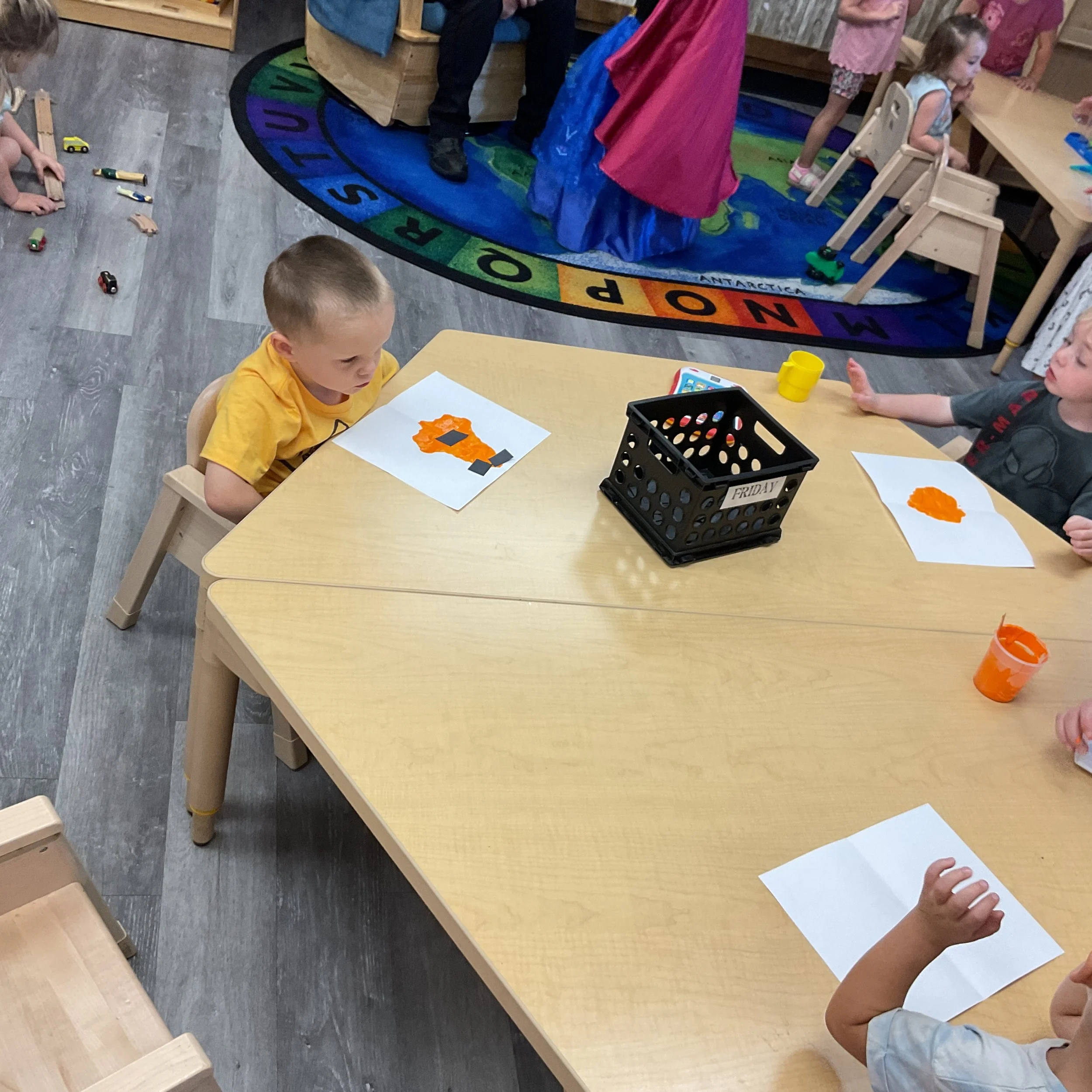 Today we read the book Tooth on the Loose written by Linda Jennings and Gwyneth Williamson. During our music and movement time, we worked on our yoga poses! Then, during our math and cognition lesson, we sorted “germs” by color using tongs. Next, during our science and sensory lesson, we practiced washing our hands. We learned that we should wash our hands for 20 seconds, making sure to get in between our fingers and the backs of our hands. We also made “smash Jack-O-Lanterns.” Finally, for our fine motor and literacy lesson, we worked on tracing lines and writing words!