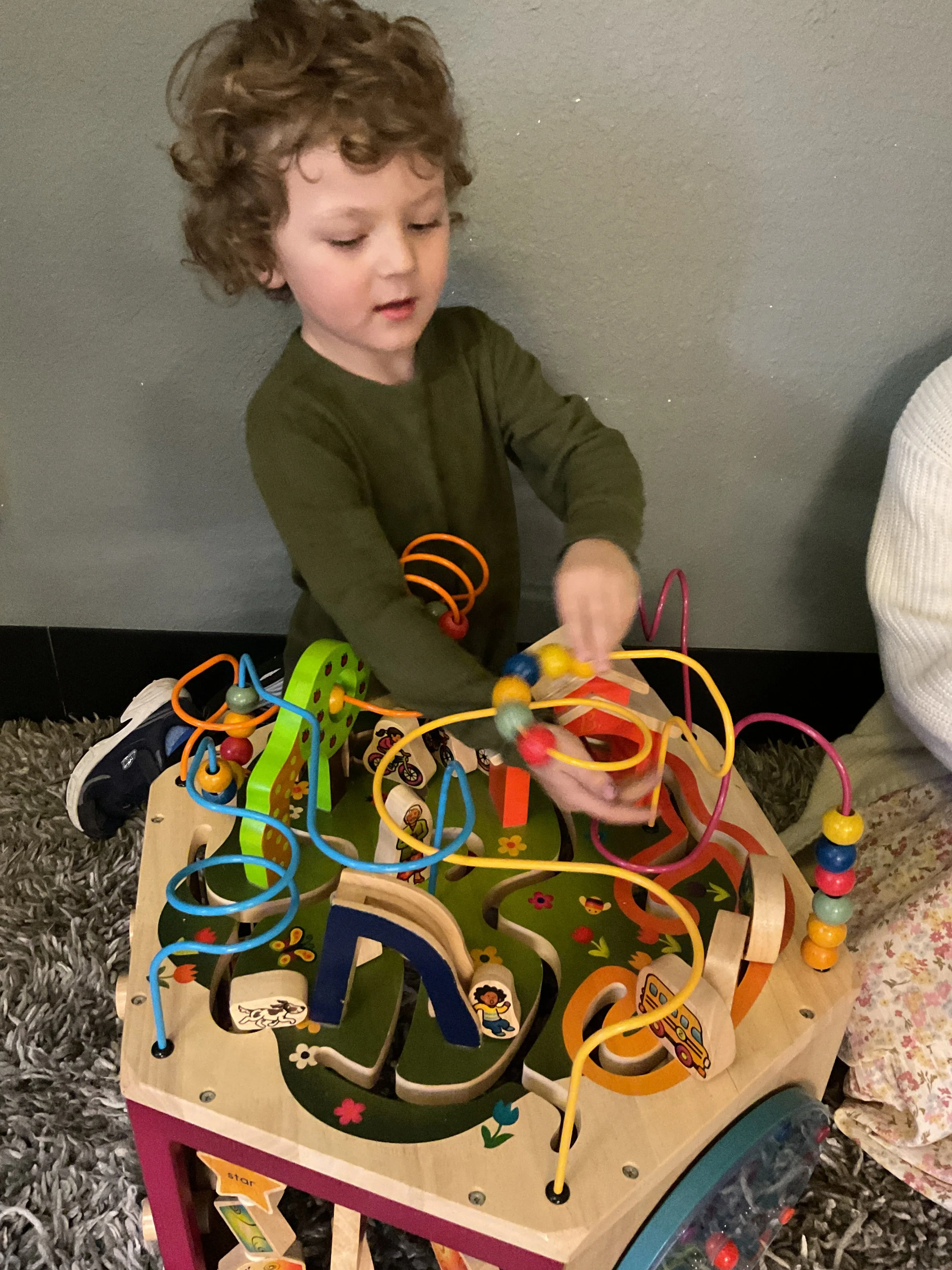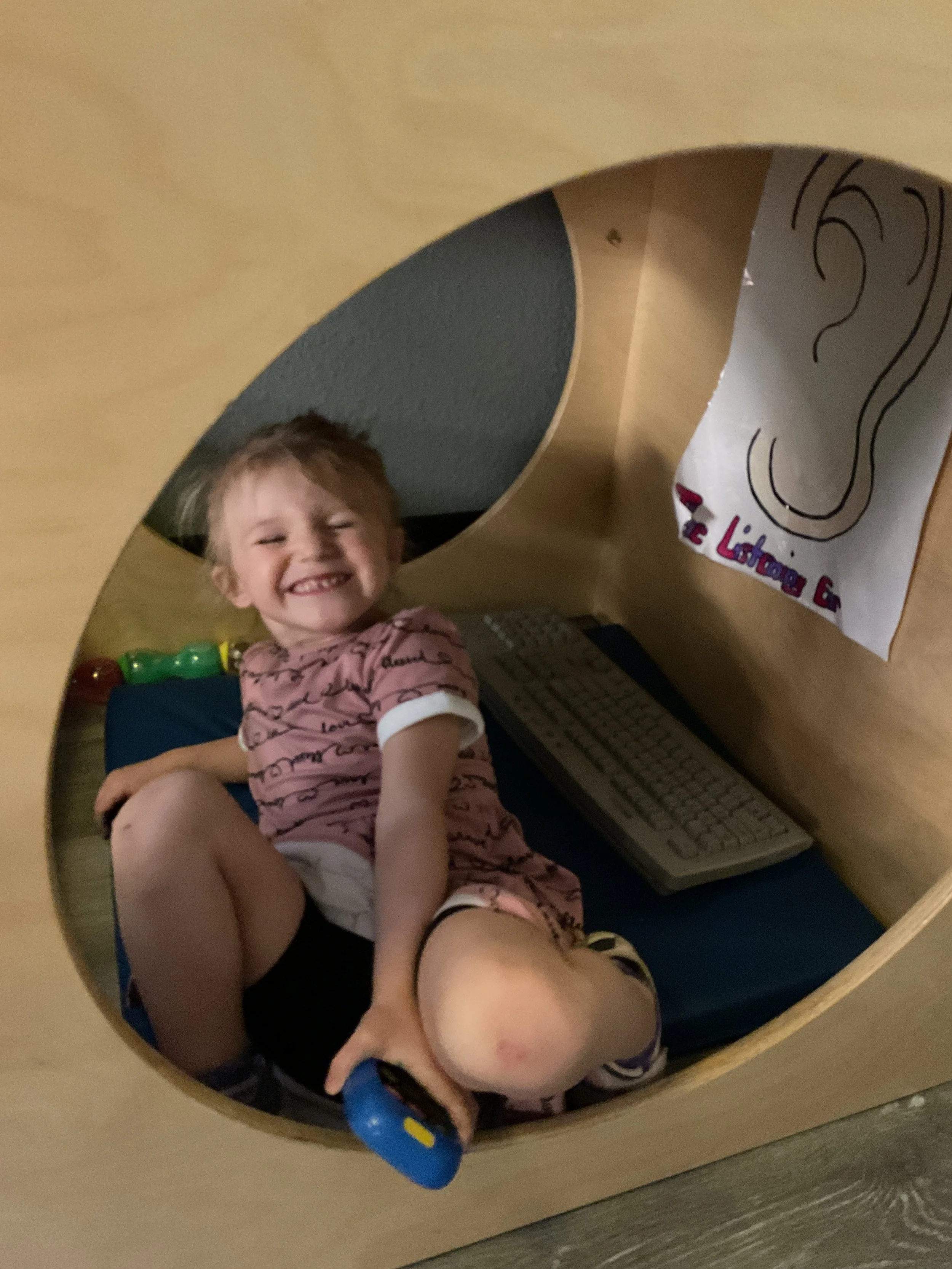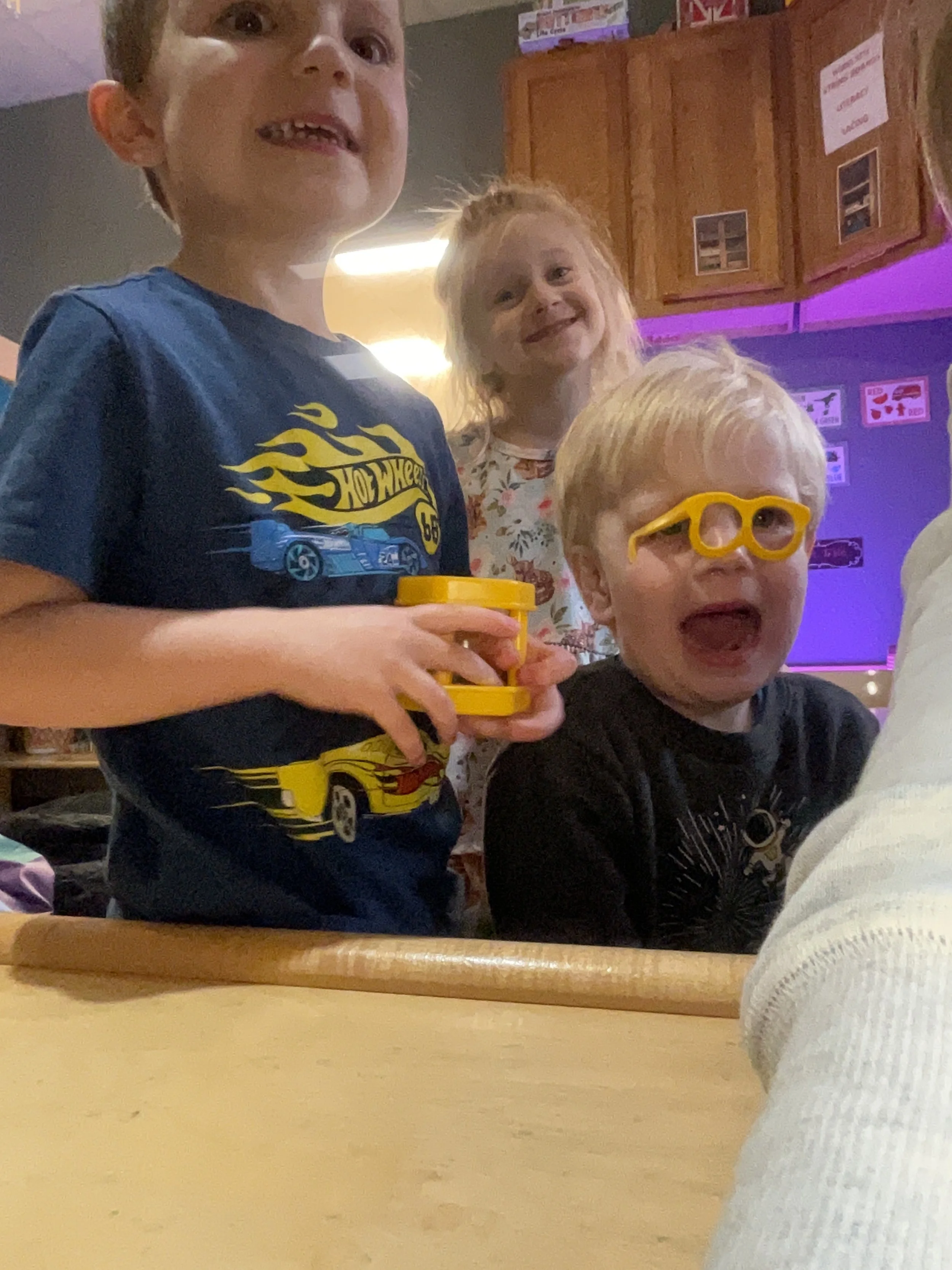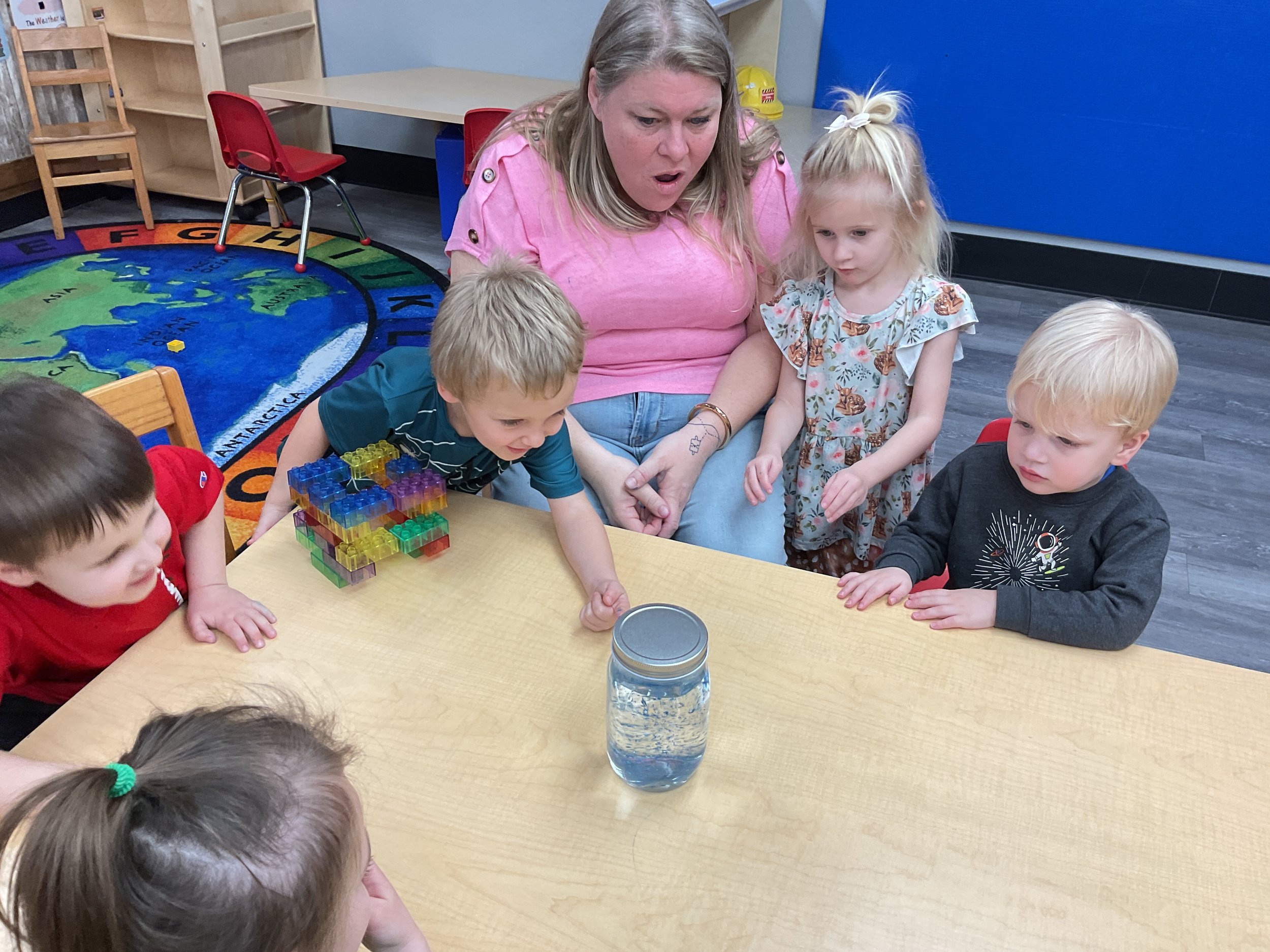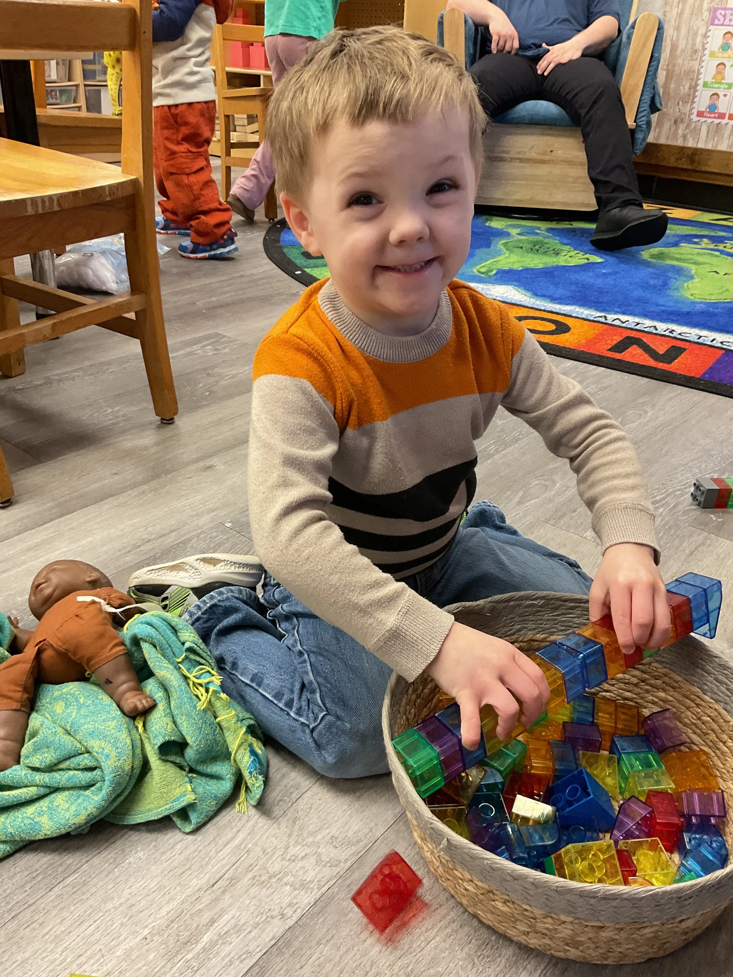 This morning, we read the book All Kinds of People written by Shelly Rotner and Shelia M. Kelly. During our music and movement time, we sang in French! We sang Frere Jacques and we worked on our rhythm with rhythm sticks. Then, during our math and cognition lesson, we looked at pictures of people, animals, and food from around the world. Next, for our science and sensory lesson, we made a tornado in a jar. We added glitter so we could see how fast the water was spinning. Finally, for our literacy and fine motor lesson, we used chopstick to paint with!
