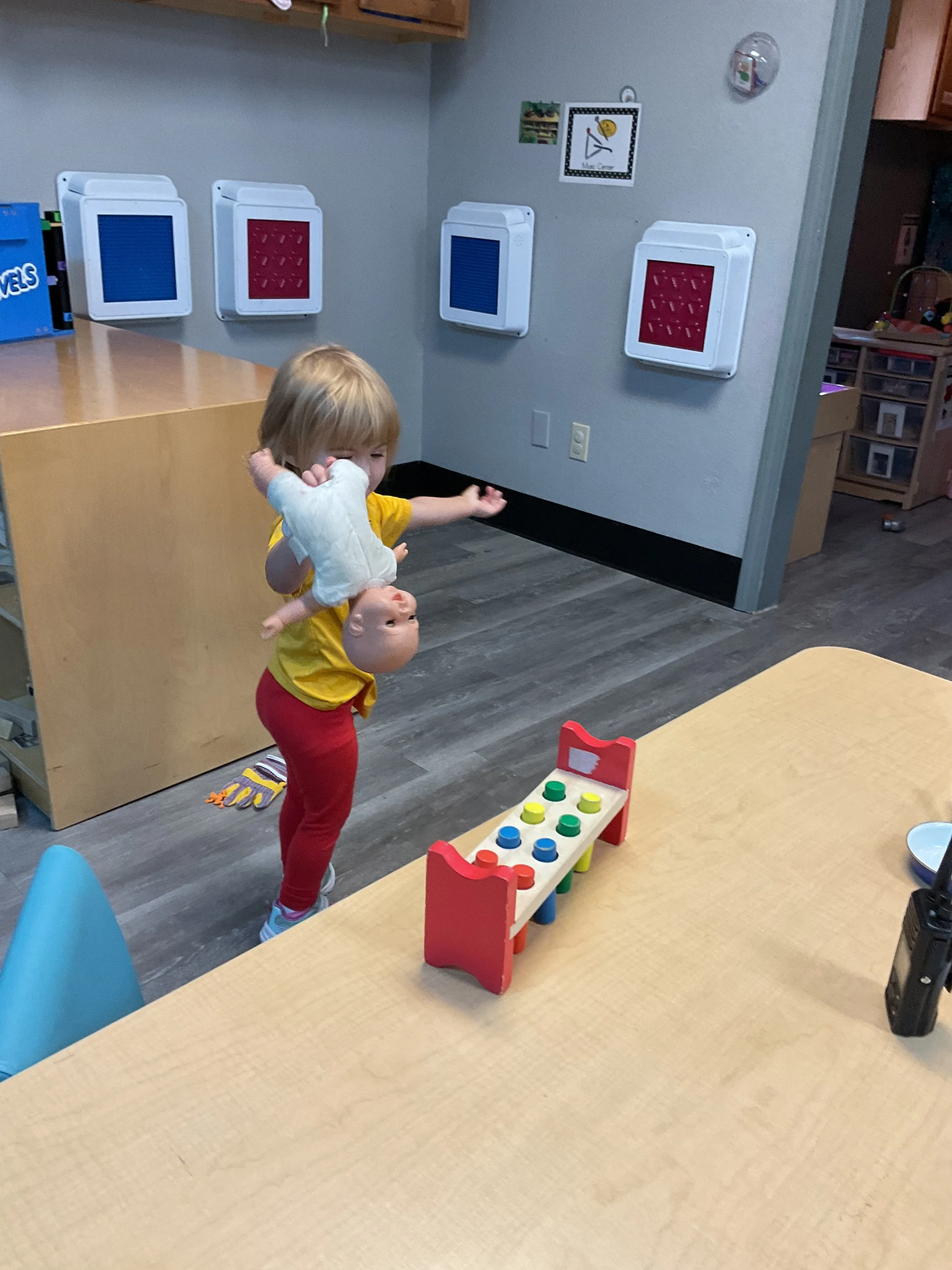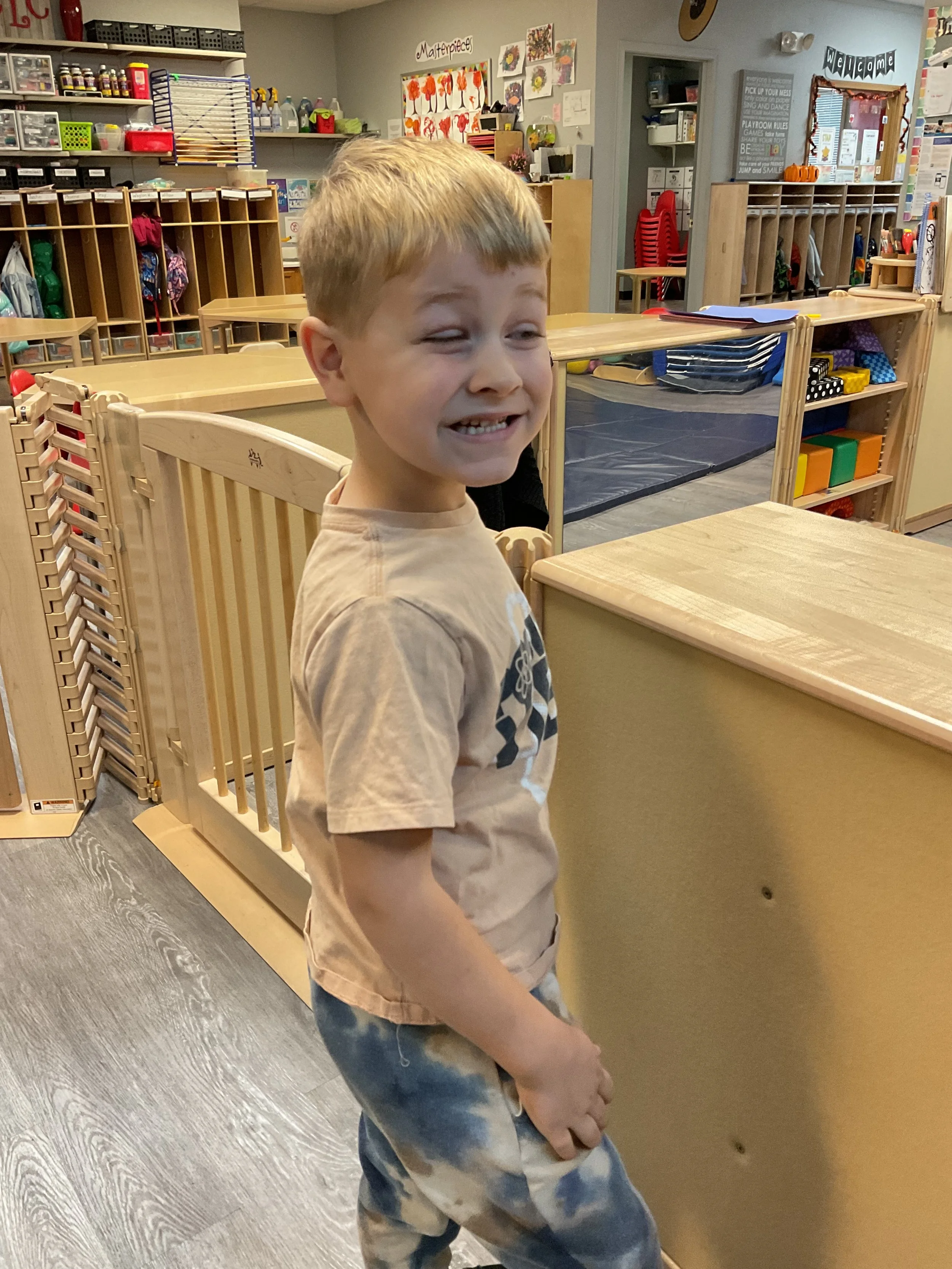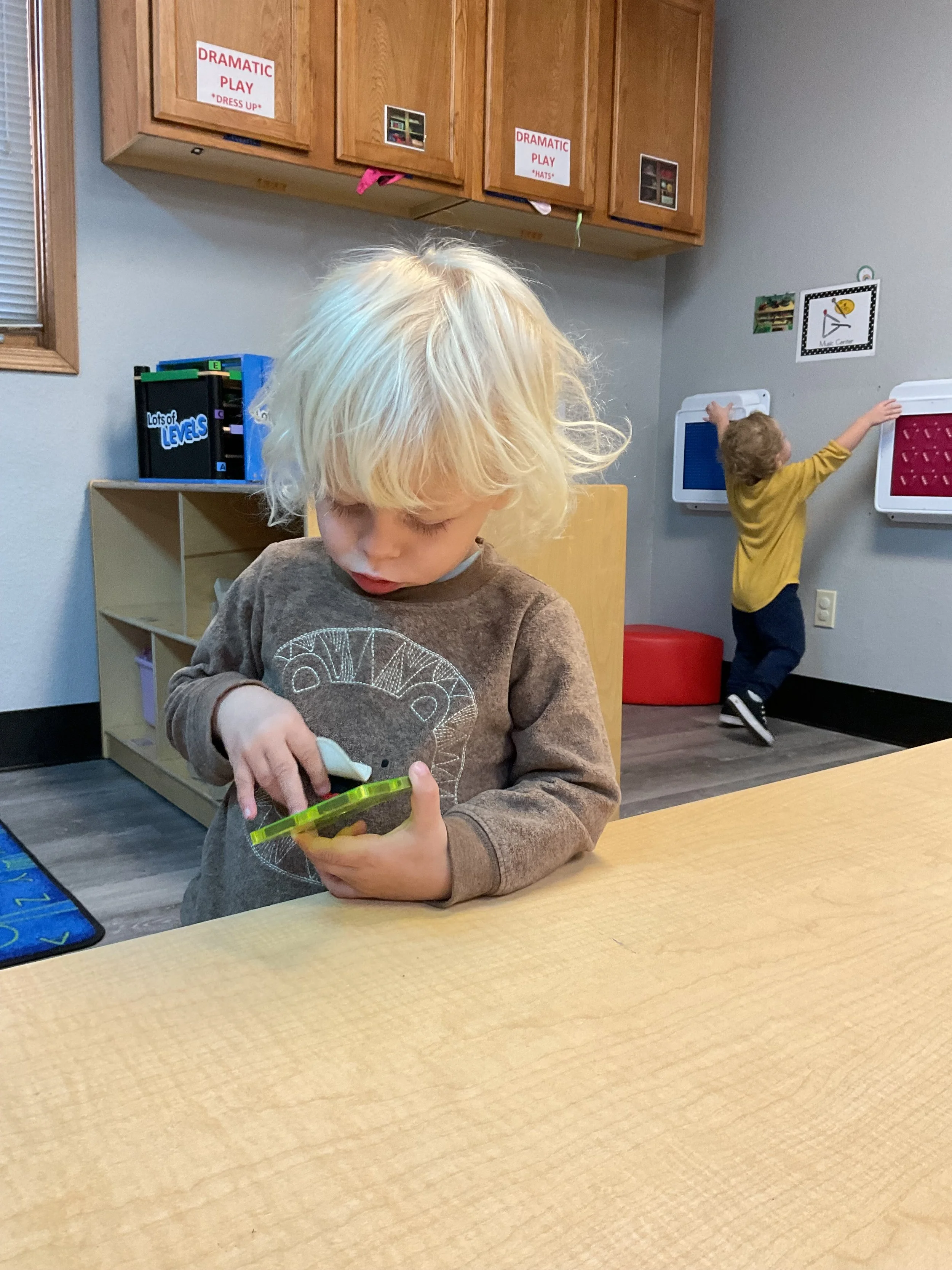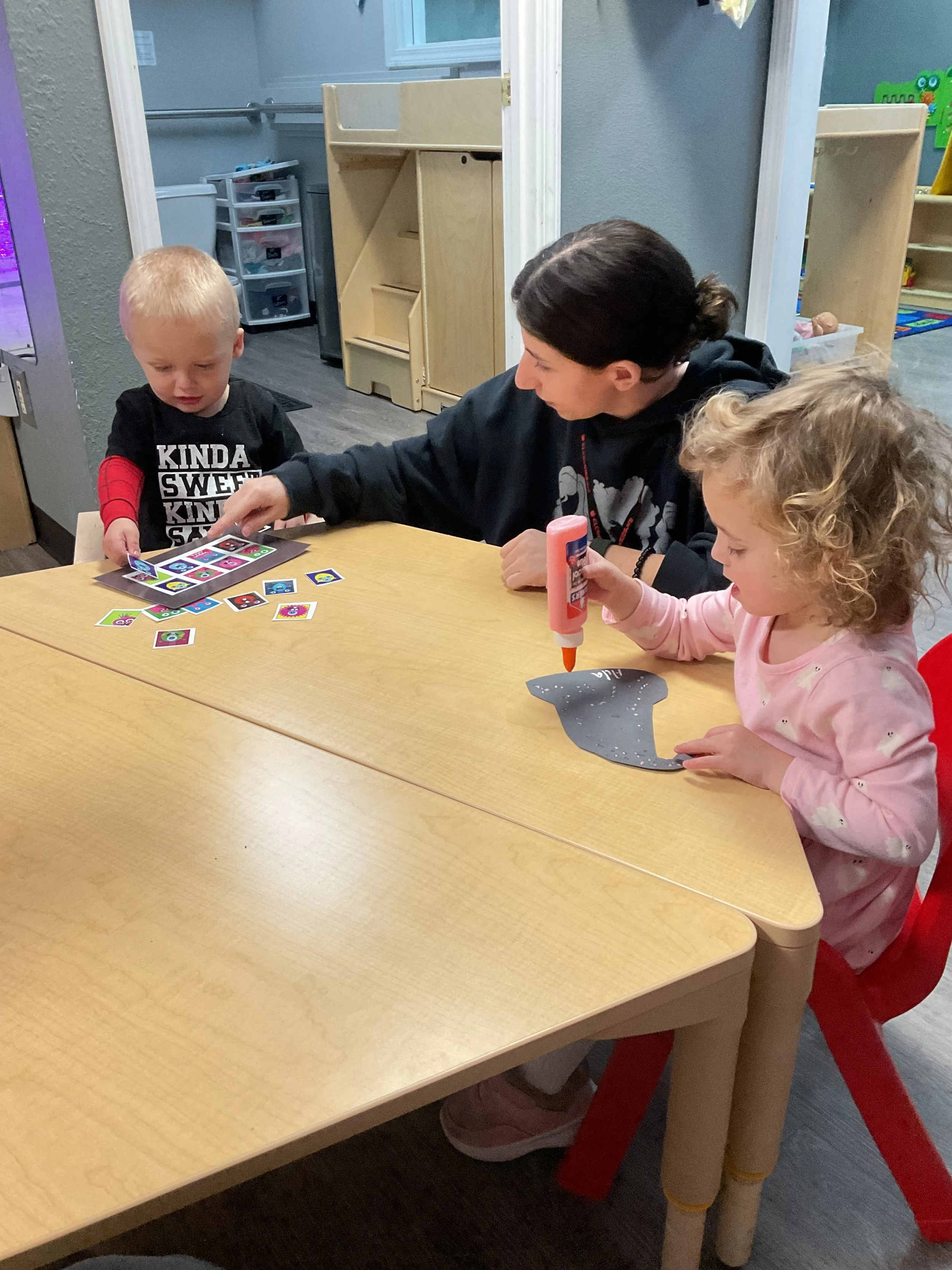 Happy Monday! This week we are learning all about Halloween. Today we read the book Monster Be Good! By Natalie Marshall. This book is about a child who is in charge of a little monster. It tells the child what to do if the monster is hungry, tired, grumpy, etc. For our math and cognition activity we matched together different monster cards. During science and sensory time we decorated a witches hat using colorful glue. Lastly, for our fine motor and literacy time we traced our name with glue and used glitter to decorate them.
