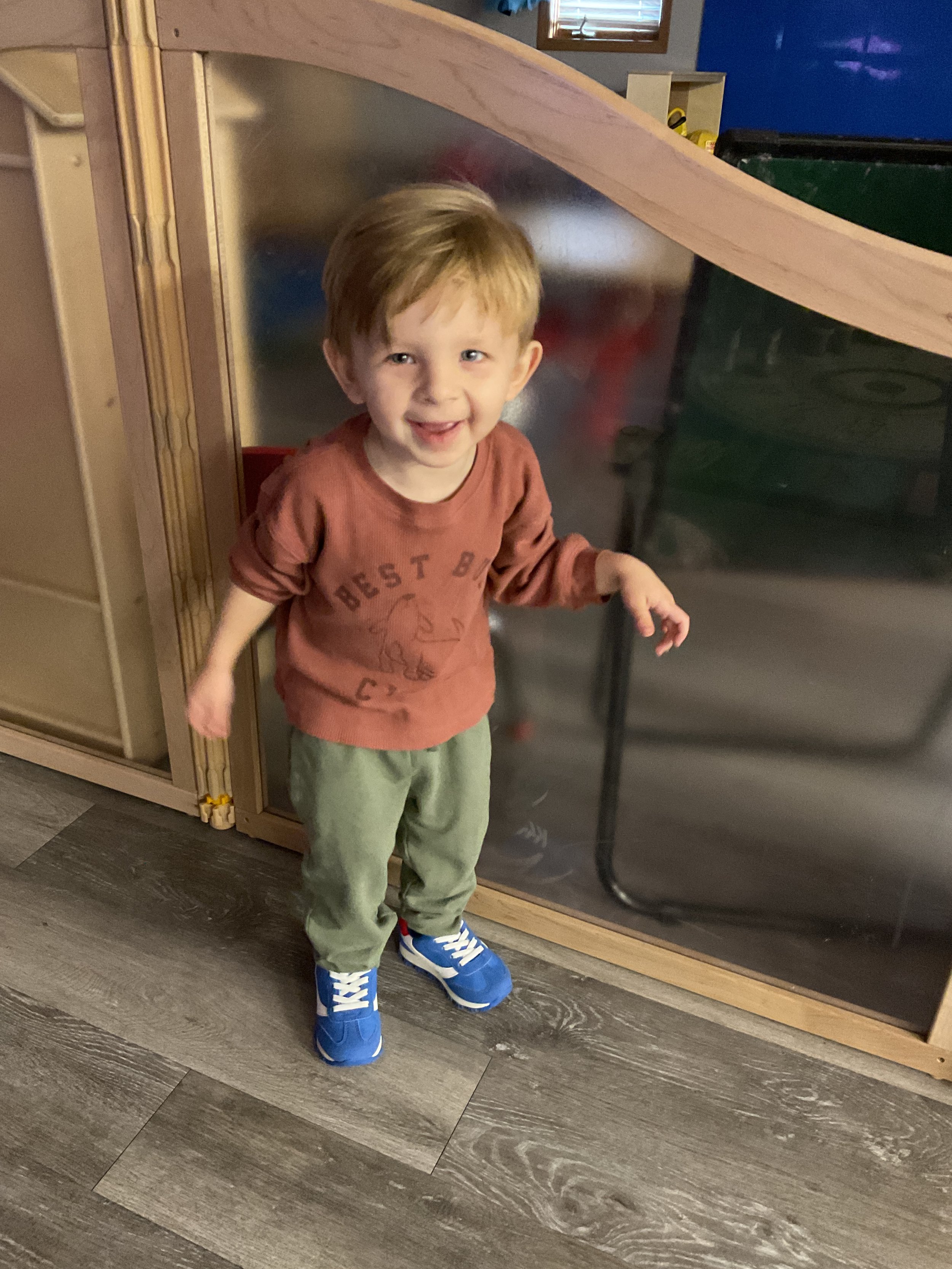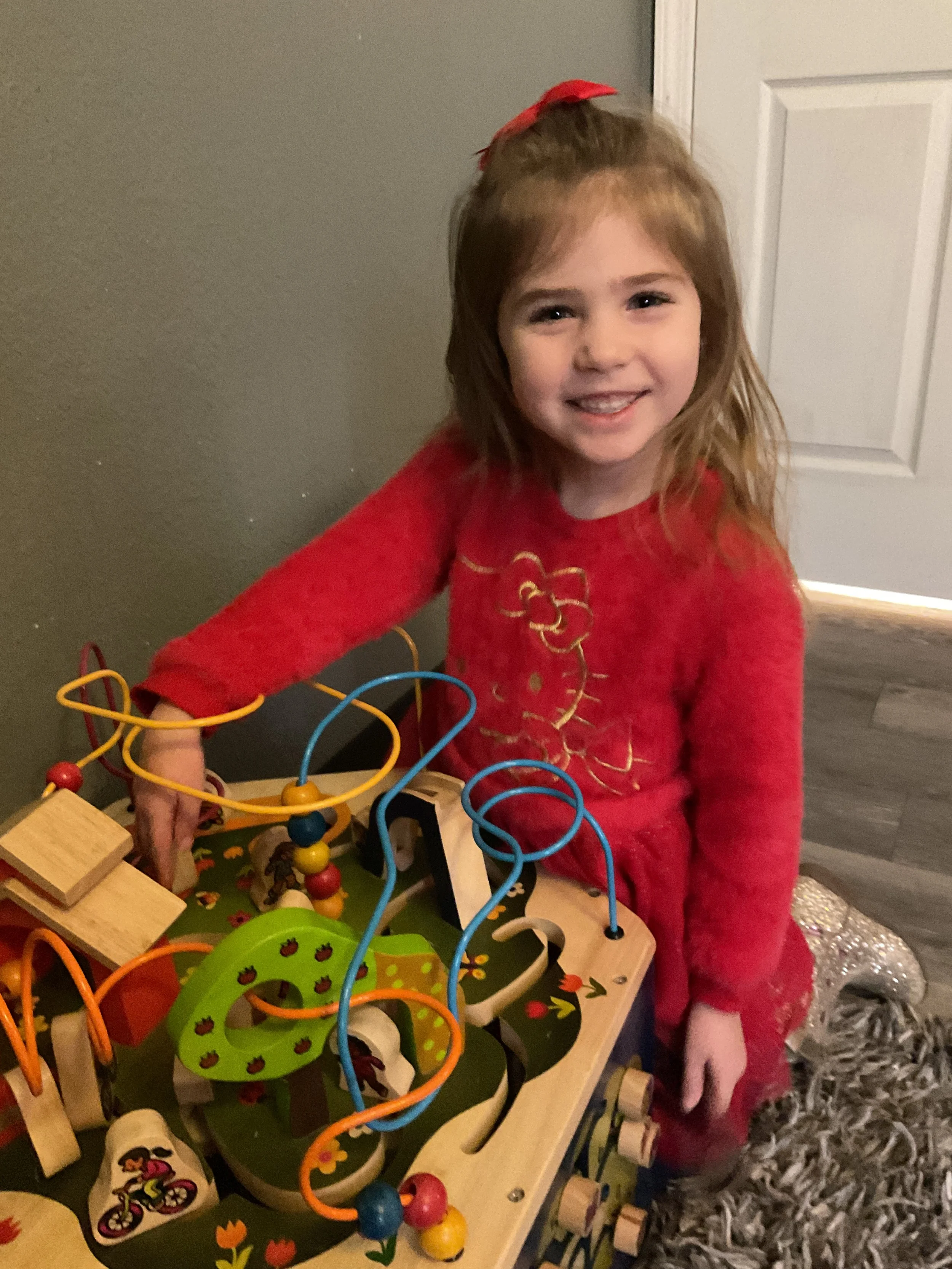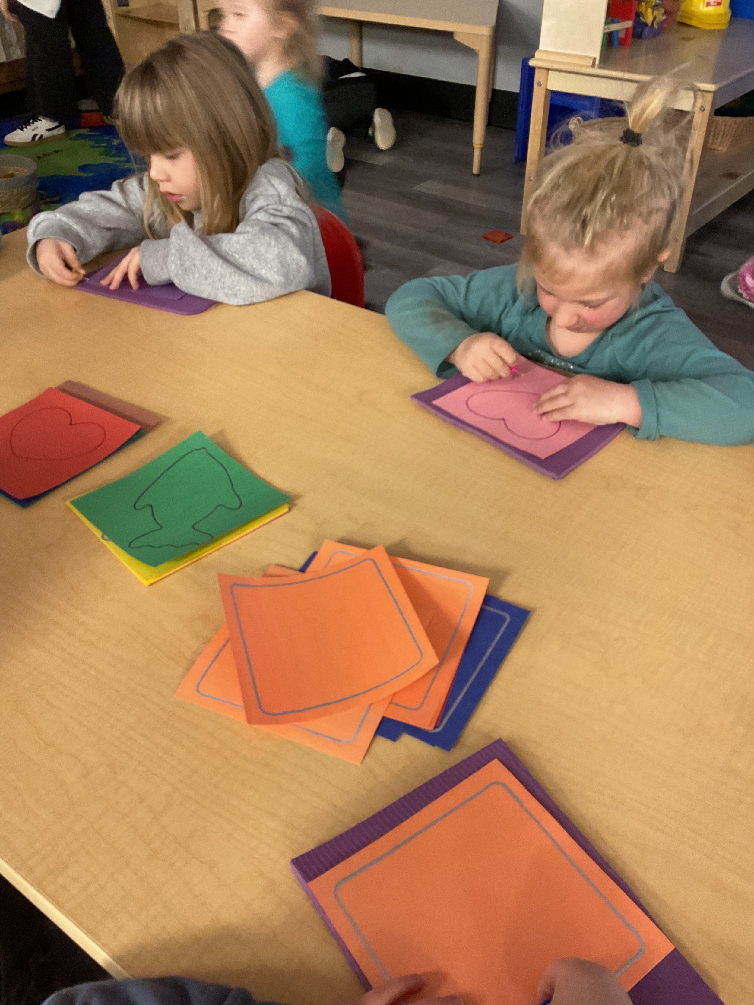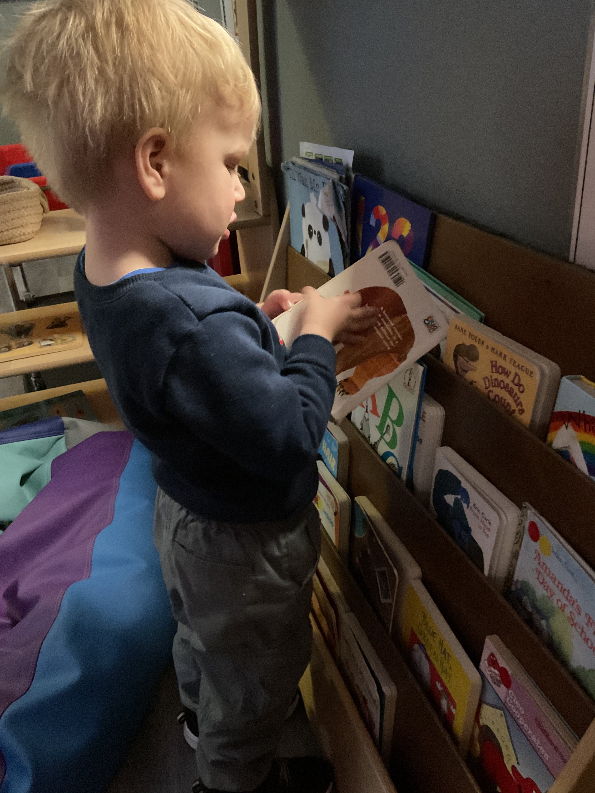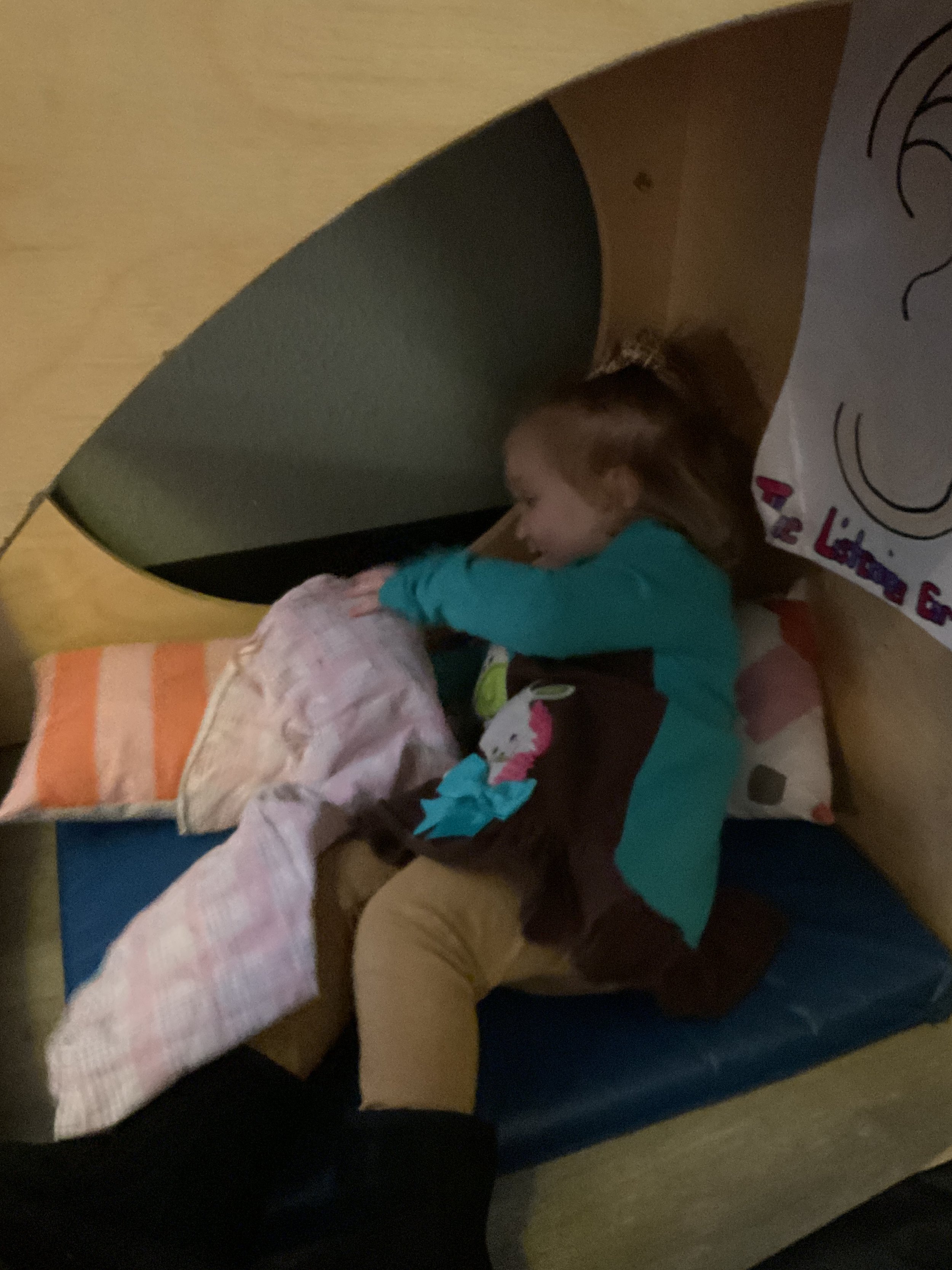 This morning, we read the book Chocolate Mud Cake written and illustrated by Maxine Lee. During our music and movement time, we started our day off with yoga. Then, during our math and cognition lesson, we sorted food by color. Next, for our science and sensory lesson, we filled our sensory bin with all kinds of play food. Finally, for our literacy and fine motor lesson, we worked on our 3 finger grips by doing a pin pushing.