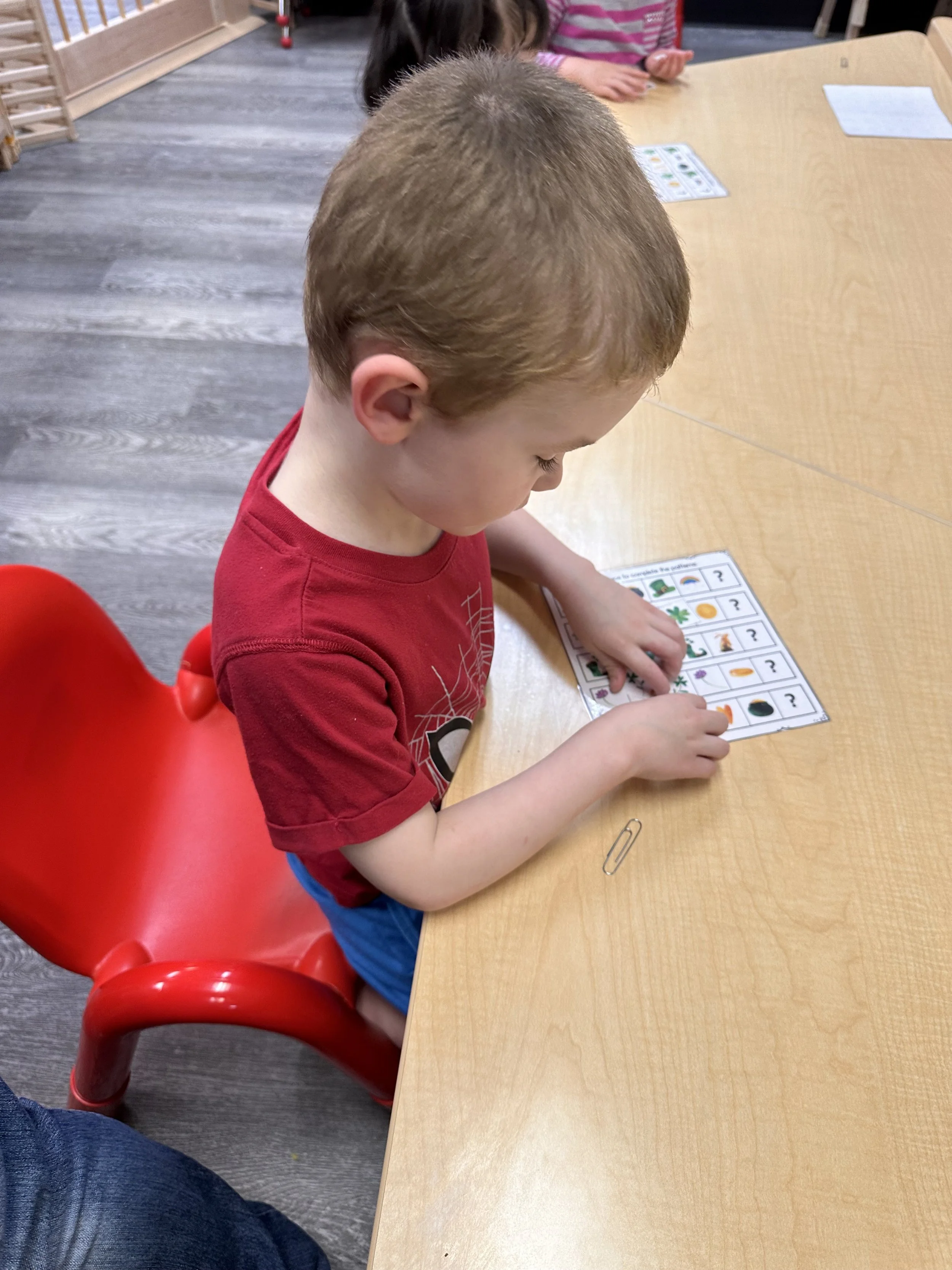 Today we read the book Looking for Leprechauns by Sheila Keenan. This book told us how to properly capture a leprechaun and steal his gold. For our math and cognitive activity we matched together St Patricks cards. During science and sensory time we used play-doh to make four-leaf clover shapes. Lastly, for fine motor and literacy time we practiced our cutting skills.