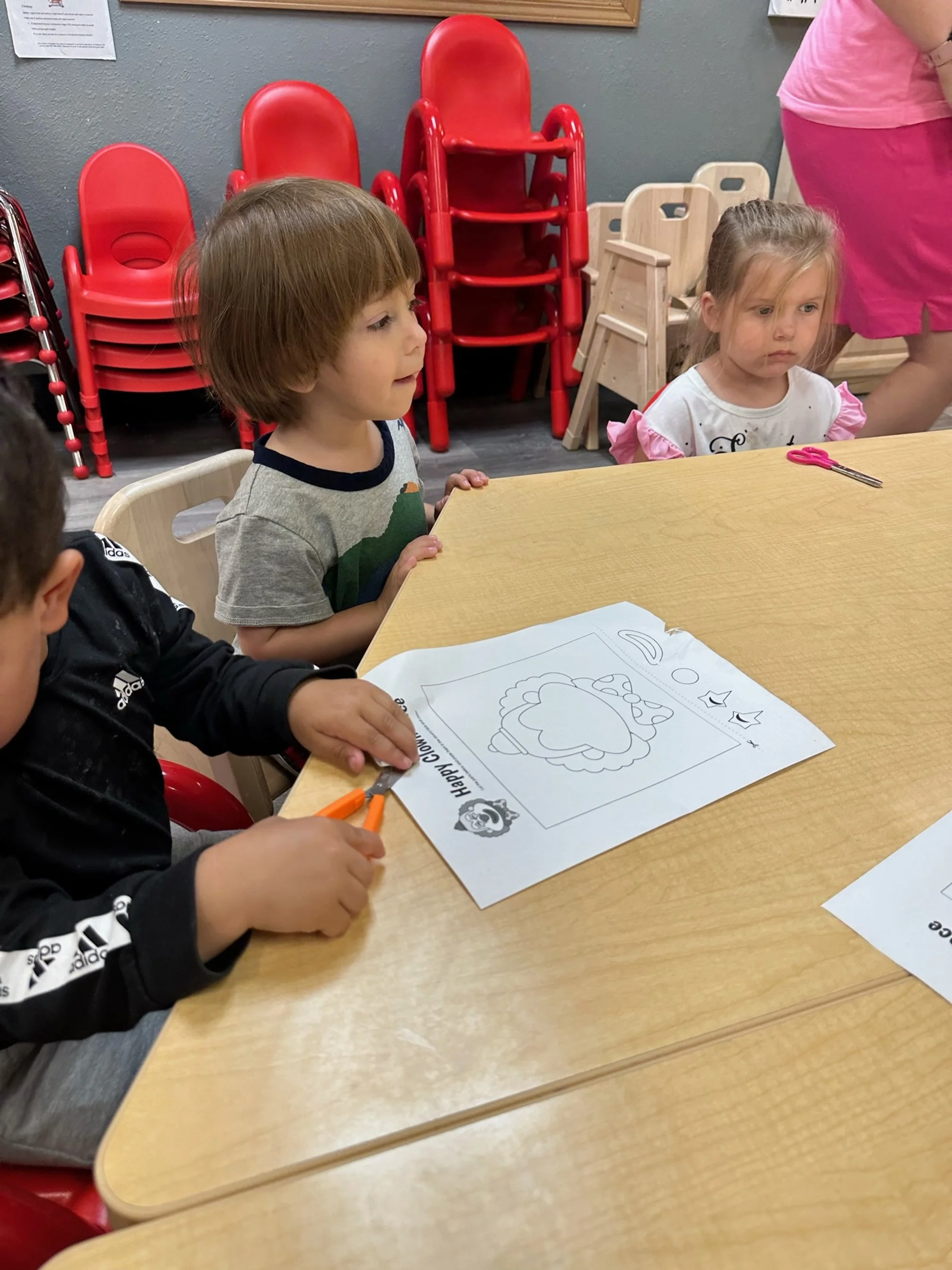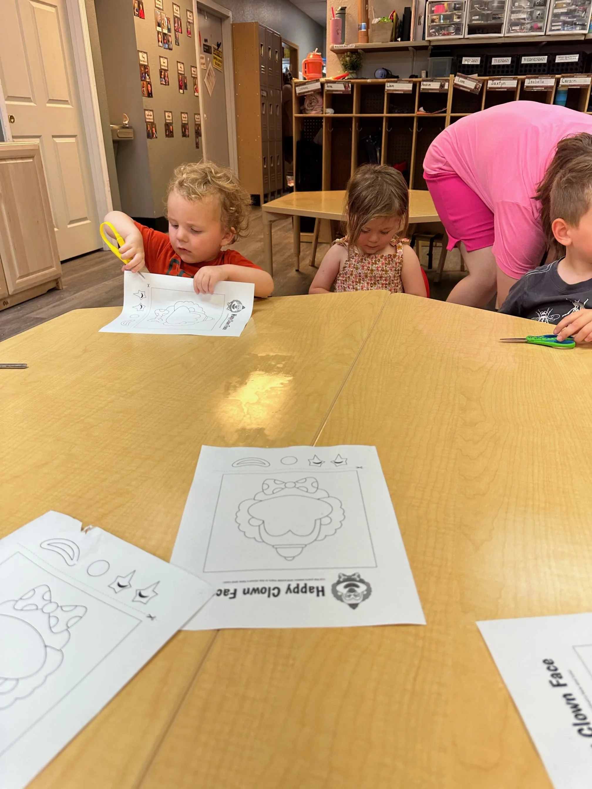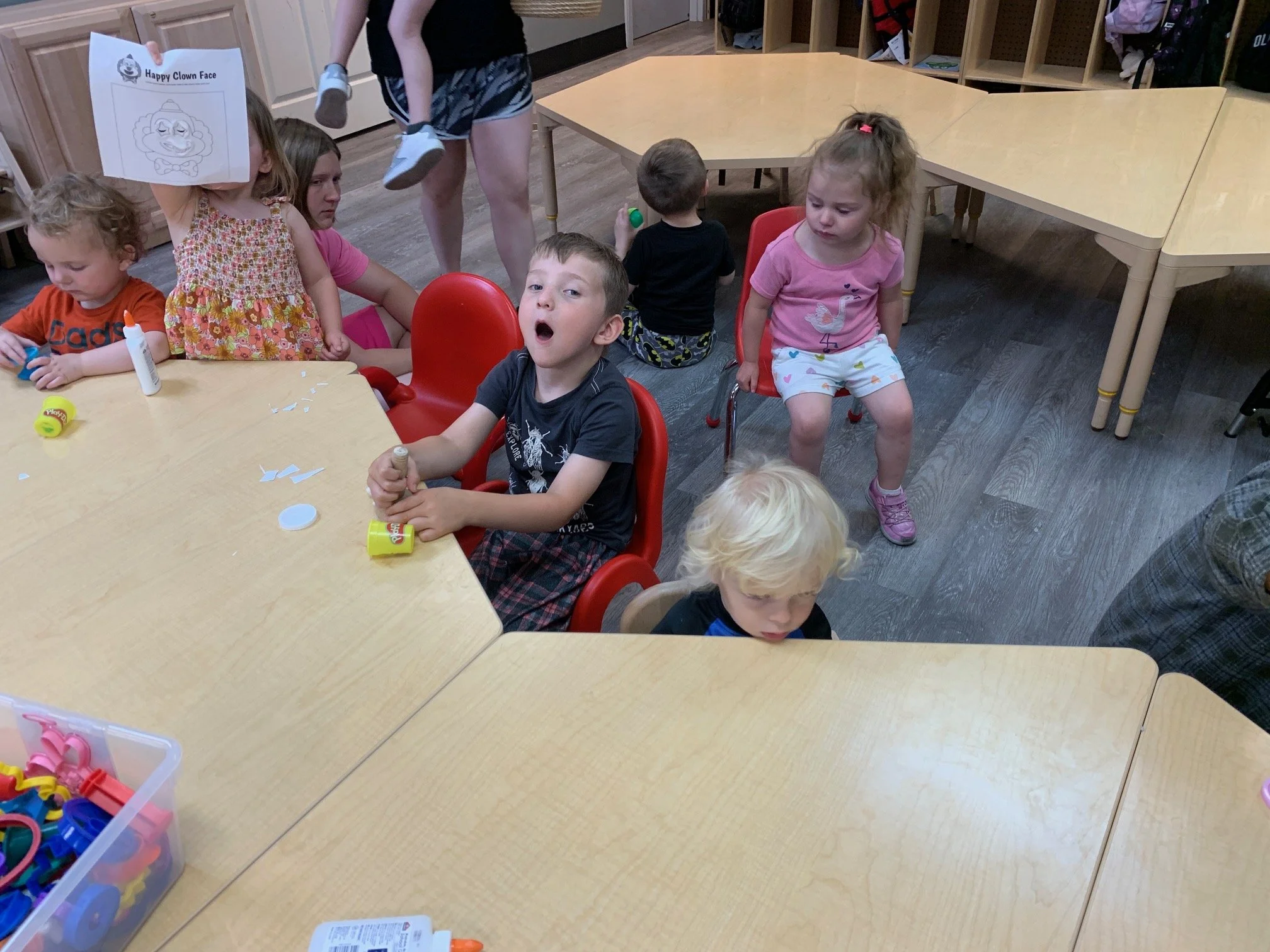 Today we read The Circus Ship by Chris Van Dusen. In this book there are a bunch of different circus animals and circus acts all on a cruise ship. The ship sank and they had to save all of the animals from drowning. Today for our math and cognition activity we played with circus patter cards and tried to figure out which circus event came next in the pattern. For sensory and science we played with play dough! Then for our literacy and fine motor activity we used our cutting skills to cut out parts of a clowns face and glue them onto the clowns face!