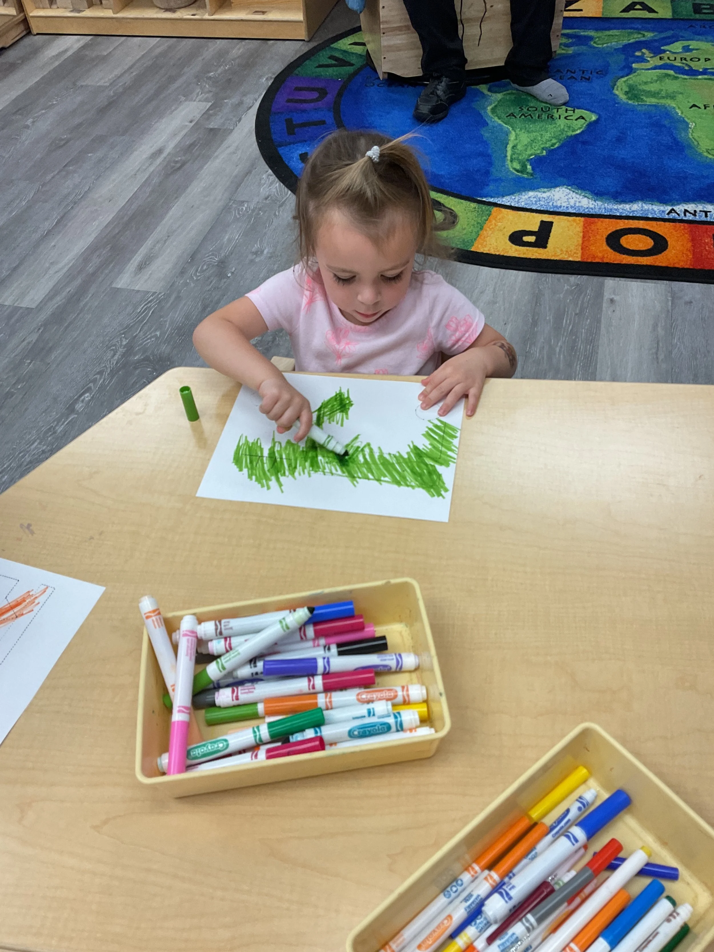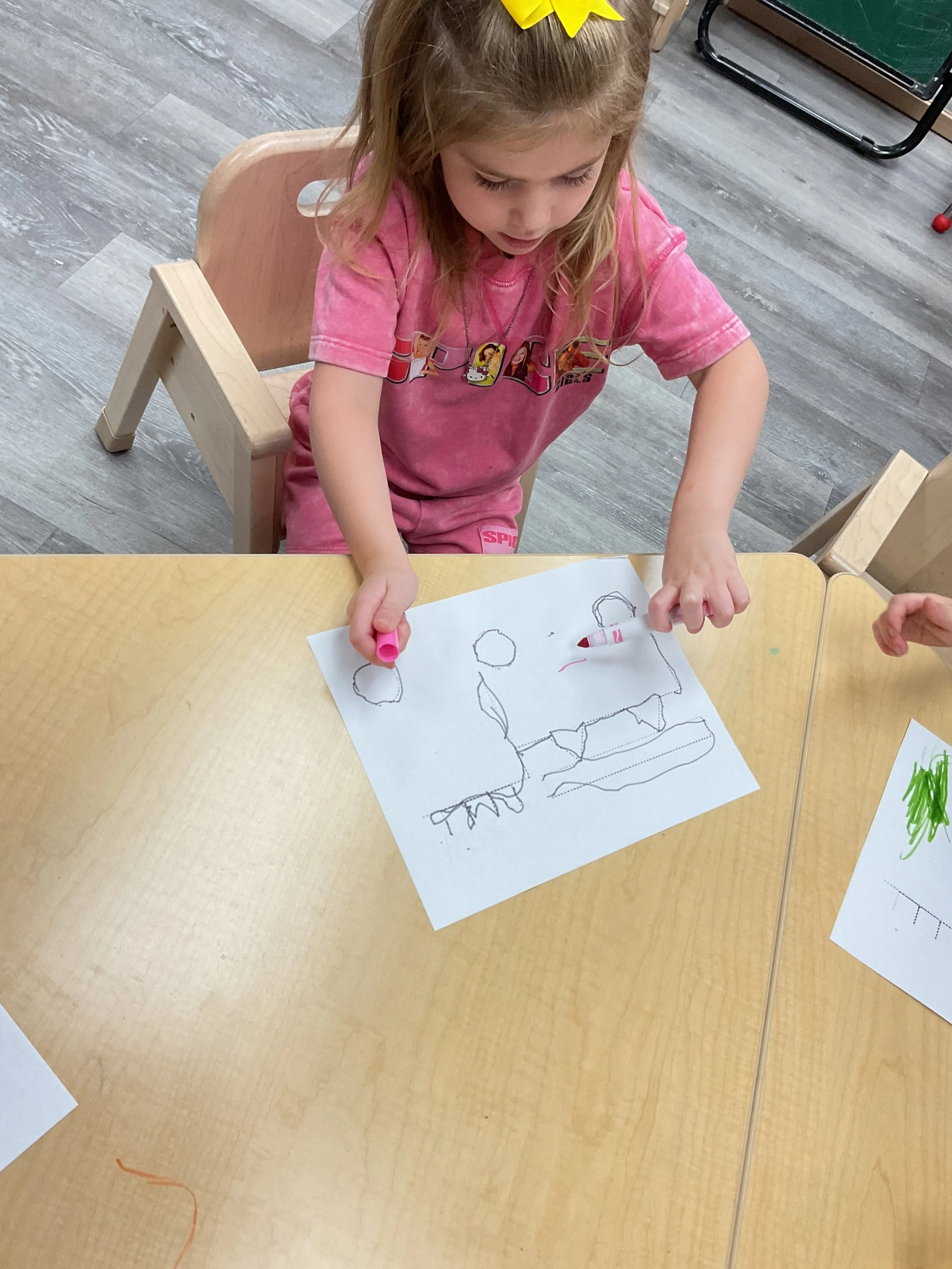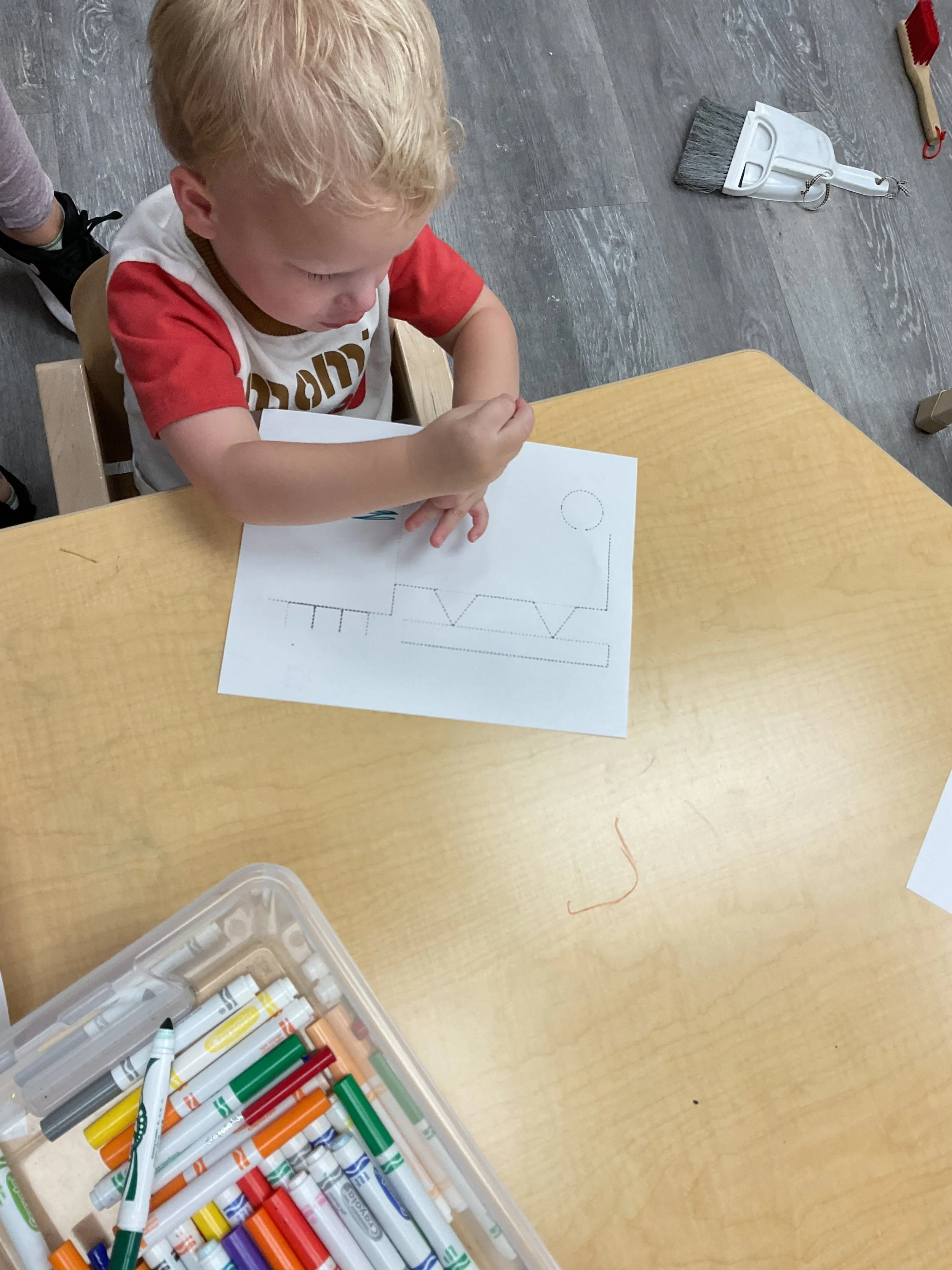 Today we read the book Career Day written by Anne Rockwell and illustrated by Lizzy Rockwell. During our music and movement time, we sang the song “Hurry, Hurry, Drive the Firetruck” and we pretended to be other community helpers. Then, during our math and cognition lesson, we sorted items that community helpers use to help keep us safe. Next, during our science and sensory lesson, we traced and colored a firetruck! Finally, for our fine motor and literacy lesson, we practiced tracing our names.