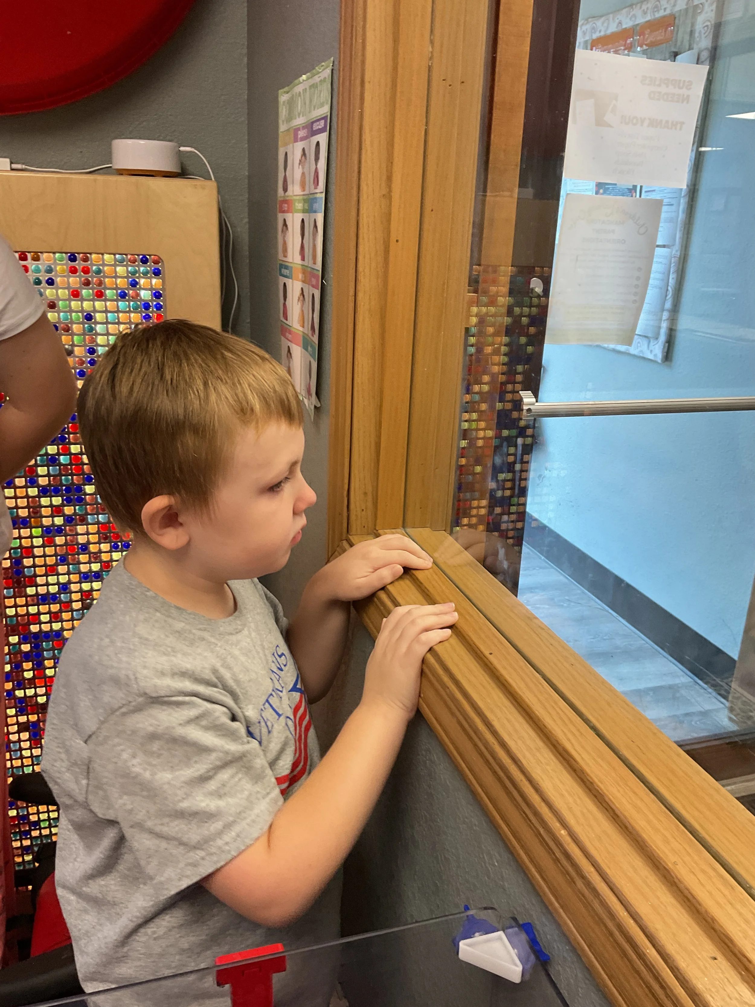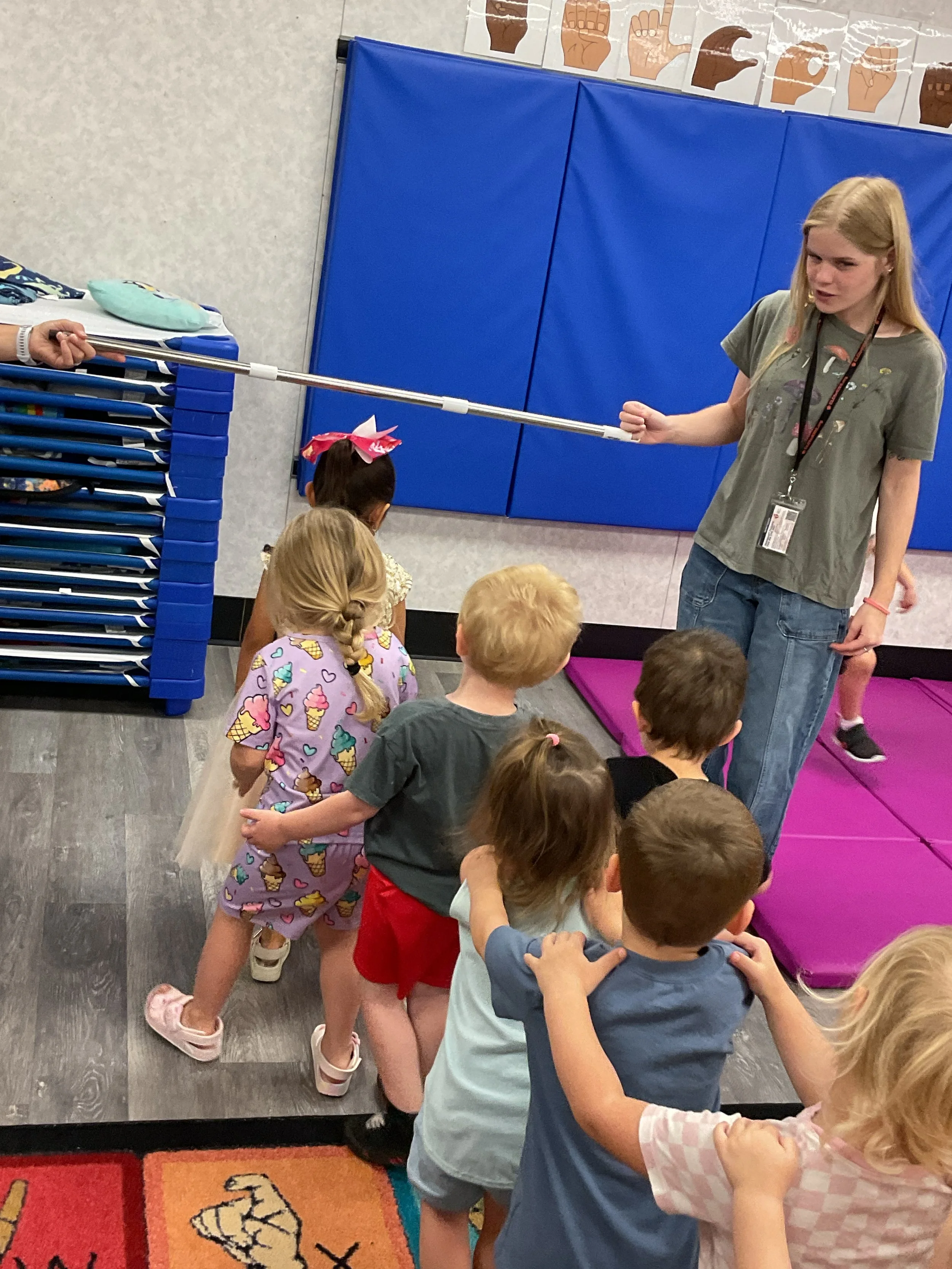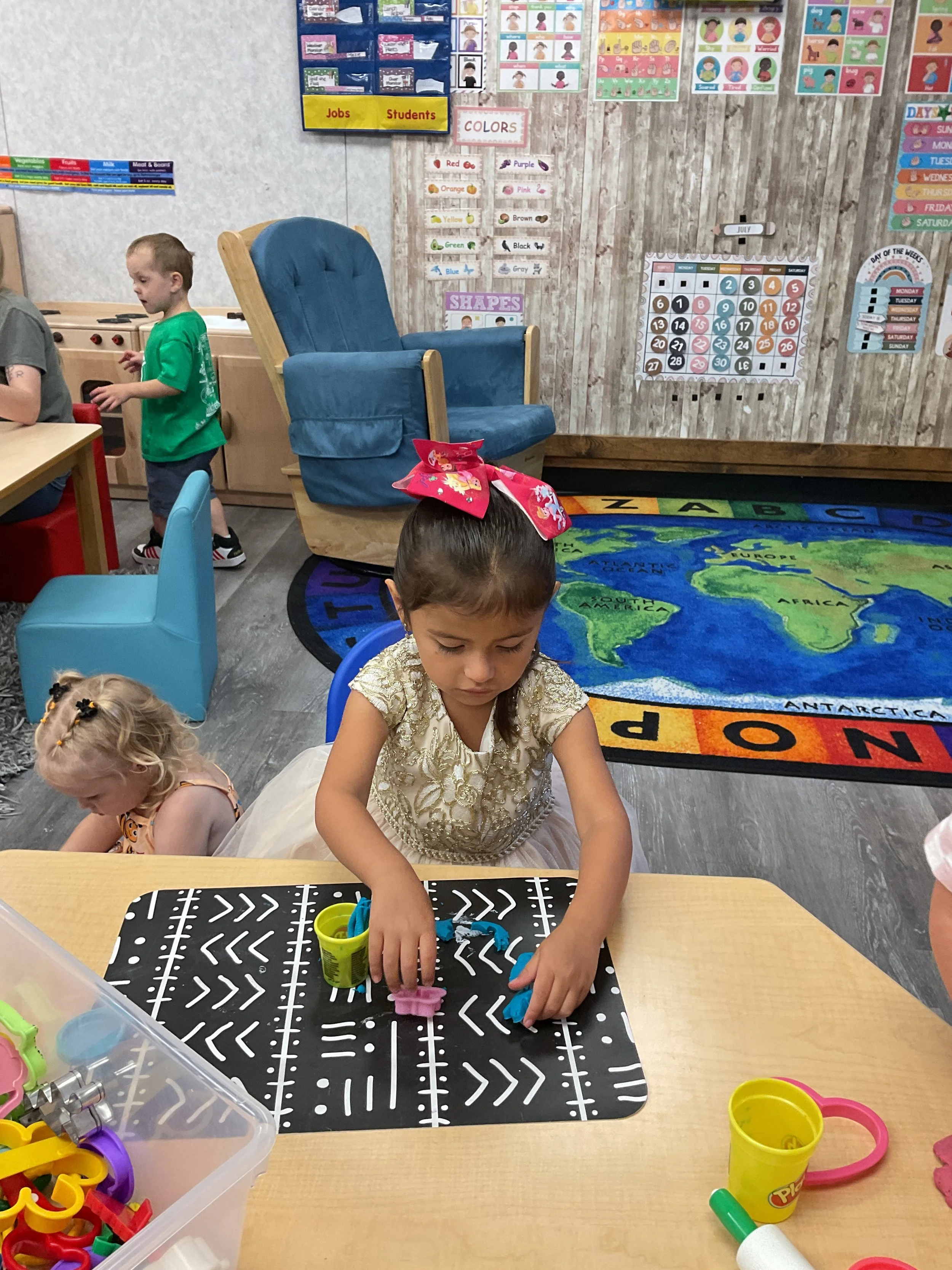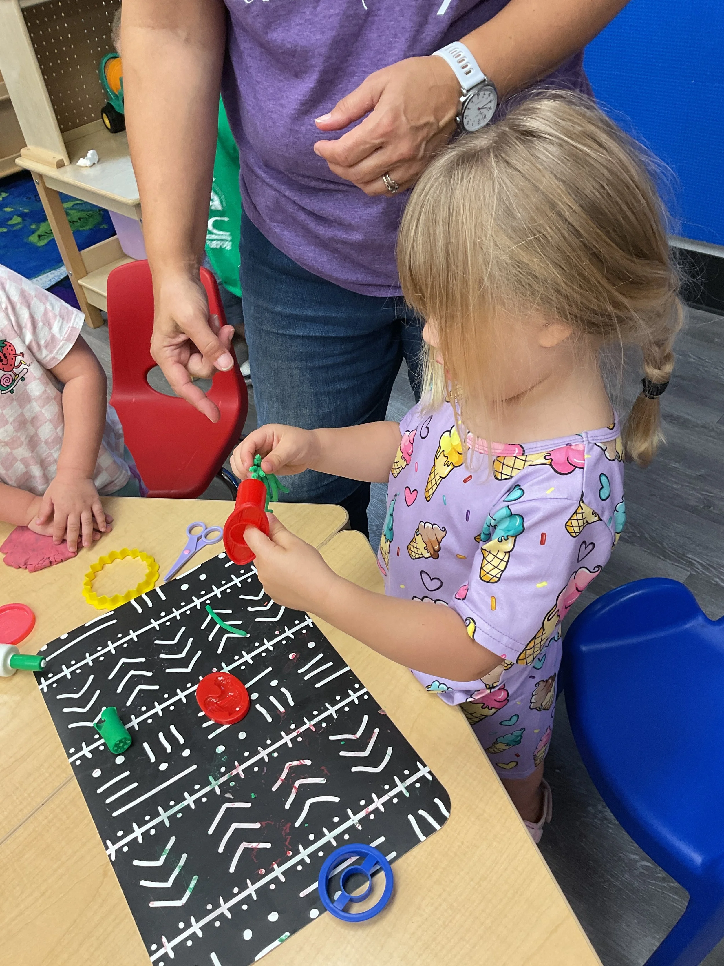 This morning, we read the book Big Little written by Leslie Patricelli. During music and movement time, we played the Limbo! During our math and cognition lesson, we sorted day and night pictures. For our science and sensory lesson, we used playdough to make happy and sad faces. Finally, during our fine motor and literacy lesson, we practiced our cutting skills.