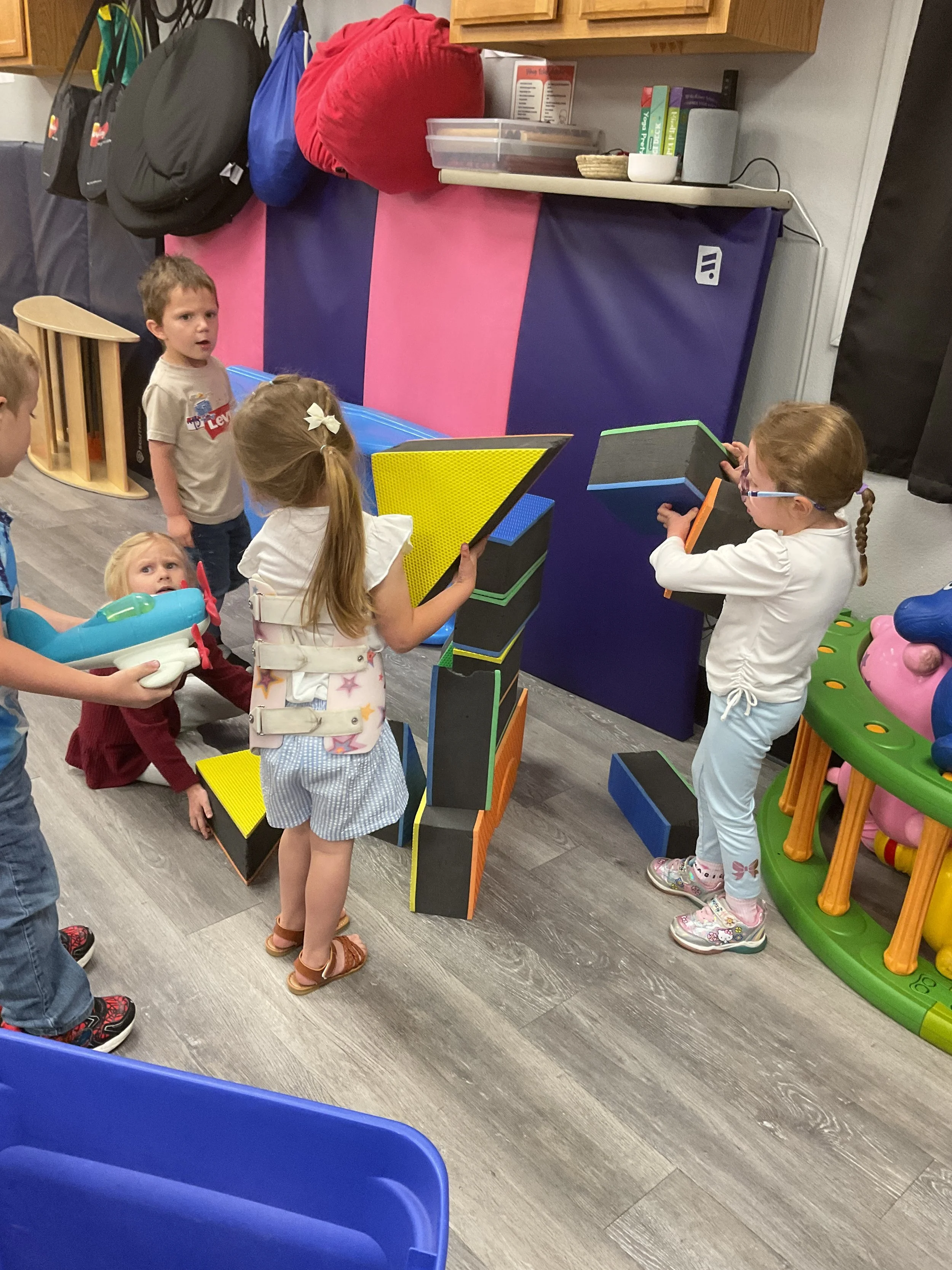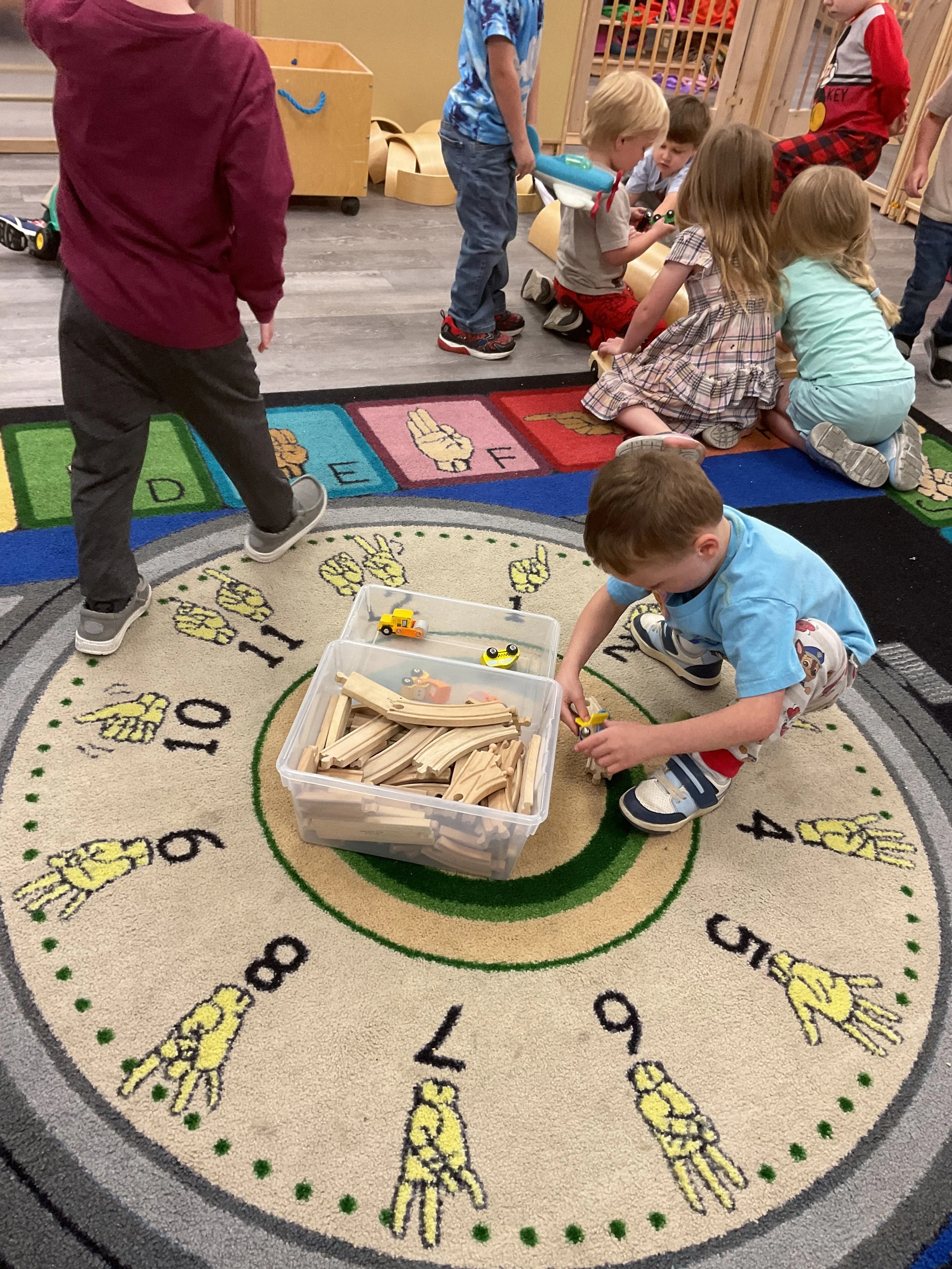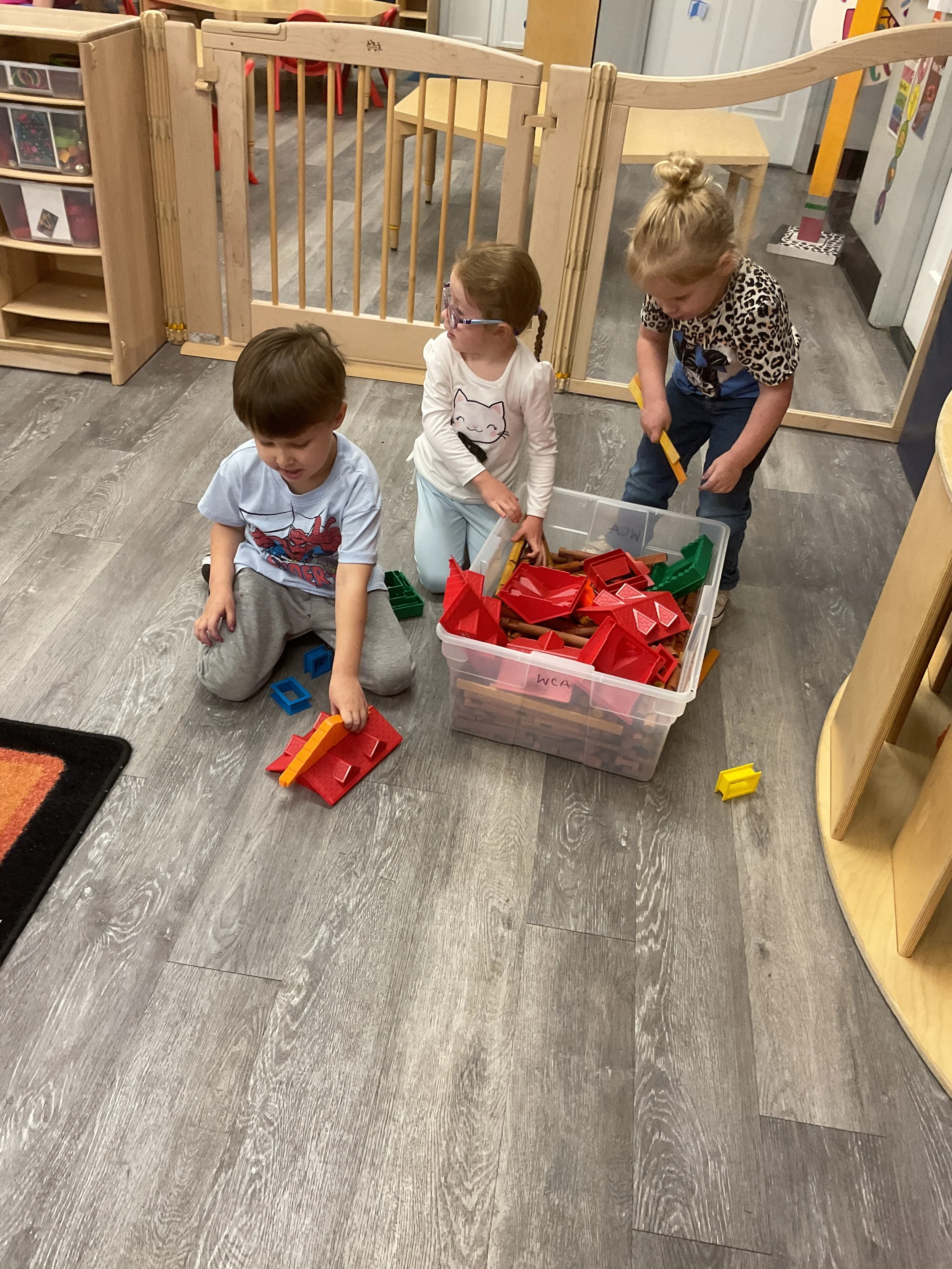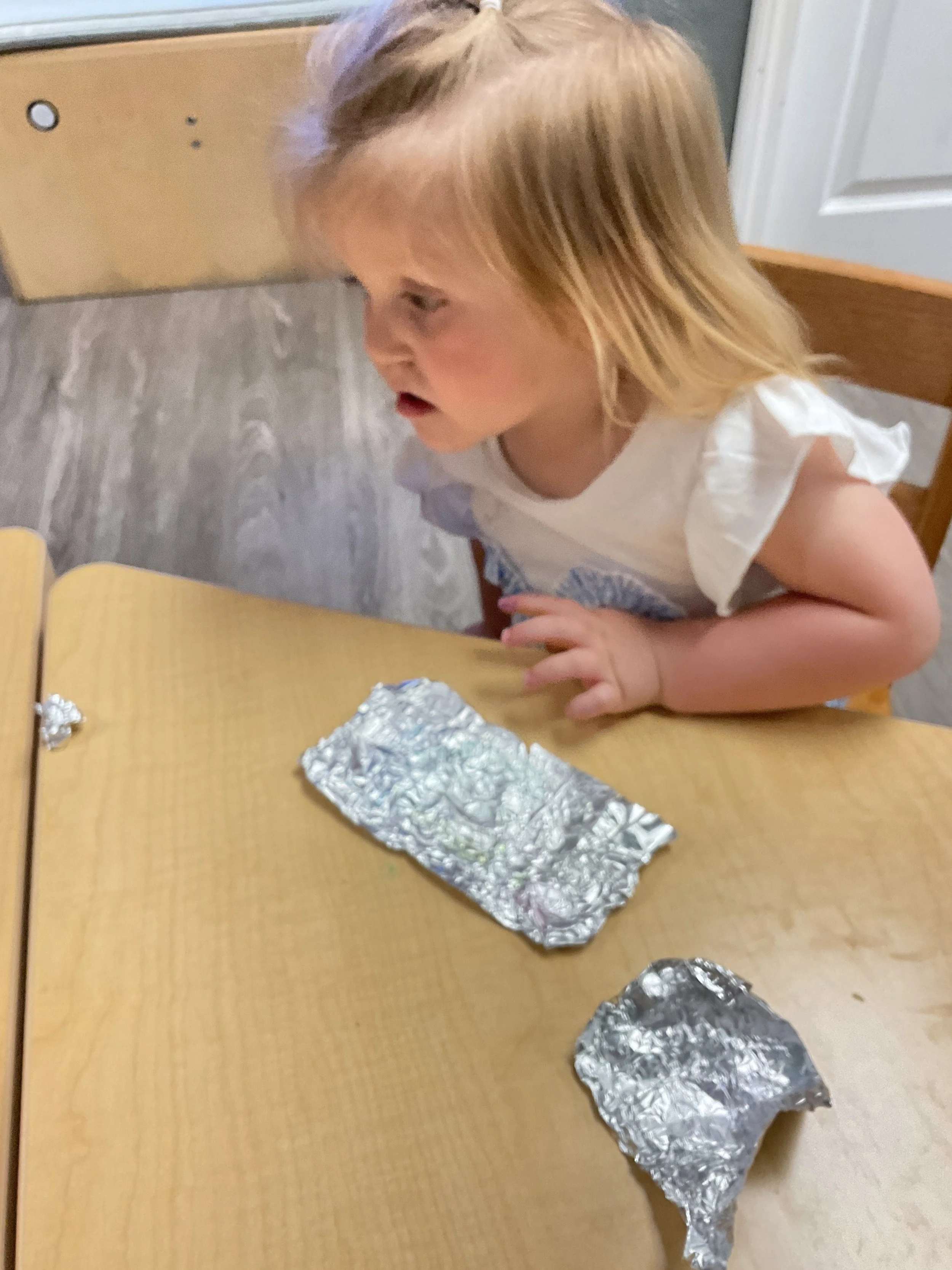 This morning, we read the book There Was an Old Women Who Swallowed a Chick written by Lucille Colandro and illustrated by Jared Lee. During our music and movement time, we used blocks of all shapes and sizes to build an Easter City. Then, during our math and cognition lesson, we matched Easter eggs by color. Next, for our science and sensory lesson, we used foil and markers to dye Easter eggs! We did this by coloring on the foil with washable markers, sprayed a bit of water on the foil, then we wrapped an egg in the foil as tightly as we could, then we unwrapped the egg, and we had beautifully dyed eggs. Finally, for our literacy and fine motor lesson, we colored an Easter egg coloring page.