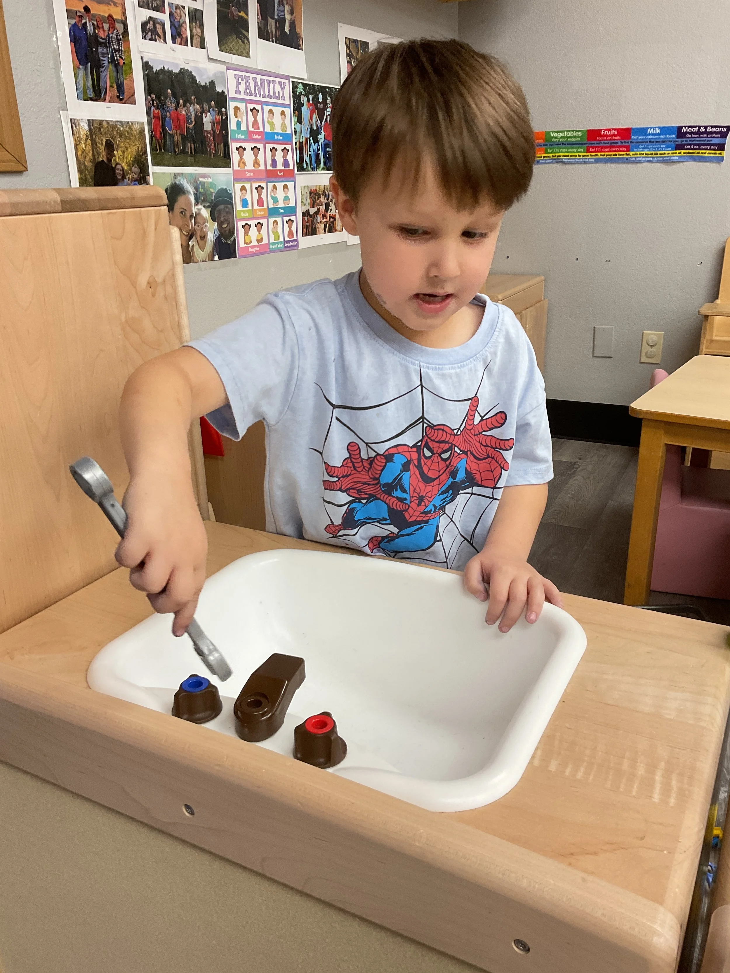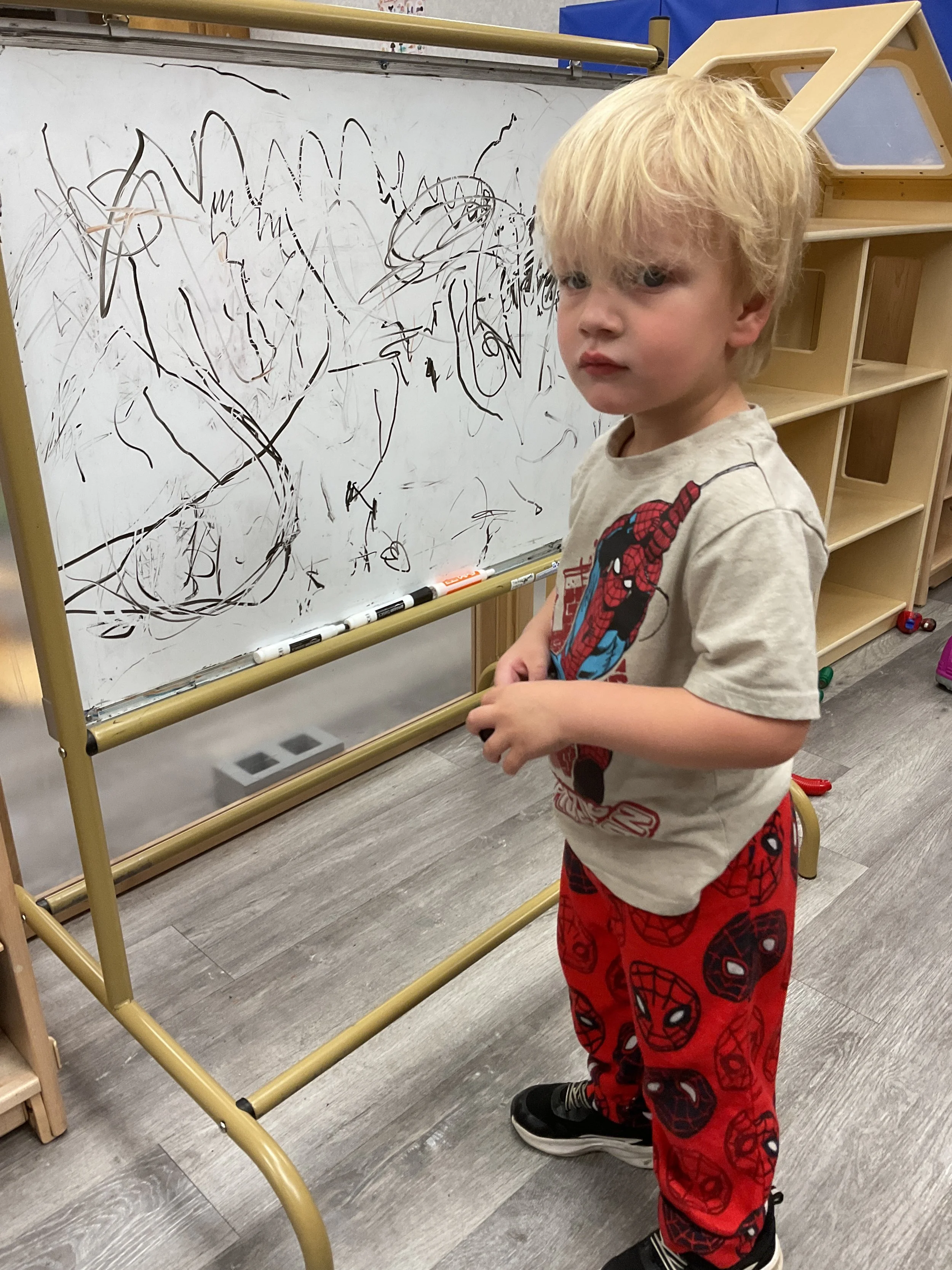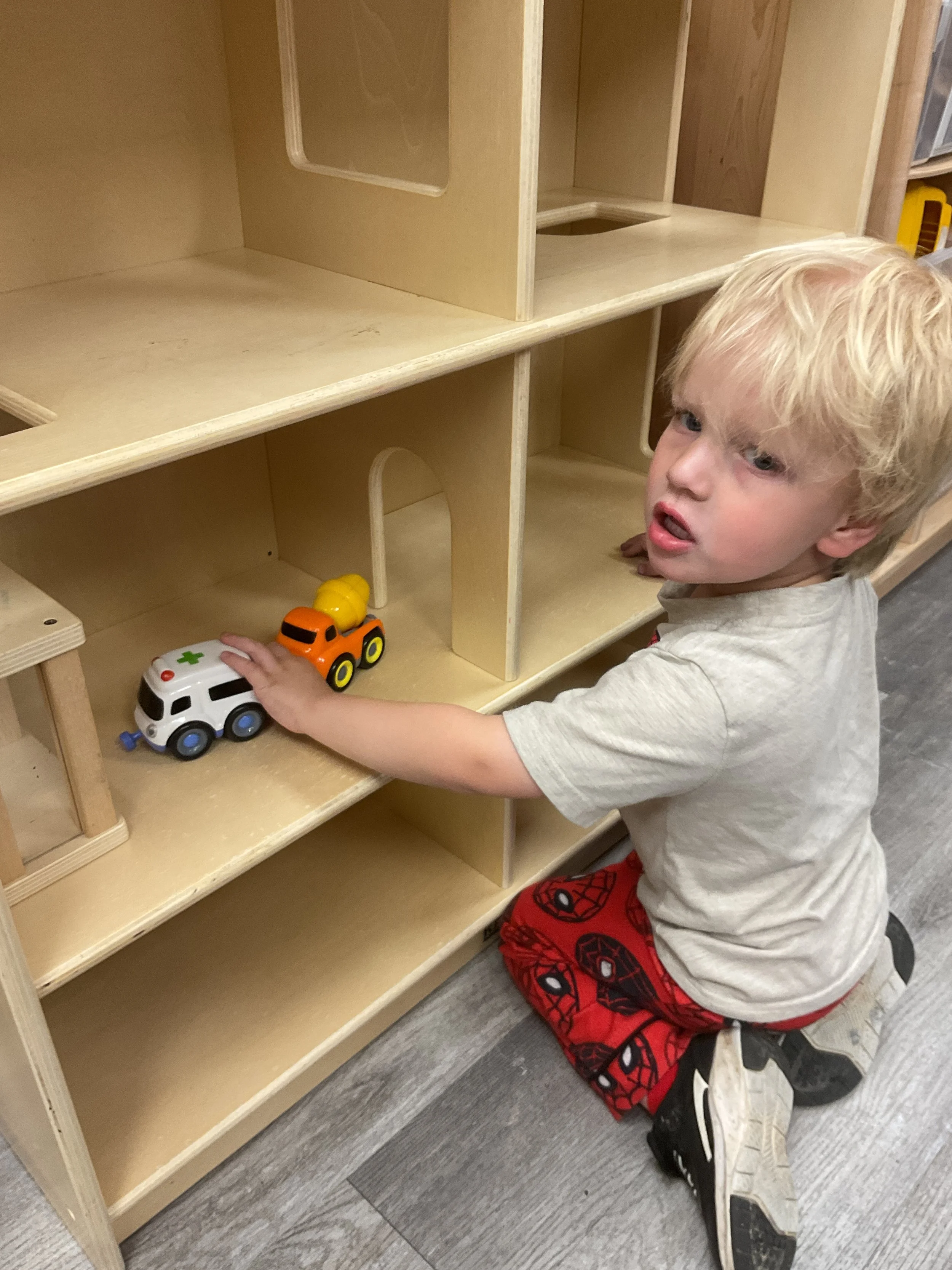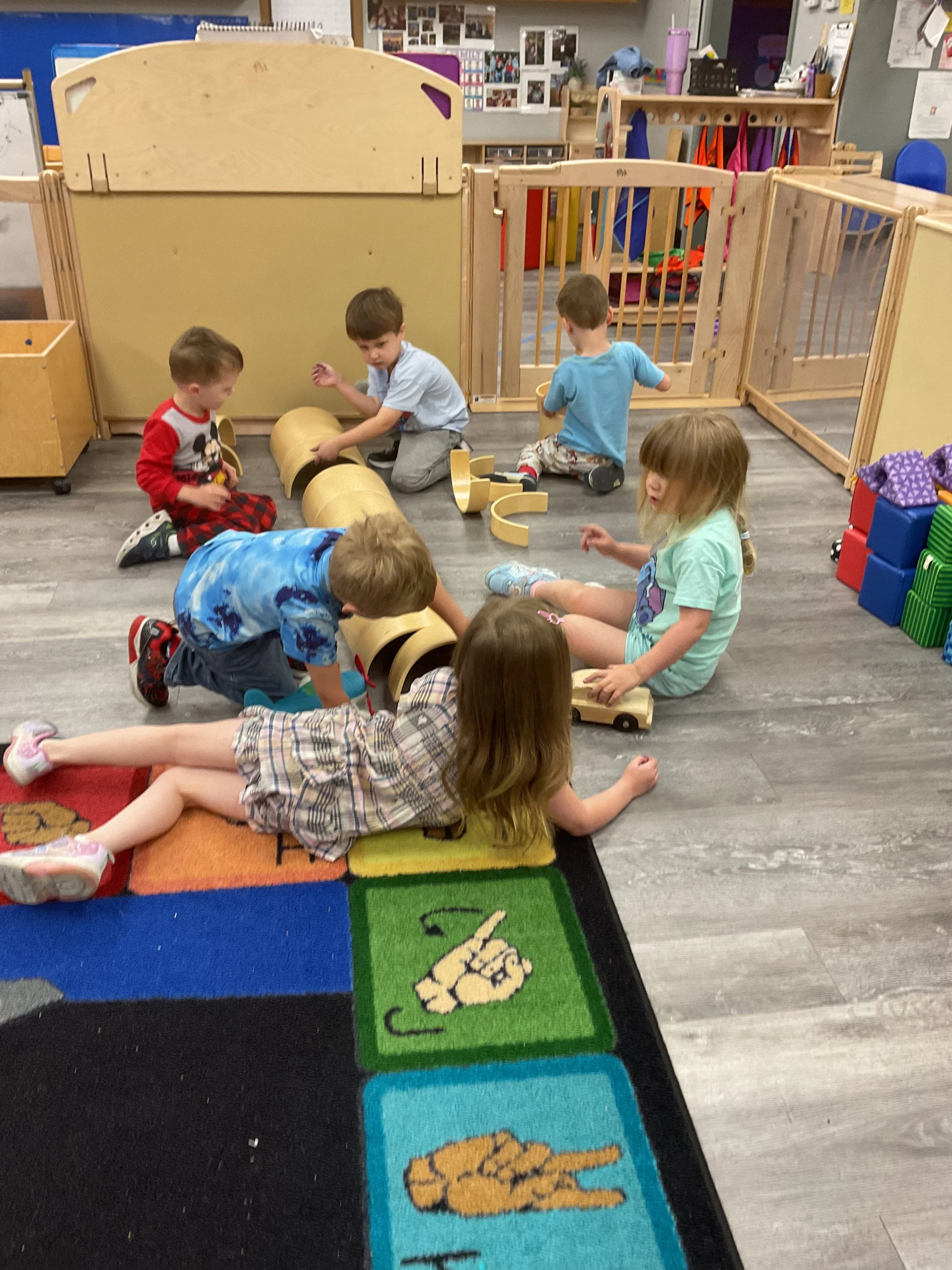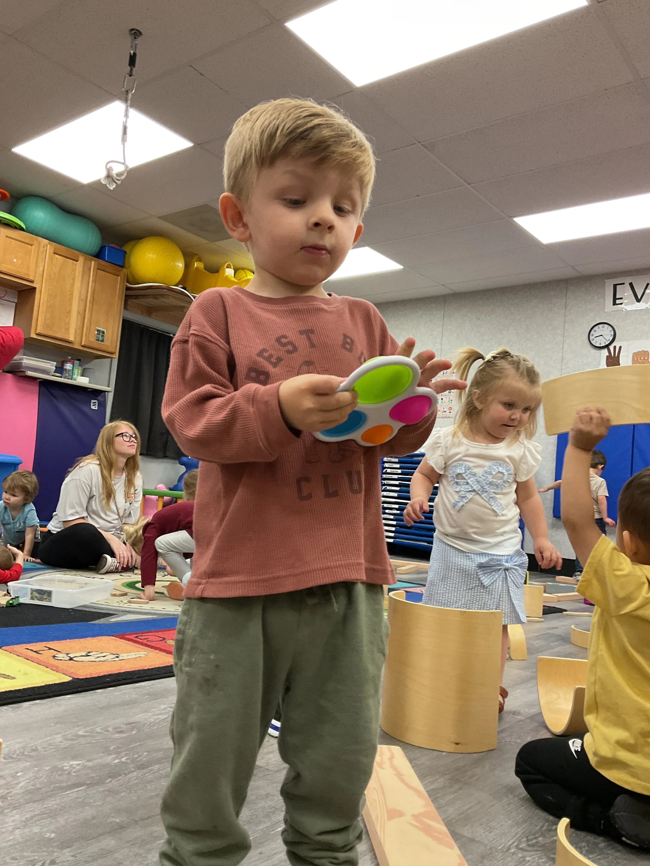 This morning, we read the book There Was an Old Women Who Swallowed a Chick written by Lucille Colandro and illustrated by Jared Lee. During our music and movement time, we used blocks of all shapes and sizes to build an Easter City. Then, during our math and cognition lesson, we matched Easter eggs by color. Next, for our science and sensory lesson, we used foil and markers to dye Easter eggs! We did this by coloring on the foil with washable markers, sprayed a bit of water on the foil, then we wrapped an egg in the foil as tightly as we could, then we unwrapped the egg, and we had beautifully dyed eggs. Finally, for our literacy and fine motor lesson, we colored an Easter egg coloring page.