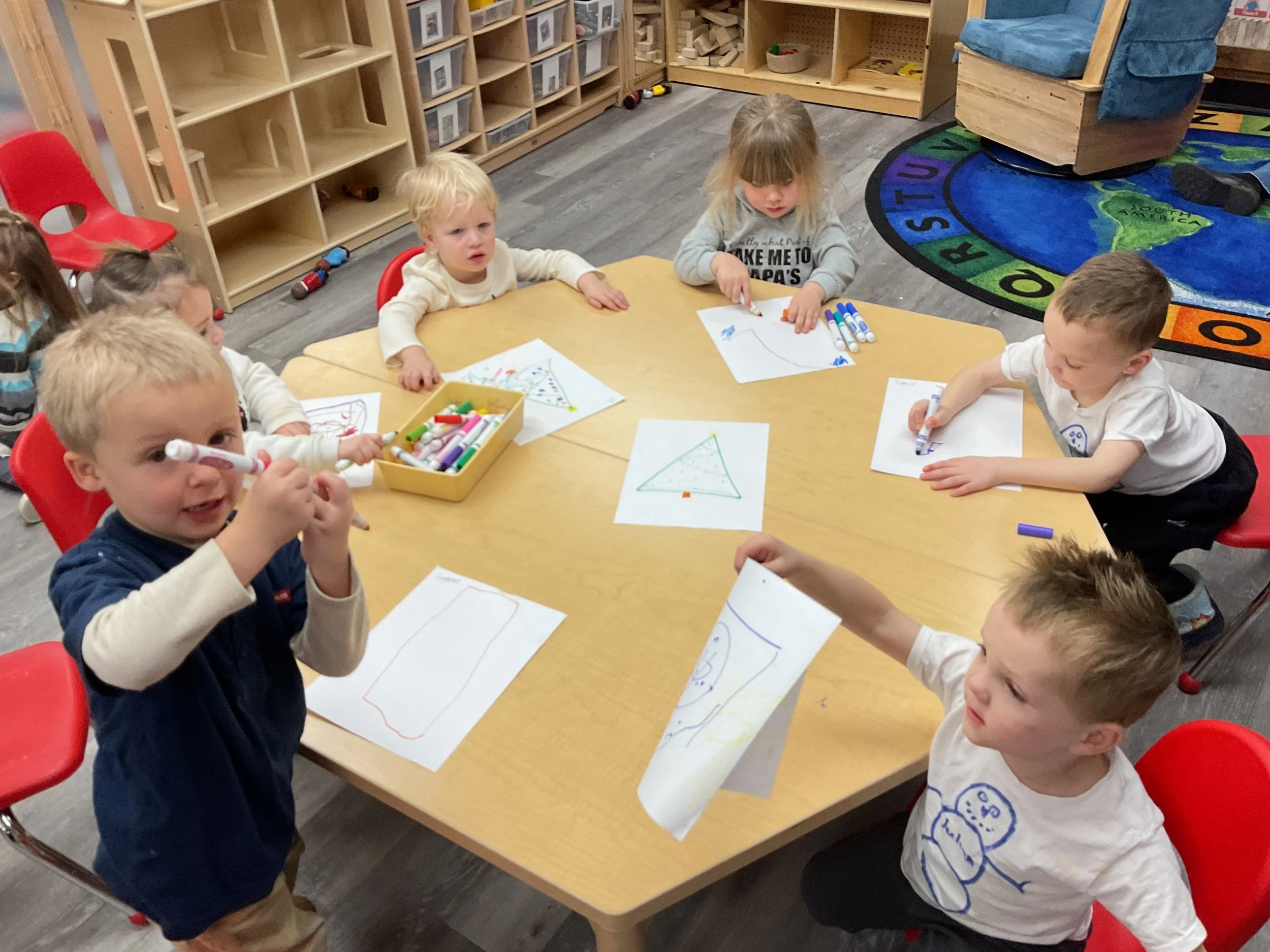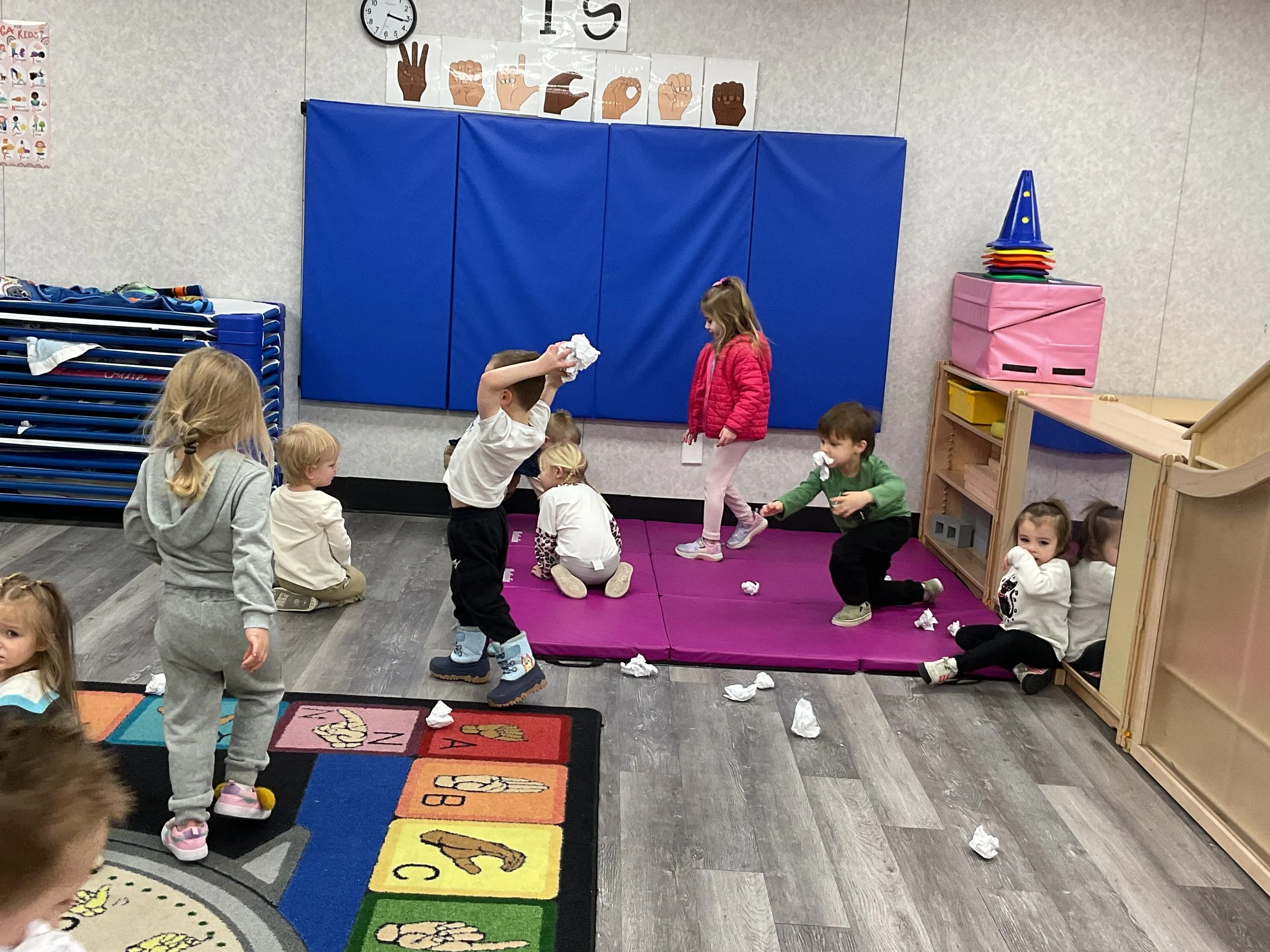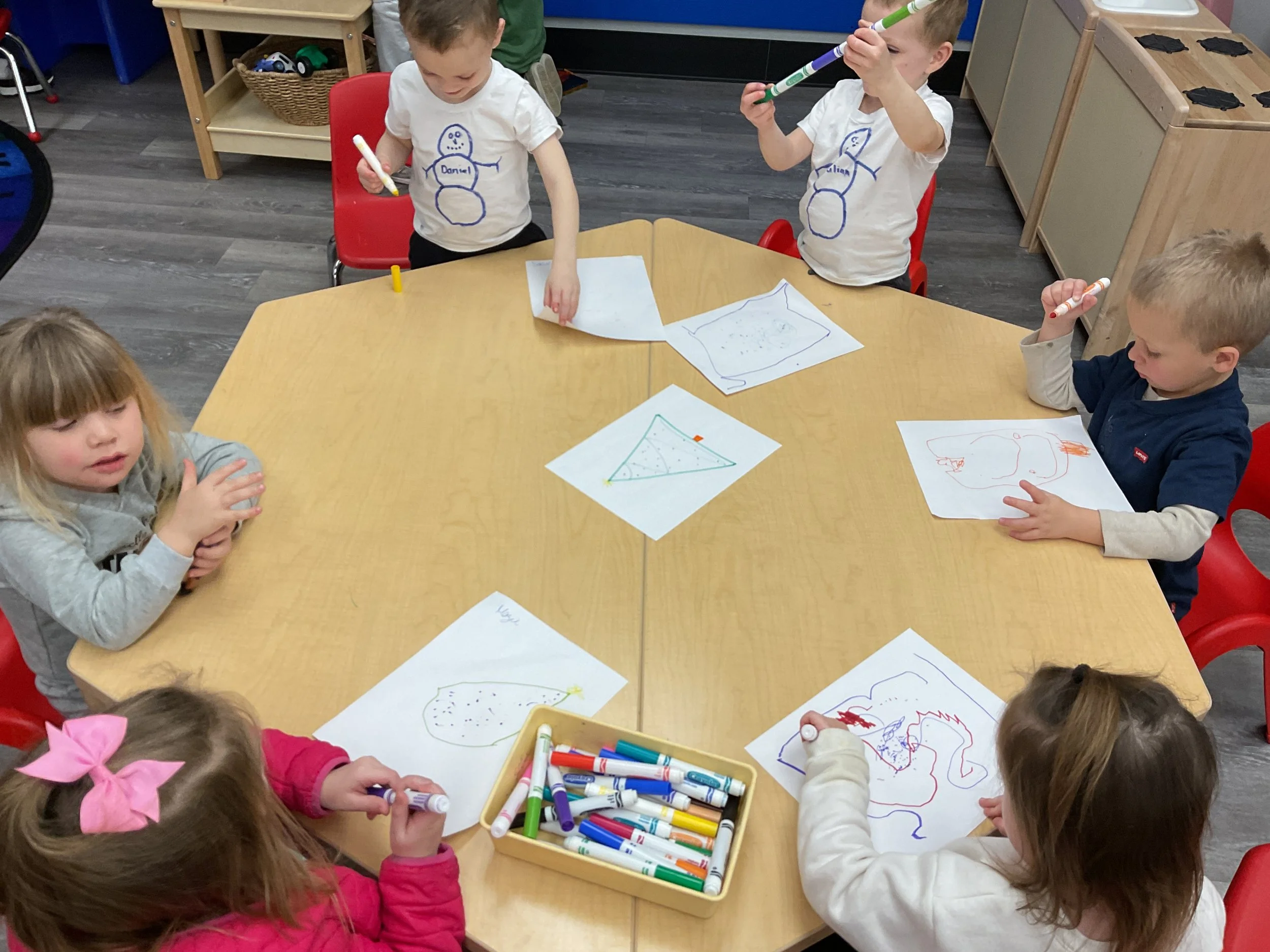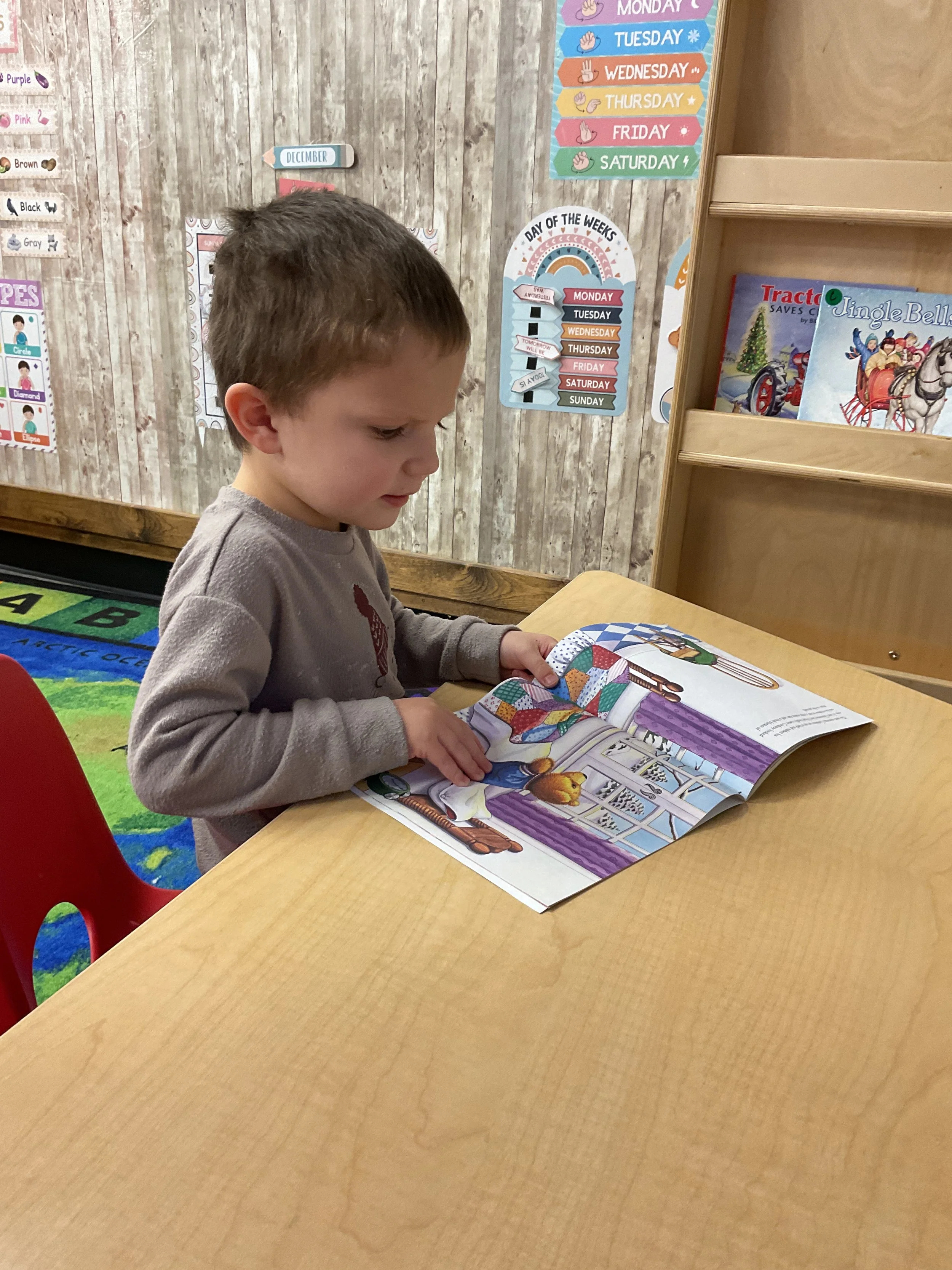 This morning, we read the book Frosty the Snowman written by Steve Nelson and Jack Rollins. During our music and movement time, we had a “snowball” fight using crumpled up paper! Then, during our math and cognition lesson, we counted snowmen and talked about what numbers are odd and even. Next, for our science and sensory lesson, we drew our own Christmas tree. Finally, during our fine motor and literacy lesson, we worked on tracing and writing our names.