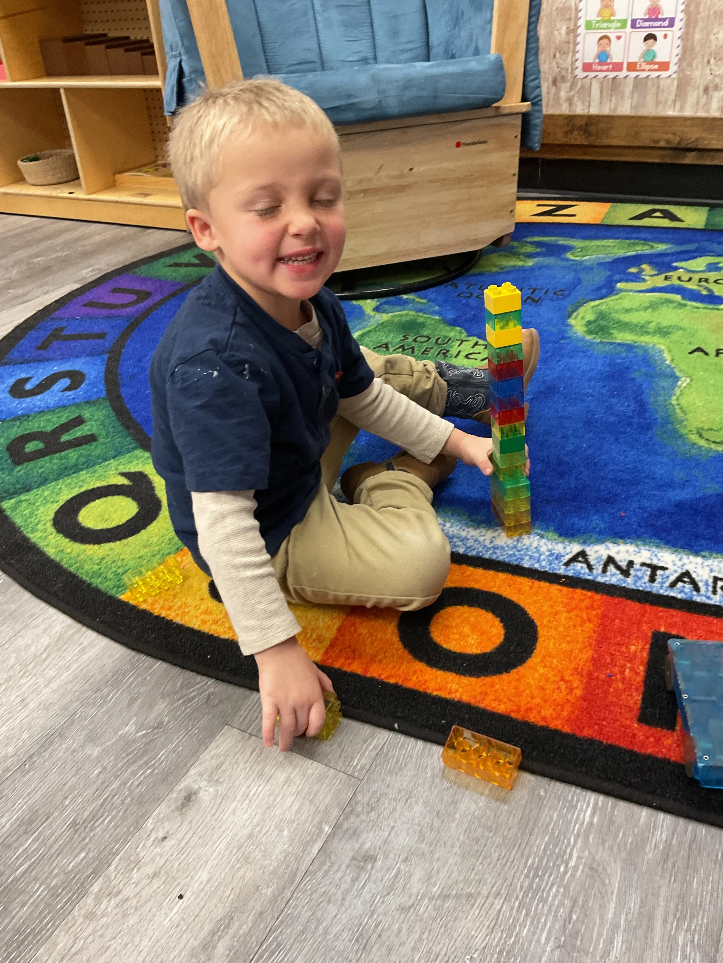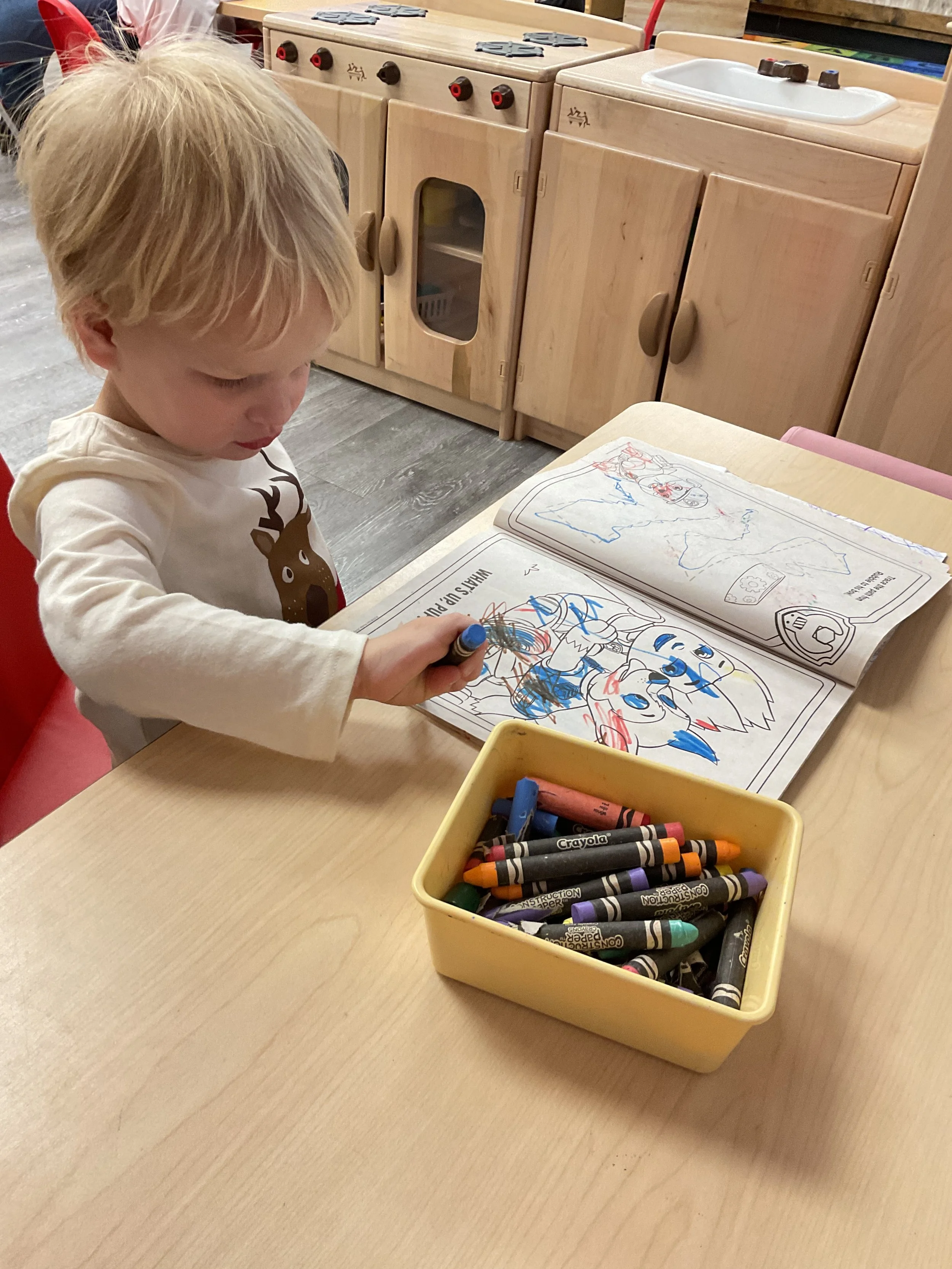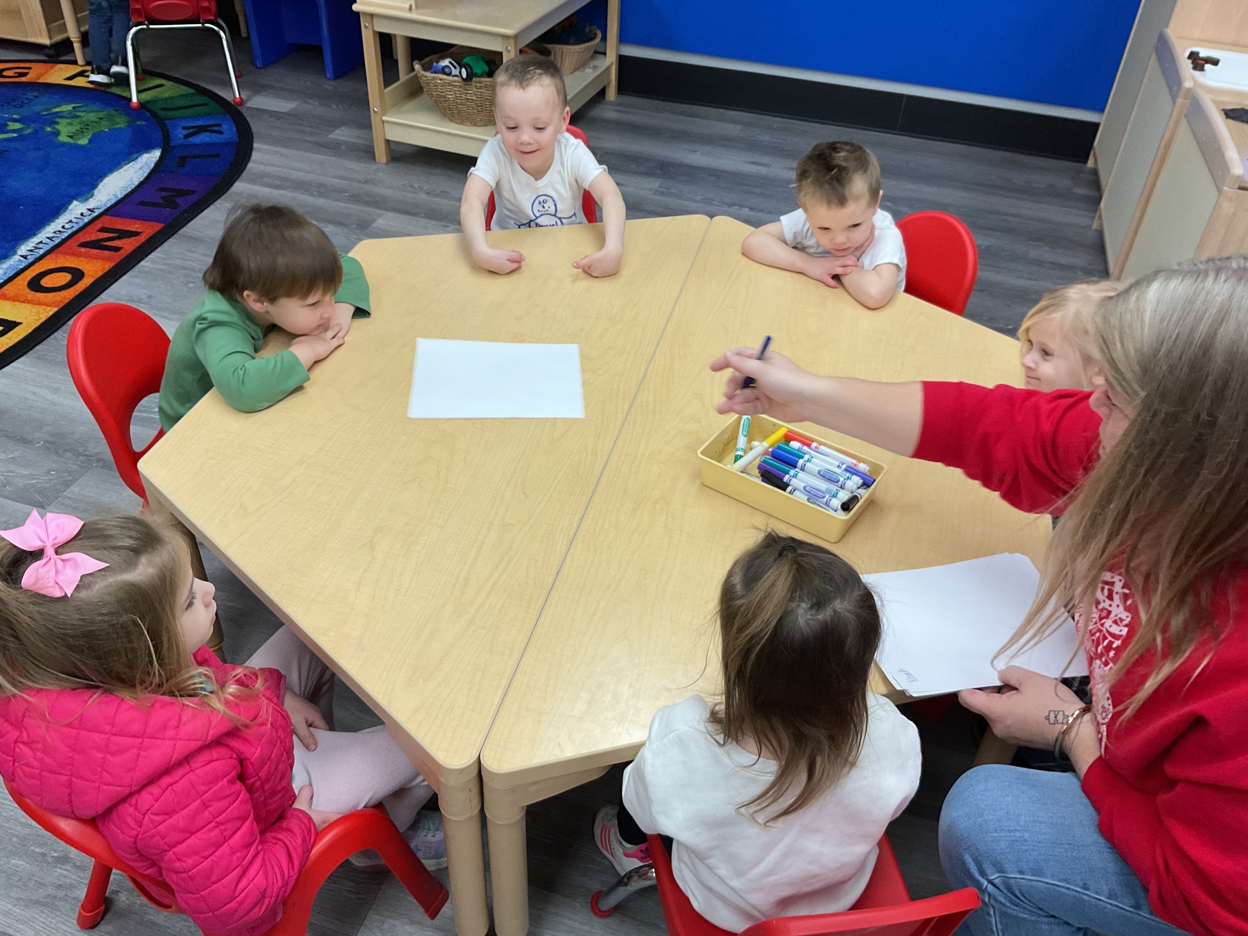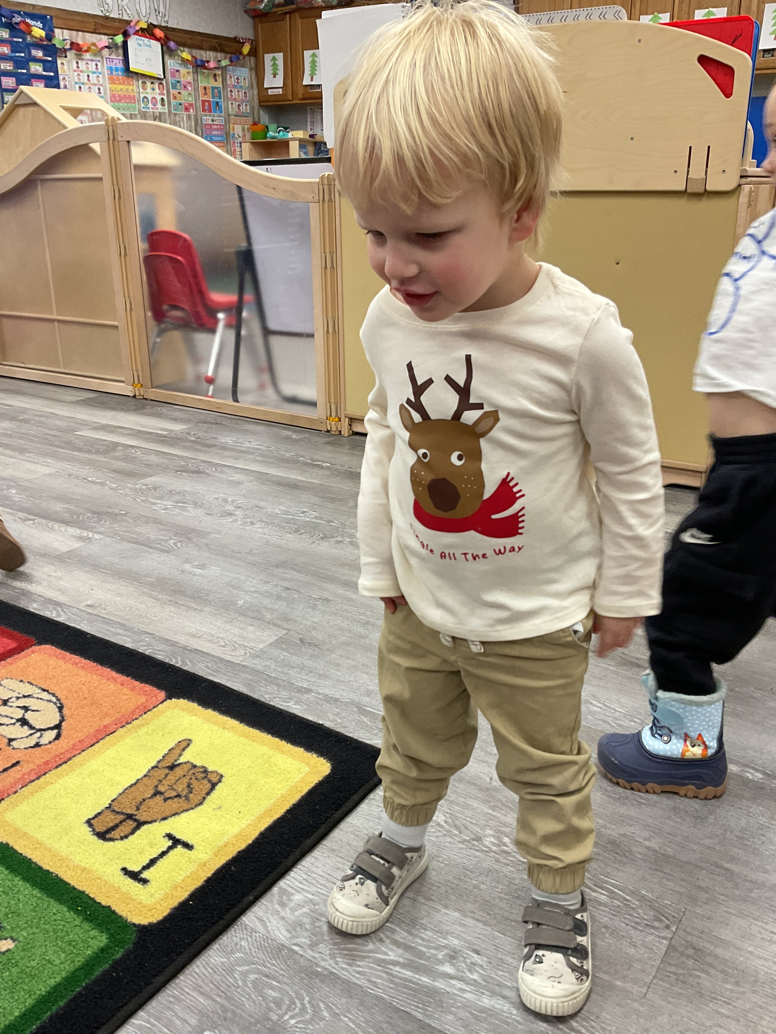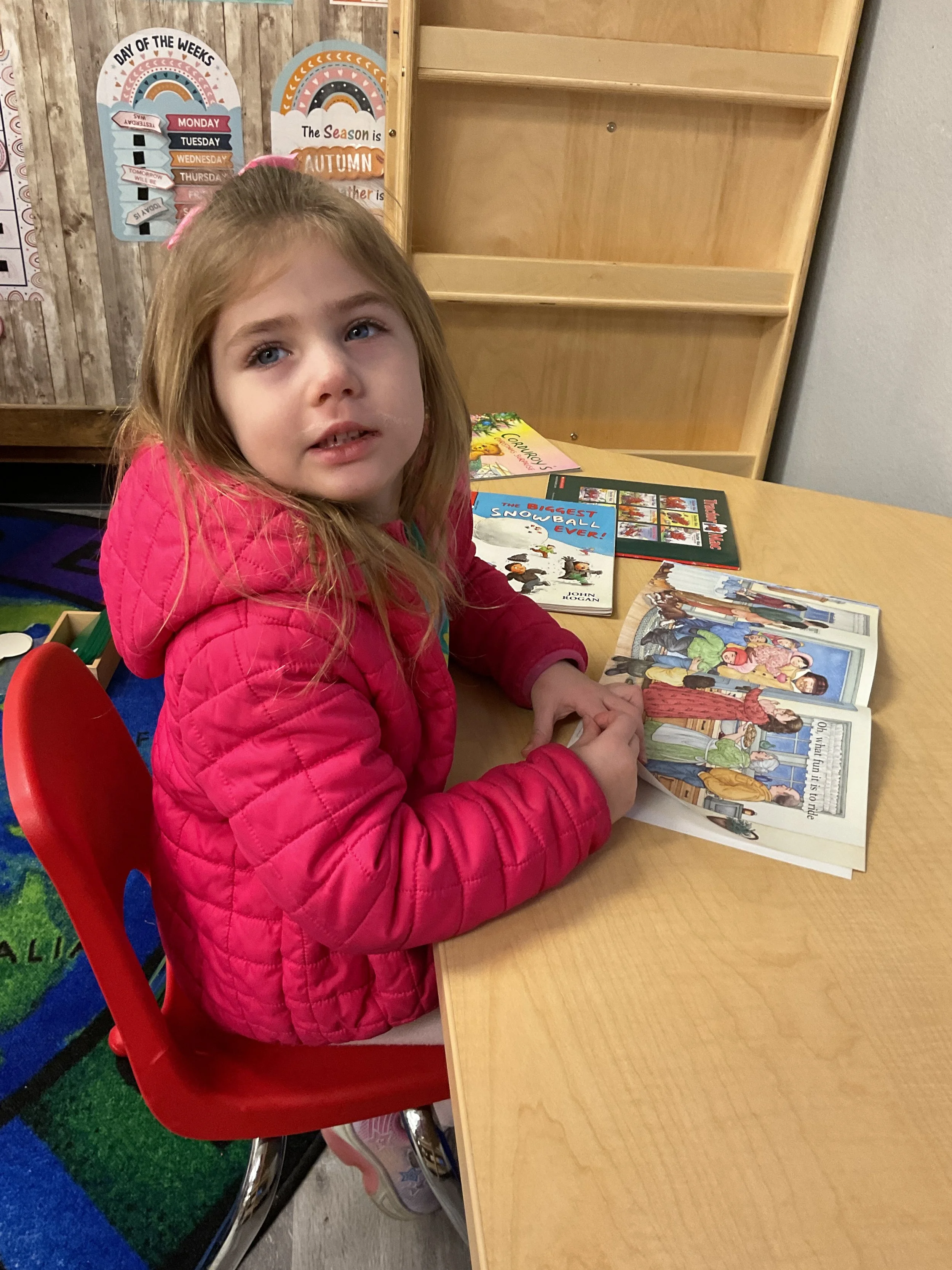 This morning, we read the book Frosty the Snowman written by Steve Nelson and Jack Rollins. During our music and movement time, we had a “snowball” fight using crumpled up paper! Then, during our math and cognition lesson, we counted snowmen and talked about what numbers are odd and even. Next, for our science and sensory lesson, we drew our own Christmas tree. Finally, during our fine motor and literacy lesson, we worked on tracing and writing our names.