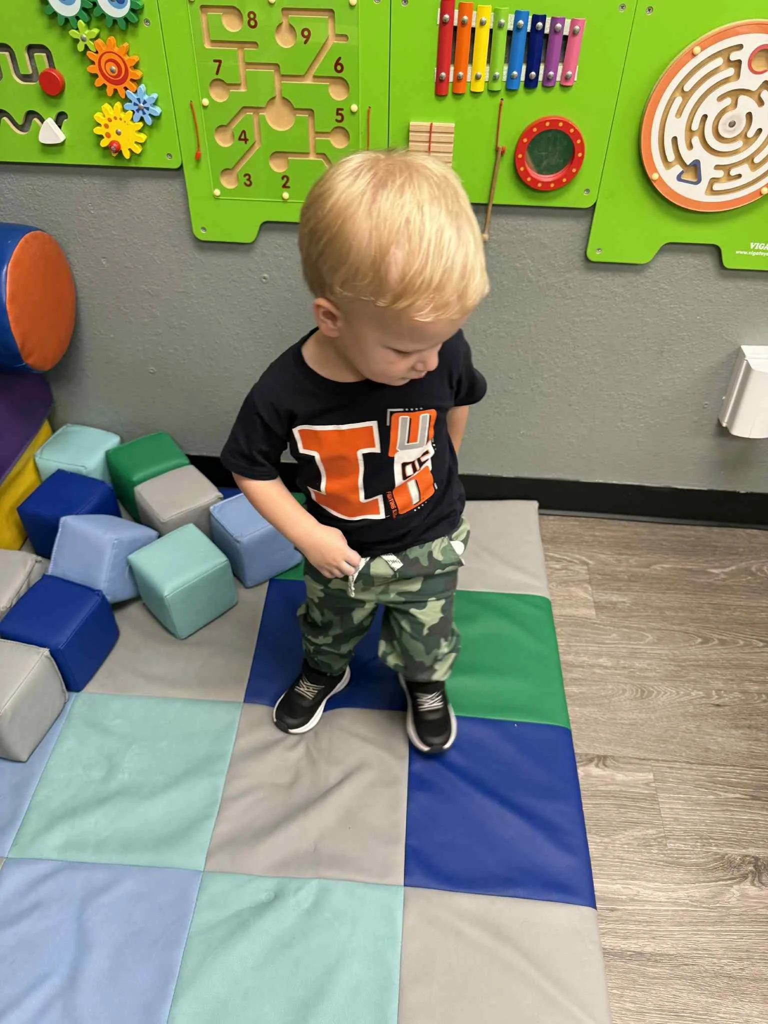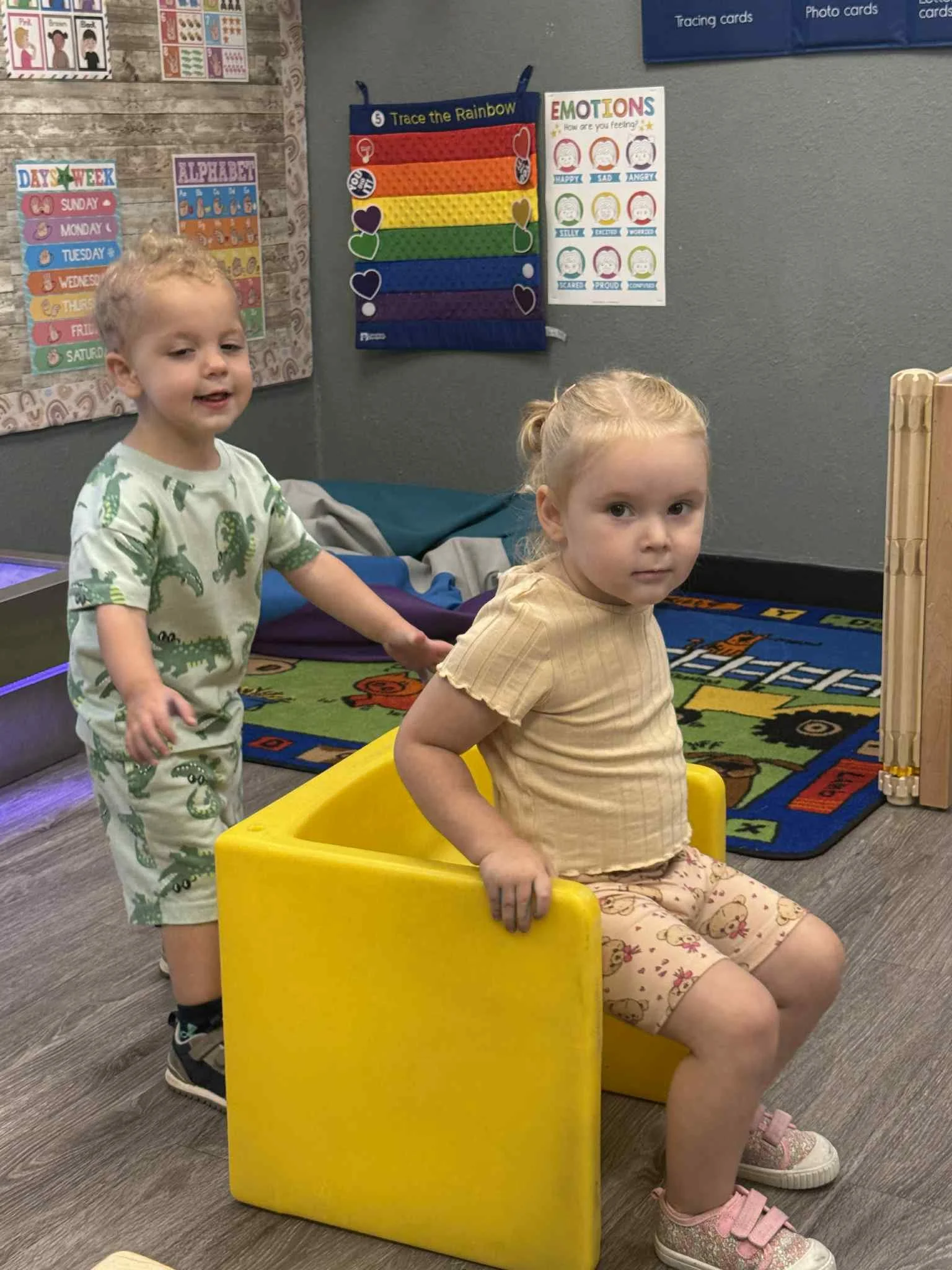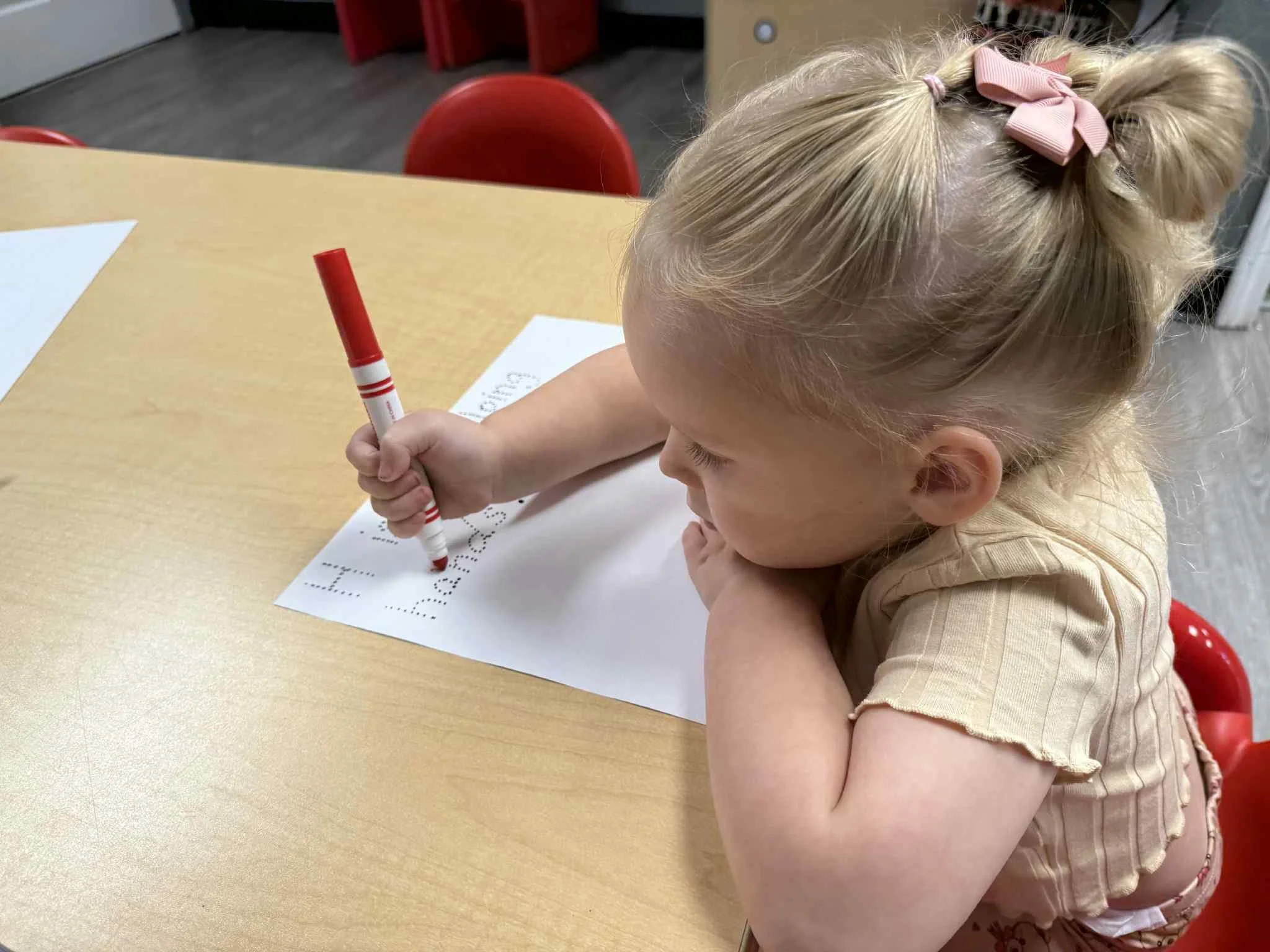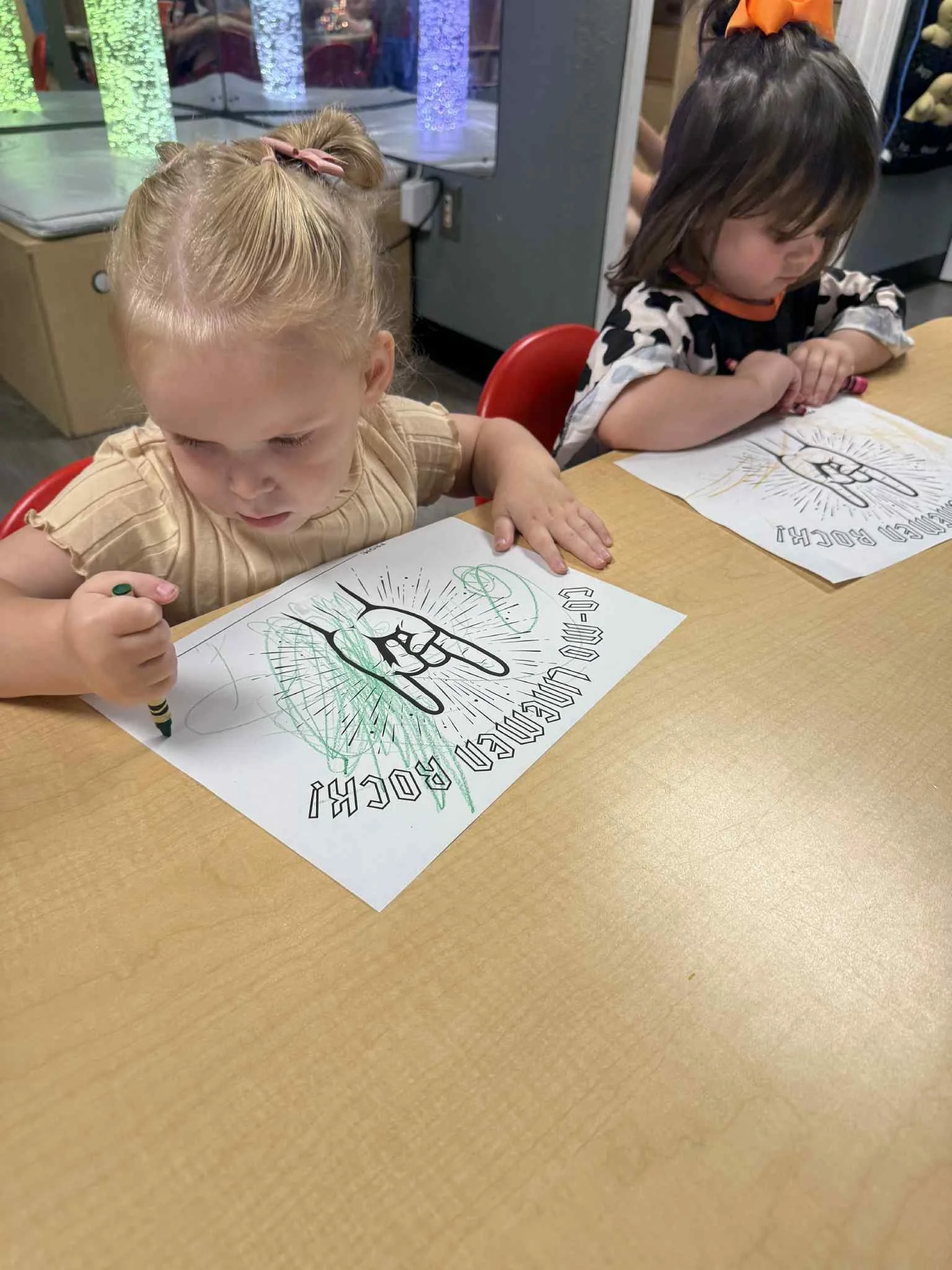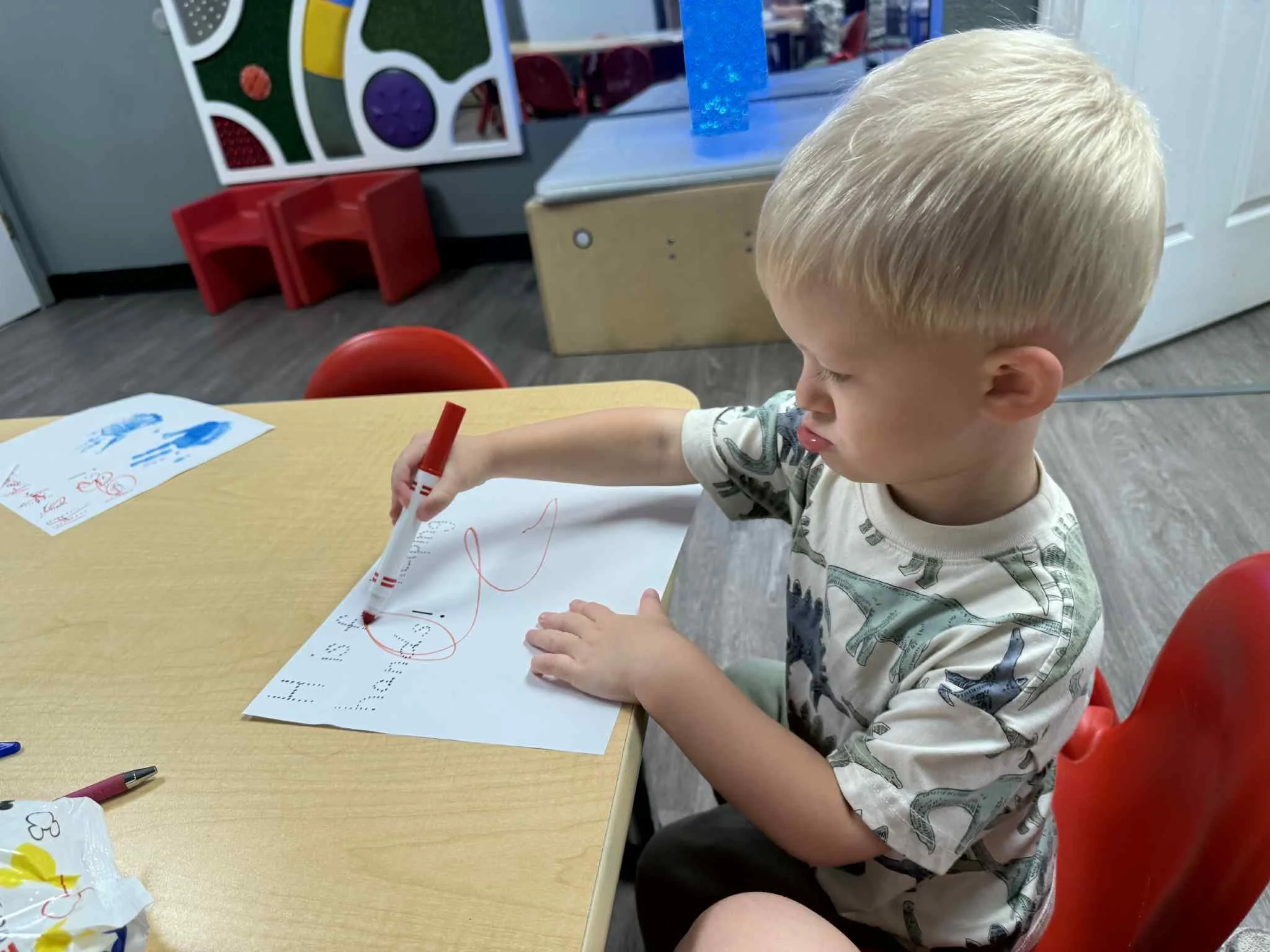 Today we read the book Lola at the Library written by Anna McQuinn and Rosalind Beardshaw. We would like to thank the Camdenton City Police Department for coming to CLC today! They talked to us about calling 911 in an emergency. They let us see their patrol car and they even turned on the sirens! We learned that when you hear the siren, that means help is on its way. During our math and cognition lesson, we put together community helper puzzles. Next, during our science and sensory lesson, we used an ink pad to examine the lines on our fingerprints. We learned that everyone’s fingerprints are different and unique. Finally, for our fine motor and literacy lesson, we traced the words “H is for helping hands” and then put a painted handprint on the paper.
