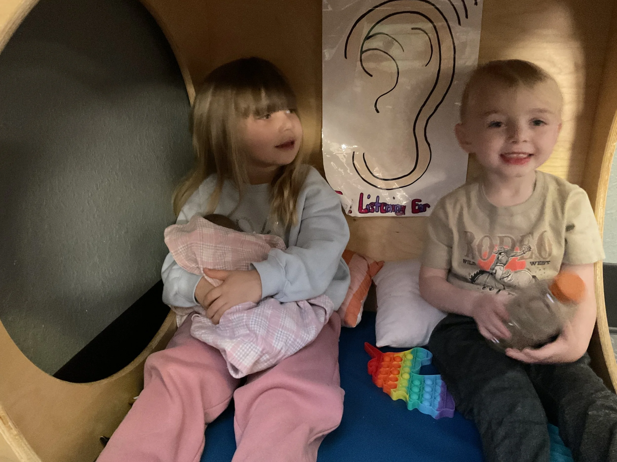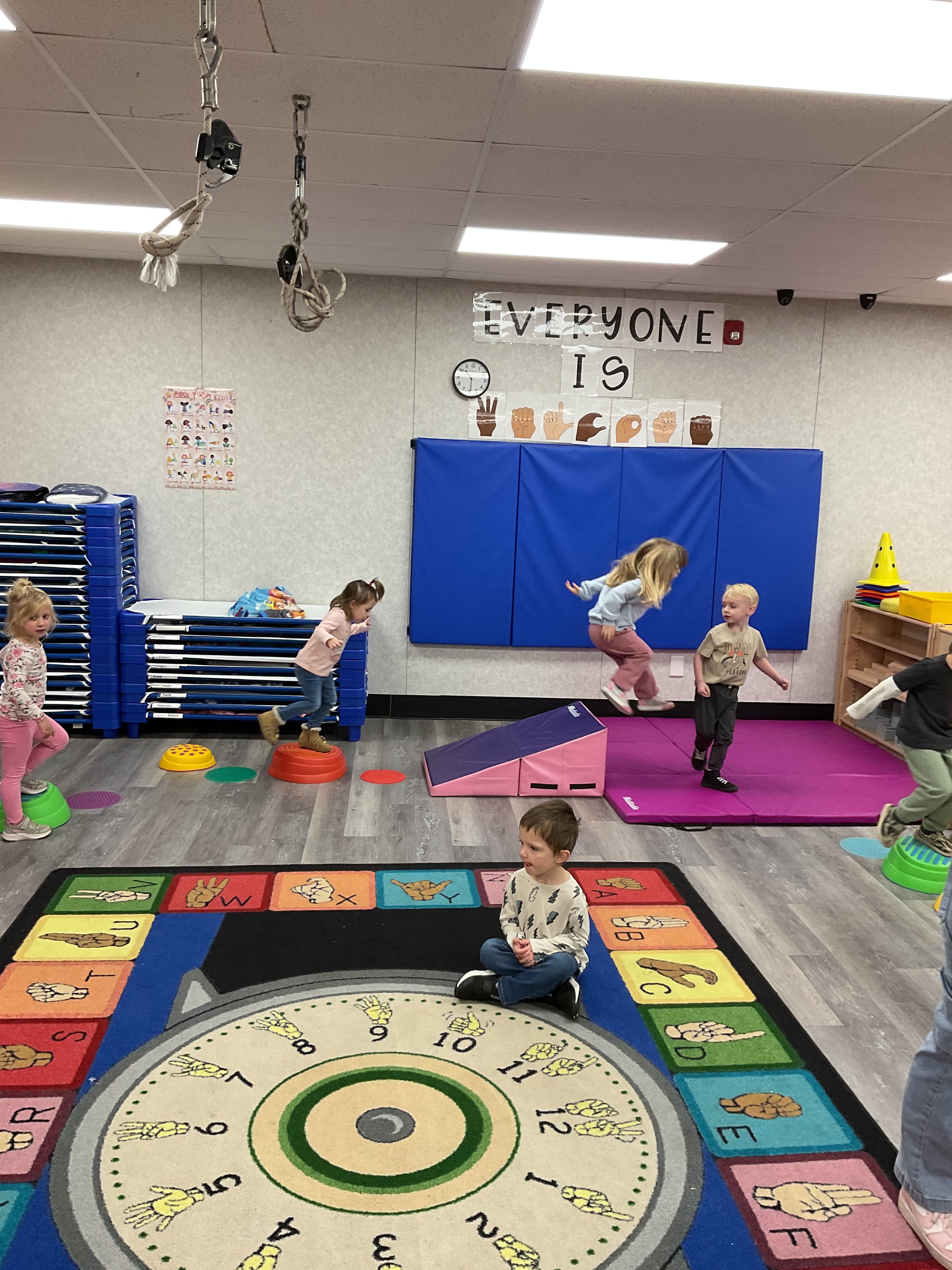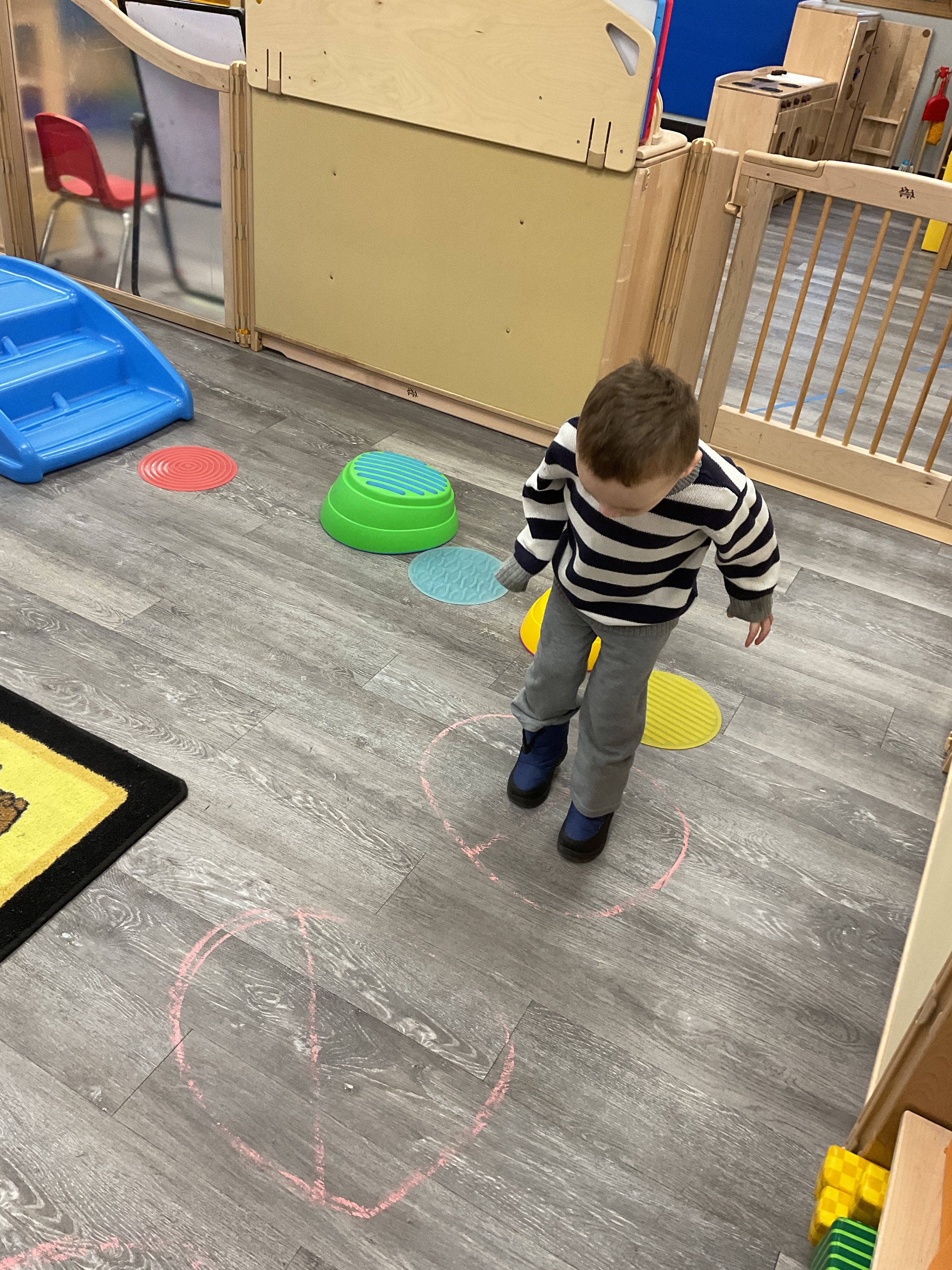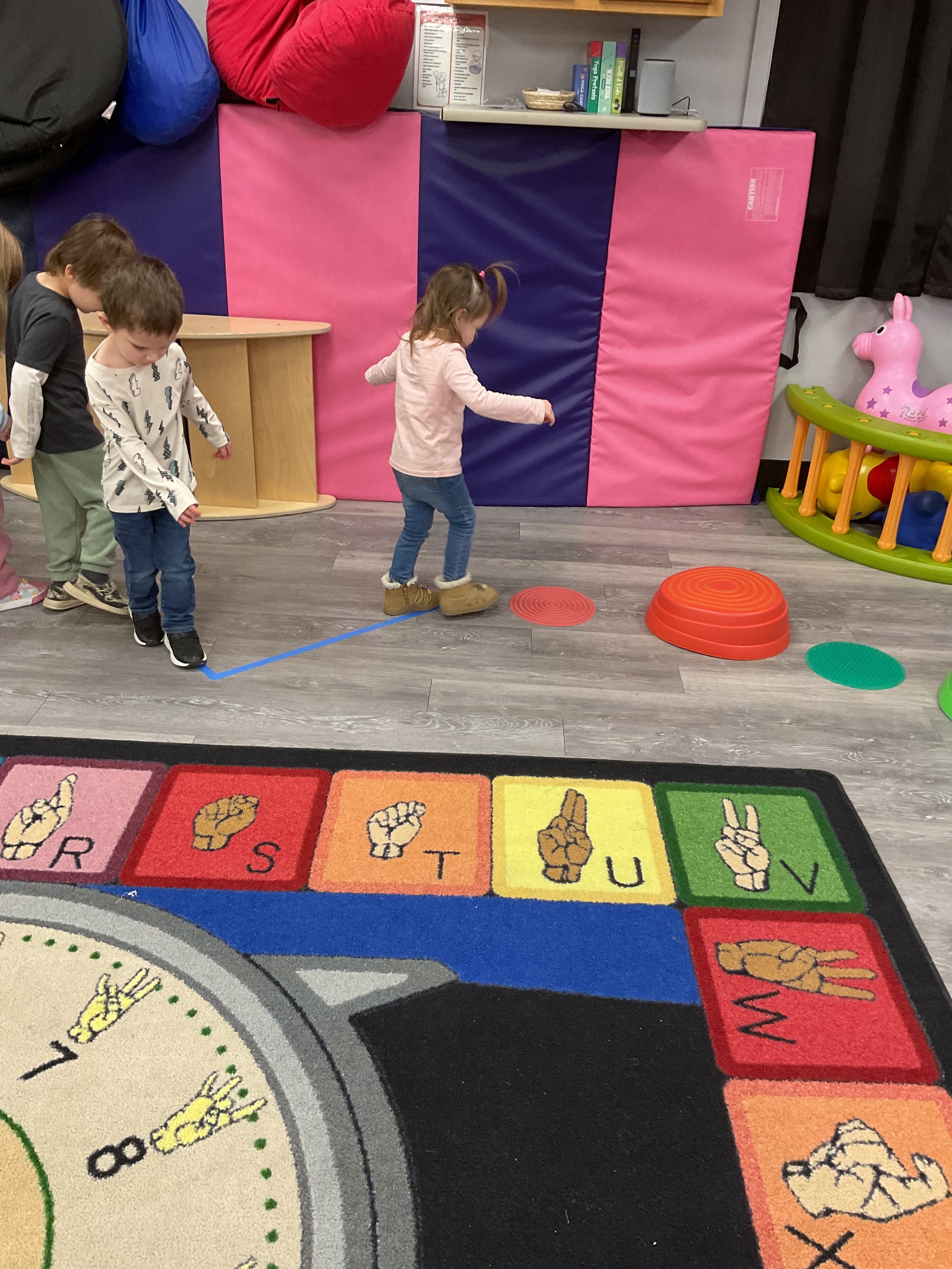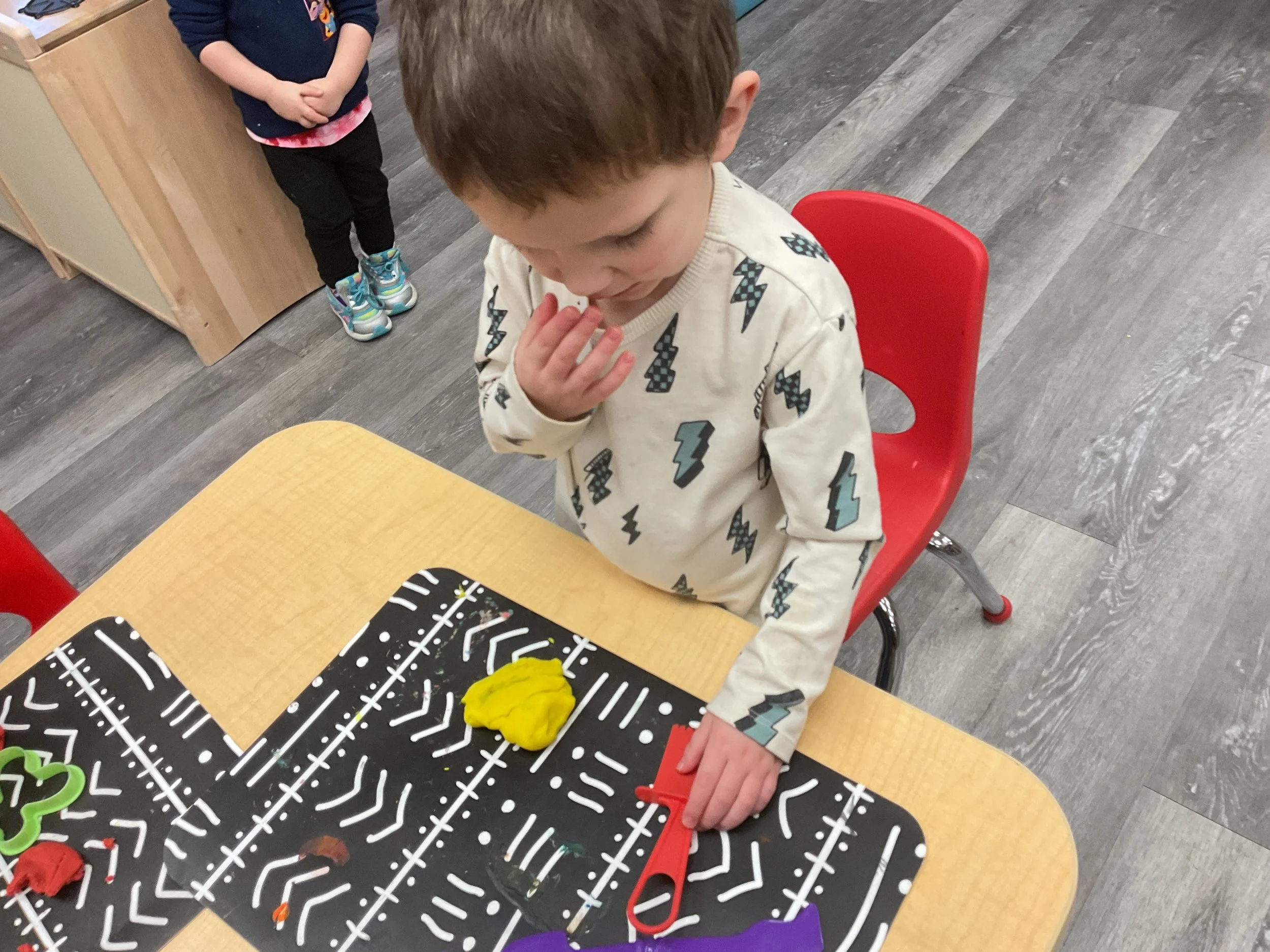This morning, we read the book Hands are Not for Hitting written by Martine Agassi and illustrated by Marieka Heinlen. During our music and movement time, we navigated an obstacle course. Then, during our math and cognition lesson, we used paper bodies to make patterns. Next, for our science and sensory lesson, we used playdough to make people! Finally, for our literacy and fine motor lesson, we practiced our cutting skills.
