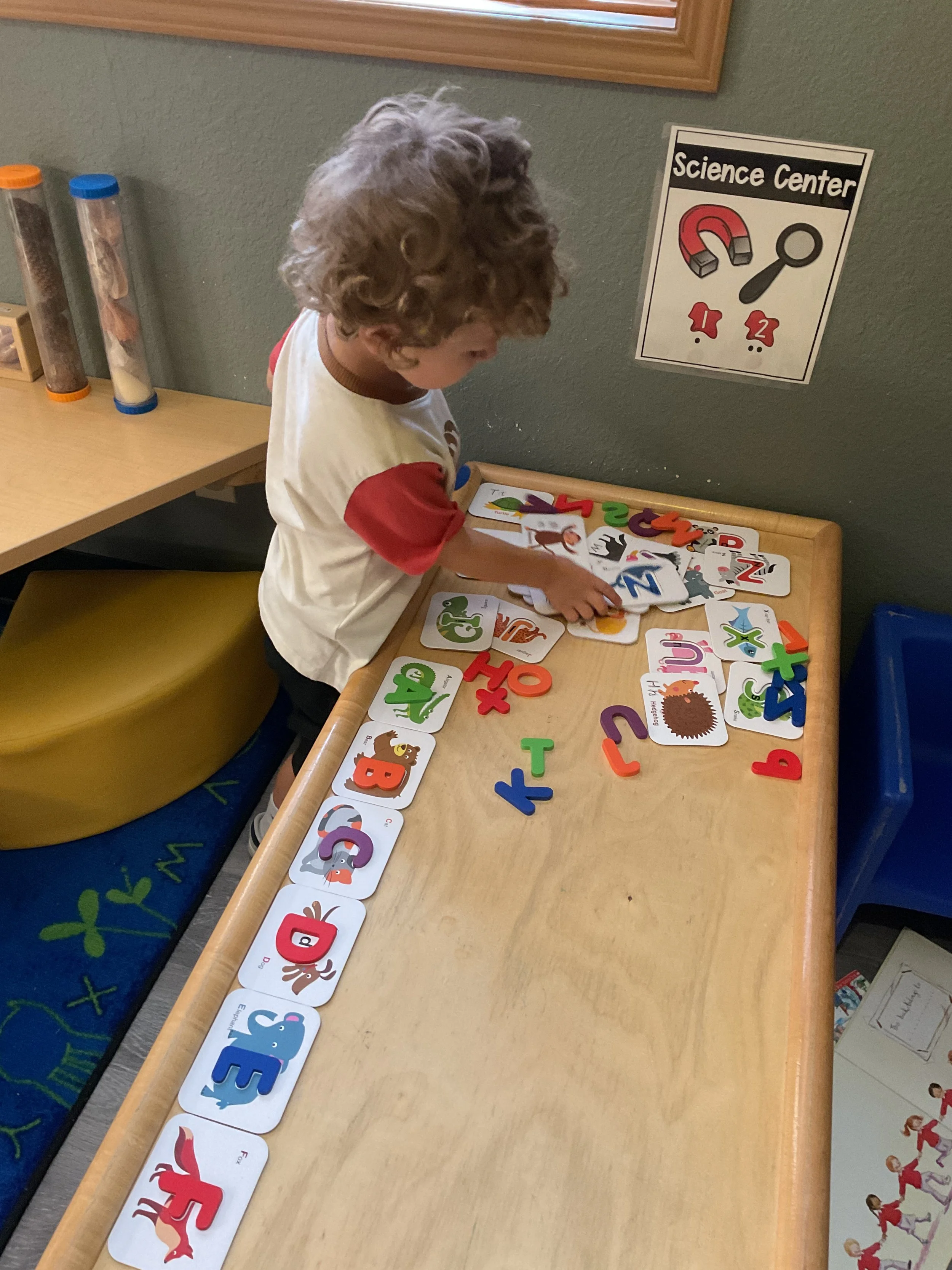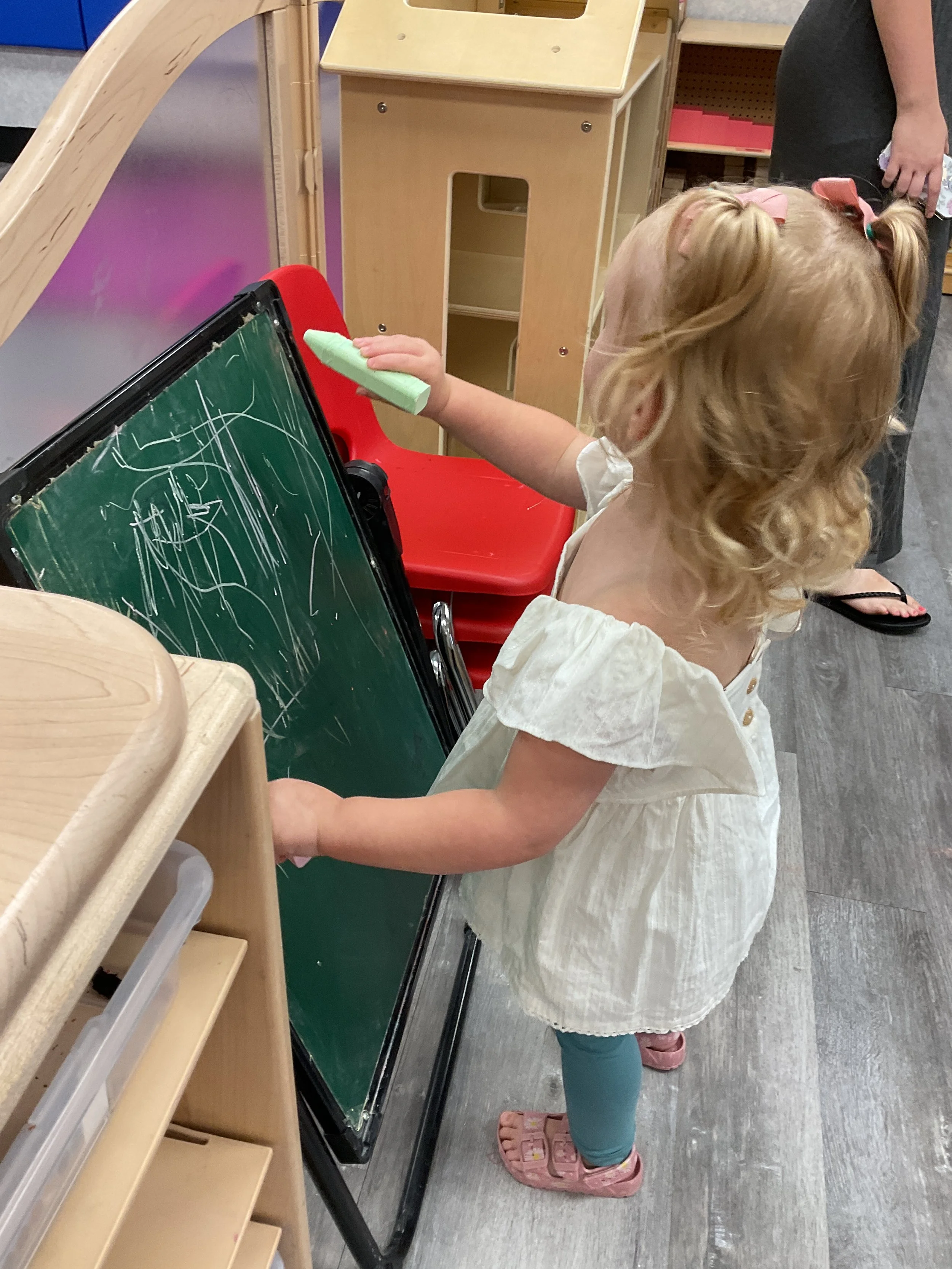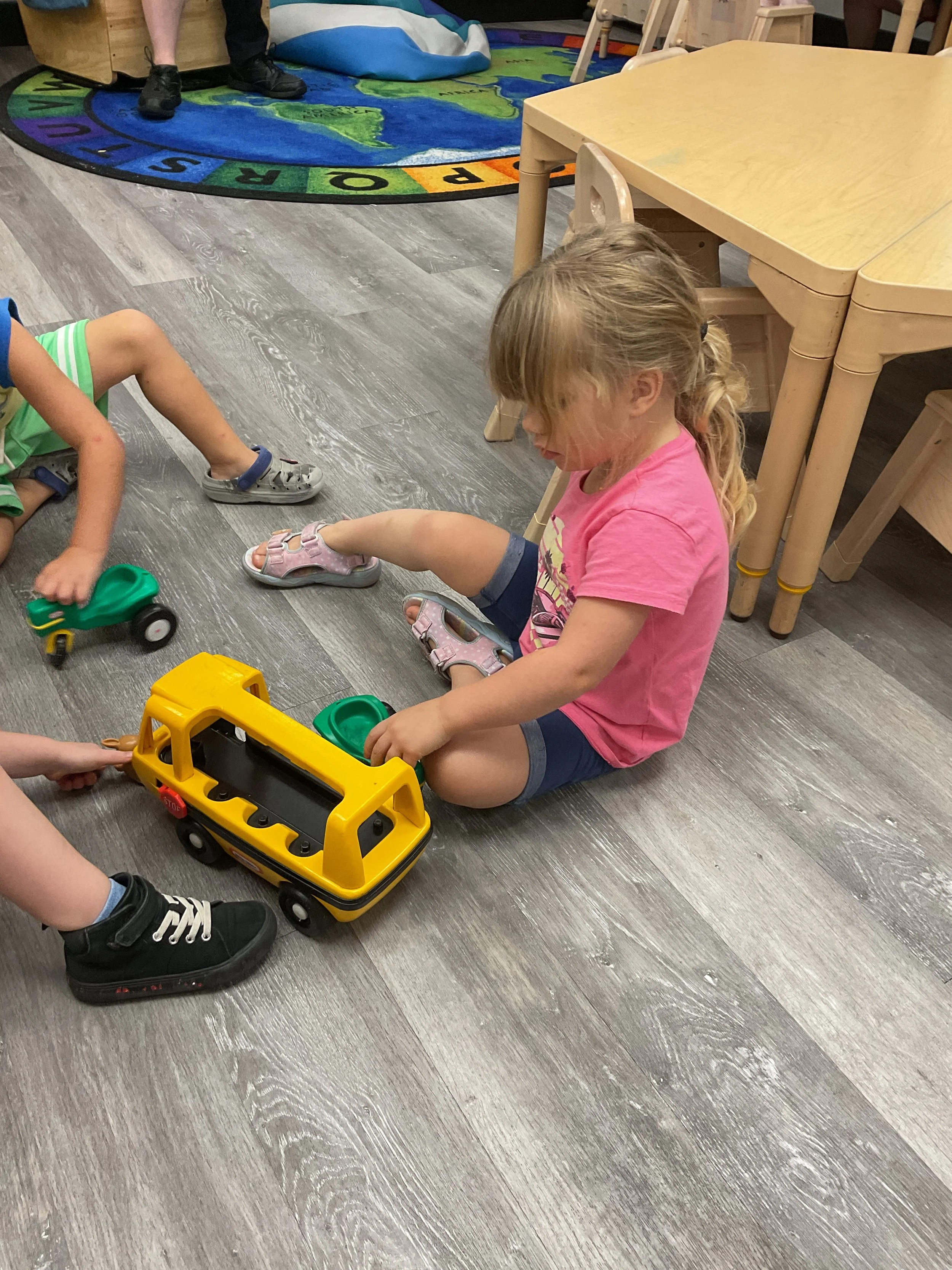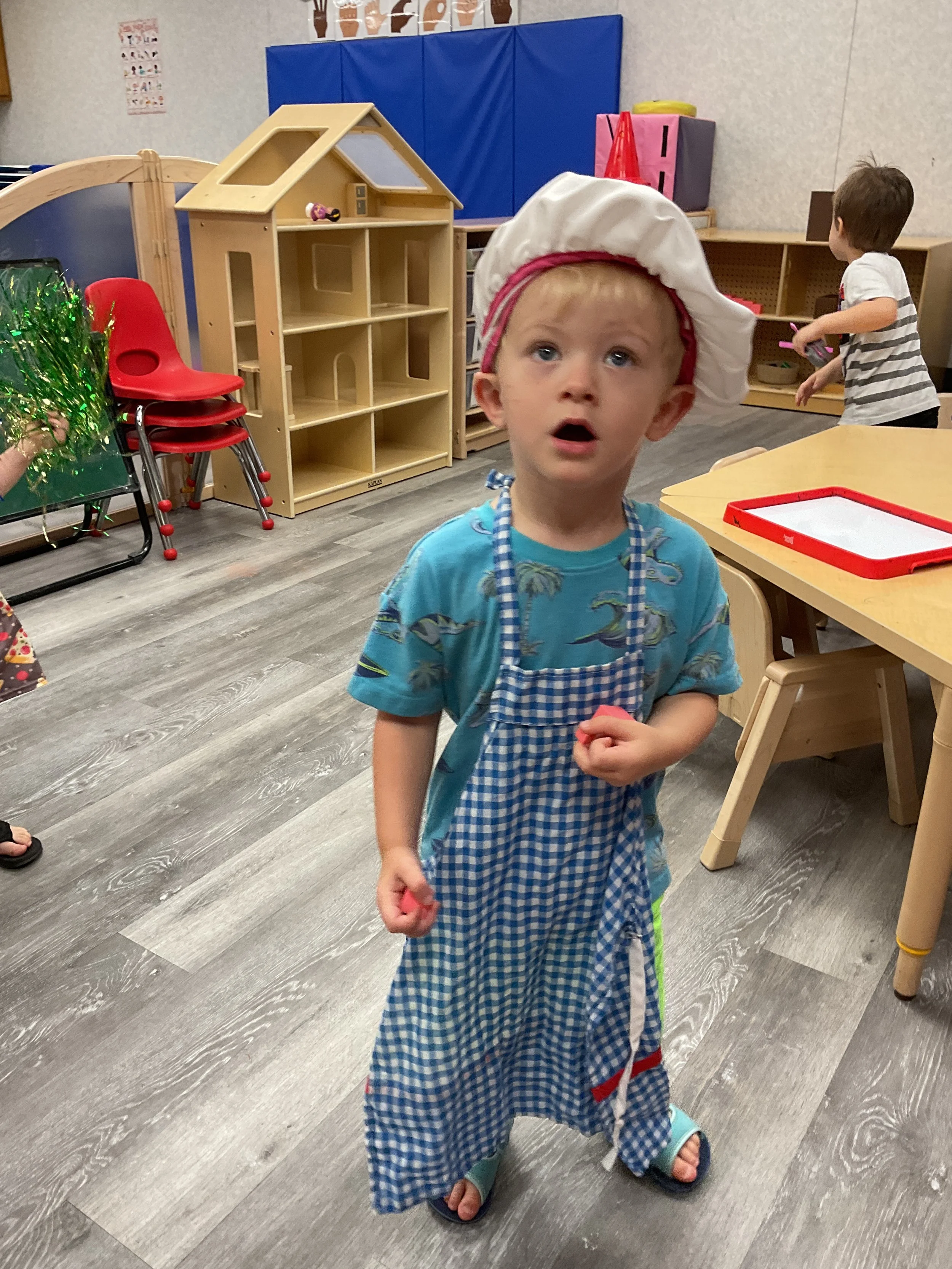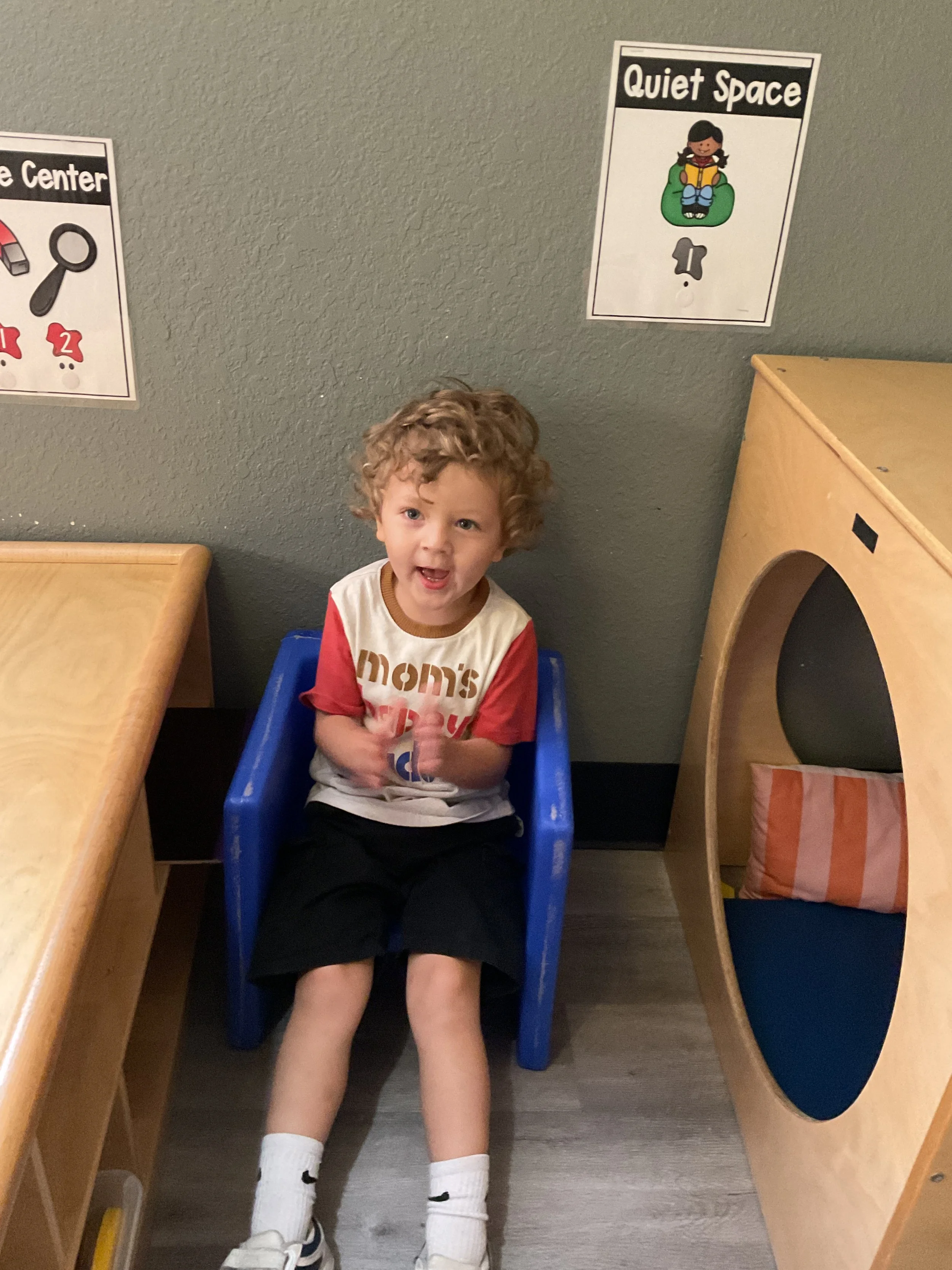 Welcome Back! We hope everyone had a wonderful summer! This morning, we read the book Mouse Loves School written by Lauren Thompson and illustrated by Buket Erdogan. Durning our music and movement time, we played with balloons! We made sure not to let them touch the floor and we played the game “The Floor is Lava”. Then, for our math and cognition lesson, we had to gather the correct amount of school supplies the number called for. Next, during our science and sensory lesson, we used stamps shaped like school supplies to make a back-to-school picture. Finally, for our fine motor and literacy lesson, we listened to a book on tape.