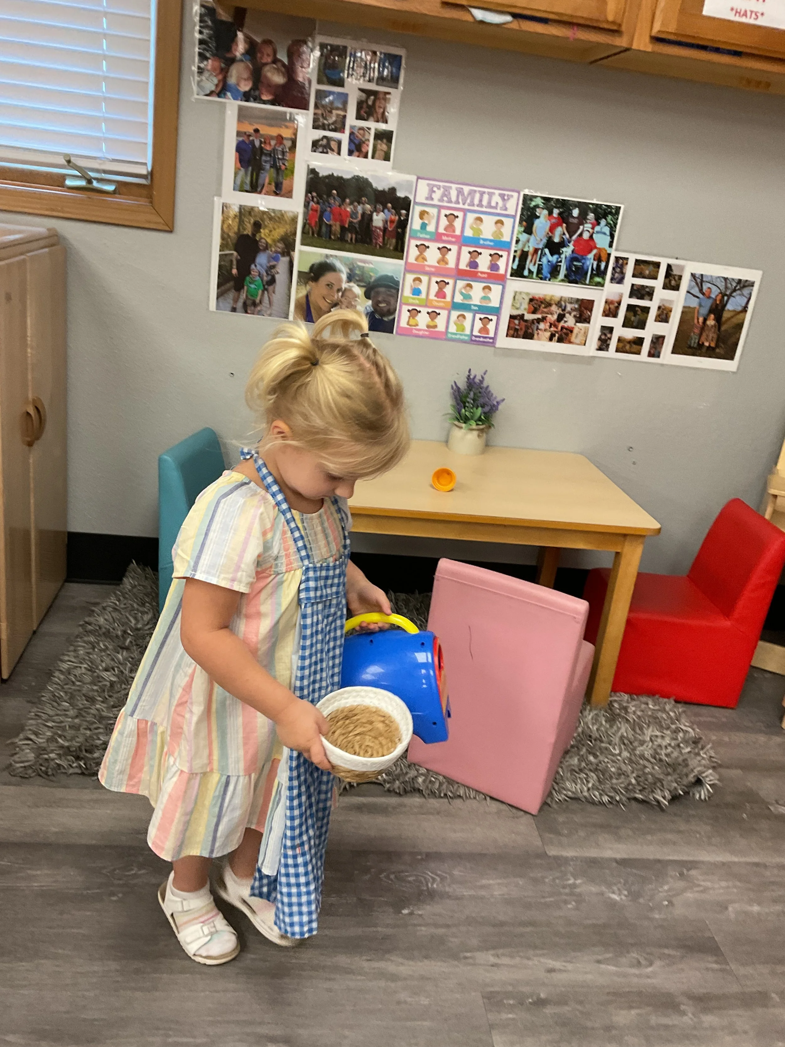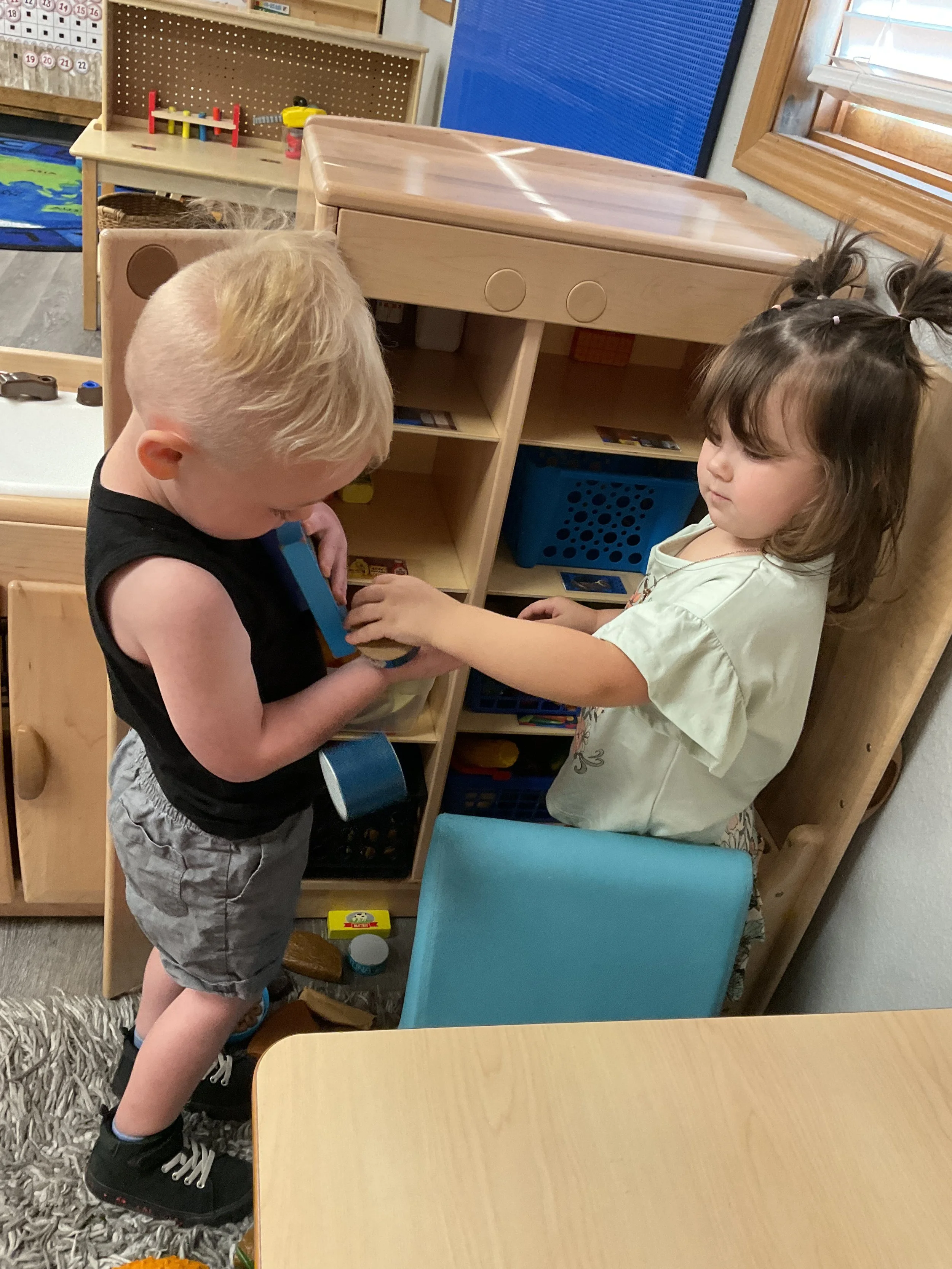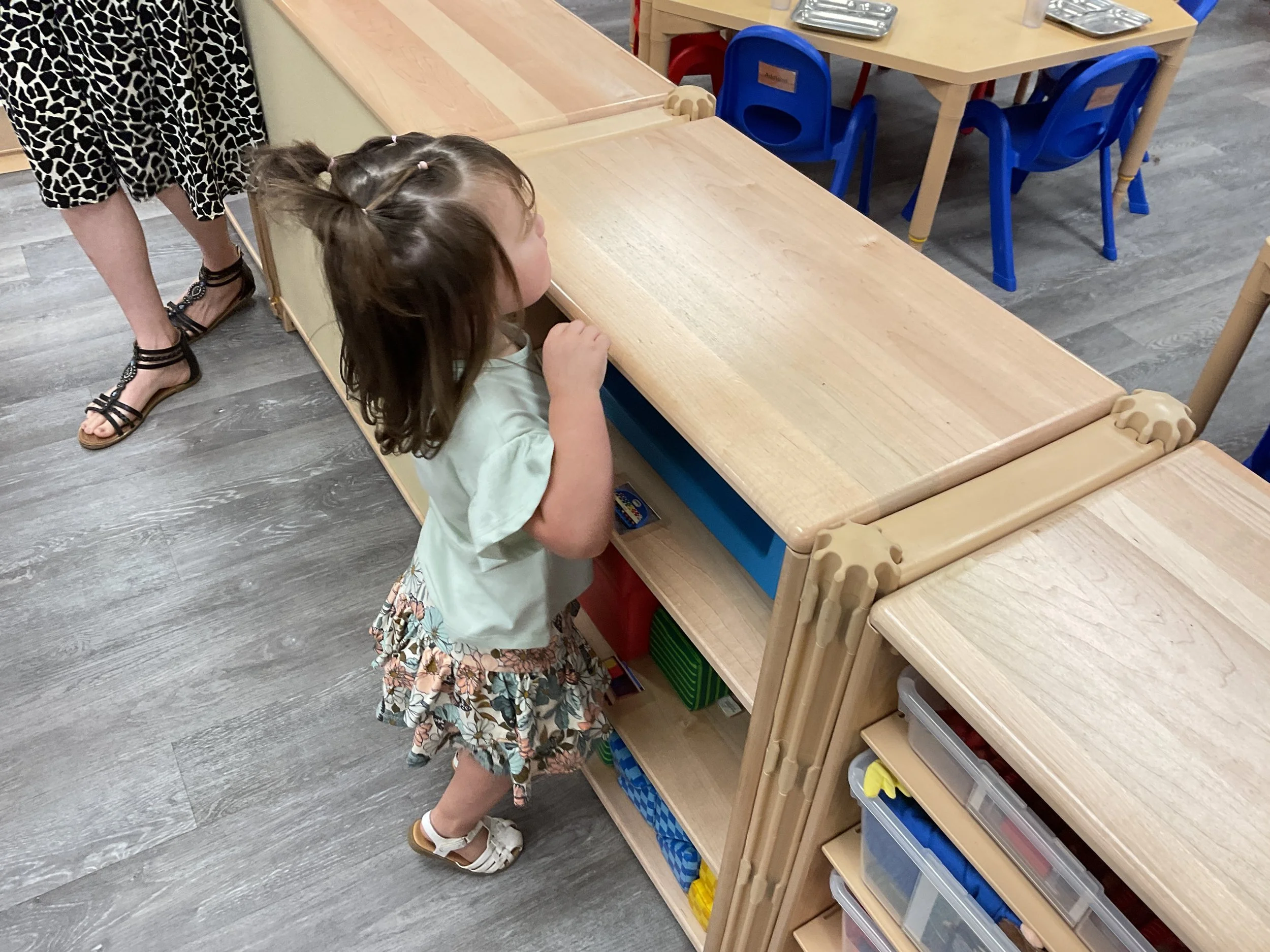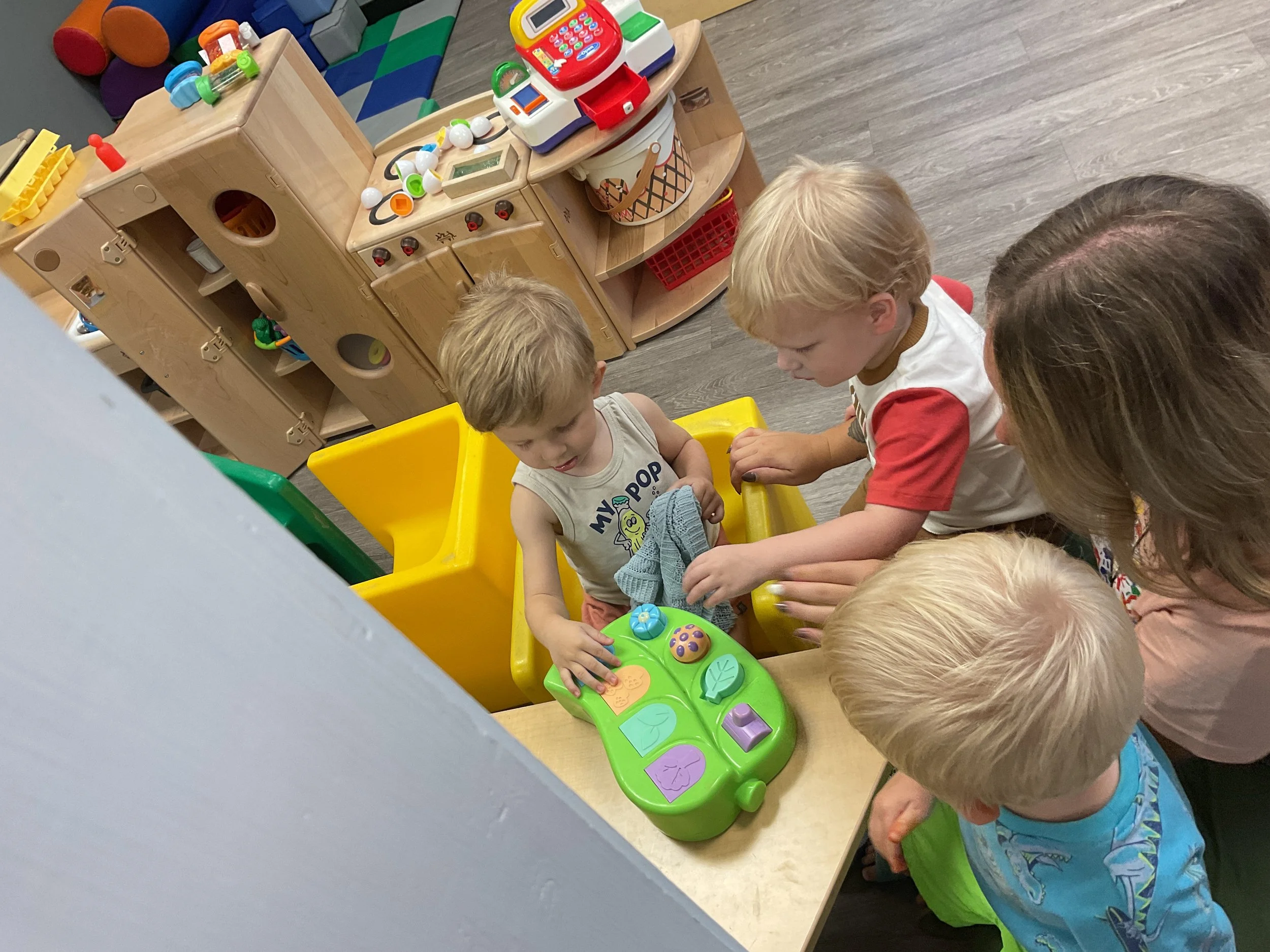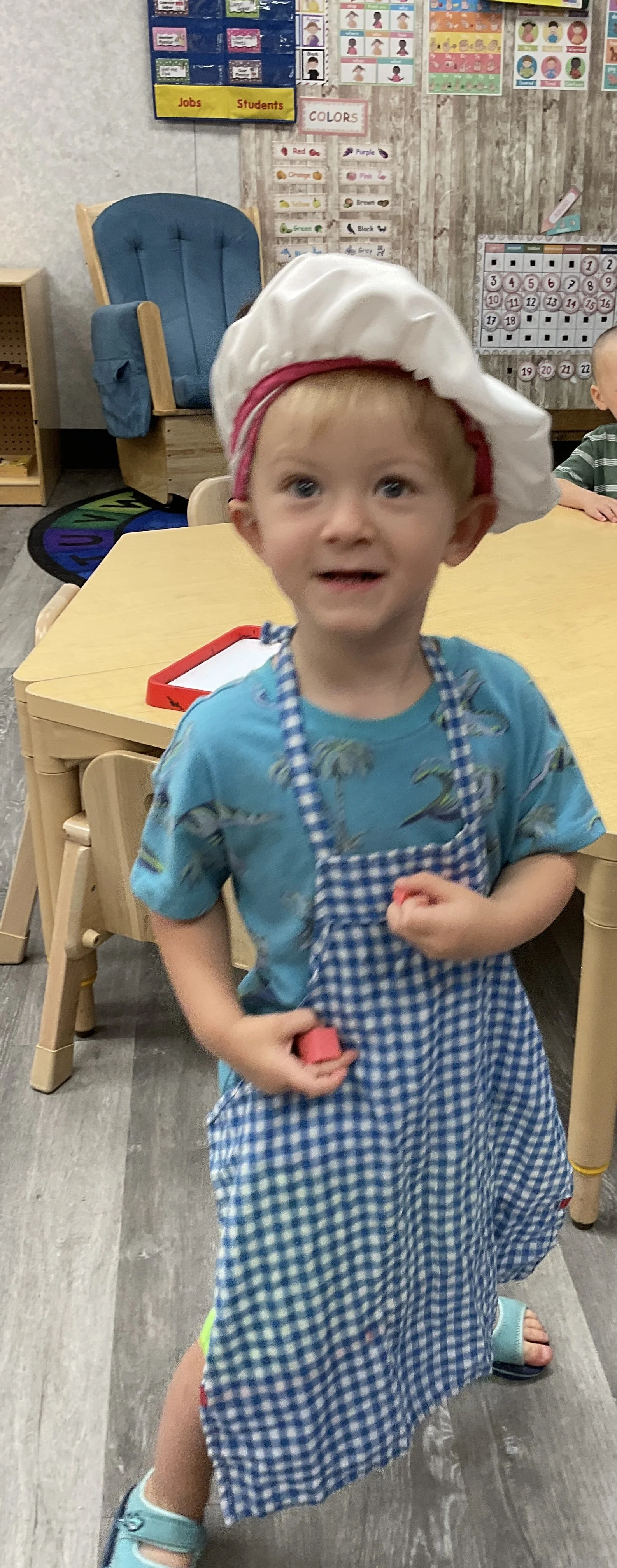 Welcome Back! We hope everyone had a wonderful summer! This morning, we read the book Mouse Loves School written by Lauren Thompson and illustrated by Buket Erdogan. Durning our music and movement time, we played with balloons! We made sure not to let them touch the floor and we played the game “The Floor is Lava”. Then, for our math and cognition lesson, we had to gather the correct amount of school supplies the number called for. Next, during our science and sensory lesson, we used stamps shaped like school supplies to make a back-to-school picture. Finally, for our fine motor and literacy lesson, we listened to a book on tape.