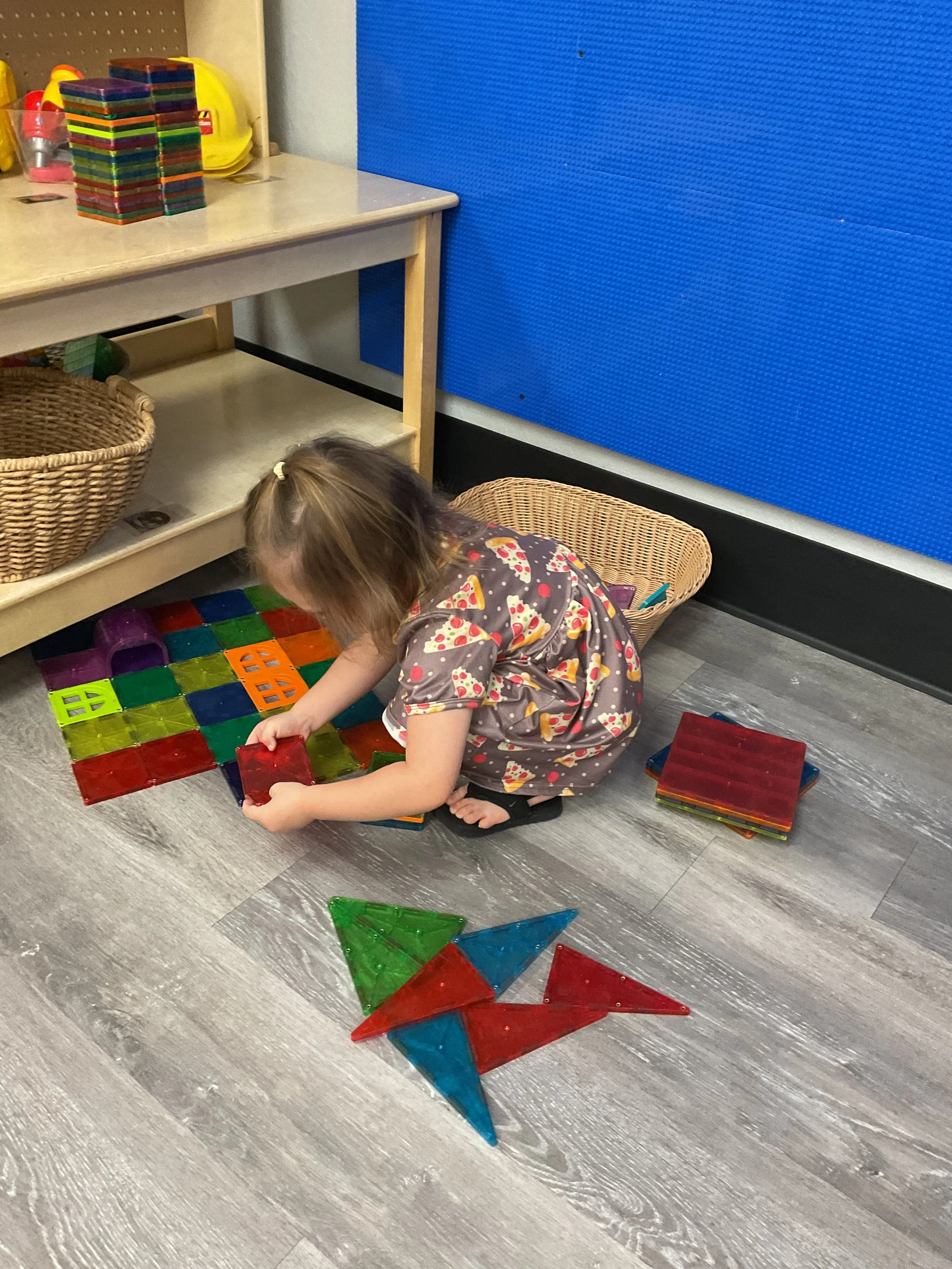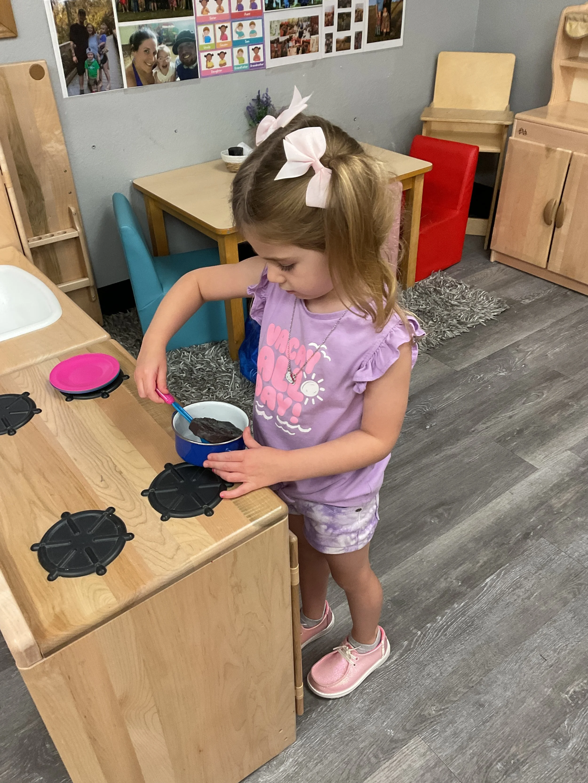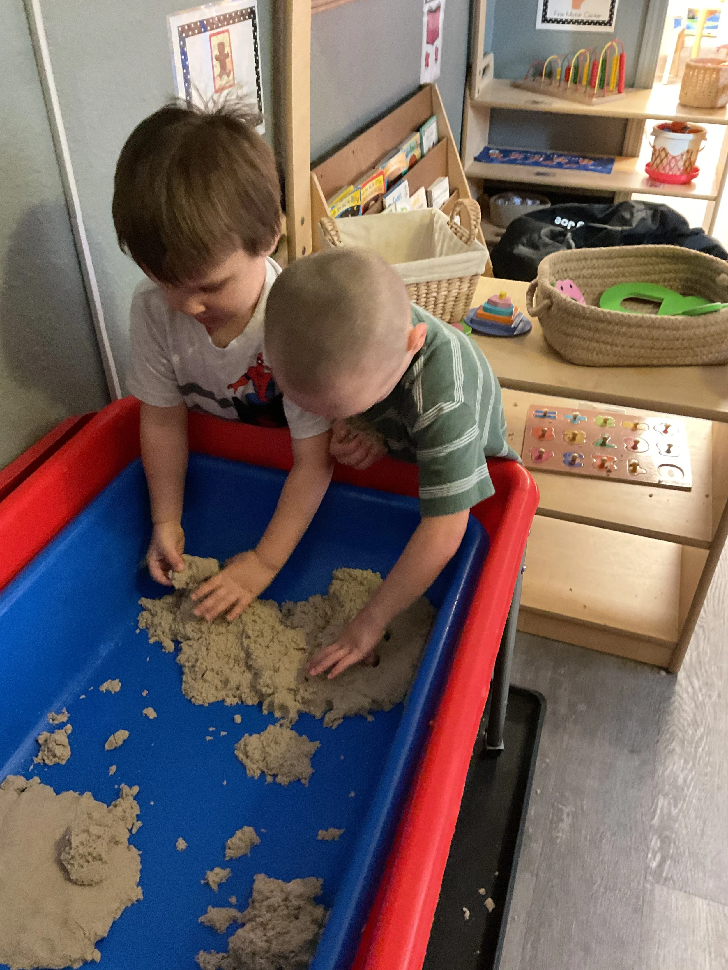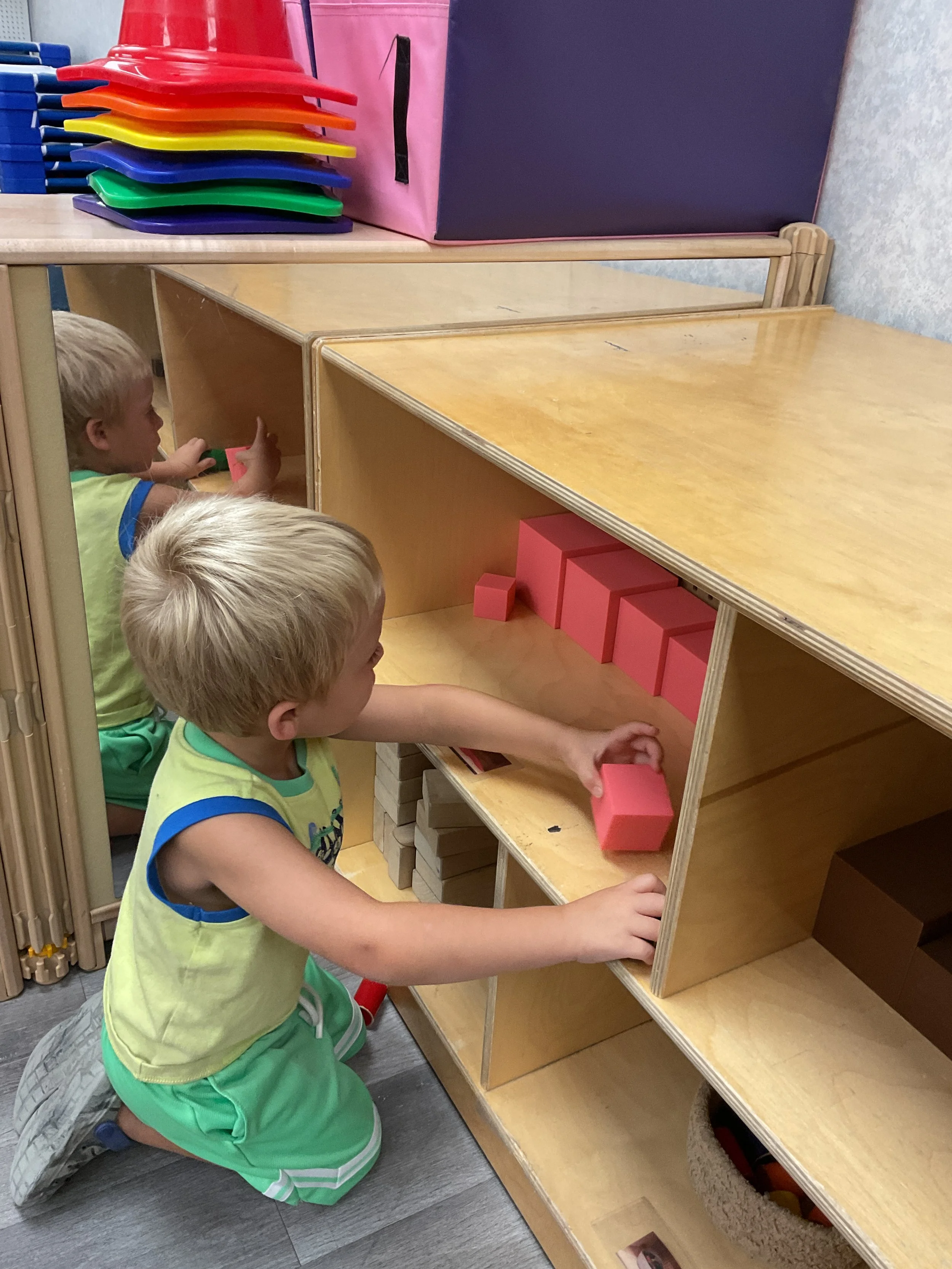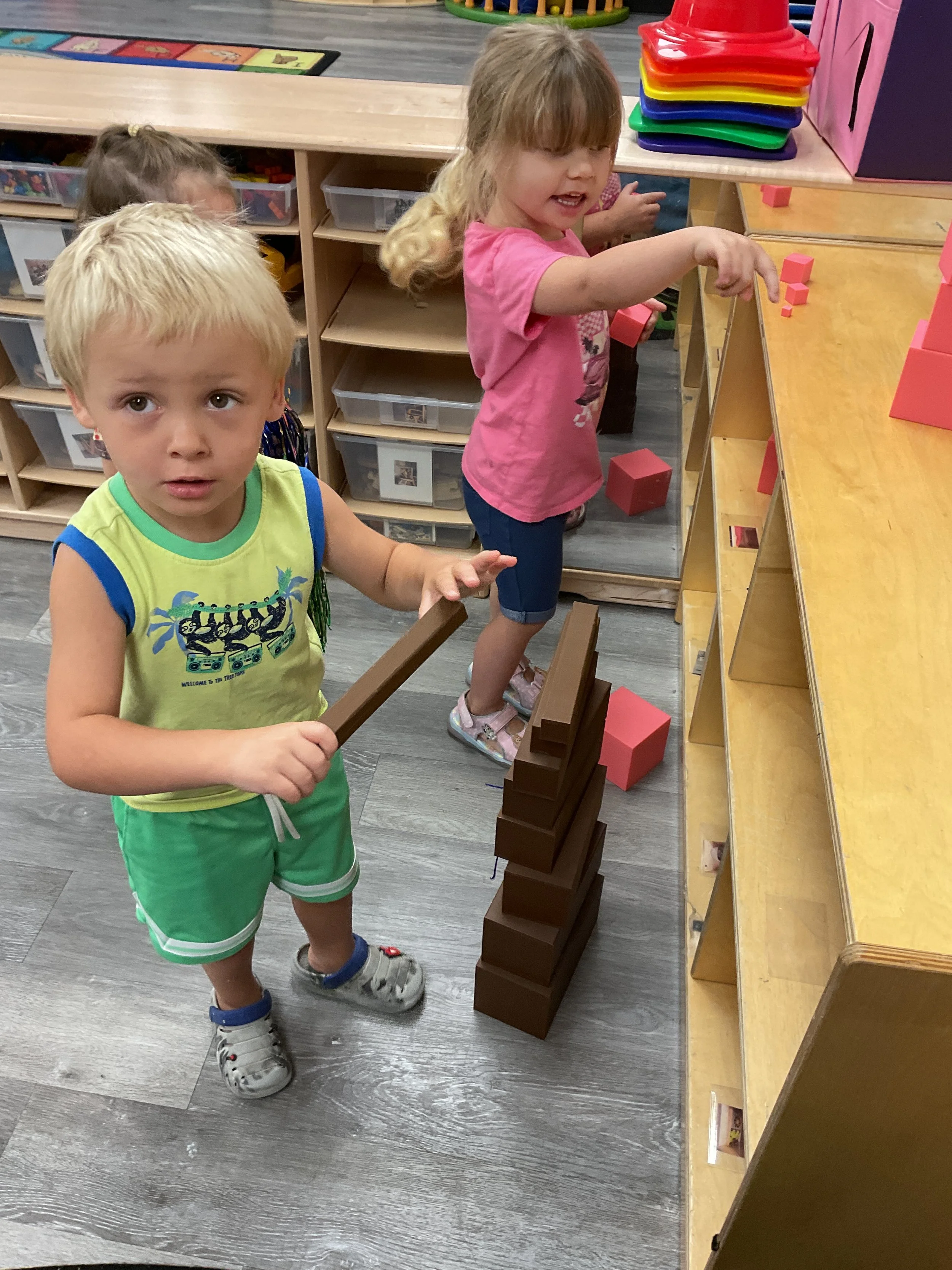 Welcome Back! We hope everyone had a wonderful summer! This morning, we read the book Mouse Loves School written by Lauren Thompson and illustrated by Buket Erdogan. Durning our music and movement time, we played with balloons! We made sure not to let them touch the floor and we played the game “The Floor is Lava”. Then, for our math and cognition lesson, we had to gather the correct amount of school supplies the number called for. Next, during our science and sensory lesson, we used stamps shaped like school supplies to make a back-to-school picture. Finally, for our fine motor and literacy lesson, we listened to a book on tape.