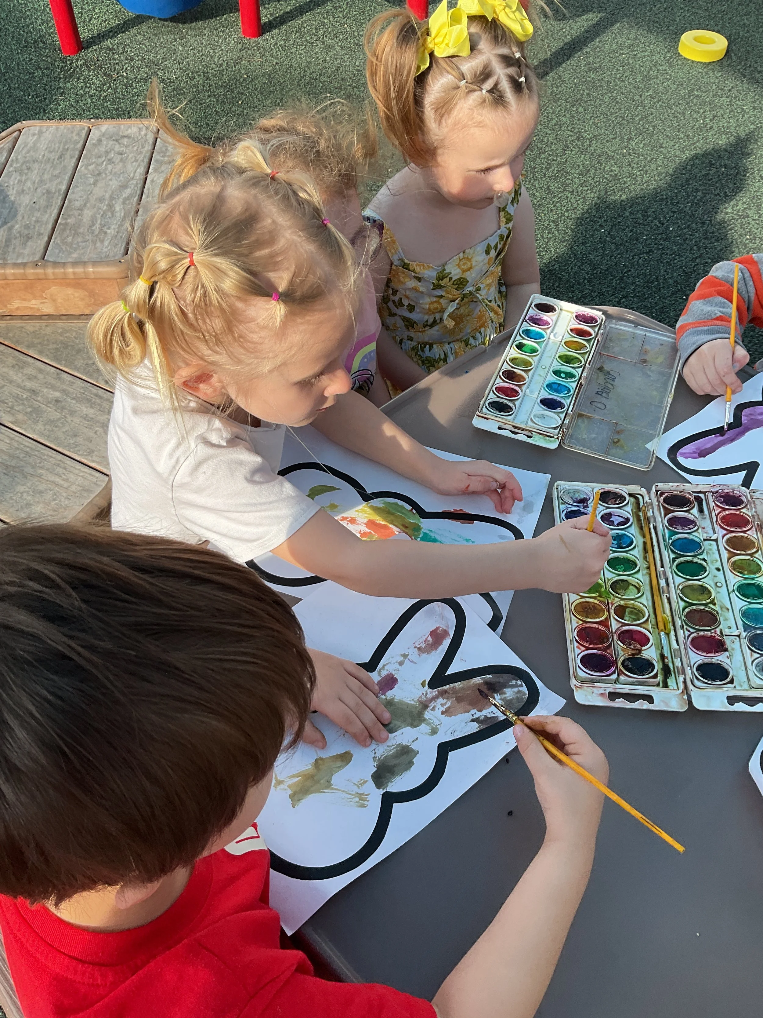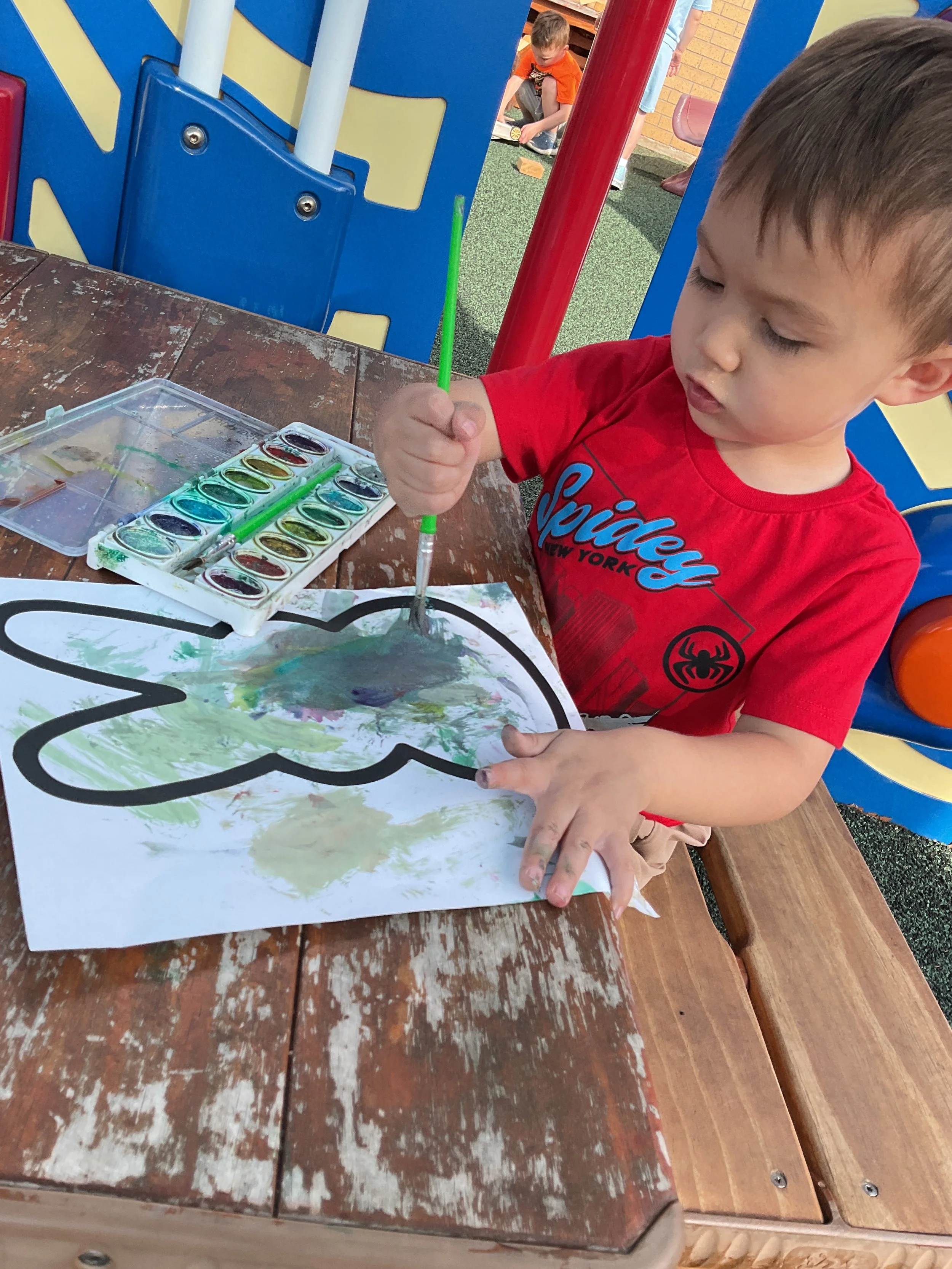 This morning, we read the book Scrambled Feelings Eggspressions written by Sandy Watson and illustrated by Pat Bidwell. During our music and movement time, we went to the playground to dance! Then, during our math and cognition lesson, we talked about the feelings of the eggs from our morning story. We looked at the faces on the eggs and identified why the face was sad, happy, shy, etc. Next, for our science and sensory lesson, we used watercolor paints to paint bunnies. Finally, for our literacy and fine motor lesson, we listened to a book on tape.