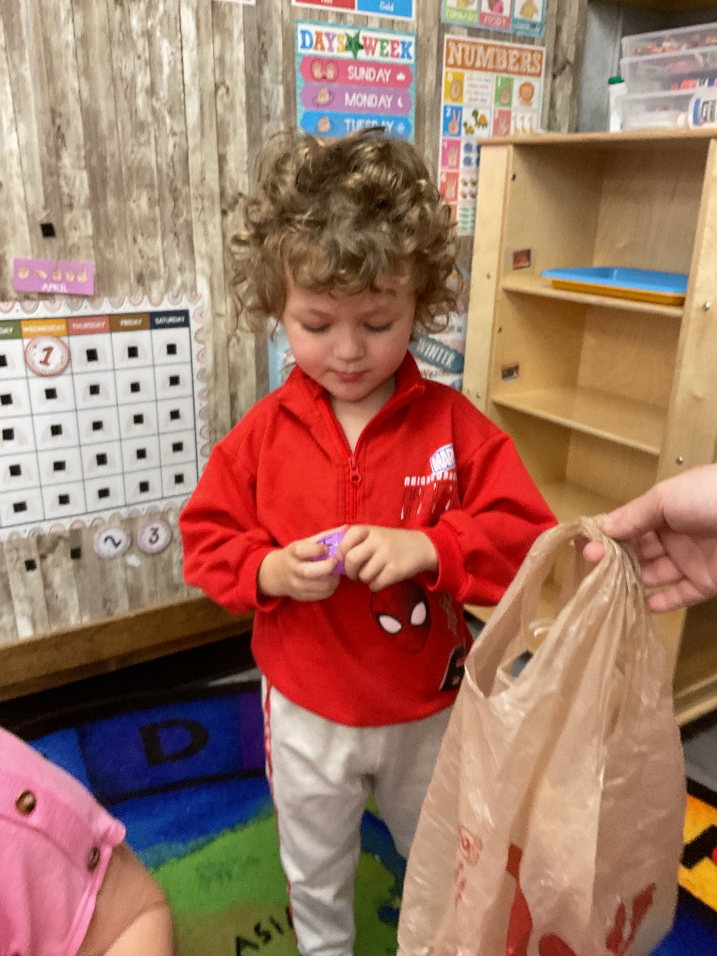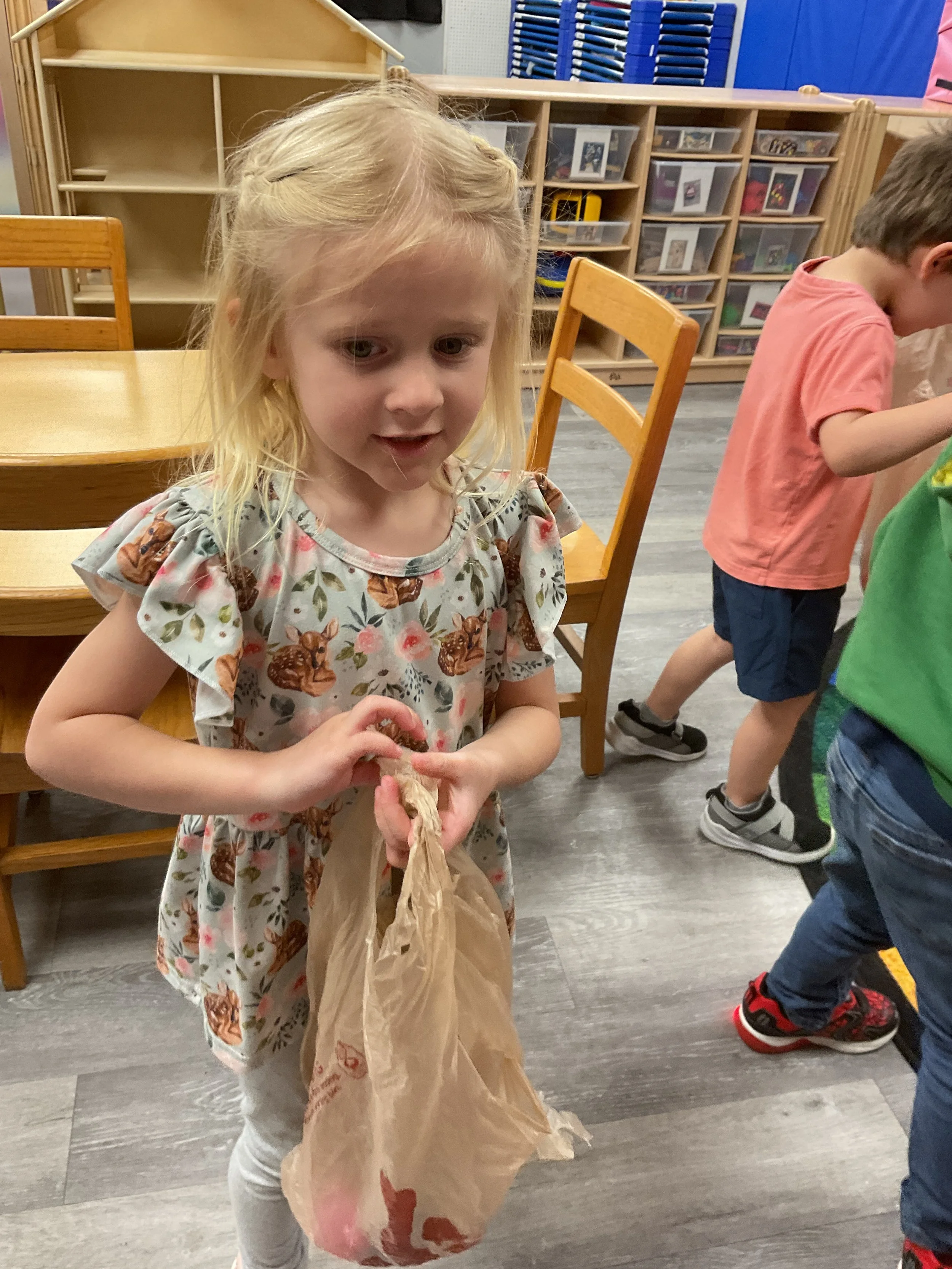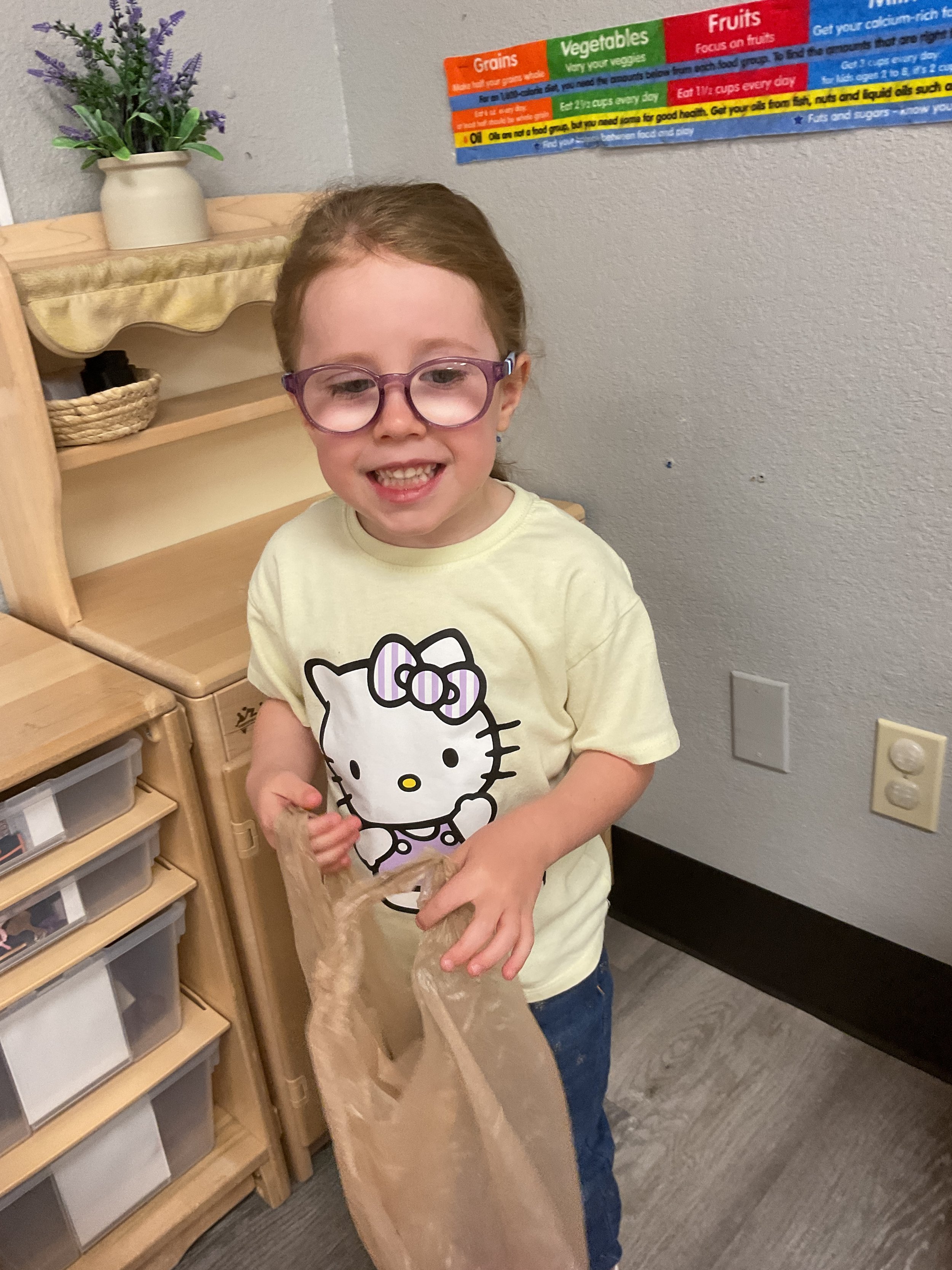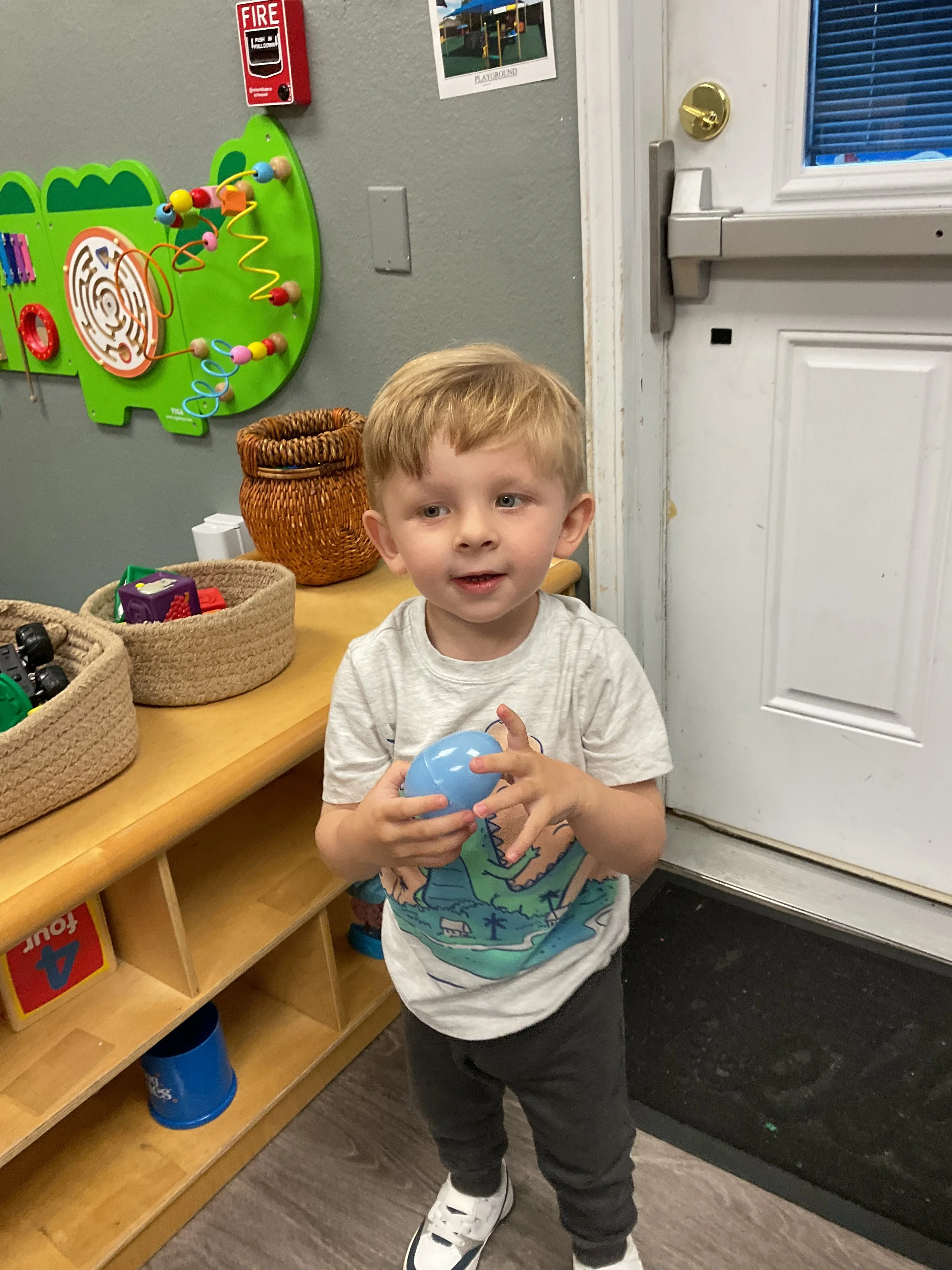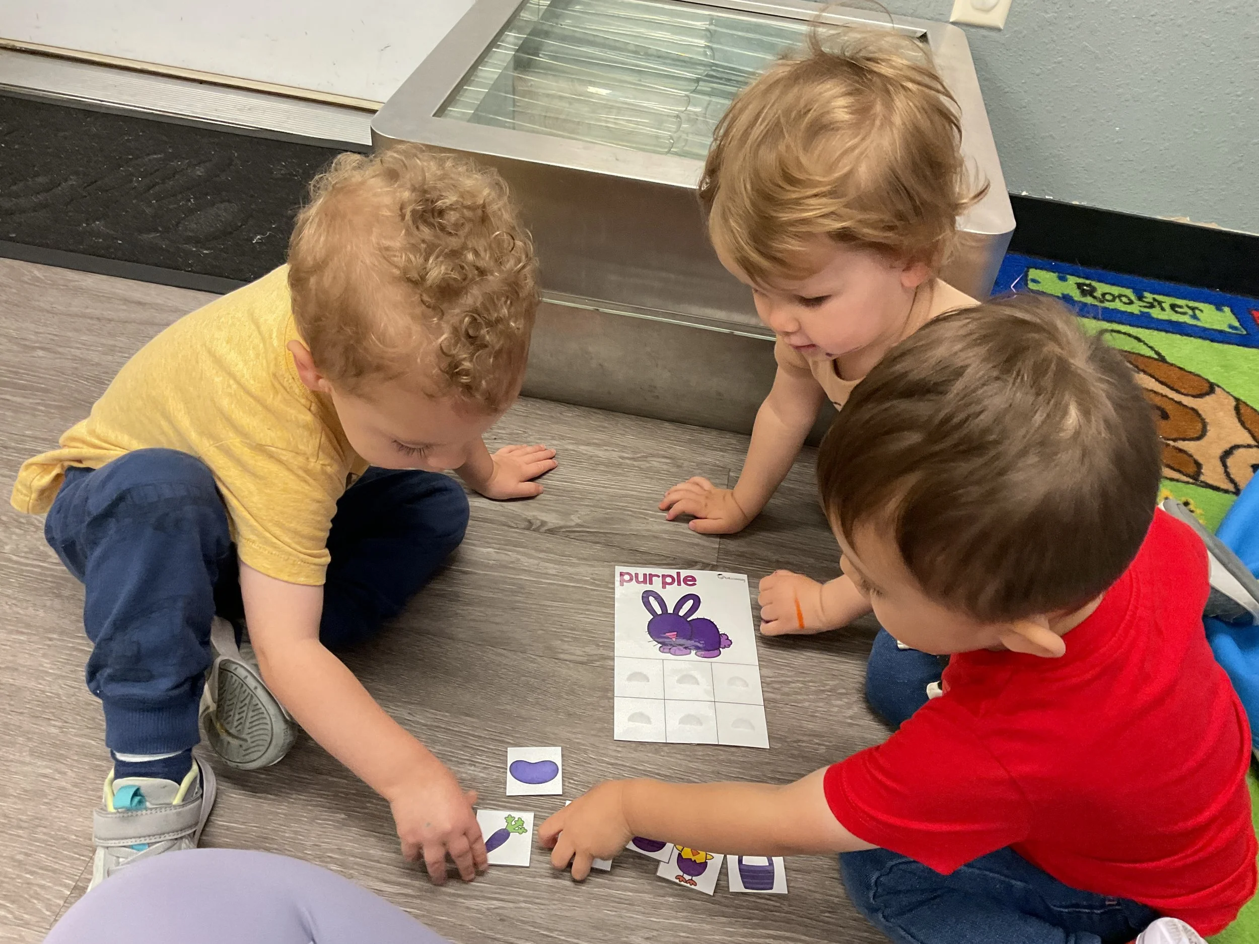 This morning, we read the book The Night Before Easter written by Natasha Wing and illustrated by Kathy Couri. During our music and movement time, we did yoga, some Danny Go, and the Roller Coaster song. Then, during our math and cognition lesson, we did paper weaving. Next, for our science and sensory lesson, we used playdough to make bunnies and eggs. Finally, for our literacy and fine motor lesson, we sharpened our cutting skills. The highlight of our day was our Easter Egg hunt!