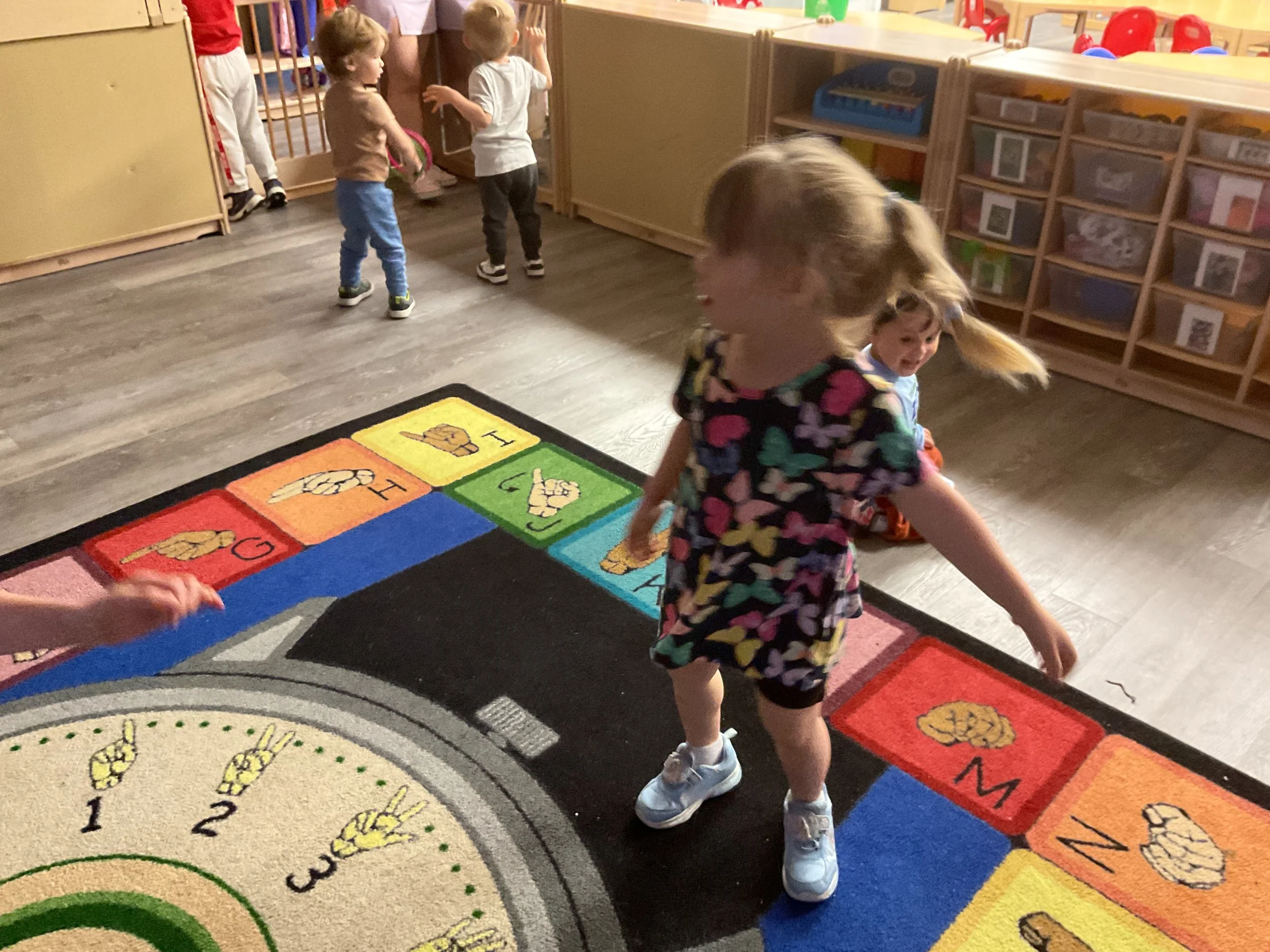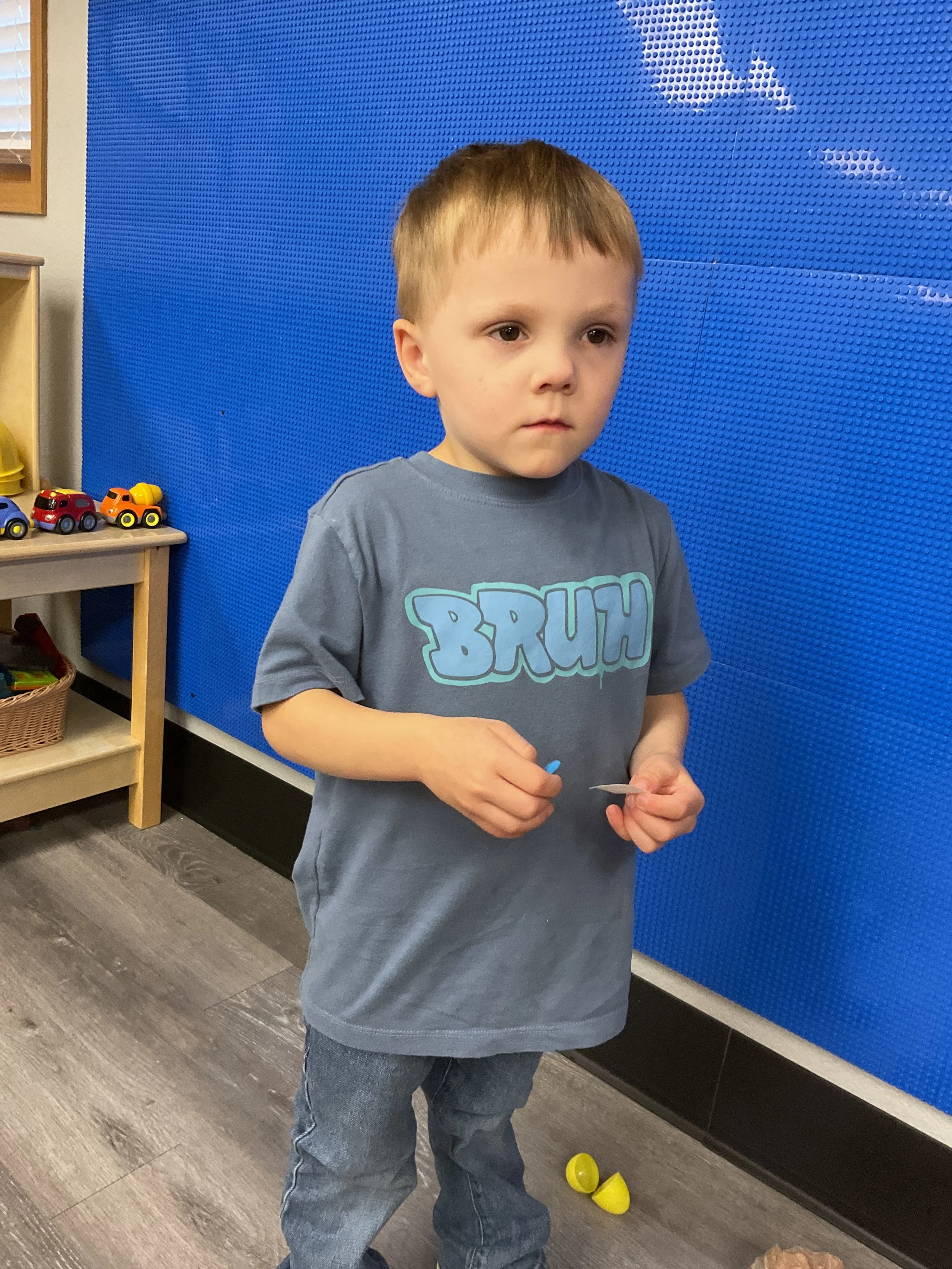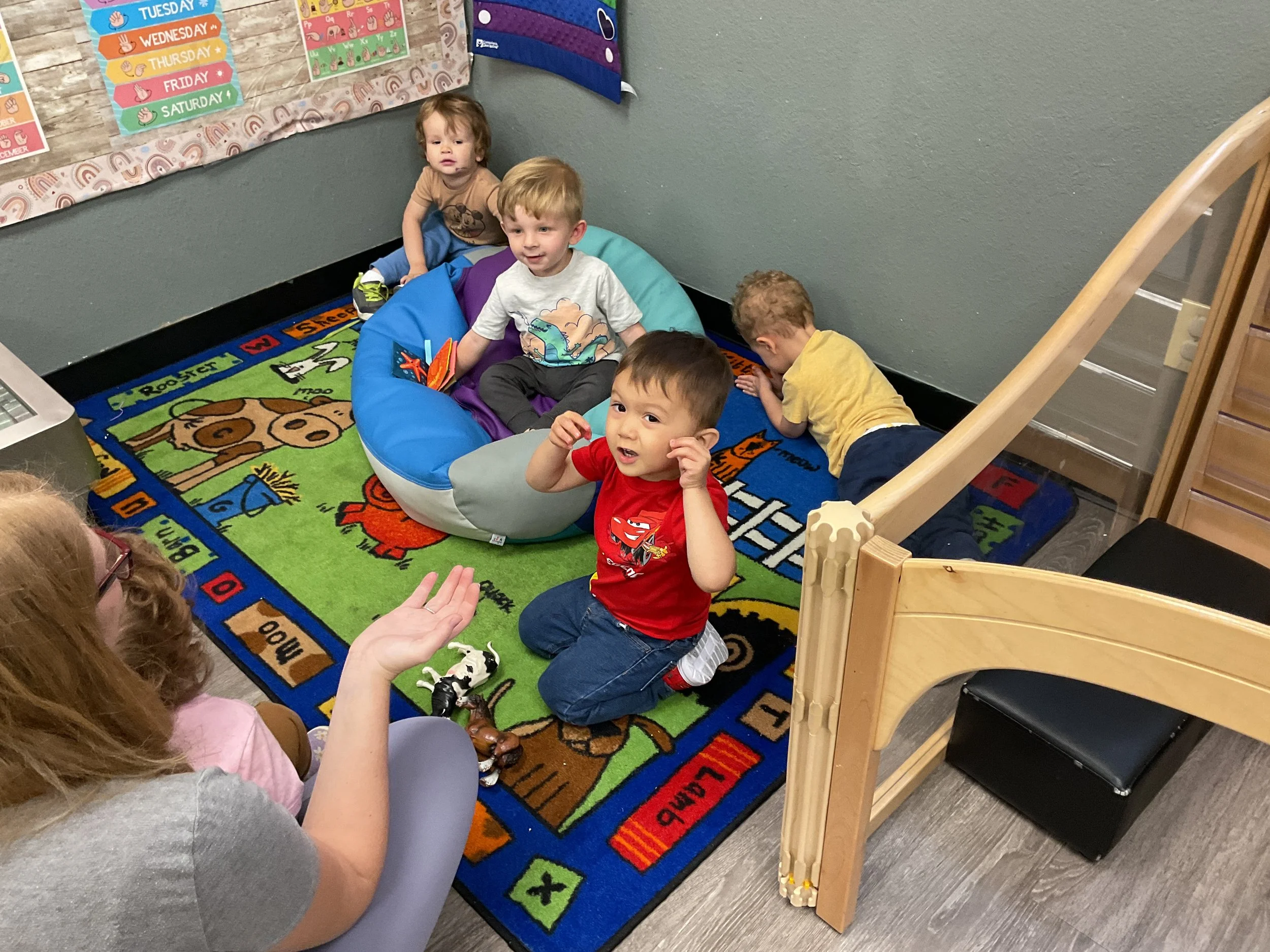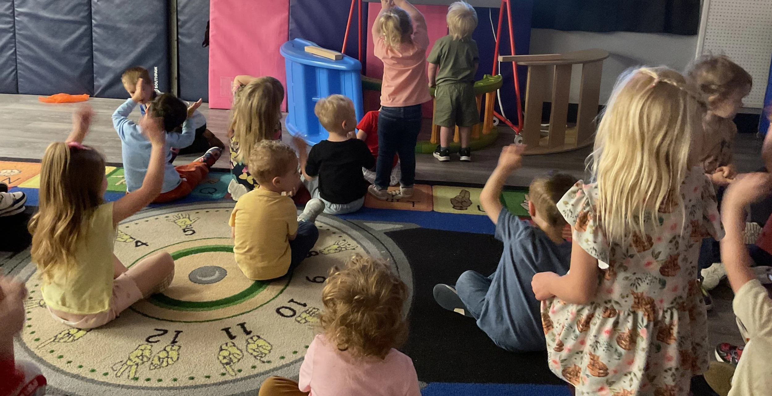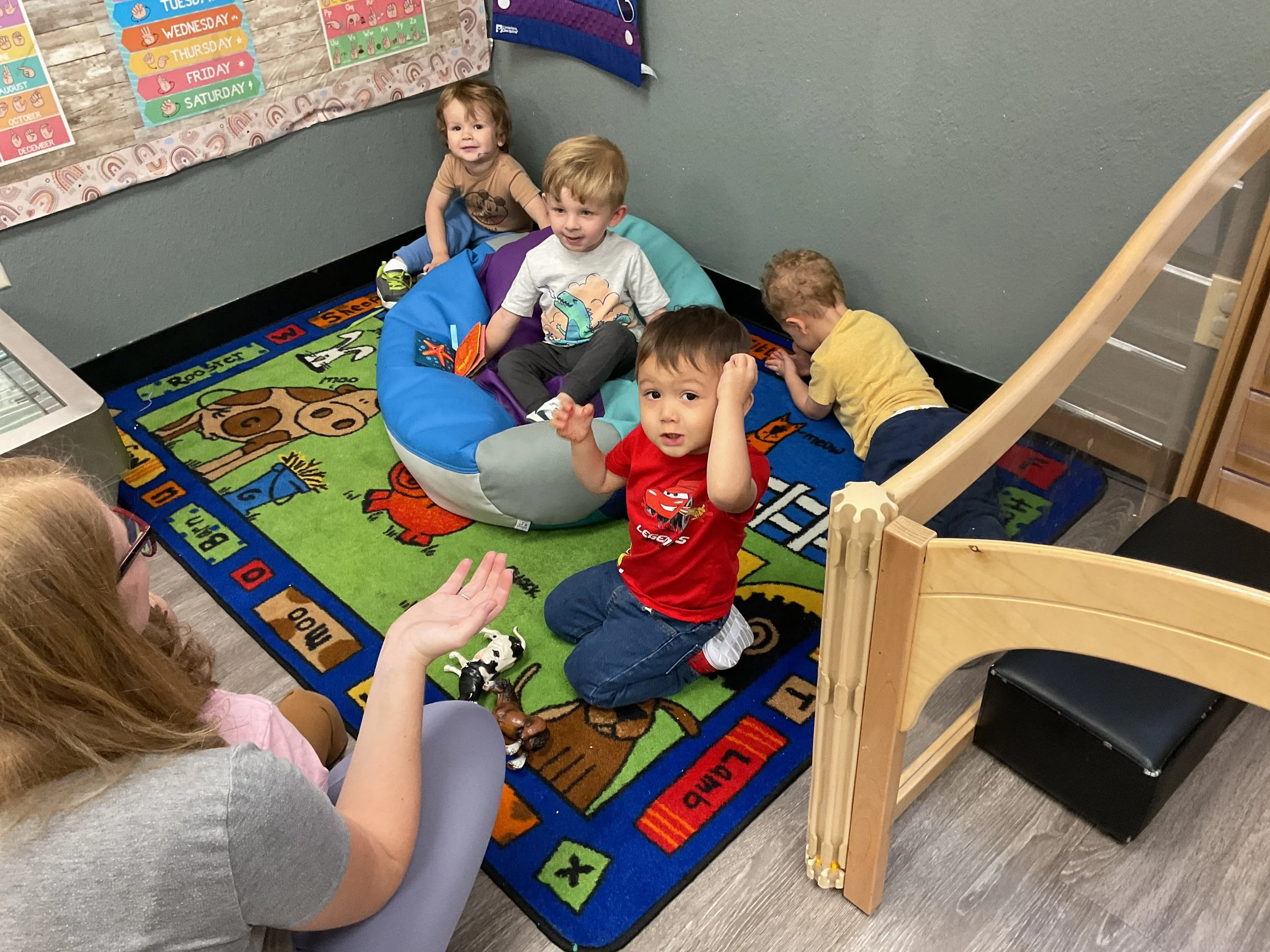 This morning, we read the book The Night Before Easter written by Natasha Wing and illustrated by Kathy Couri. During our music and movement time, we did yoga, some Danny Go, and the Roller Coaster song. Then, during our math and cognition lesson, we did paper weaving. Next, for our science and sensory lesson, we used playdough to make bunnies and eggs. Finally, for our literacy and fine motor lesson, we sharpened our cutting skills. The highlight of our day was our Easter Egg hunt!