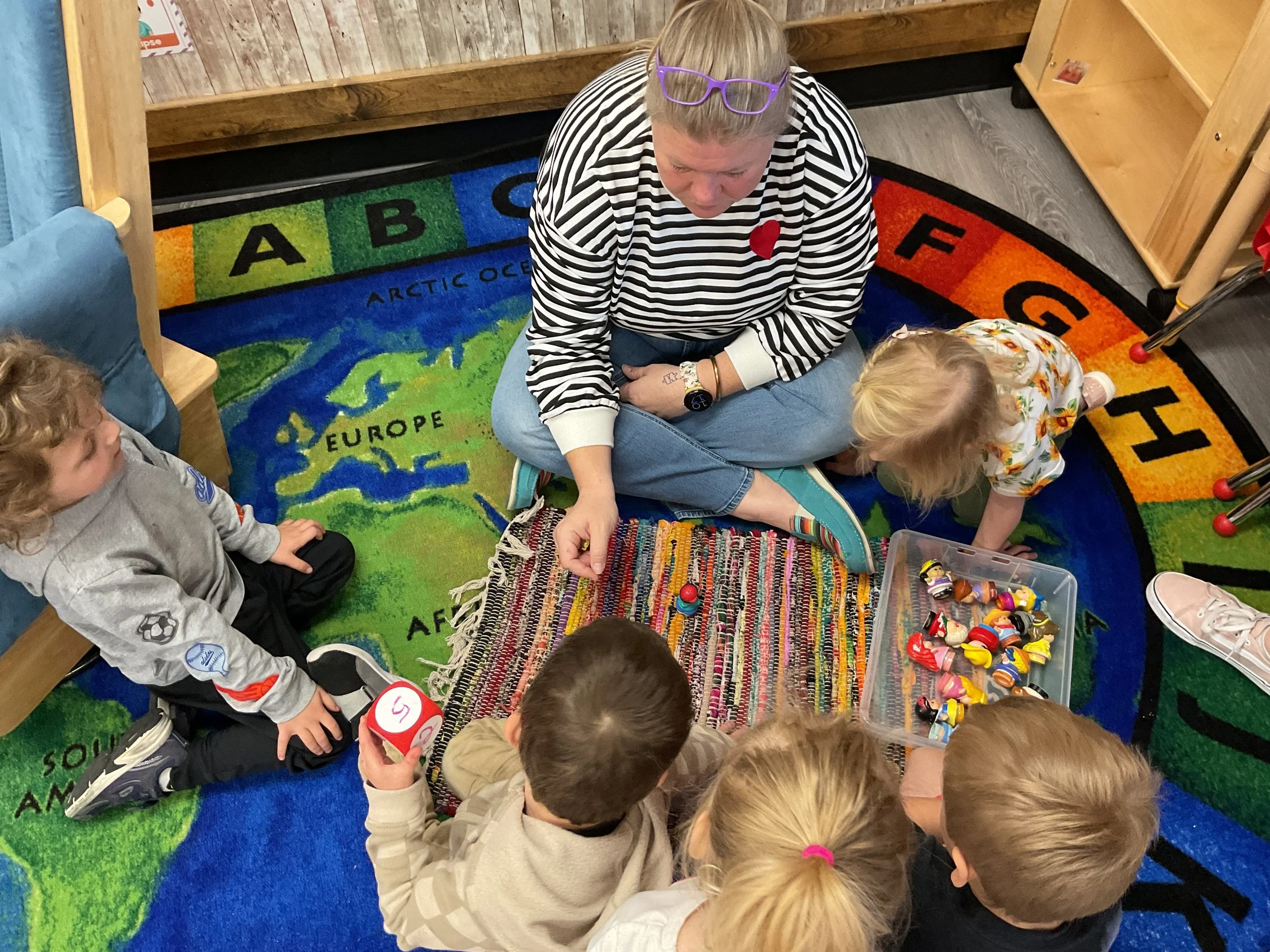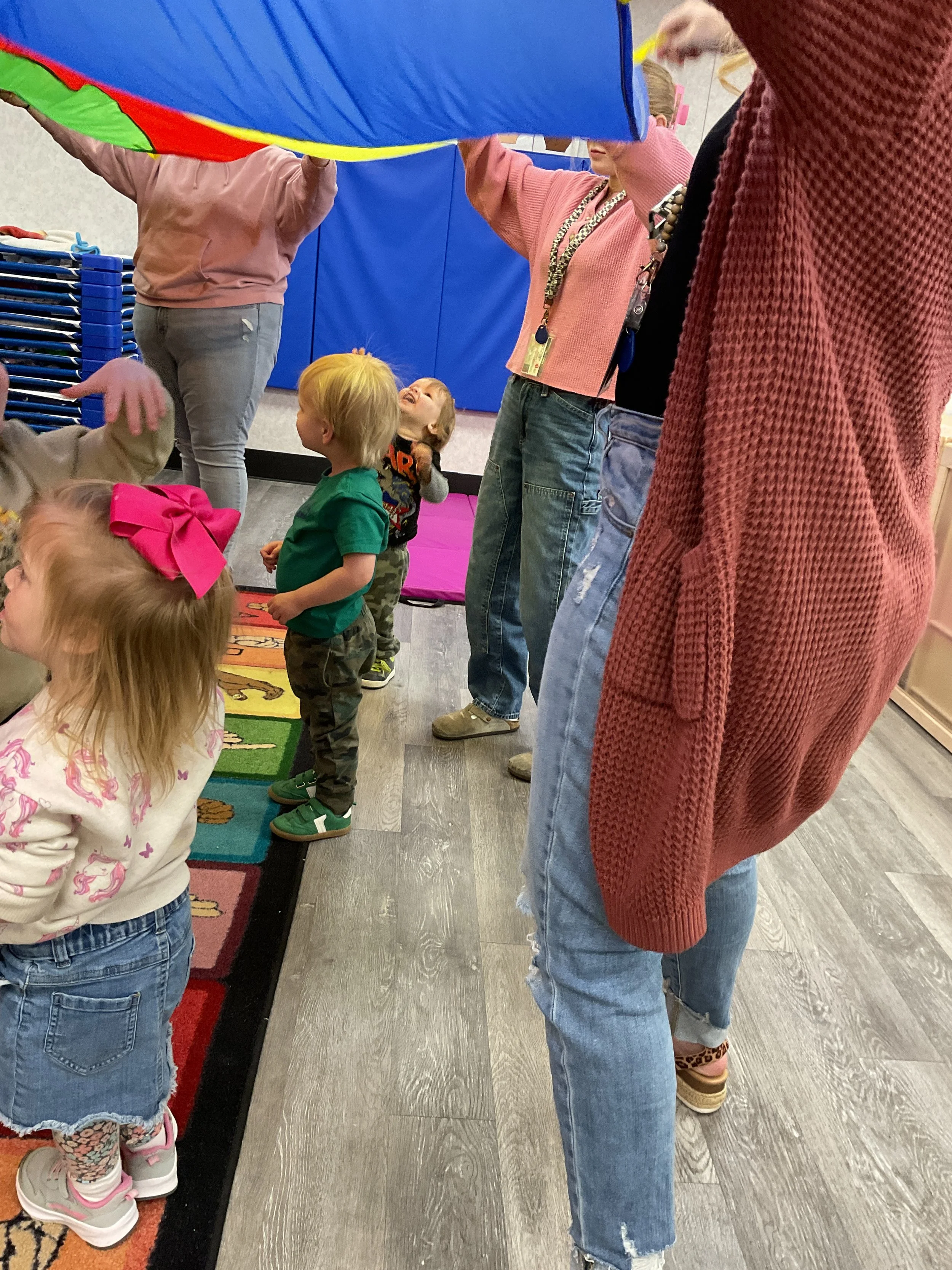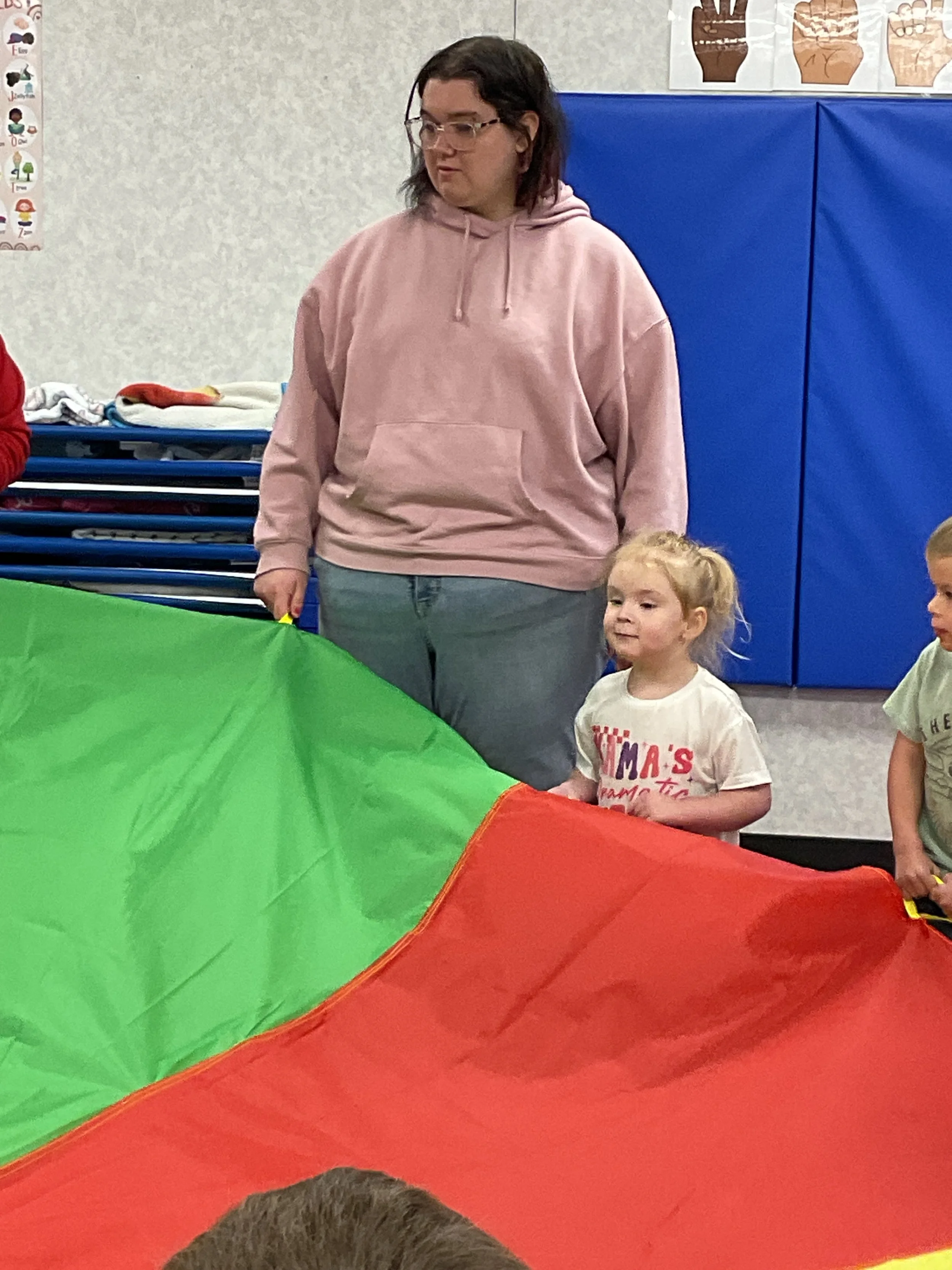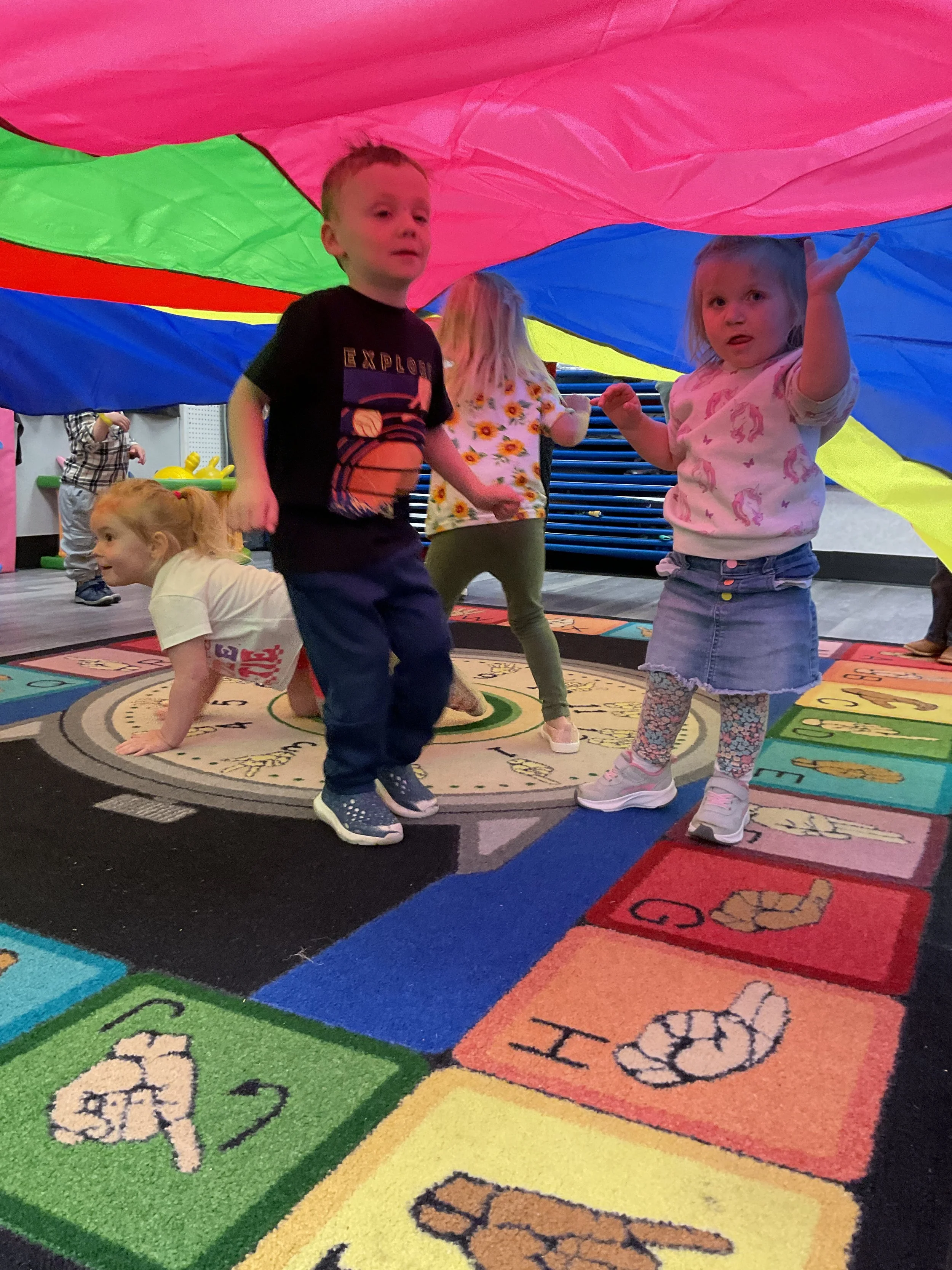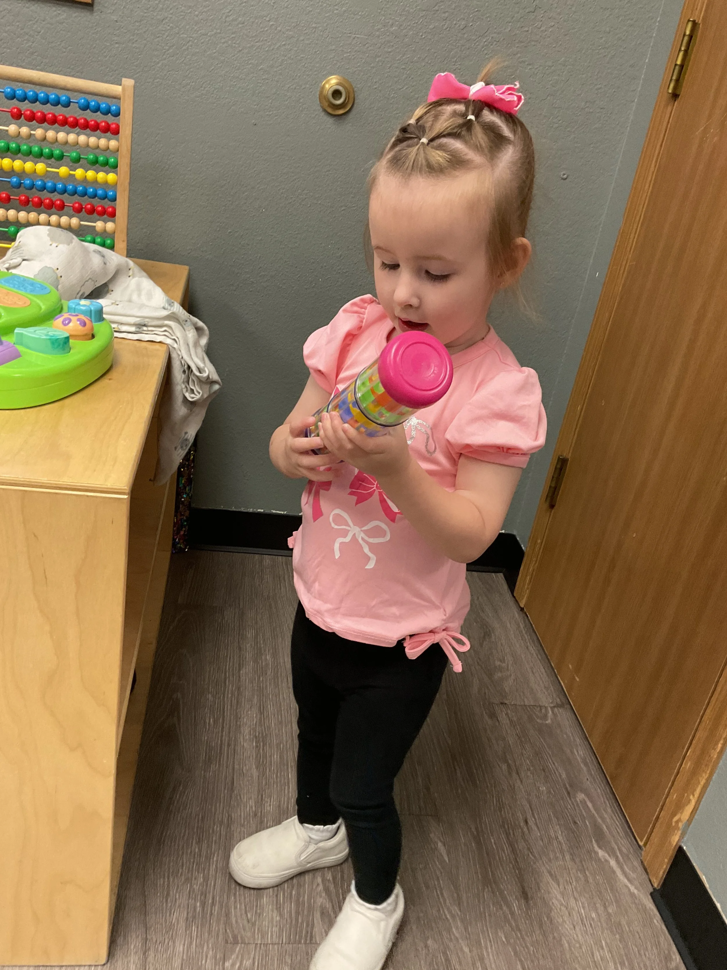 This morning, we read Walt Dinsey’s the Little Mermaid. We had a special visitor during our music and movement time! Nurse Katie from the health department came to talk to us about the importance of exercise. We played with a parachute and playground balls! Then, during our math and cognition lesson, we worked on simple addition using our fairytale little people. Next, for our science and sensory lesson, we watercolored a picture of a castle. Finally, for our literacy and fine motor lesson, we listened to a book on tape and practiced tracing and writing our names.