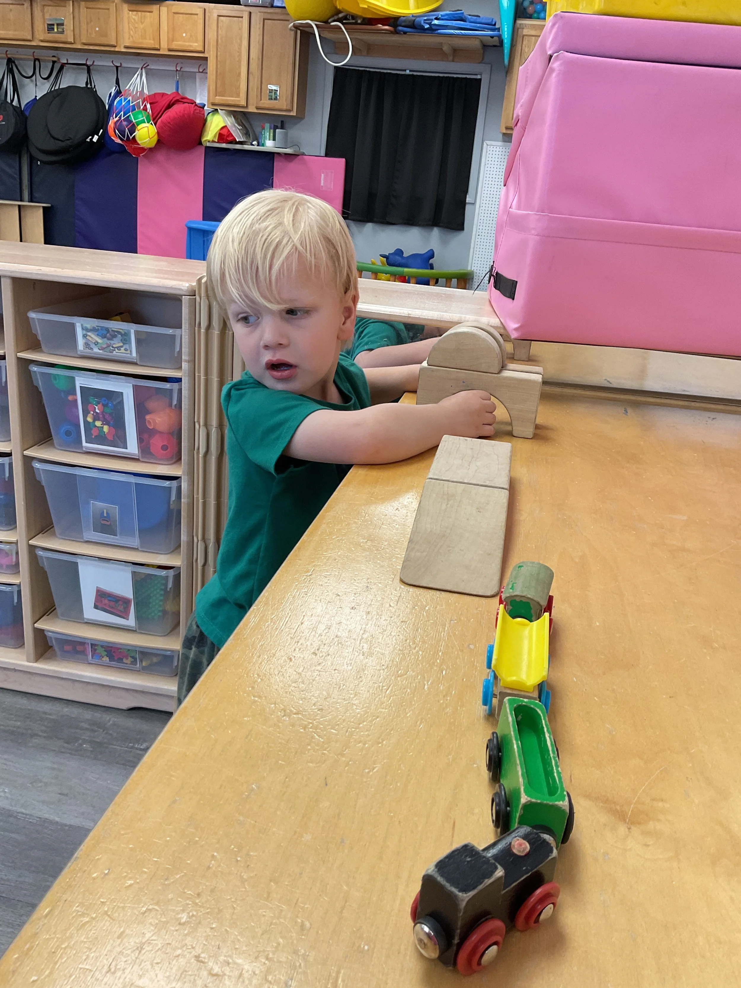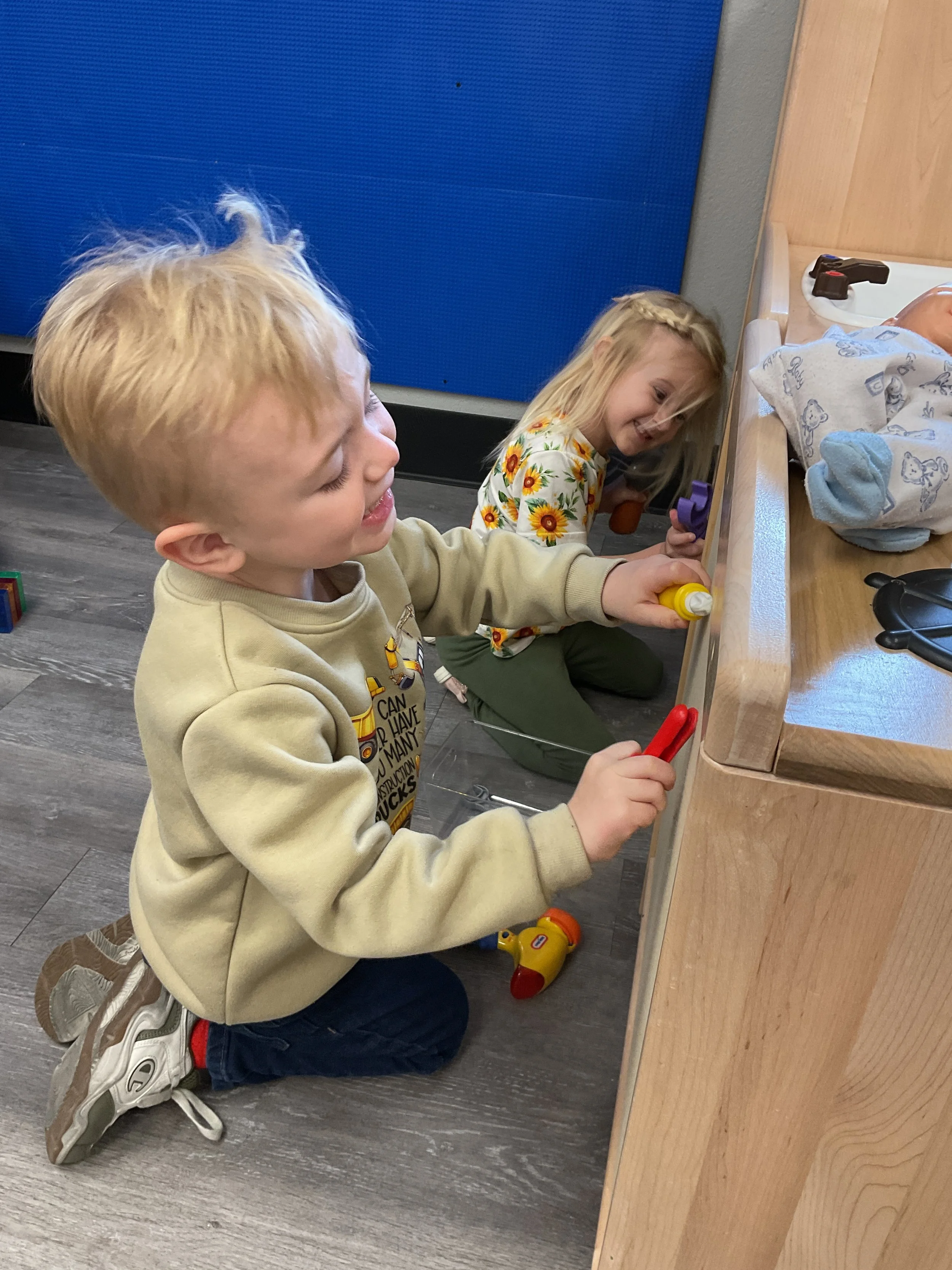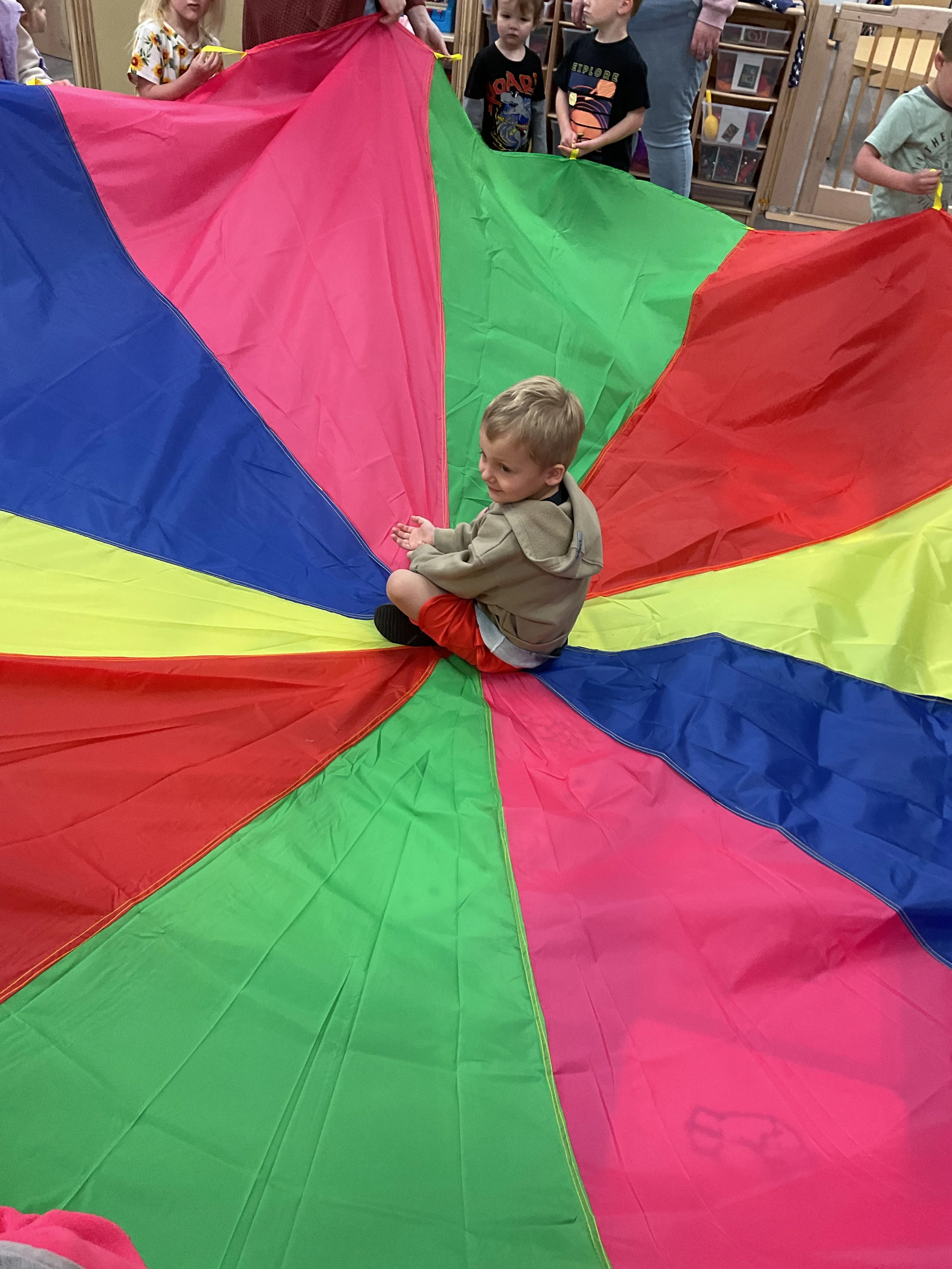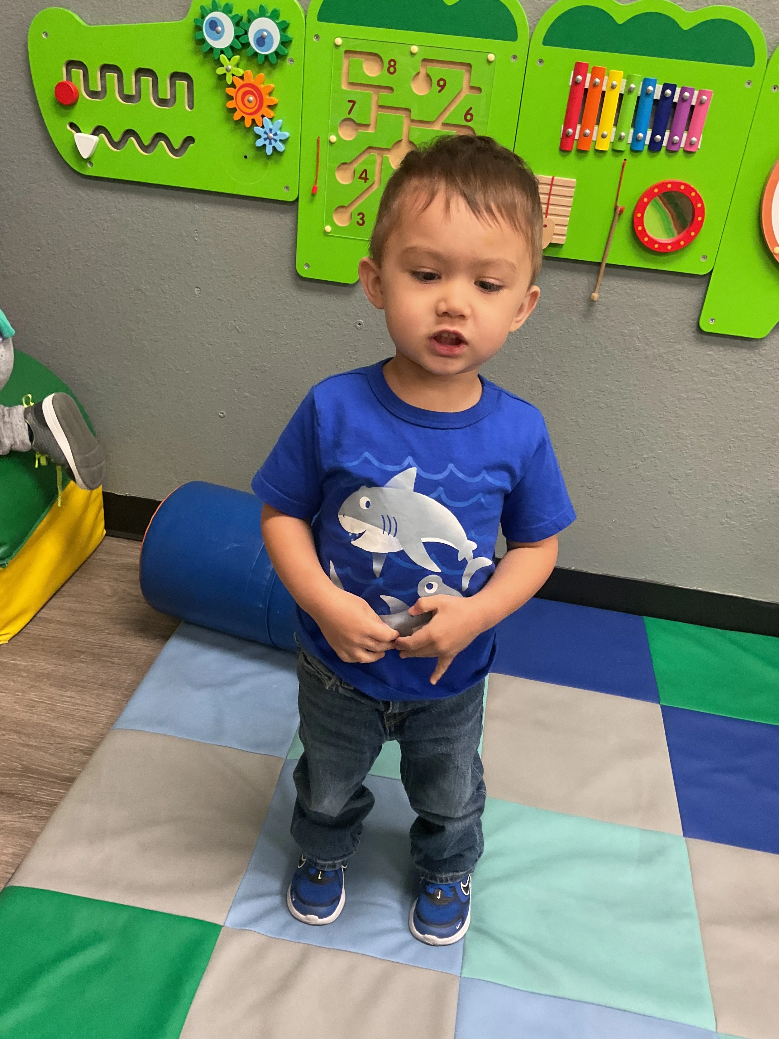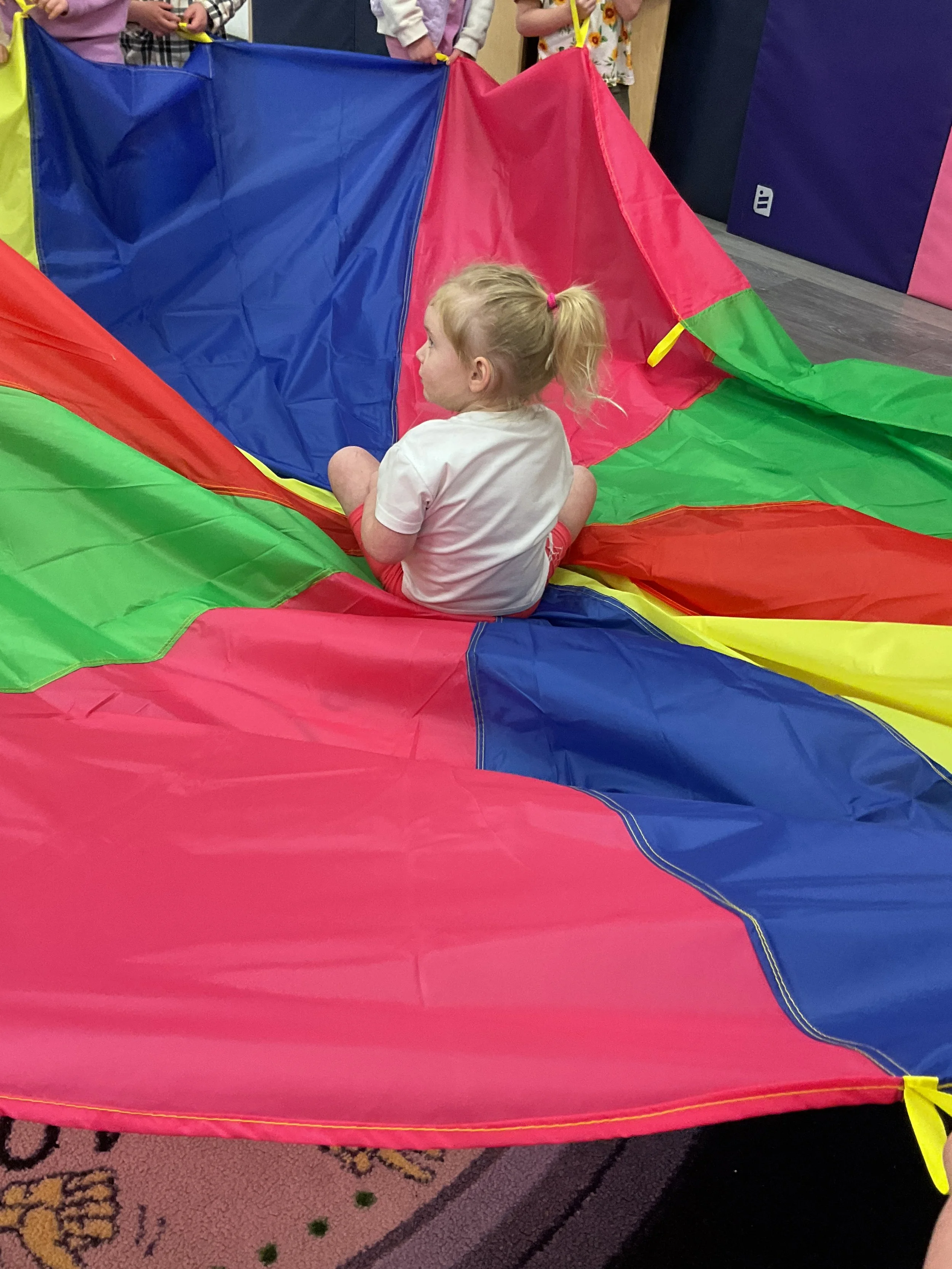This morning, we read Walt Dinsey’s the Little Mermaid. We had a special visitor during our music and movement time! Nurse Katie from the health department came to talk to us about the importance of exercise. We played with a parachute and playground balls! Then, during our math and cognition lesson, we worked on simple addition using our fairytale little people. Next, for our science and sensory lesson, we watercolored a picture of a castle. Finally, for our literacy and fine motor lesson, we listened to a book on tape and practiced tracing and writing our names.