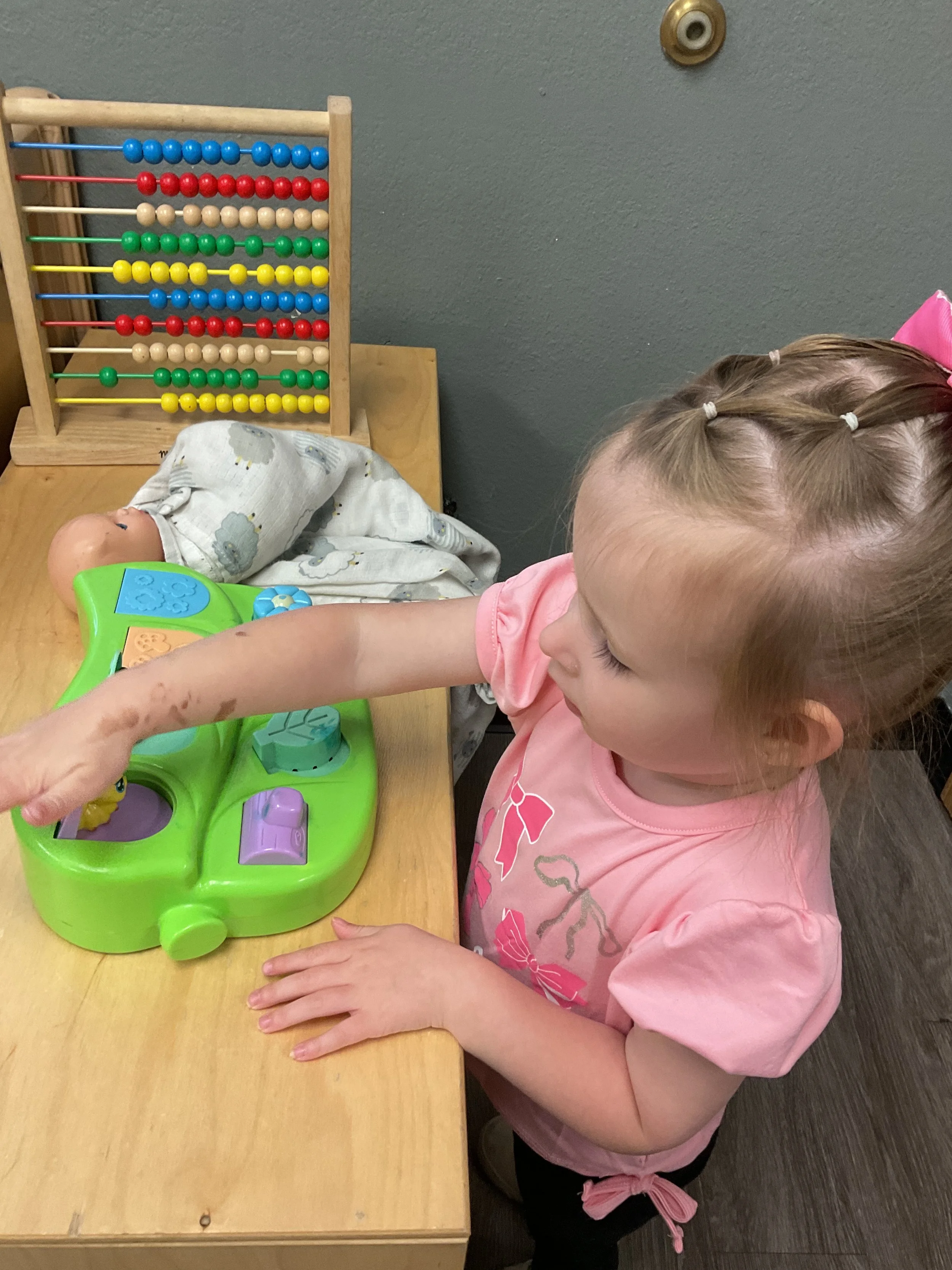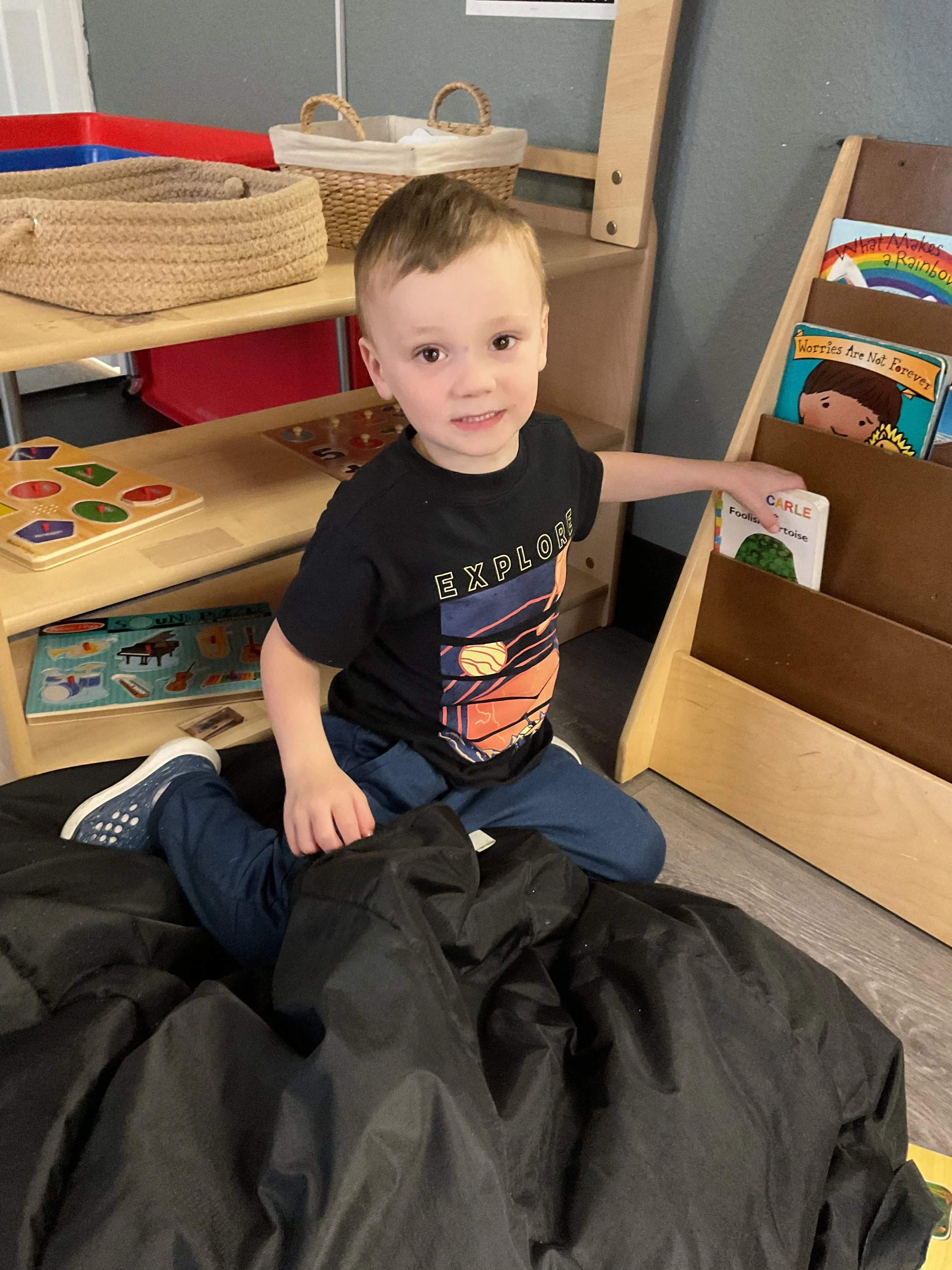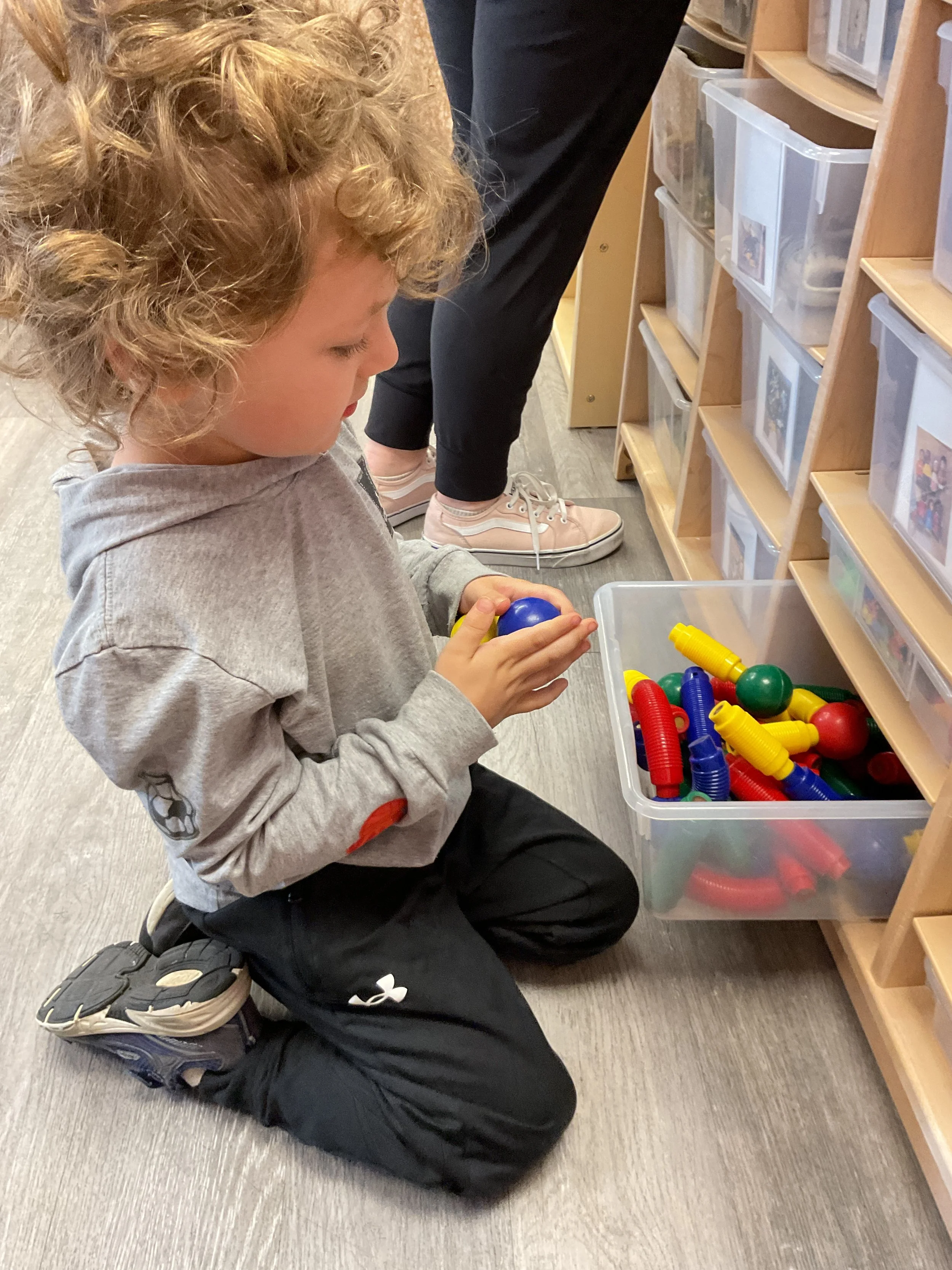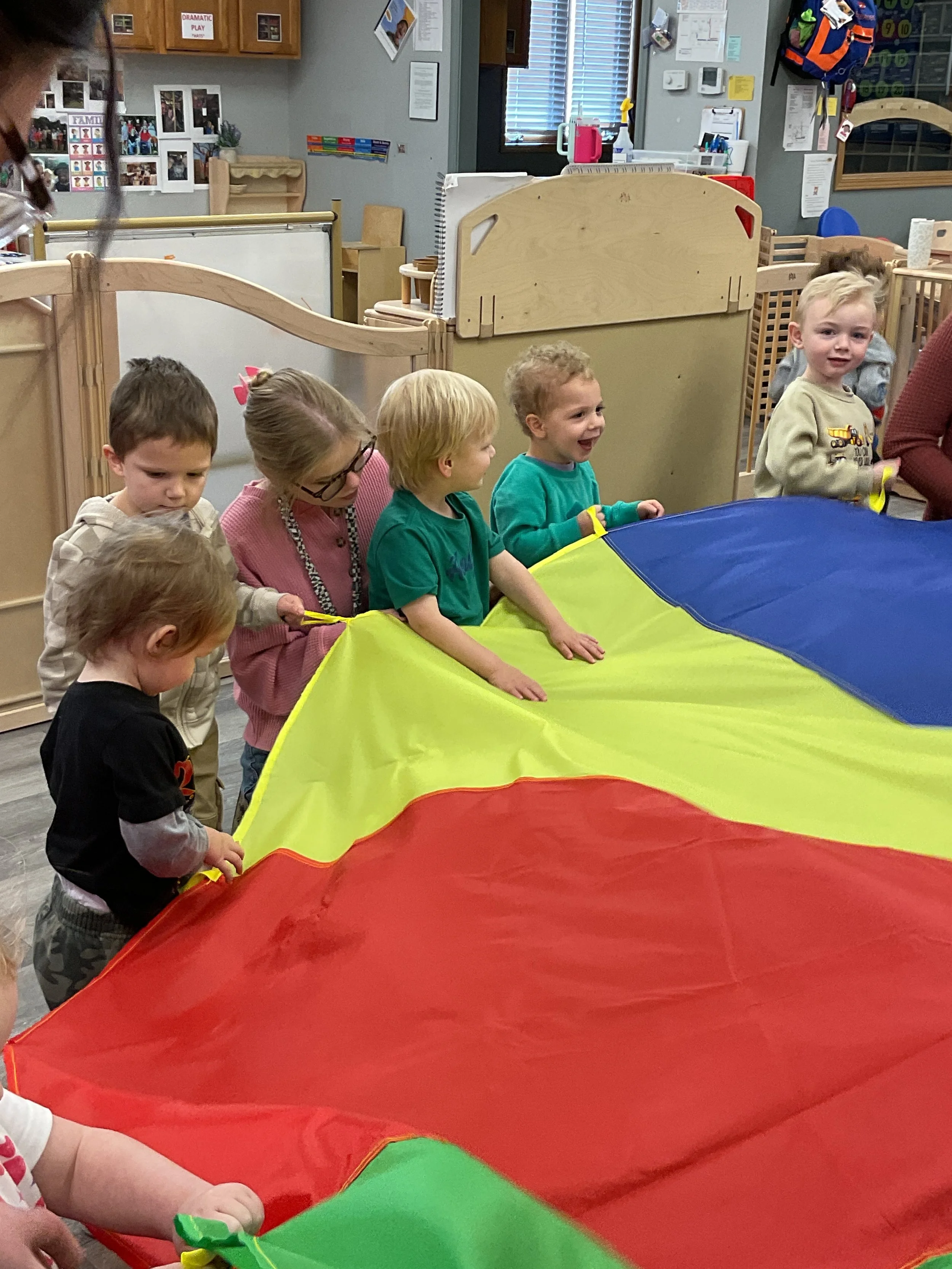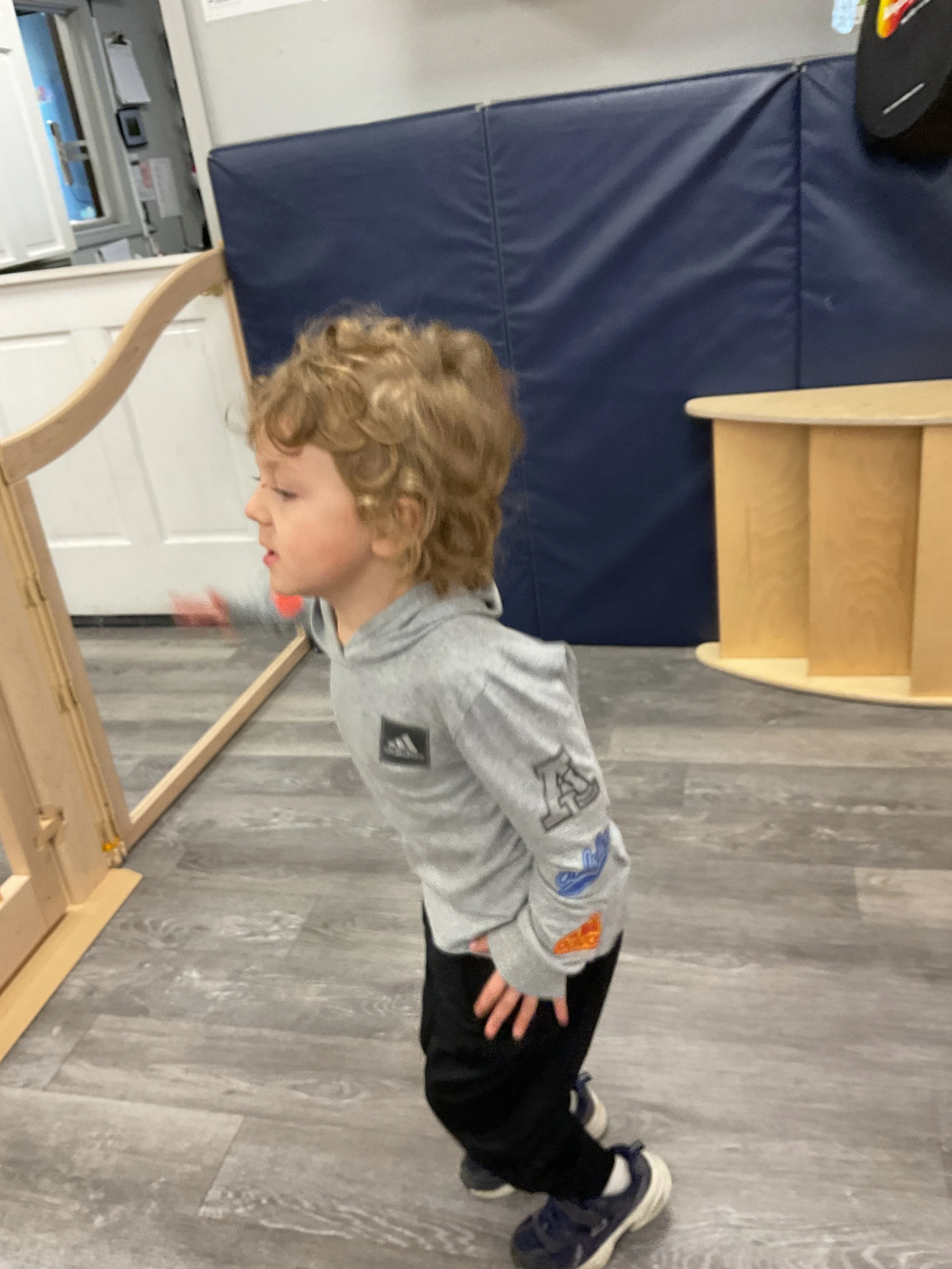 This morning, we read Walt Dinsey’s the Little Mermaid. We had a special visitor during our music and movement time! Nurse Katie from the health department came to talk to us about the importance of exercise. We played with a parachute and playground balls! Then, during our math and cognition lesson, we worked on simple addition using our fairytale little people. Next, for our science and sensory lesson, we watercolored a picture of a castle. Finally, for our literacy and fine motor lesson, we listened to a book on tape and practiced tracing and writing our names.