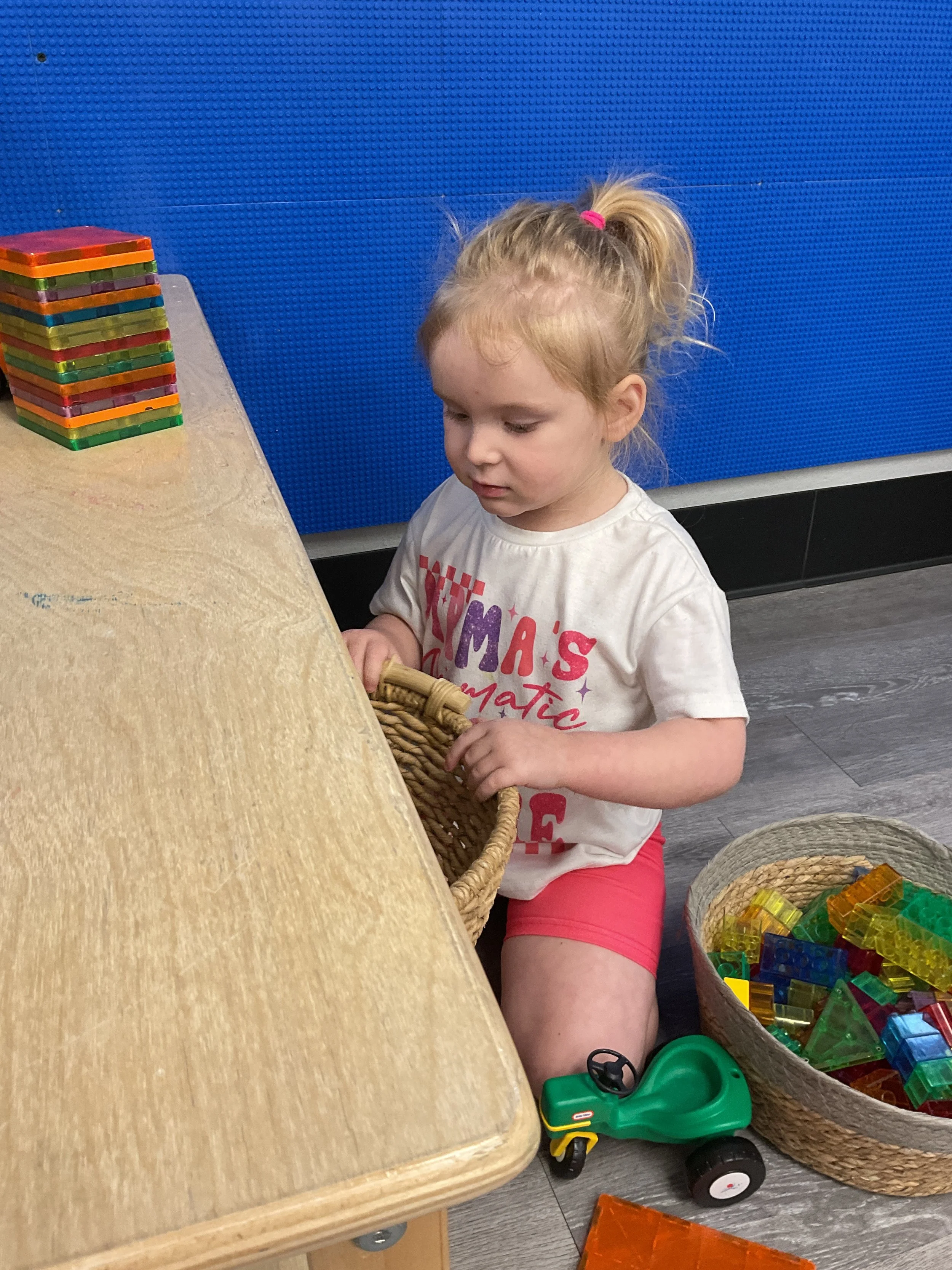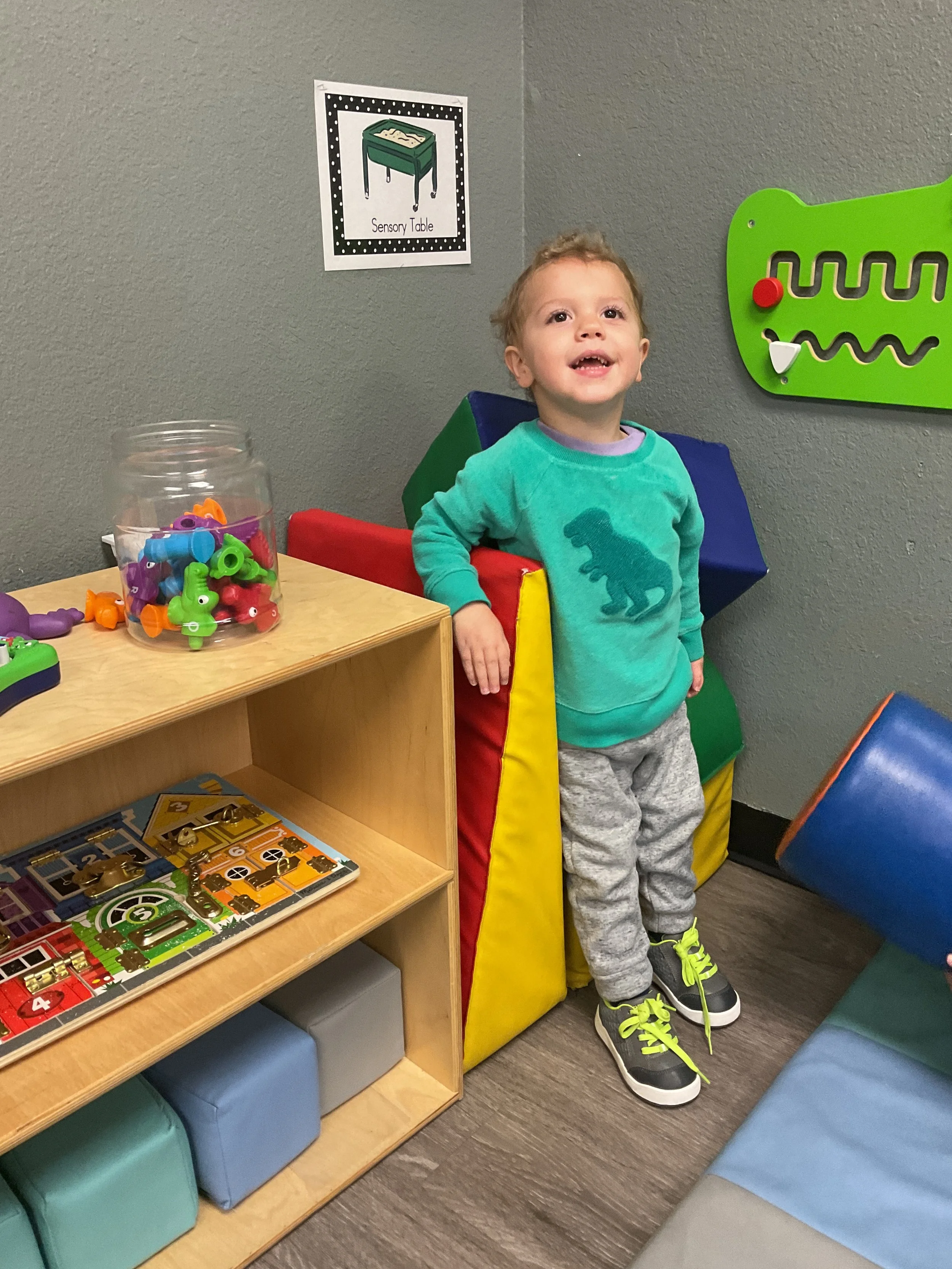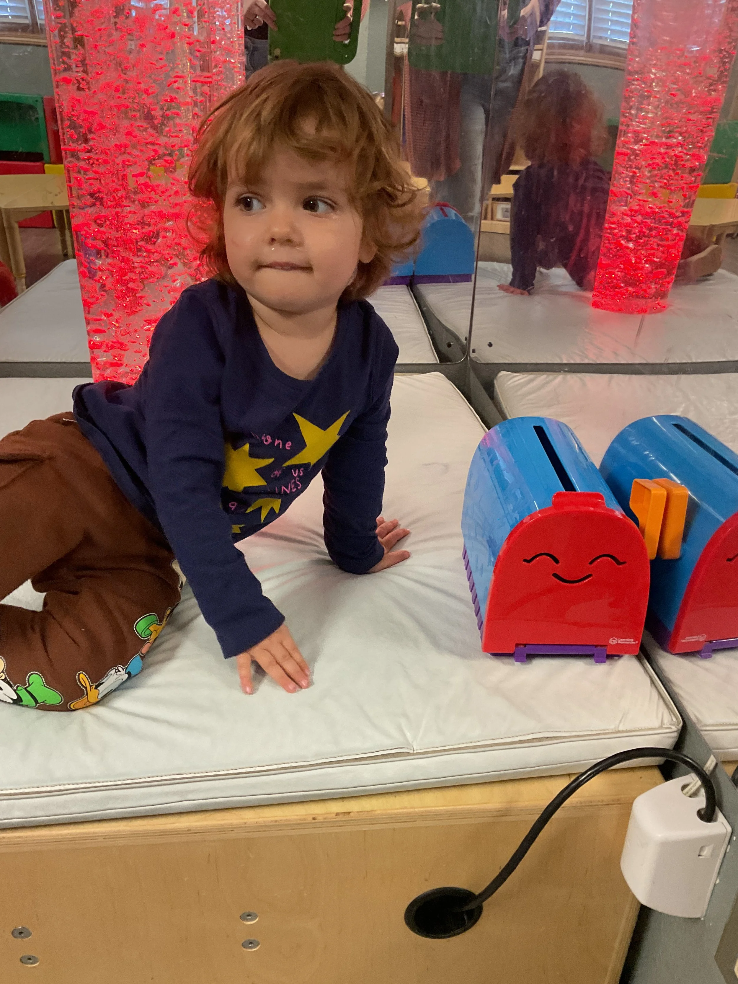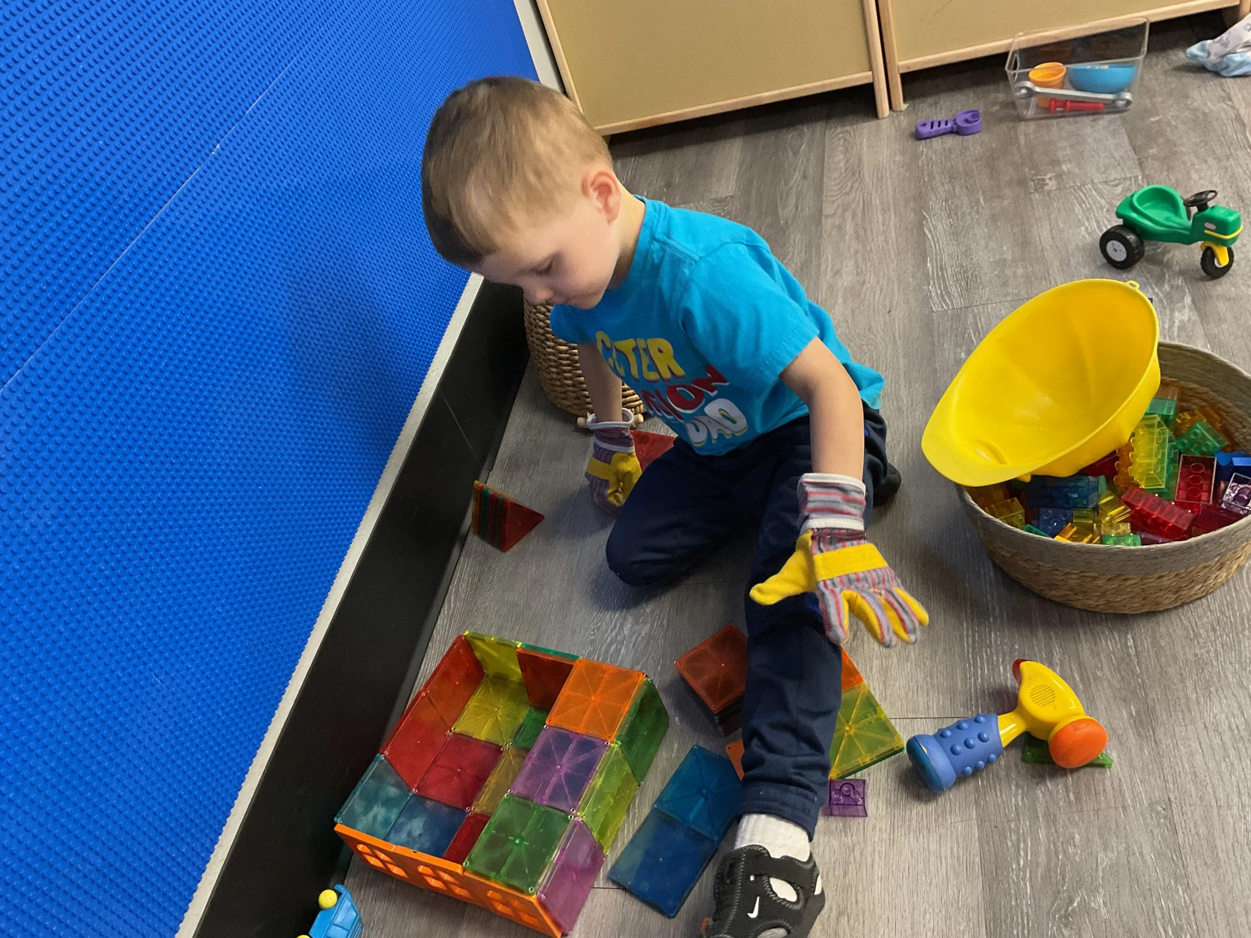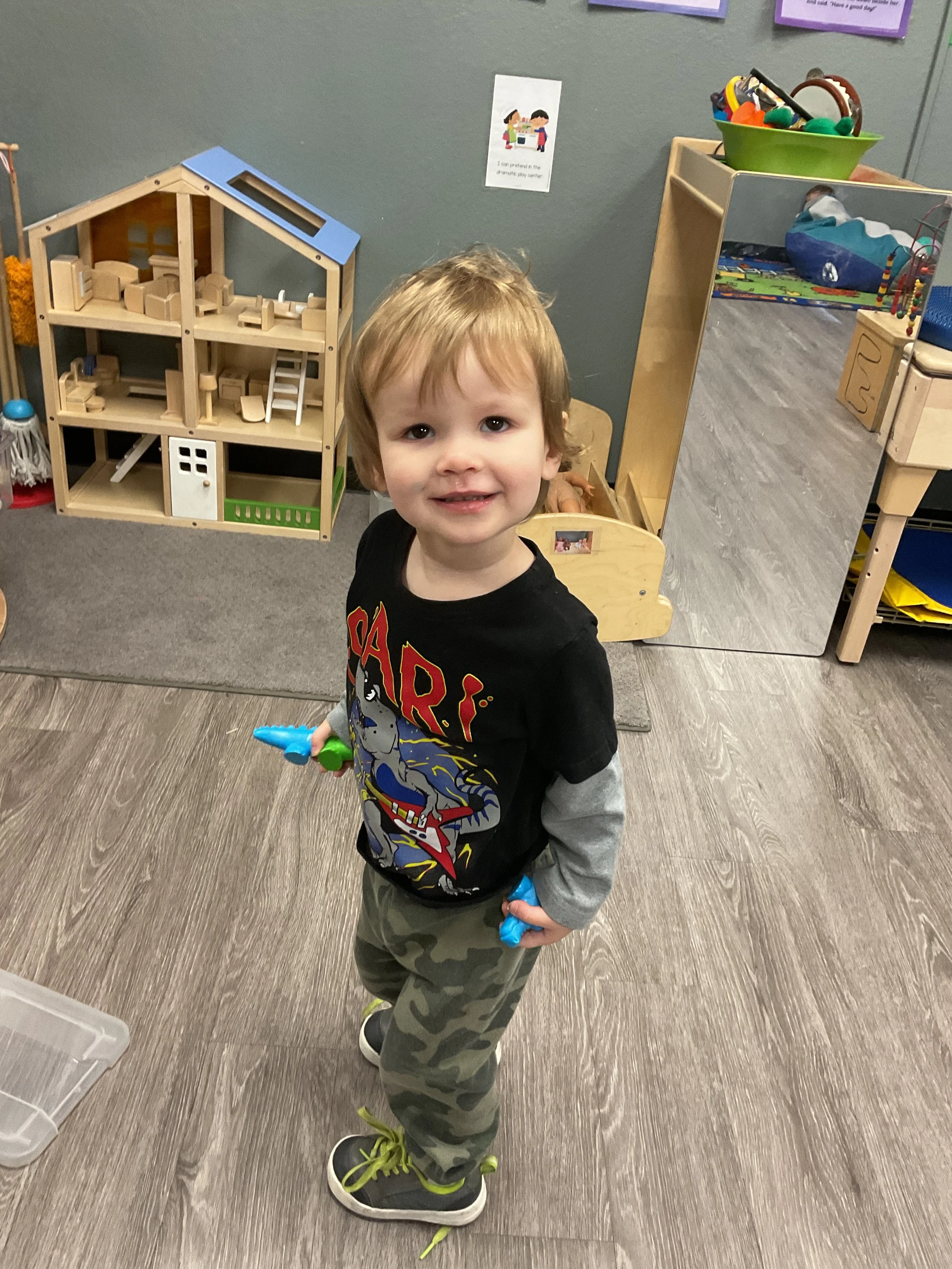 This morning, we read Walt Dinsey’s the Little Mermaid. We had a special visitor during our music and movement time! Nurse Katie from the health department came to talk to us about the importance of exercise. We played with a parachute and playground balls! Then, during our math and cognition lesson, we worked on simple addition using our fairytale little people. Next, for our science and sensory lesson, we watercolored a picture of a castle. Finally, for our literacy and fine motor lesson, we listened to a book on tape and practiced tracing and writing our names.