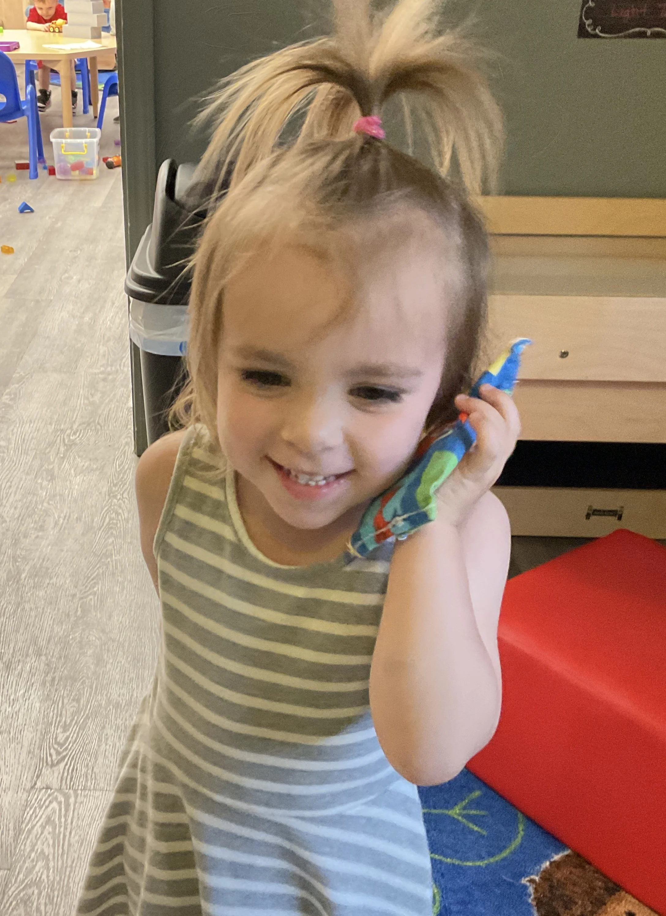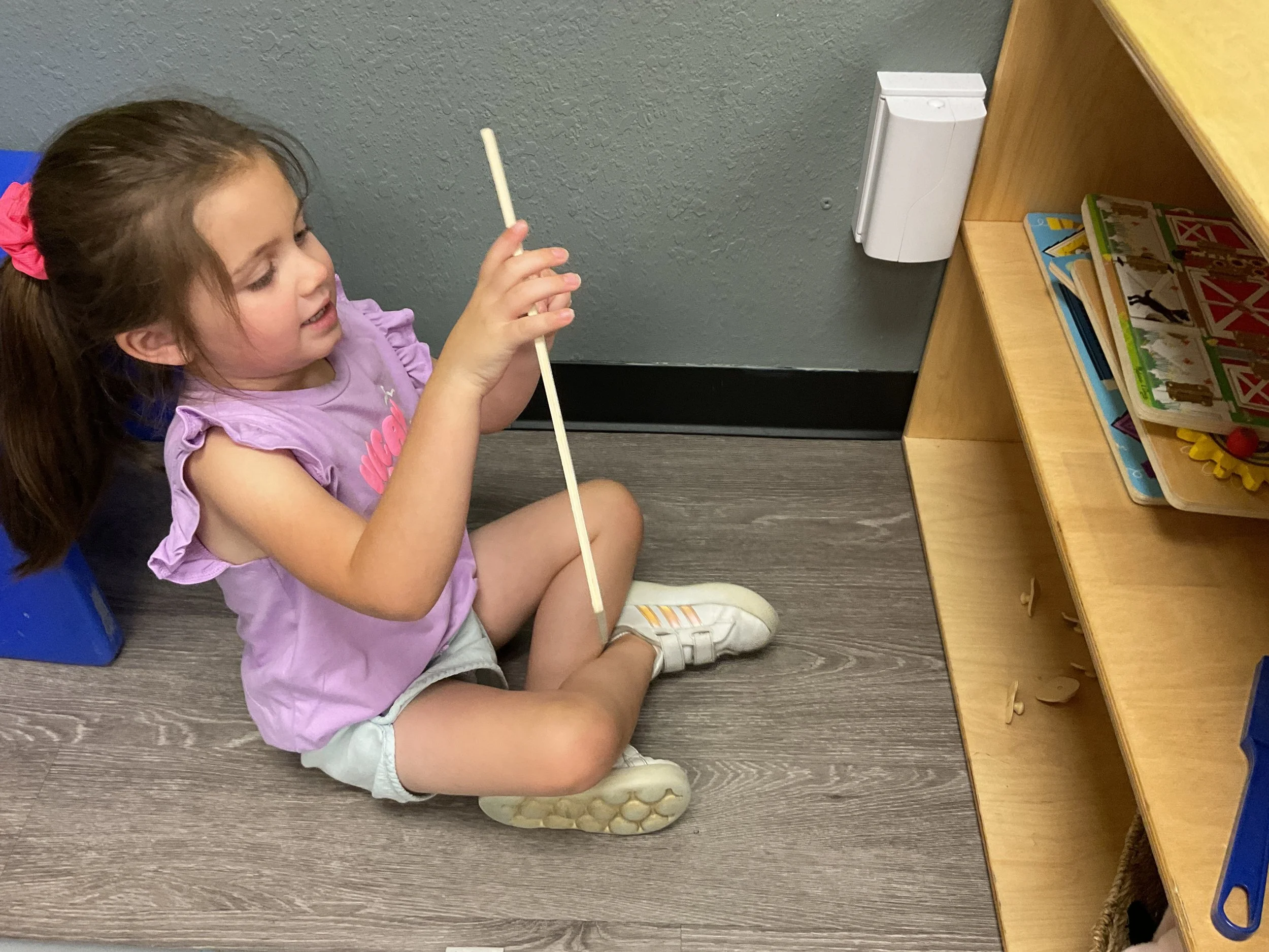 Today we read the book A Hole in the Bottom of the Sea written by Barefoot Books. During our math and cognition lesson, we worked on our beginning sounds. Then, during our science and sensory lesson, we put our ears up to a sea shell and we could hear the sea! We learned that it is really the sounds of wind as it blows through the shell. Finally, during our fine motor and literacy lesson, we made a Jellyfish in a bottle!