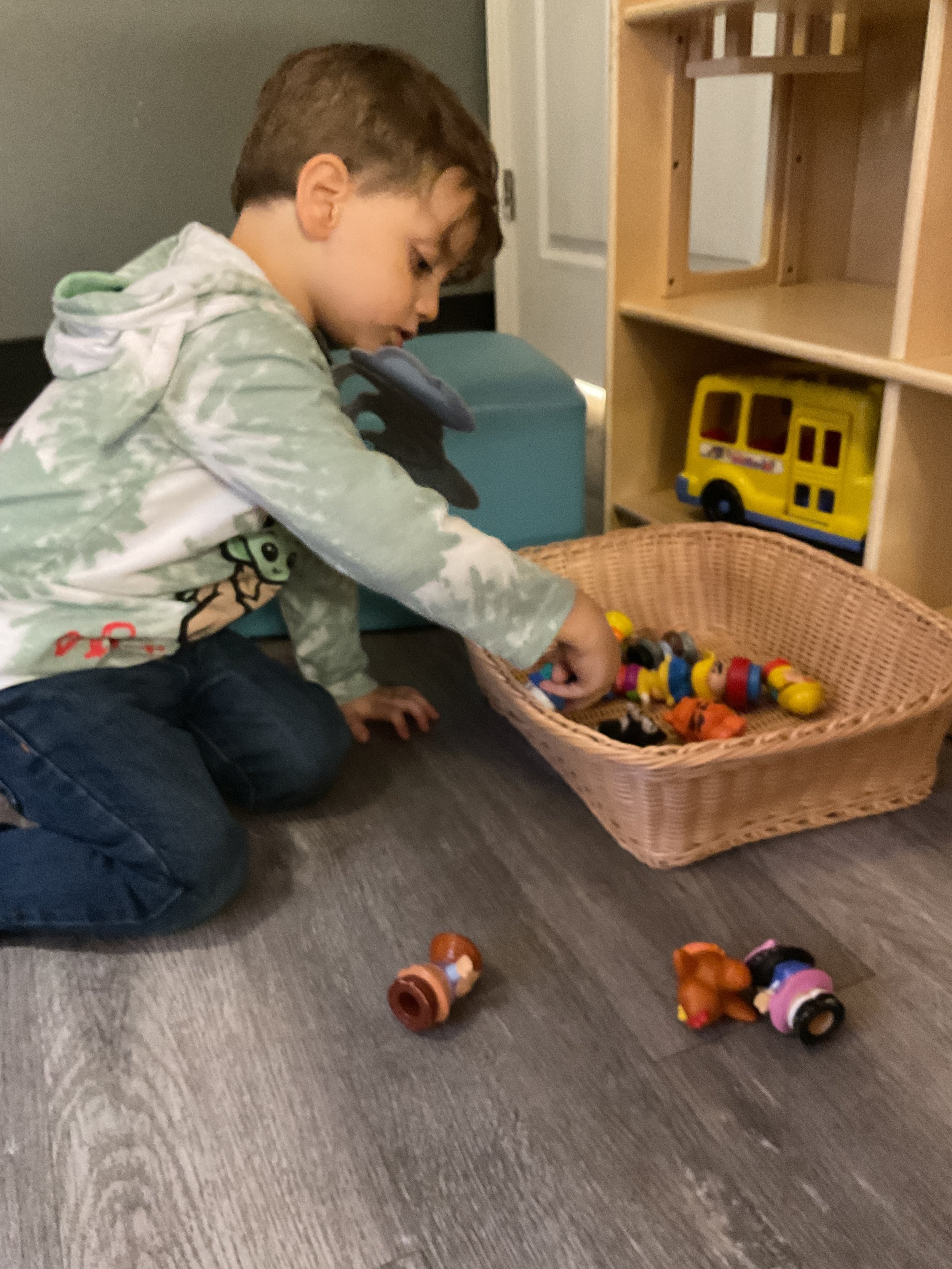 Today we read the book The Cow That Went Oink! written and illustrated by Bernard Most. During our math and cognition activity, we used puzzle blocks to complete some puzzles of farm animals. Next, during our science and sensory lesson, we used playdough to make the animals that live on a farm. Finally, for our fine motor and literacy activity, we practiced our cutting skills and practiced writing our names!