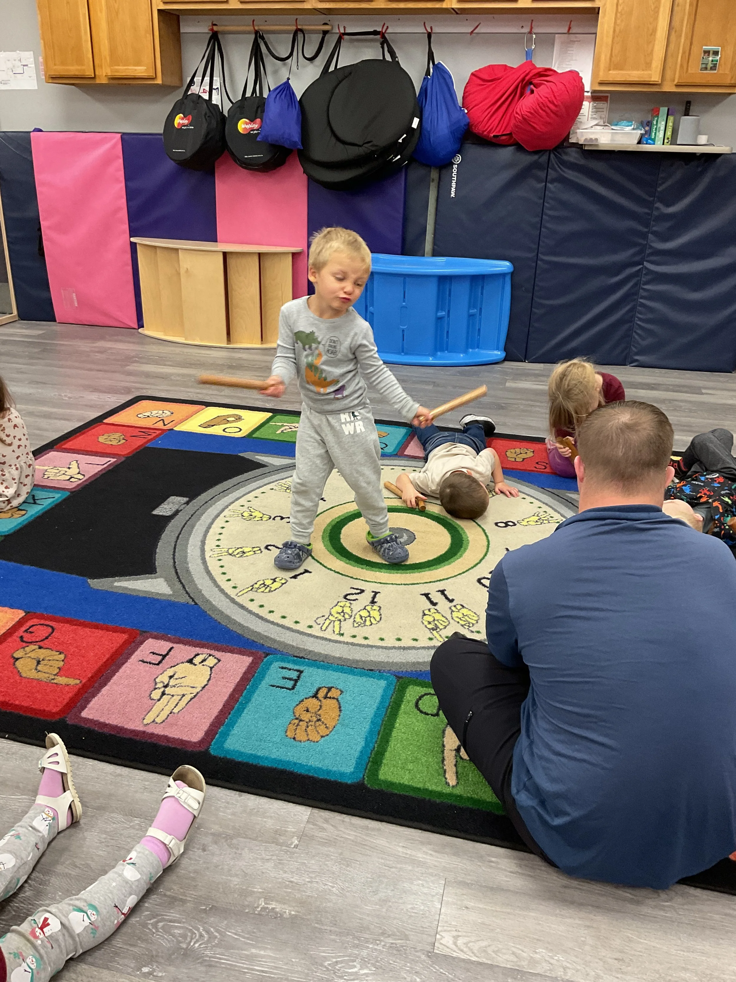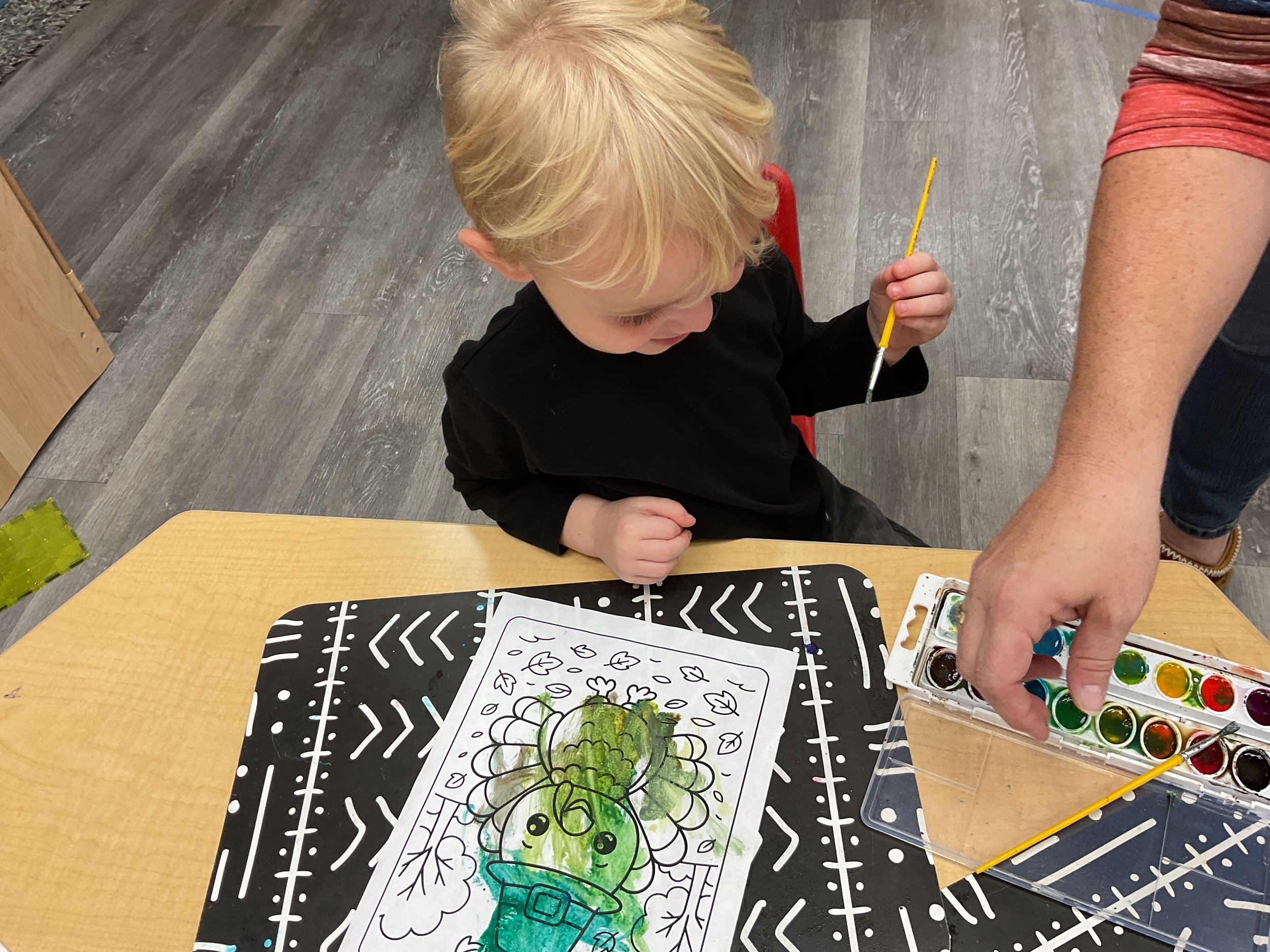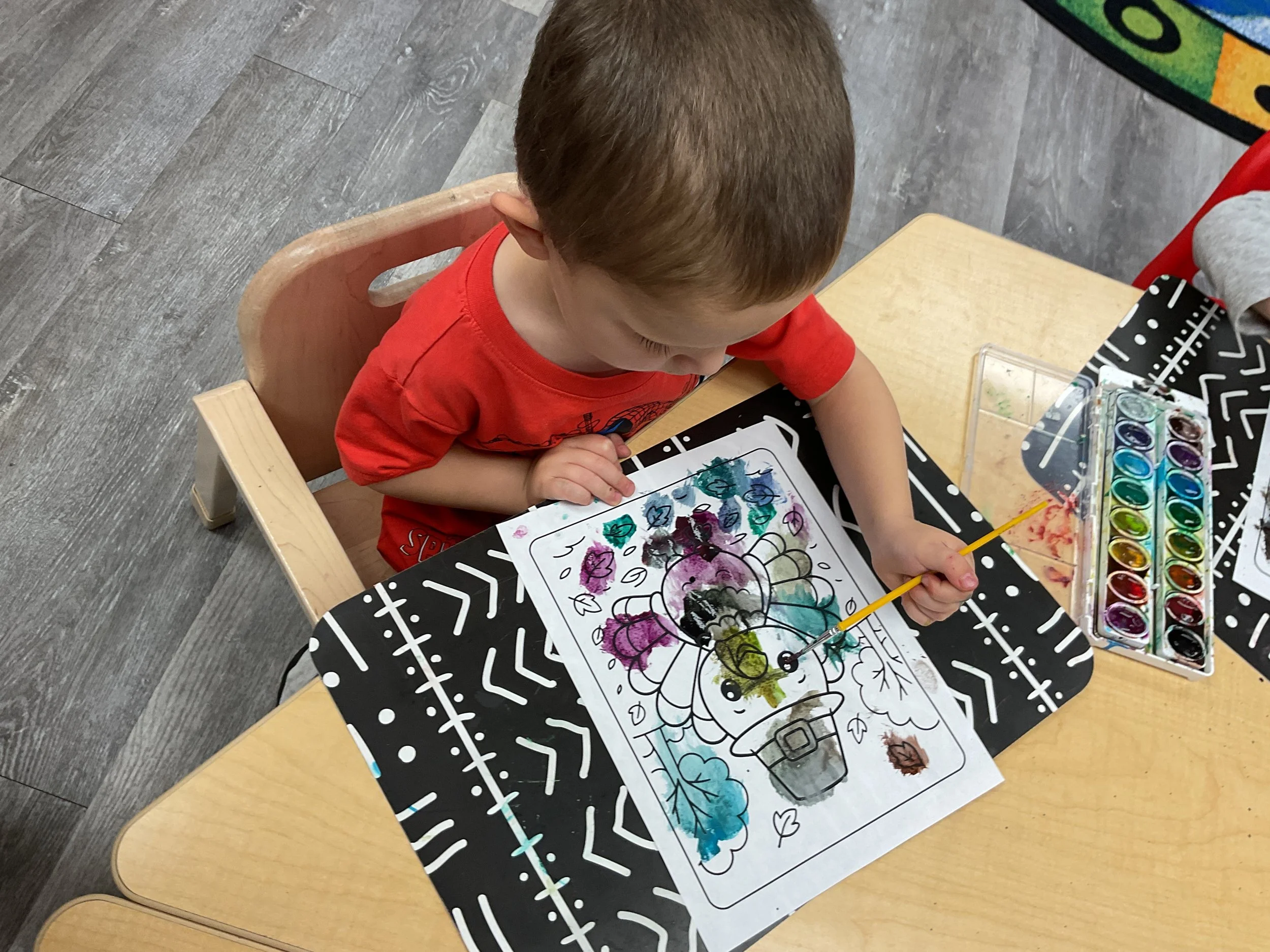 This morning, we read the book The Great Turkey Race by Steve Metzger illustrated by Jim Paillot. During our music and movement time, we had a dance party! We danced, played the floor is lava, and the freeze dance. Next, during our math and cognition lesson, we worked on number recognition and 1 to 1 correspondence by putting the correct number of turkey feathers on the correct the turkeys. Then, during our science and sensory lesson, we used water colors to paint a cute turkey page. Finally, for our fine motor and literacy lesson, we listened to a book on tape.