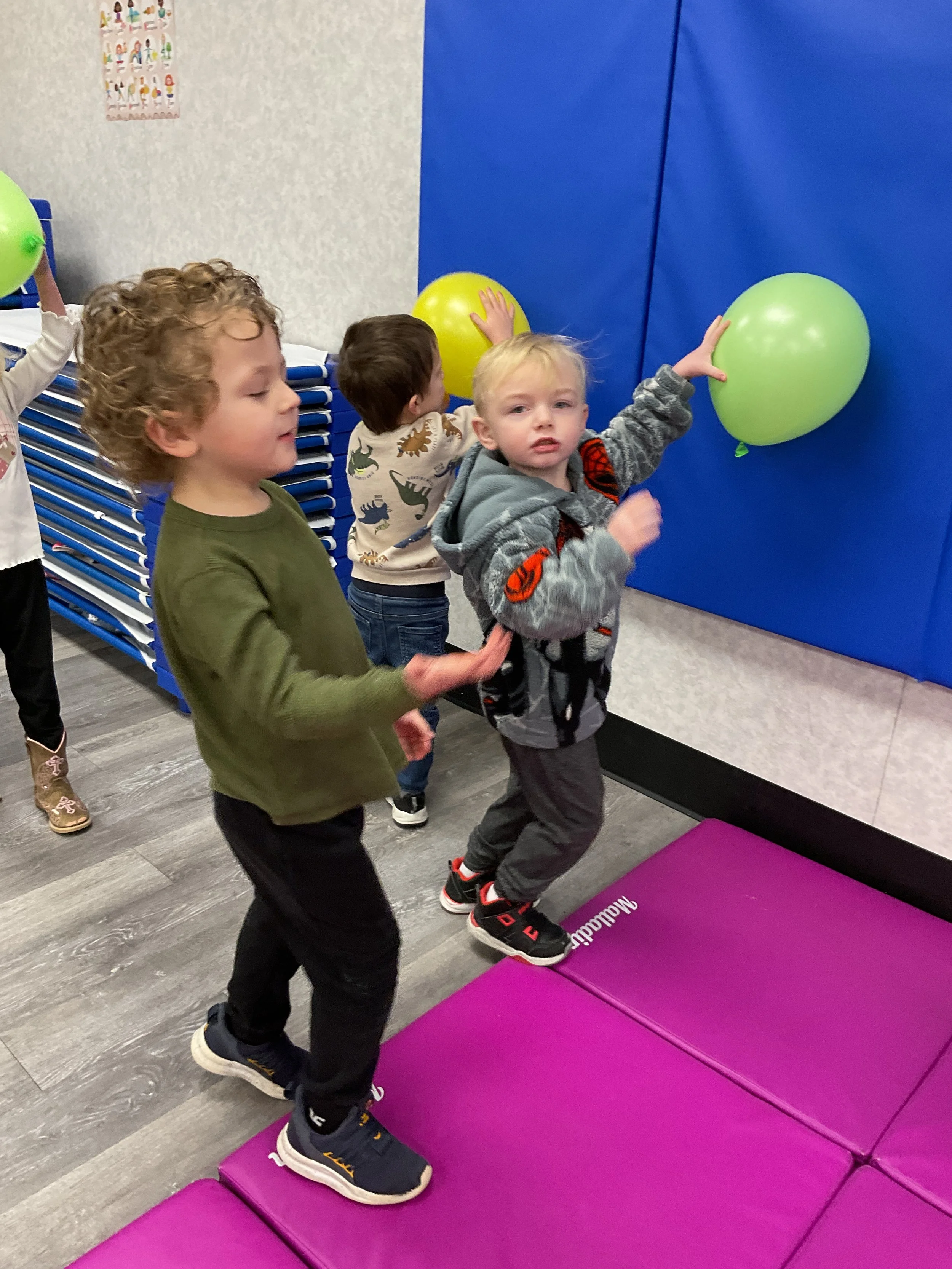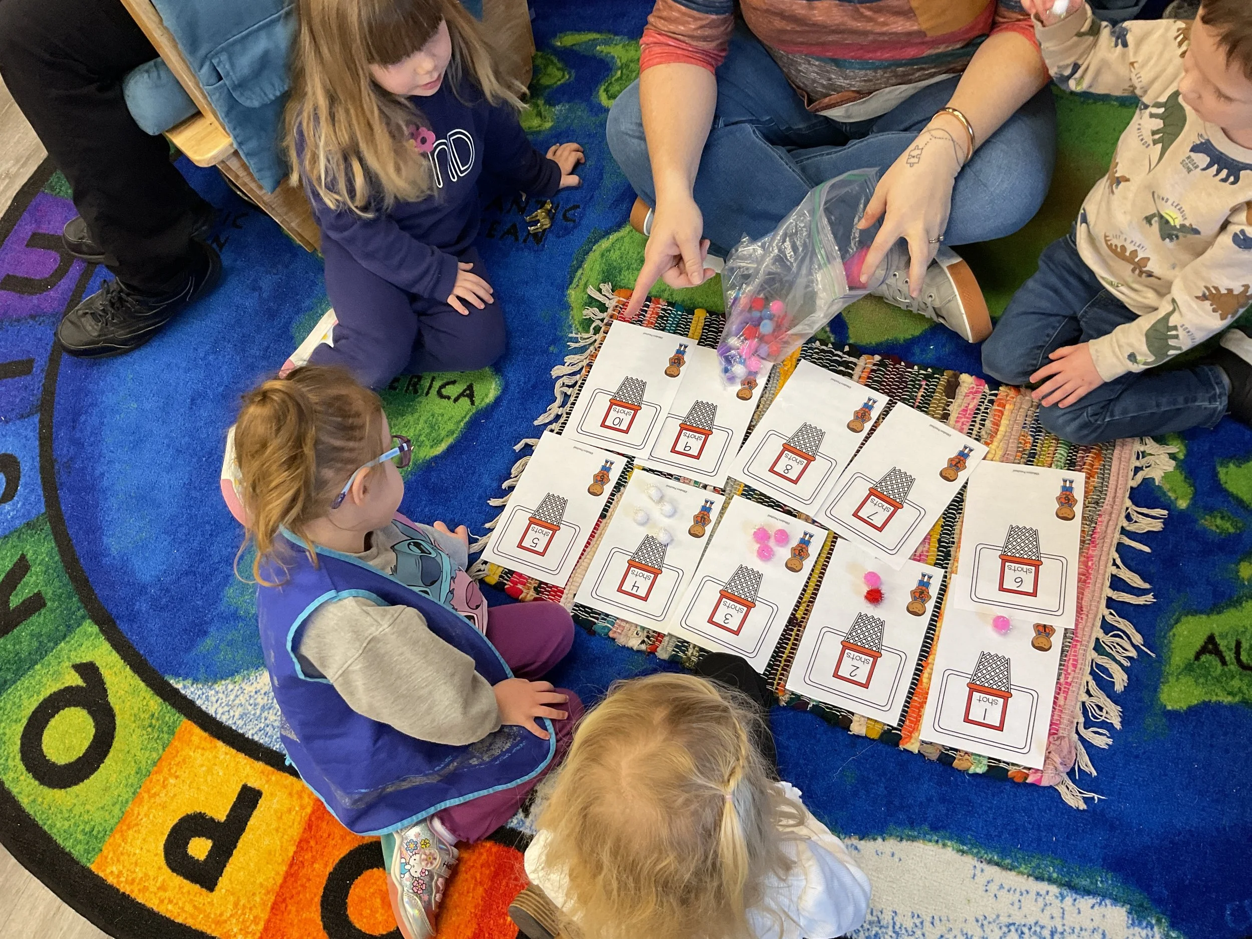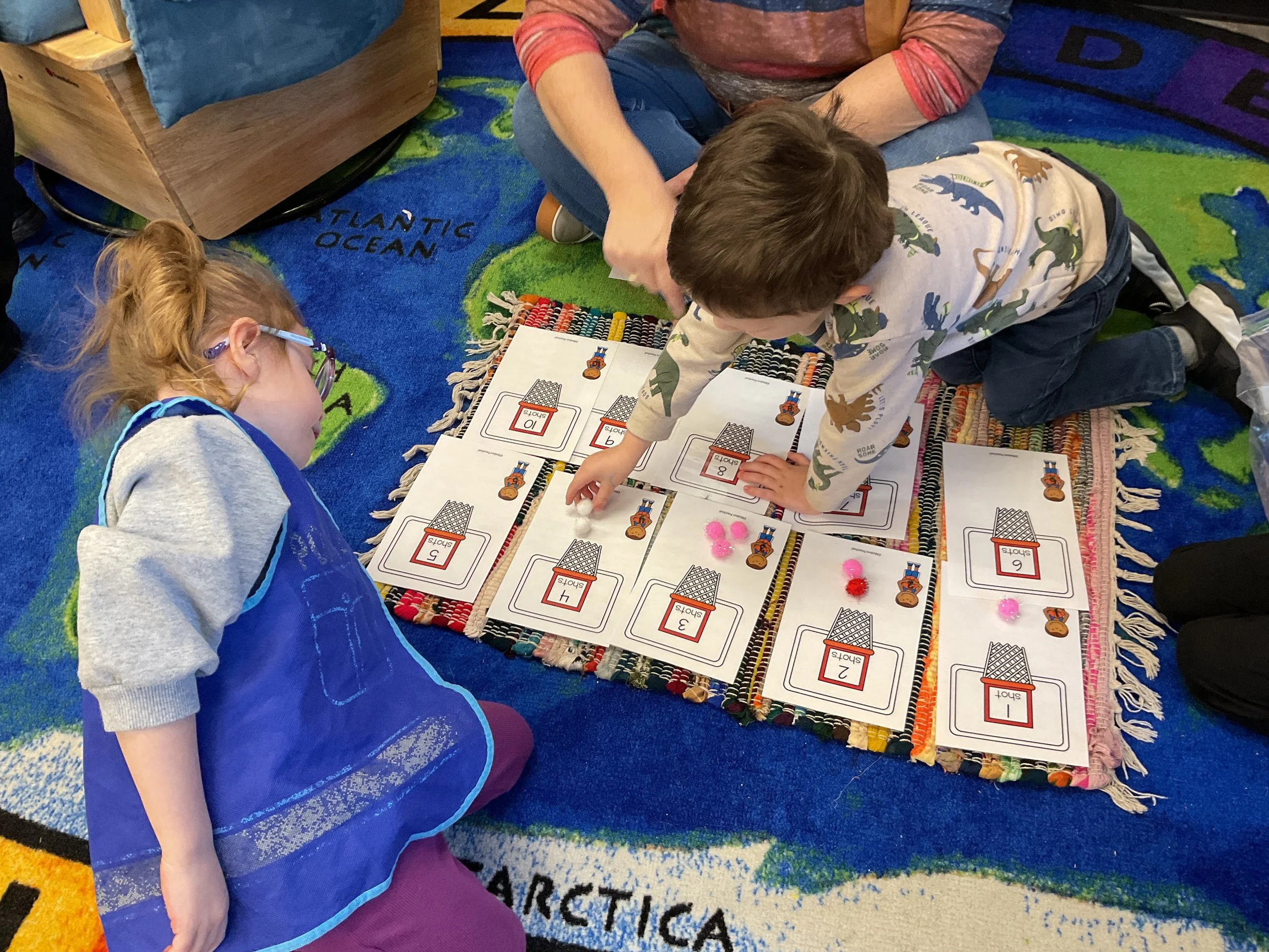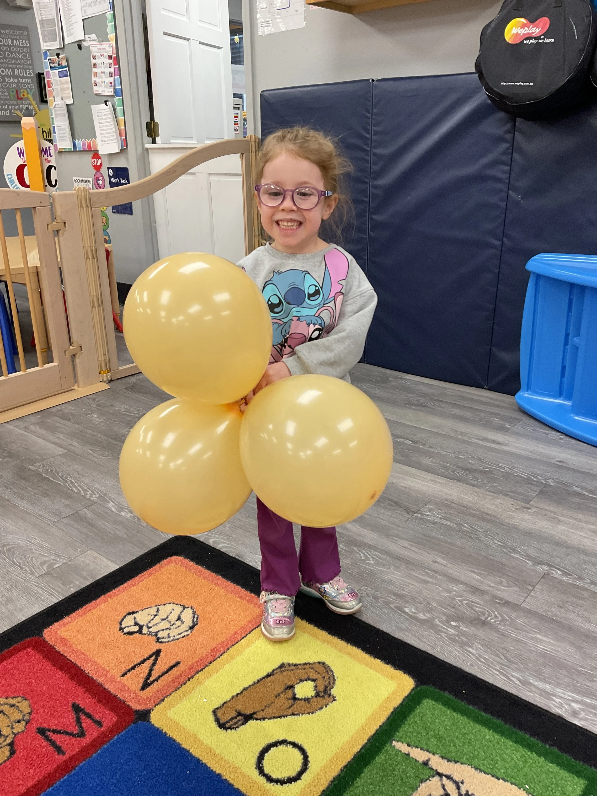 This morning, we read the book Snowman Paul at the Winter Olympics written by Yossi Lapid and illustrated by Joanna Pasek. During our music and motor time, we played with balloons! Then, during our math and cognition lesson, we worked on 1 to 1 correspondence using a basketball hoops and pom poms. Next, for our science and sensory lesson, we made a stamping art using the colors of the Olympic Rings. Finally, for our literacy and fine motor lesson, we listened to a book on tape.