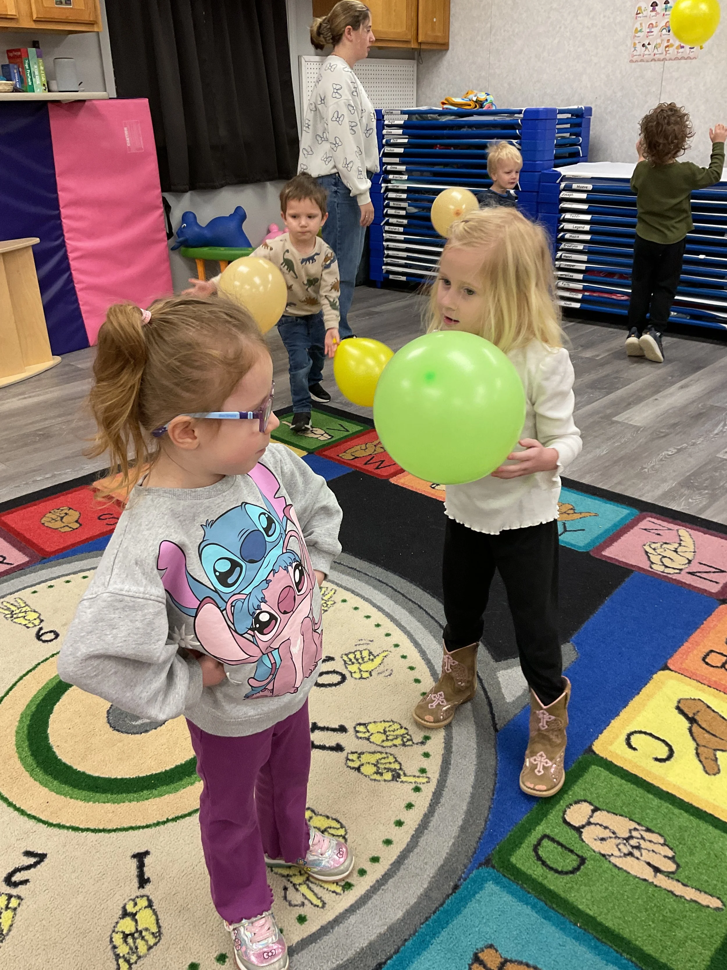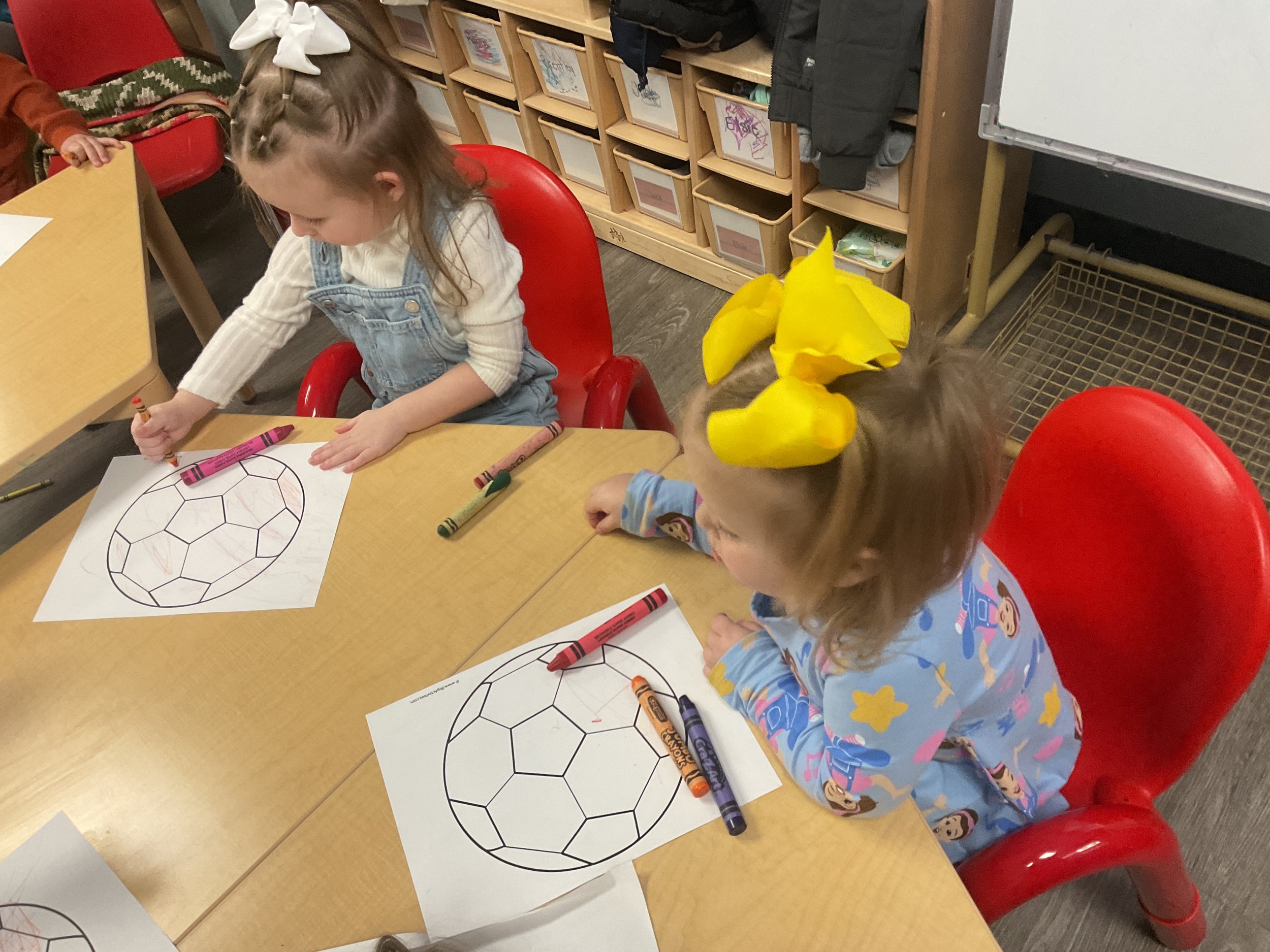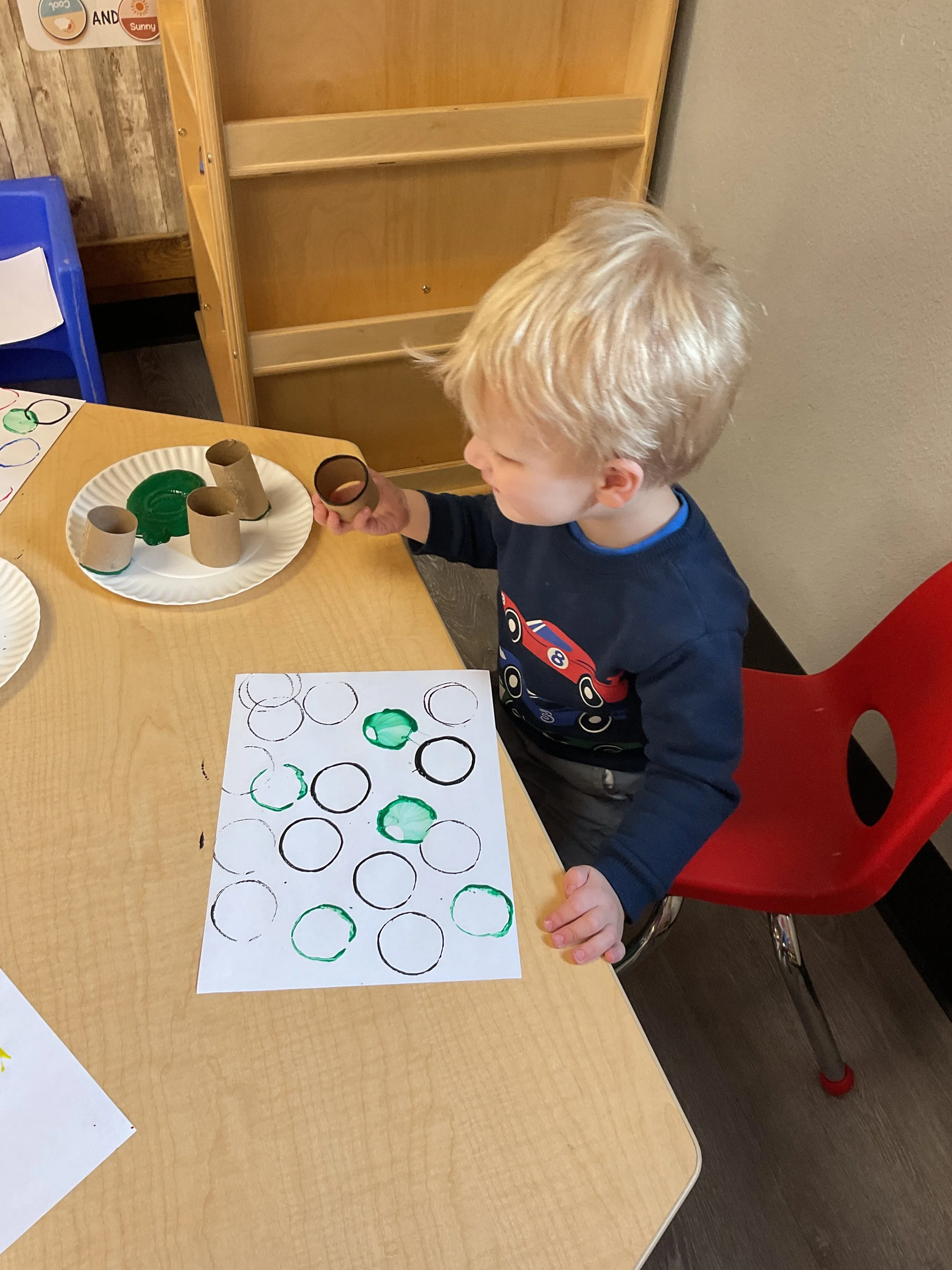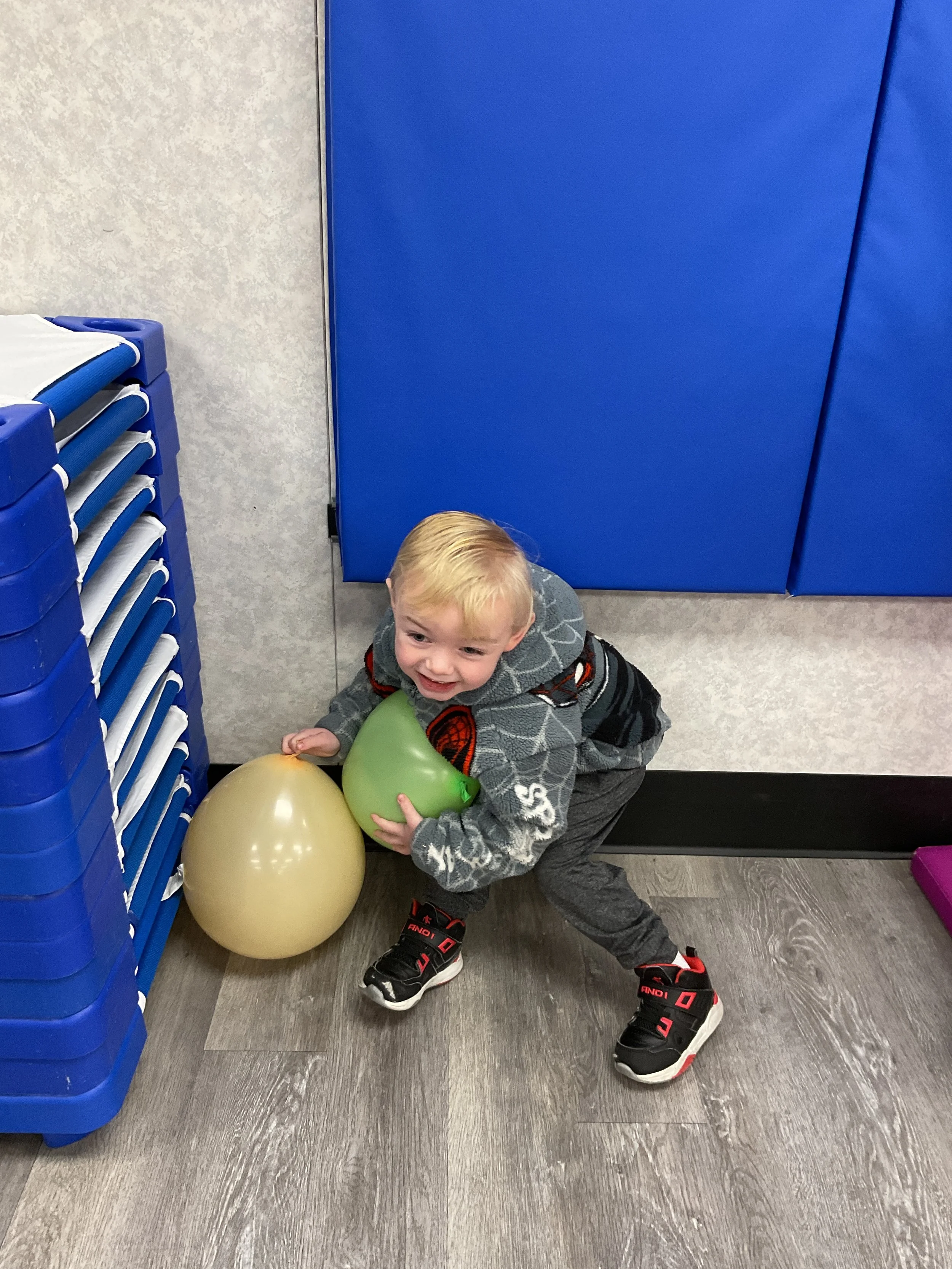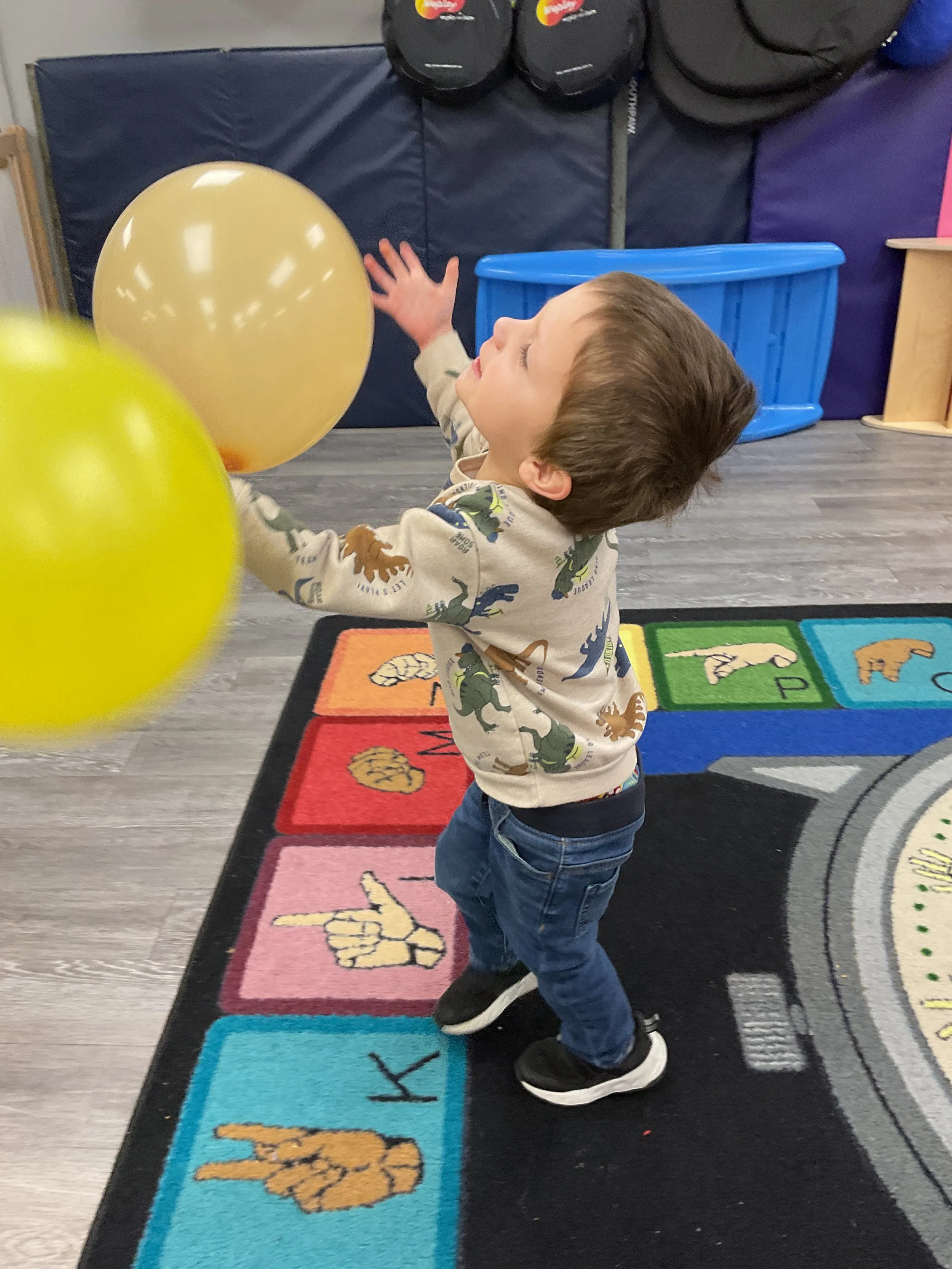 This morning, we read the book Snowman Paul at the Winter Olympics written by Yossi Lapid and illustrated by Joanna Pasek. During our music and motor time, we played with balloons! Then, during our math and cognition lesson, we worked on 1 to 1 correspondence using a basketball hoops and pom poms. Next, for our science and sensory lesson, we made a stamping art using the colors of the Olympic Rings. Finally, for our literacy and fine motor lesson, we listened to a book on tape.
