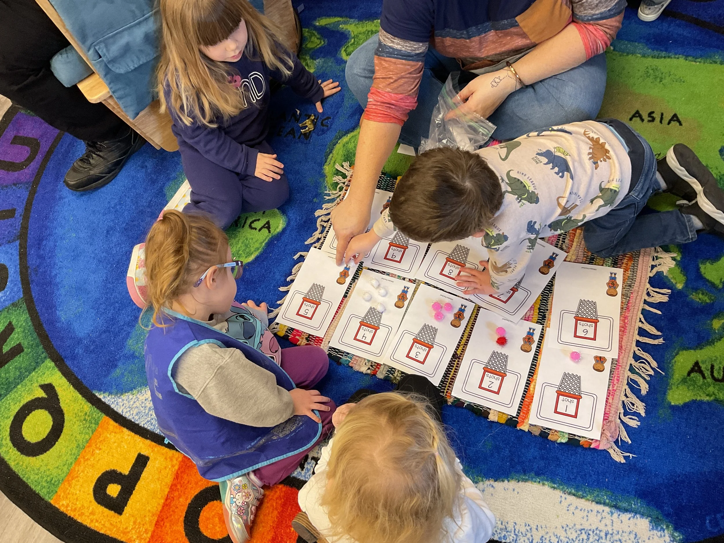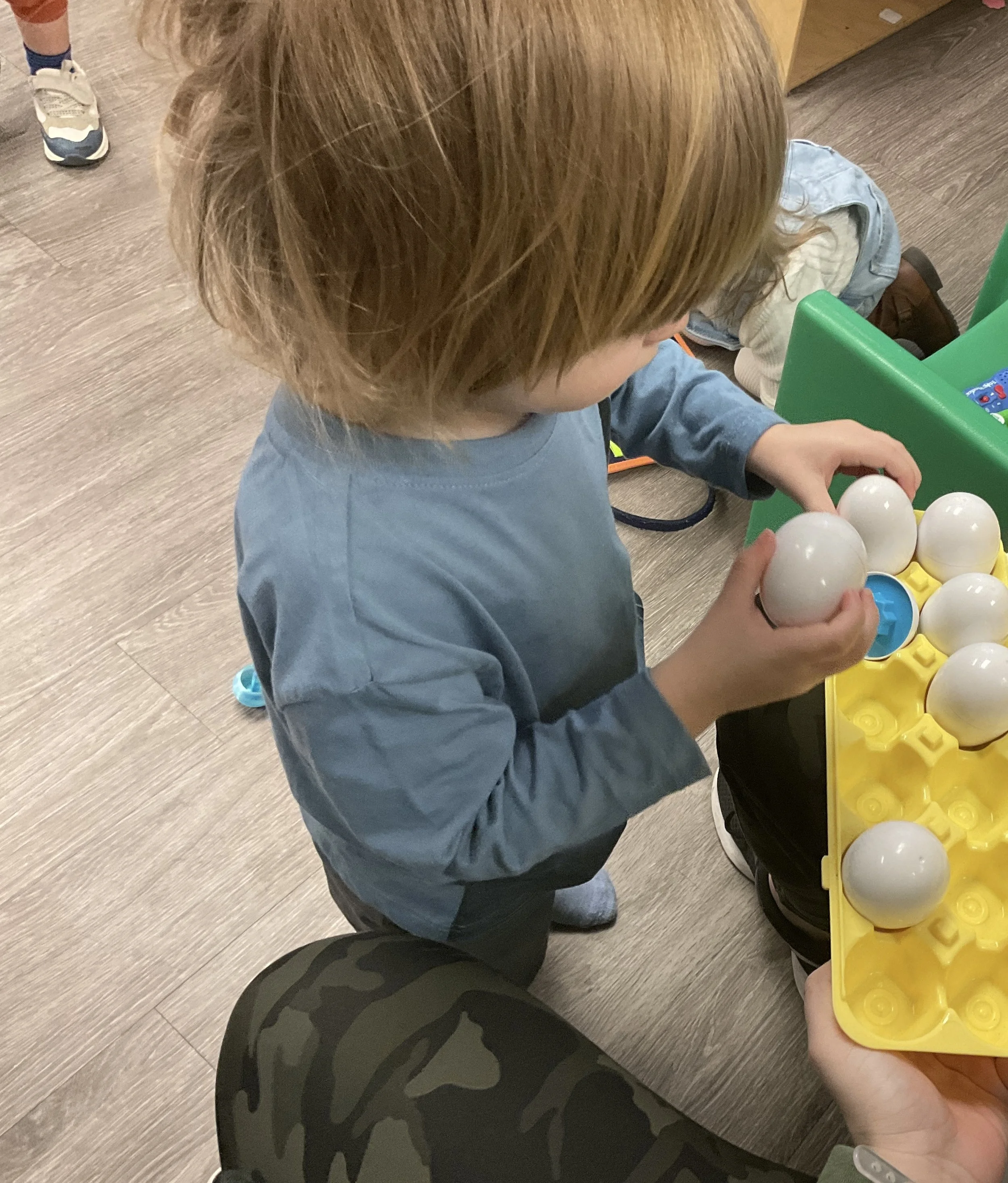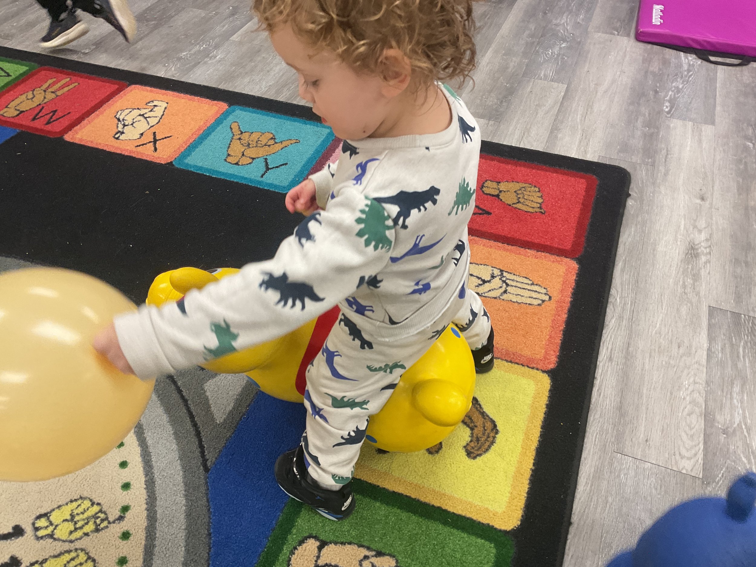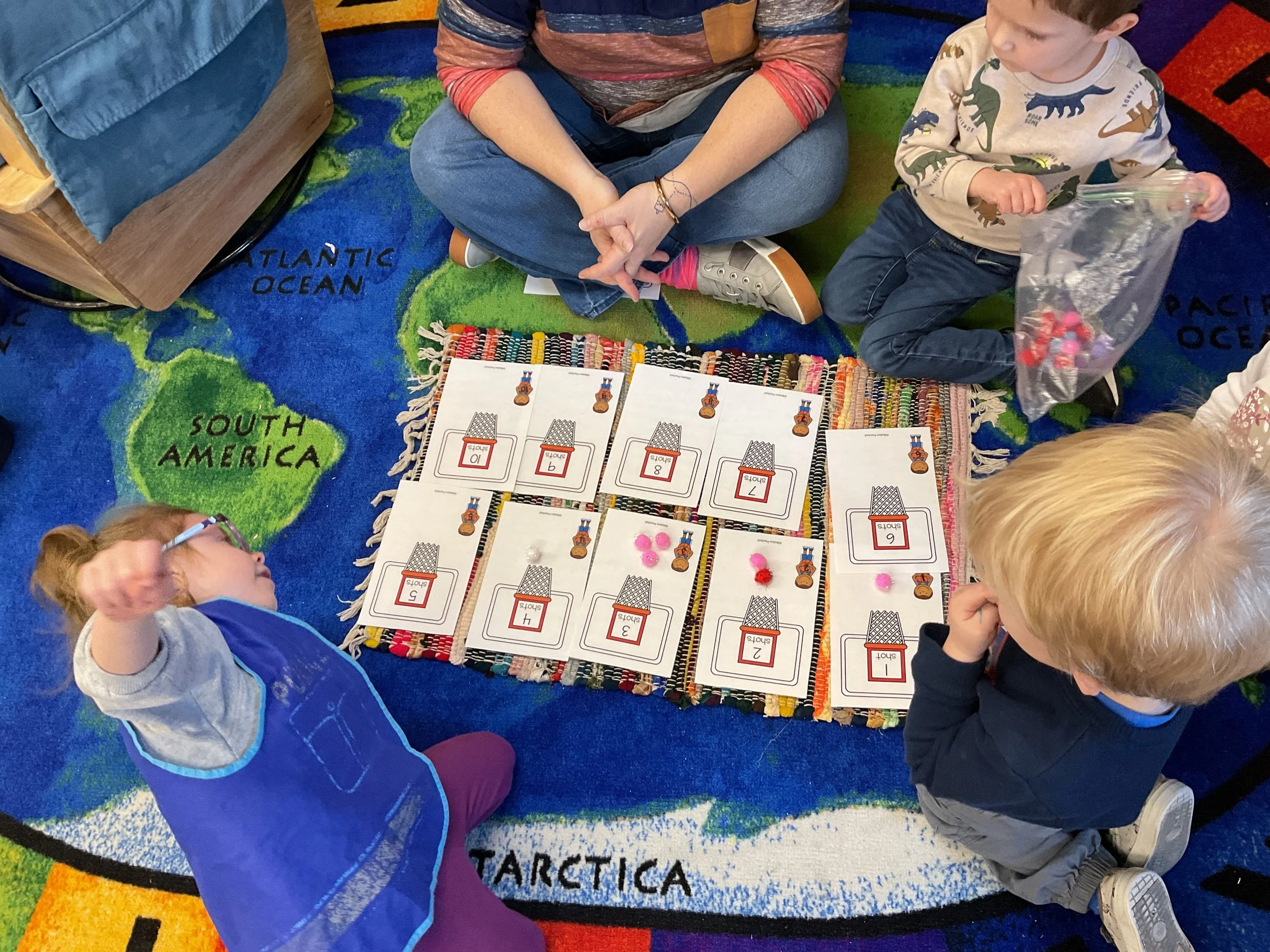 This morning, we read the book Snowman Paul at the Winter Olympics written by Yossi Lapid and illustrated by Joanna Pasek. During our music and motor time, we played with balloons! Then, during our math and cognition lesson, we worked on 1 to 1 correspondence using a basketball hoops and pom poms. Next, for our science and sensory lesson, we made a stamping art using the colors of the Olympic Rings. Finally, for our literacy and fine motor lesson, we listened to a book on tape.