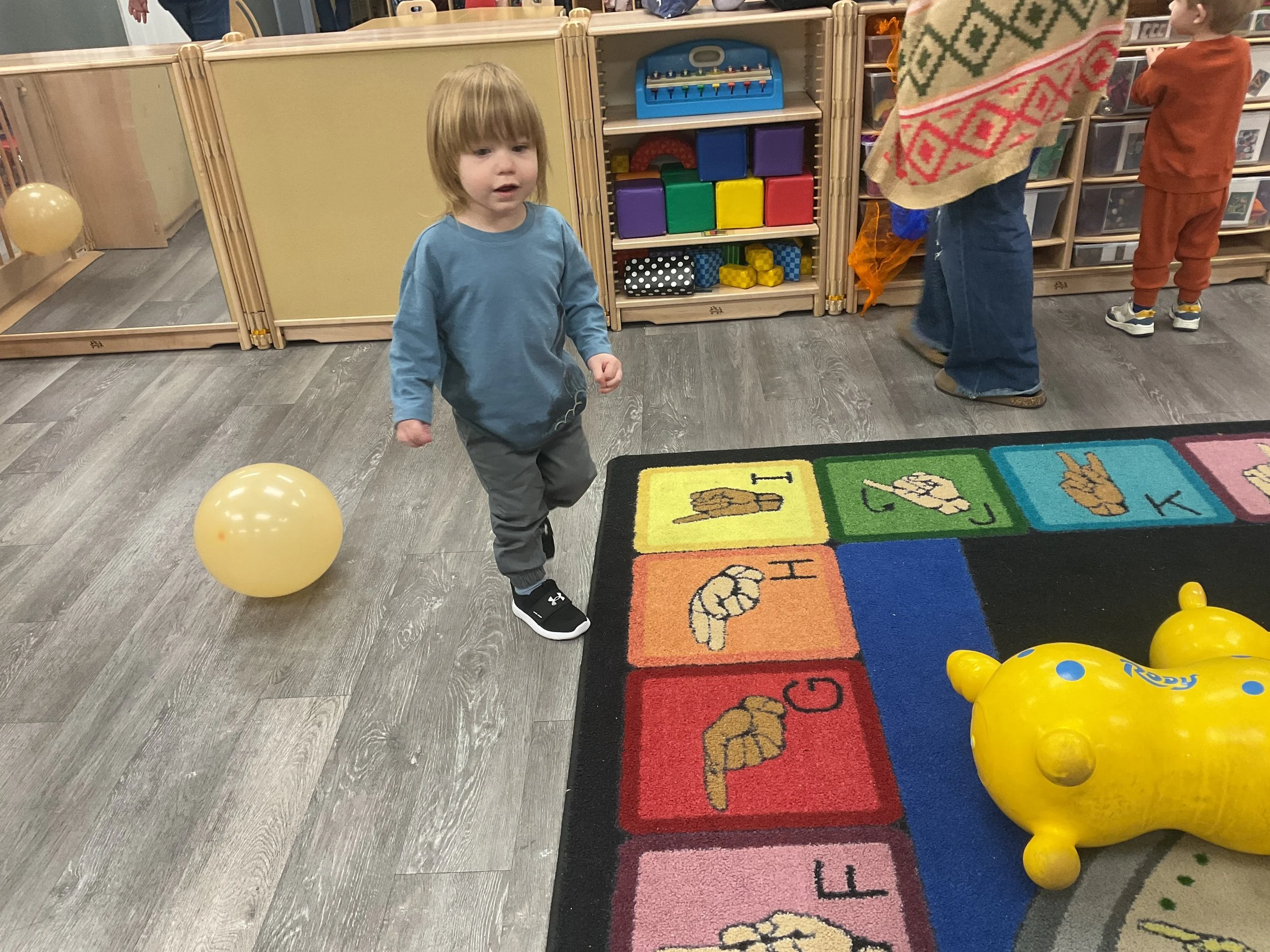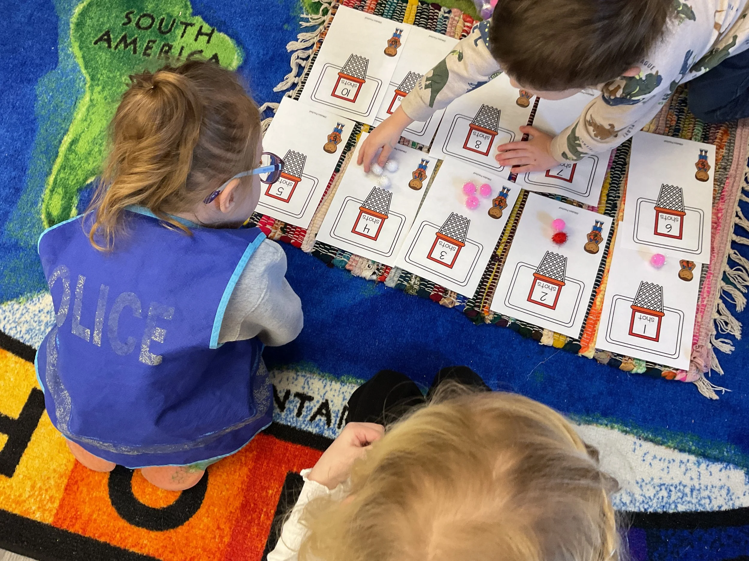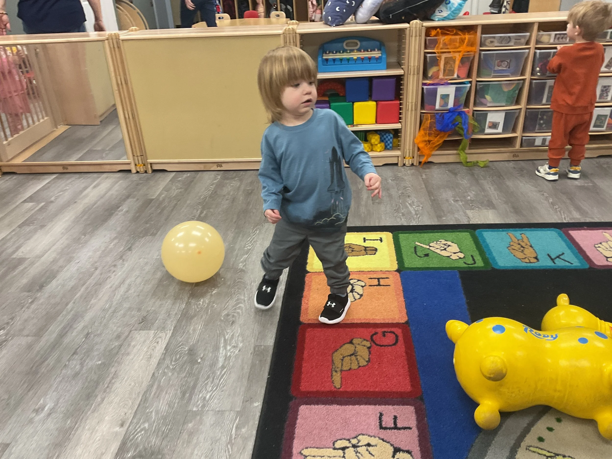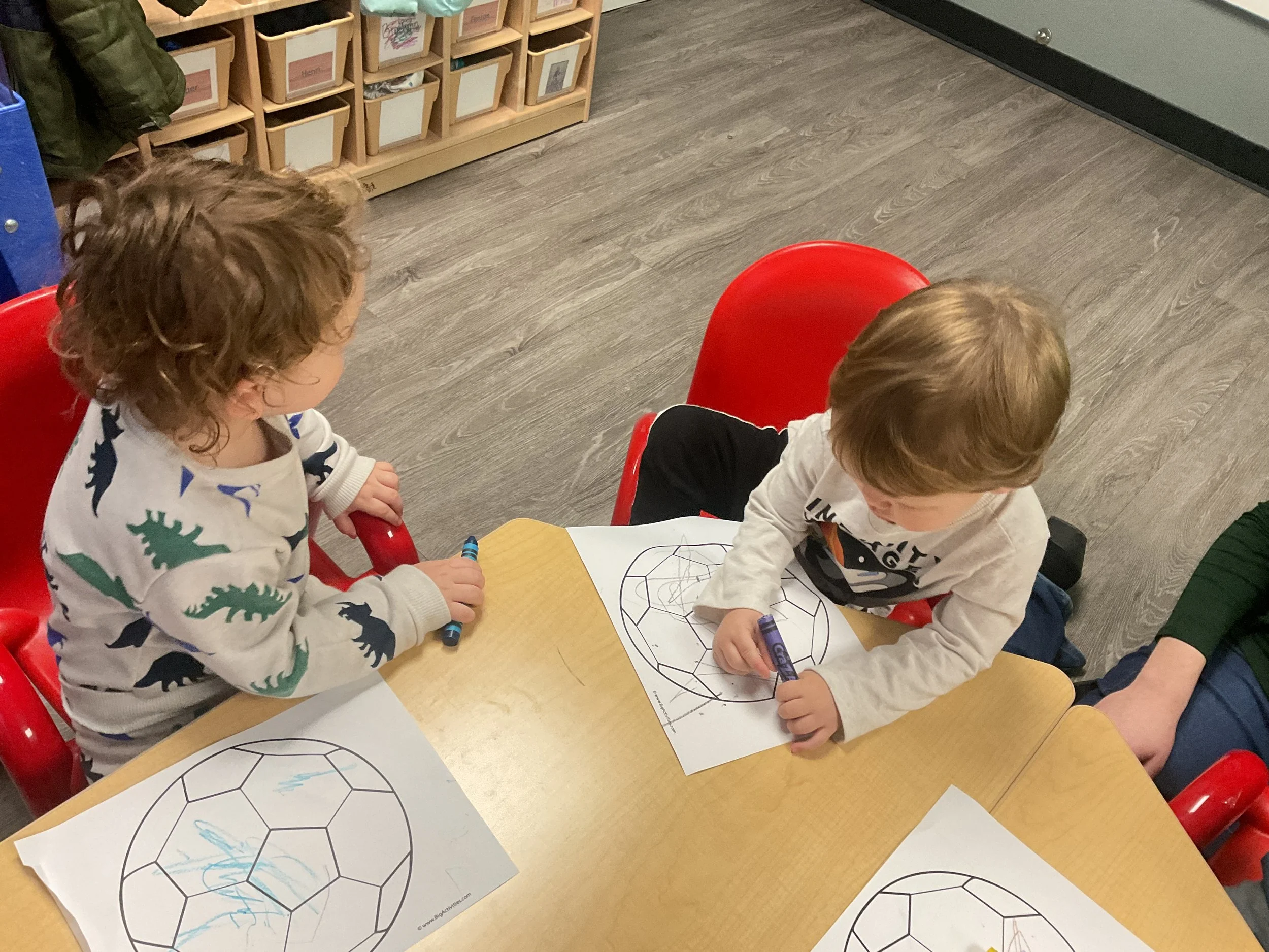 This morning, we read the book Snowman Paul at the Winter Olympics written by Yossi Lapid and illustrated by Joanna Pasek. During our music and motor time, we played with balloons! Then, during our math and cognition lesson, we worked on 1 to 1 correspondence using a basketball hoops and pom poms. Next, for our science and sensory lesson, we made a stamping art using the colors of the Olympic Rings. Finally, for our literacy and fine motor lesson, we listened to a book on tape.