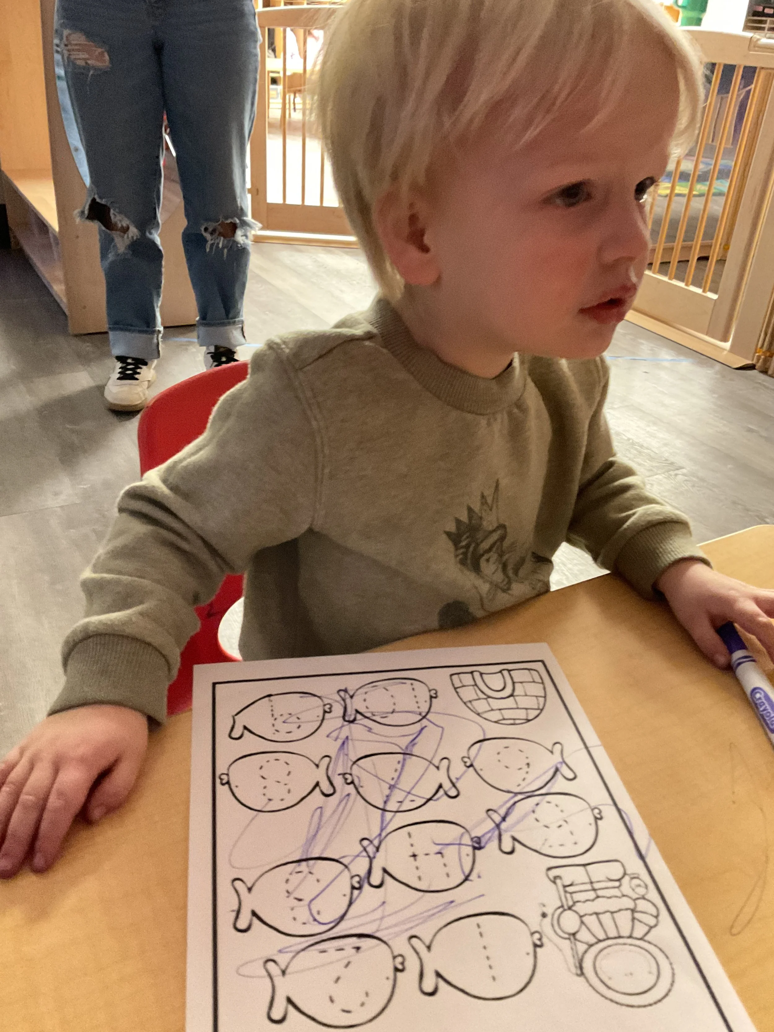 This morning, we read the book Footprints in the Snow written by Cynthia Benjamin and illustrated by Jacqueline Rogers. During our music and movement time, we sang songs and had a Christmas Danny Go dance party! Then, during our math and cognition lesson, we sorted penguins by shape. Next, for our science and sensory lesson, we filled our sensory bin with all kinds of polar animals. Finally, during our fine motor and literacy lesson, we worked on tracing shapes.