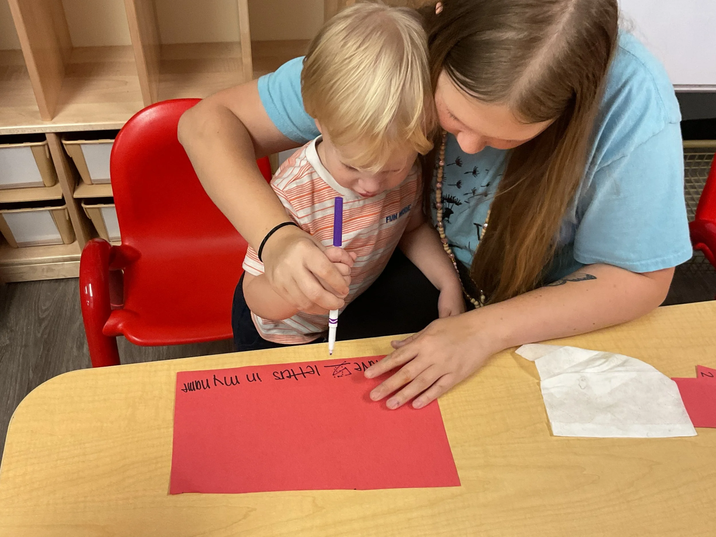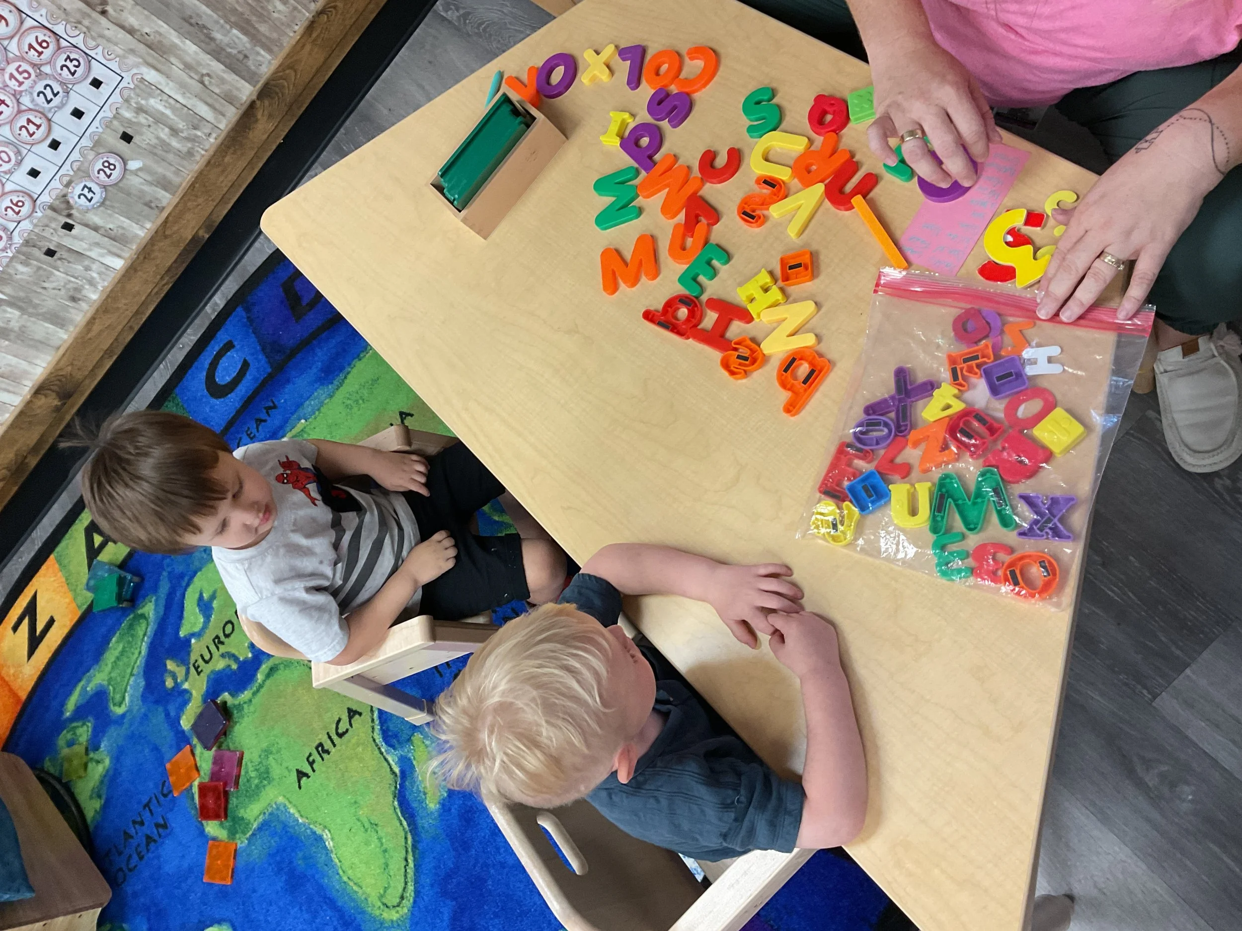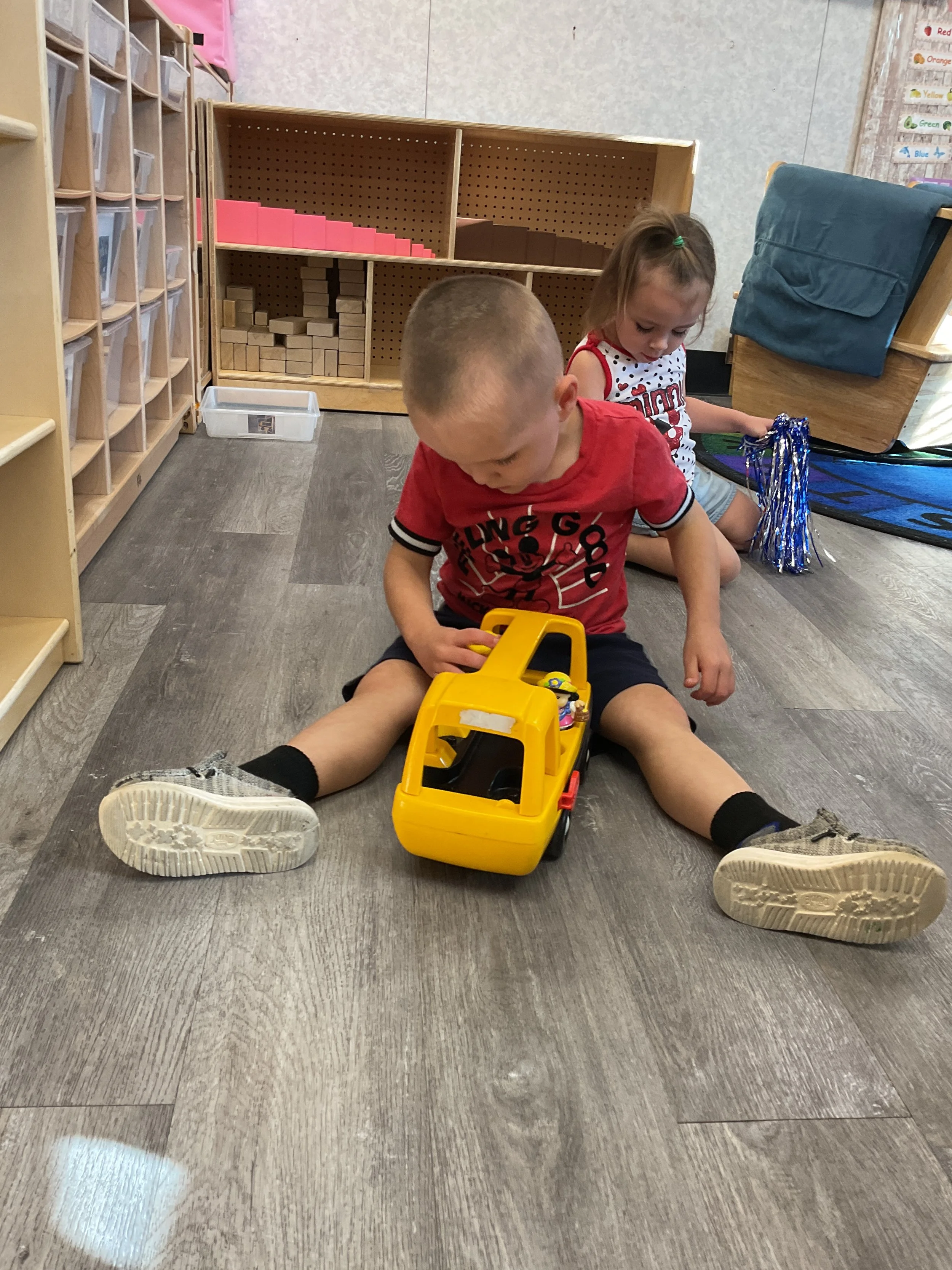 This morning, we read the book Shiver Me Letters: A Pirate ABC written by June Sobel and illustrated by Henry Cole. During music and movement time, we had a challenging obstacle course to navigate. The balance beams and summersaults were our favorite part! Next, during our math and cognition lesson, we made our name with plastic letters and stamp pads. We had to count the number of letters in our names and we had to identify the corresponding number! Then, for our science and sensory lesson, we used stamps to make some 3 letter words. Lastly, for our fine motor and literacy lesson, we listened to a book on tape.