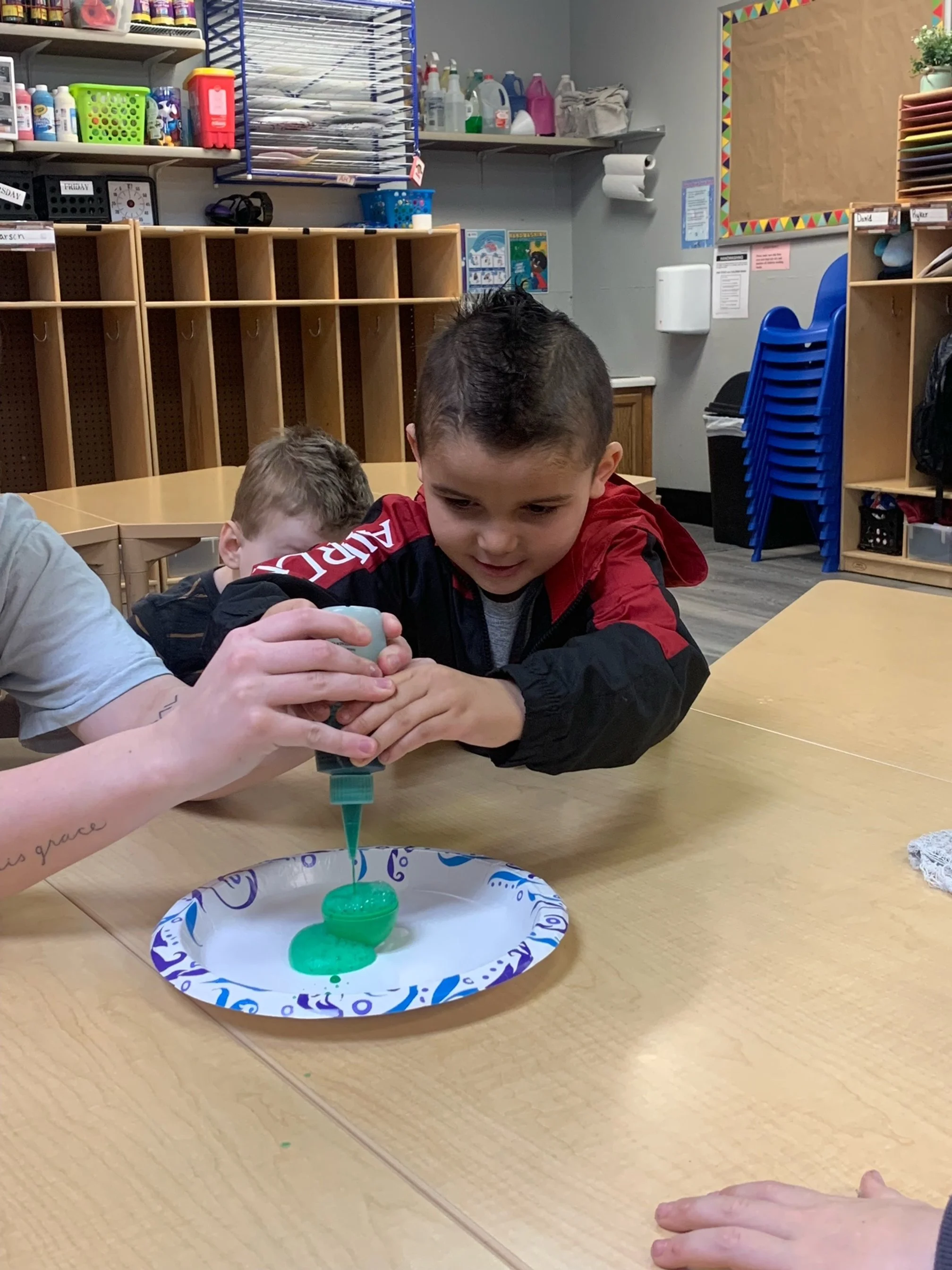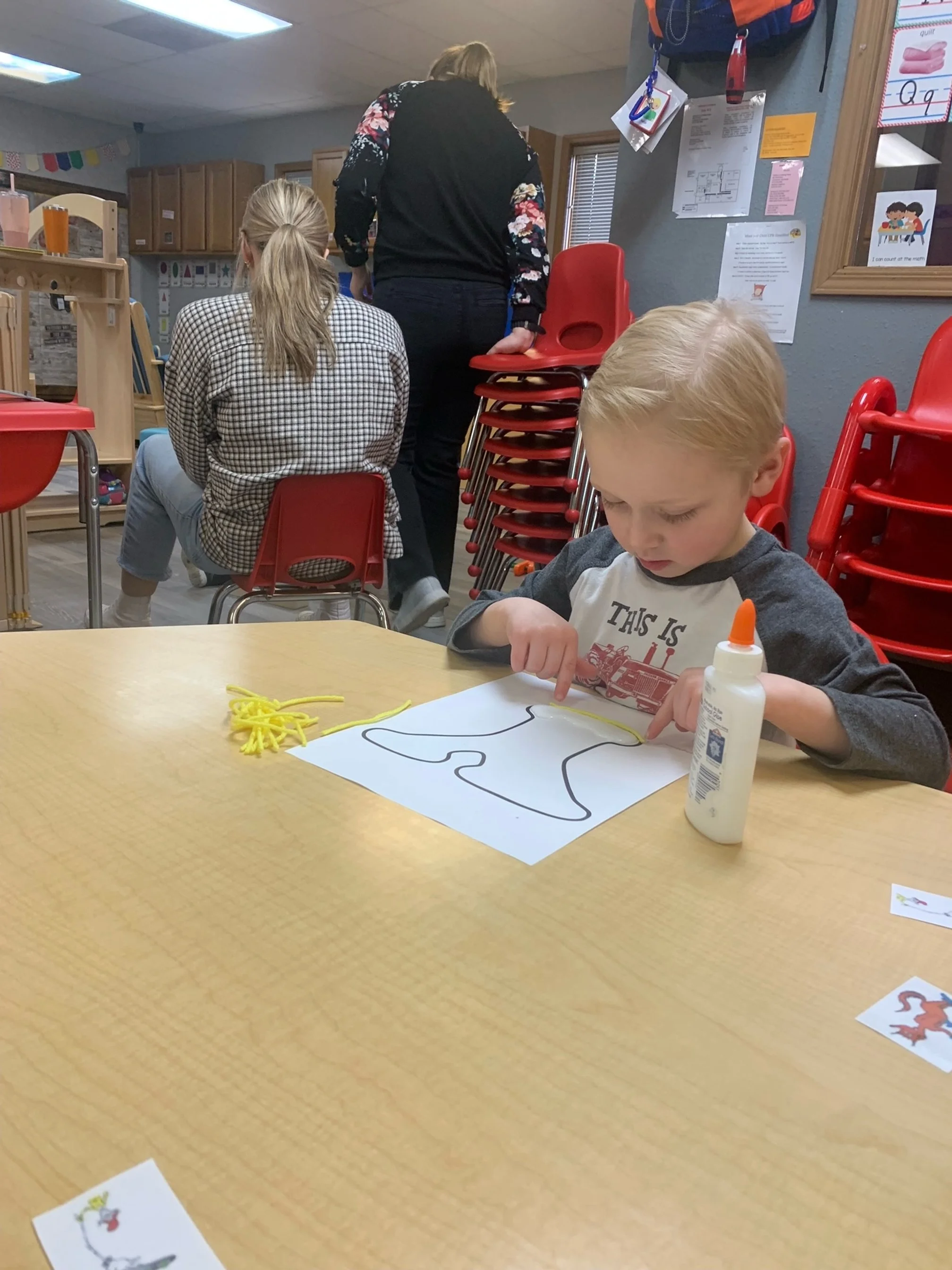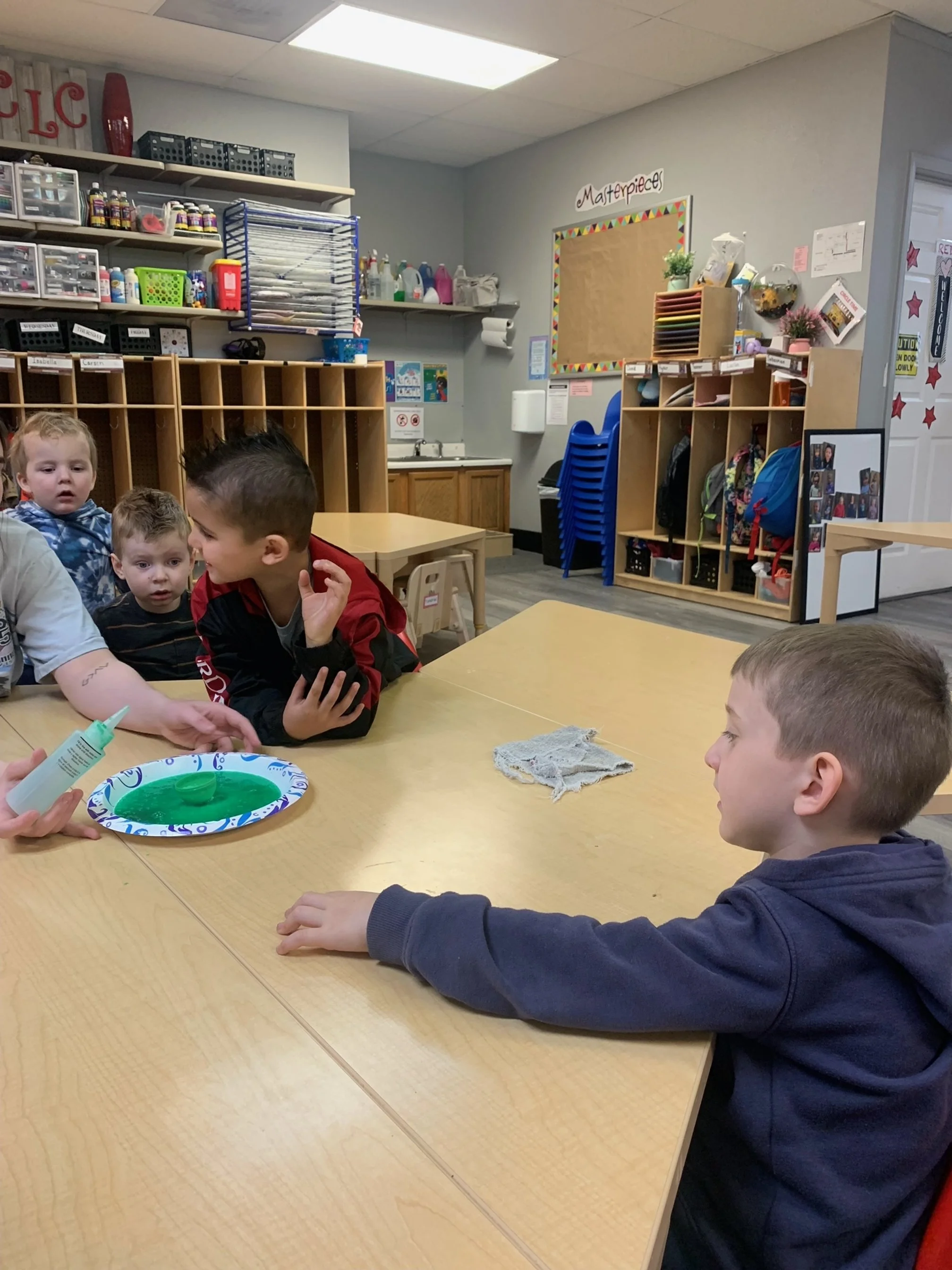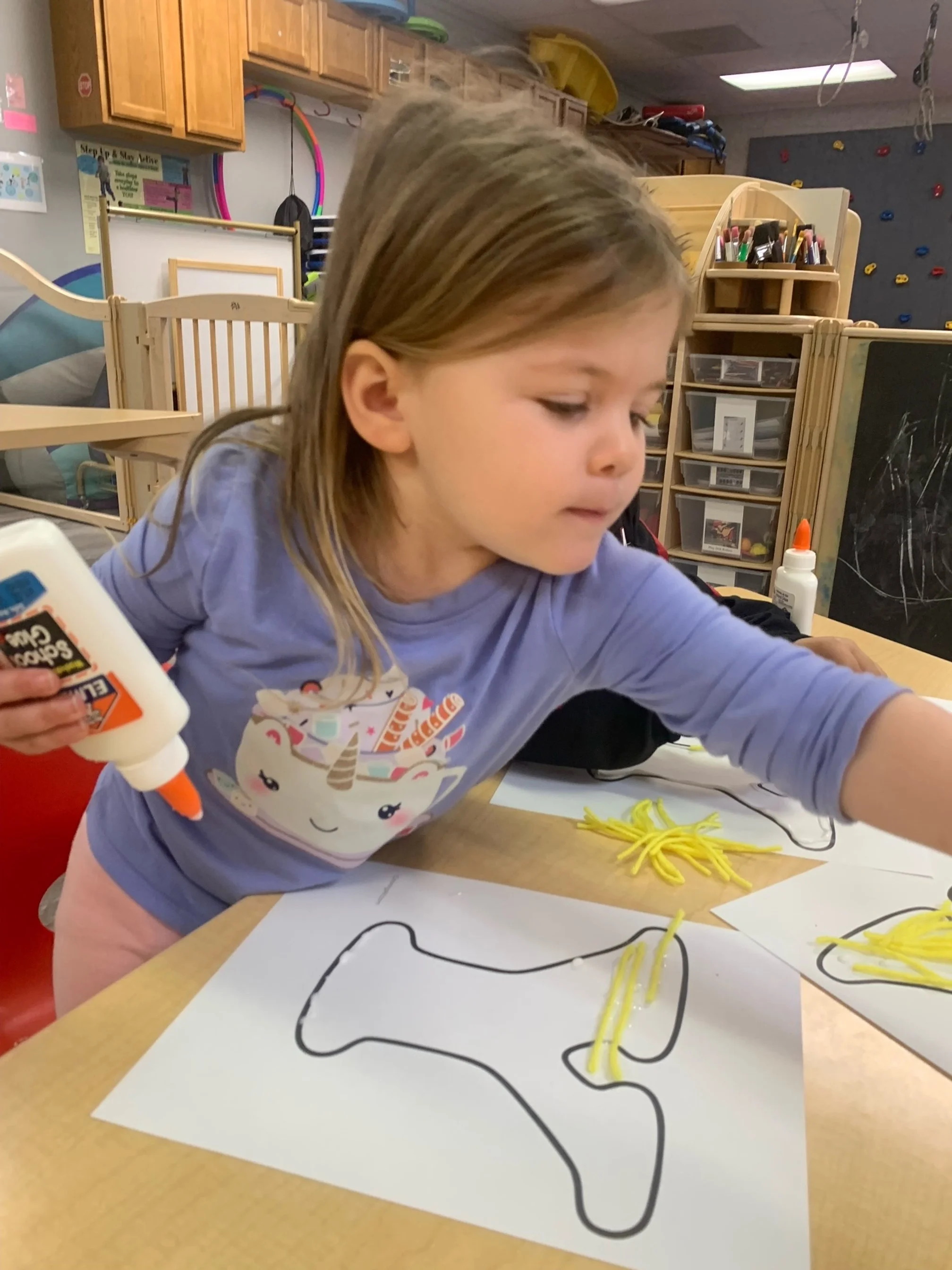Happy Wednesday! Today we read the book One Fish Two Fish Red Fish Blue Fish by Dr. Suess. We went along with Jay and Kay and learned all kinds of different words. We also meet different characters and seen fish. During our math and cognition activity we played a Dr. Suess match game. During our science and sensory activity we made a green eggs and ham fizz. Our teacher poured baking soda into an plastic egg we then poured green vinegar into the egg and made it fizz. During our fine motor and literacy activity we made our letter Y creation. We glued yellow yarn onto our letter Y.