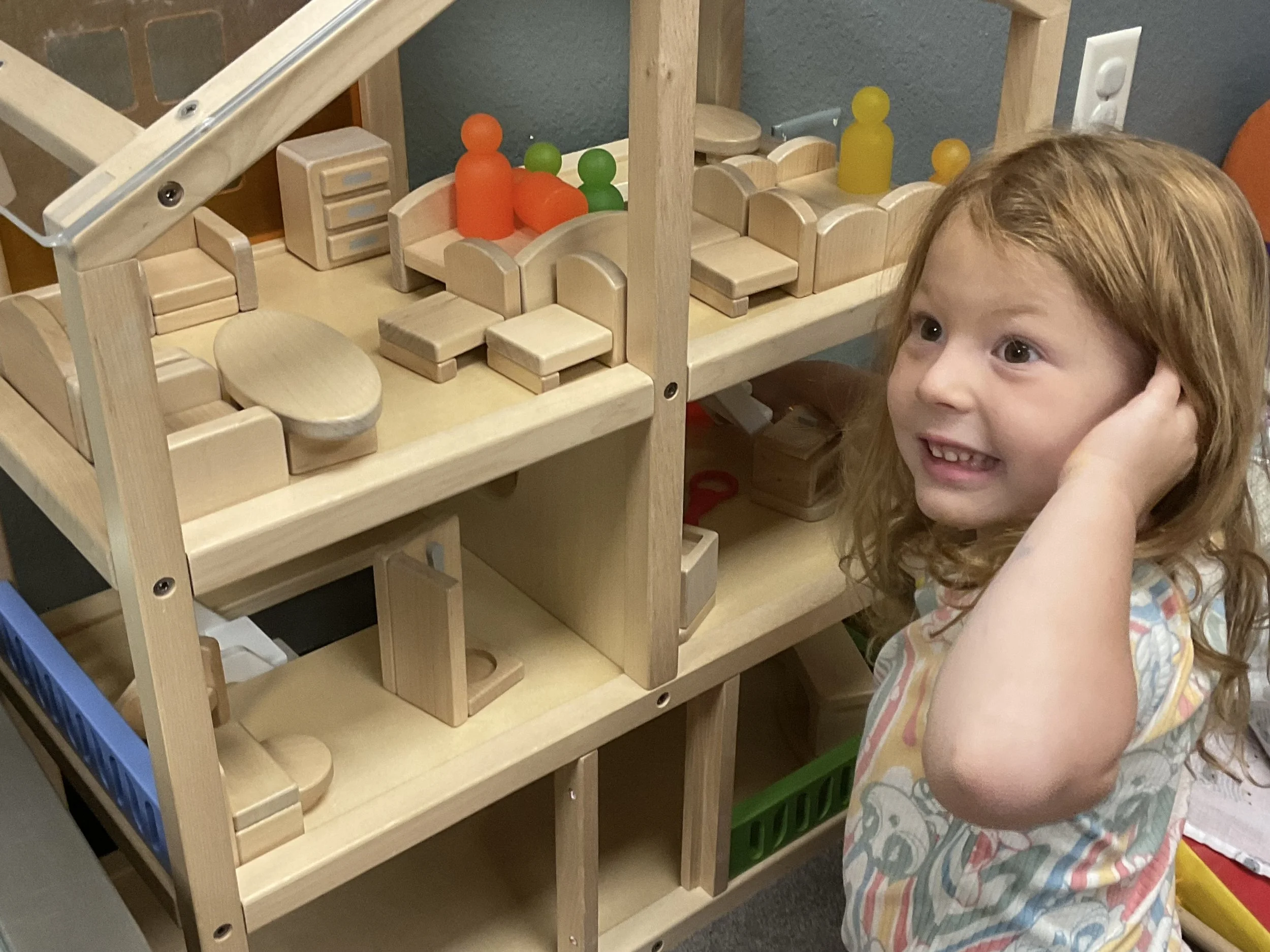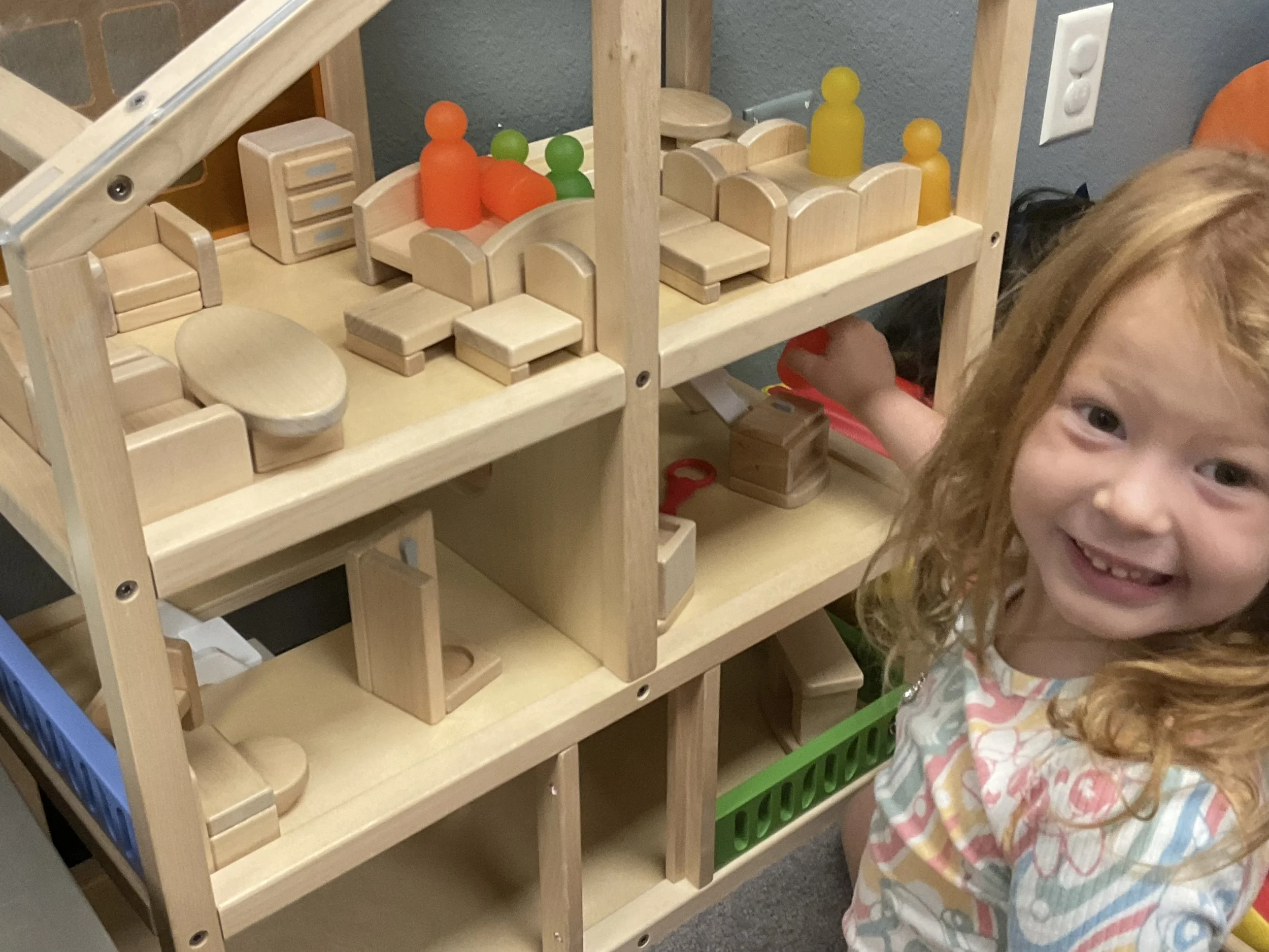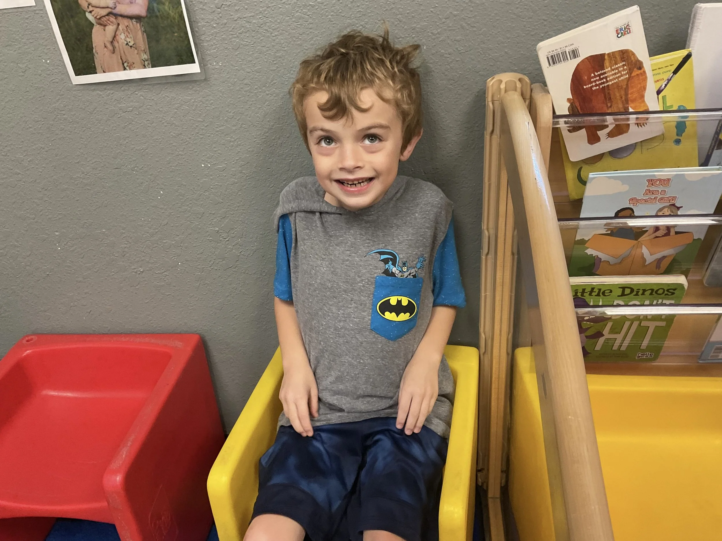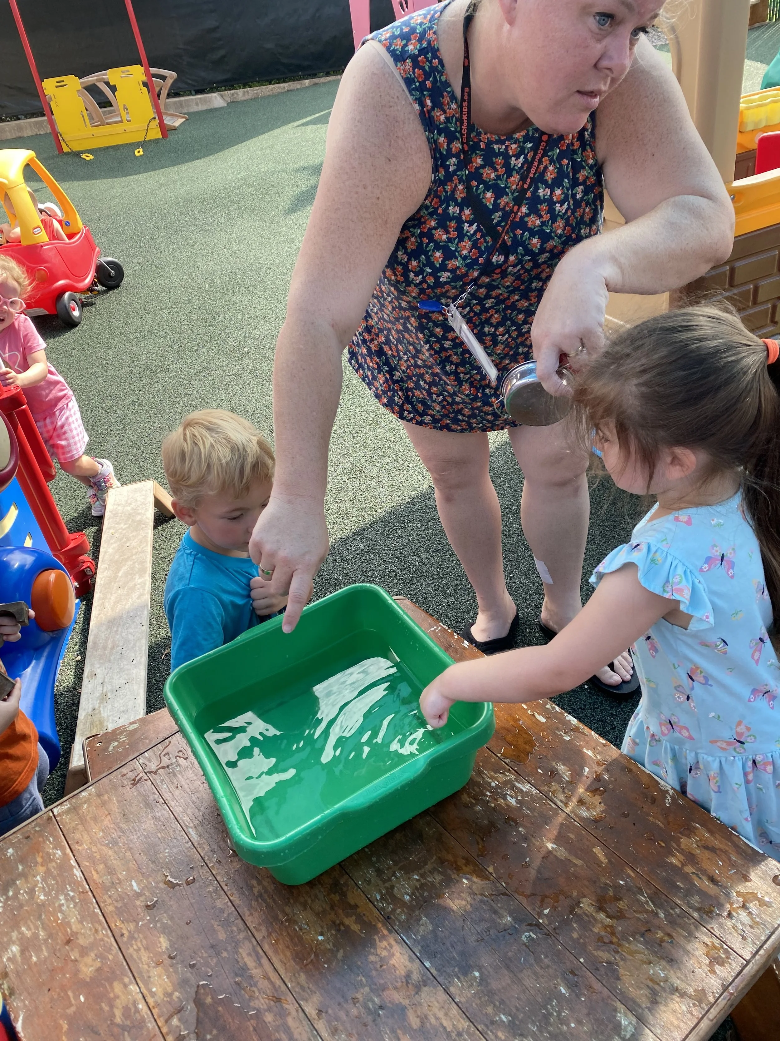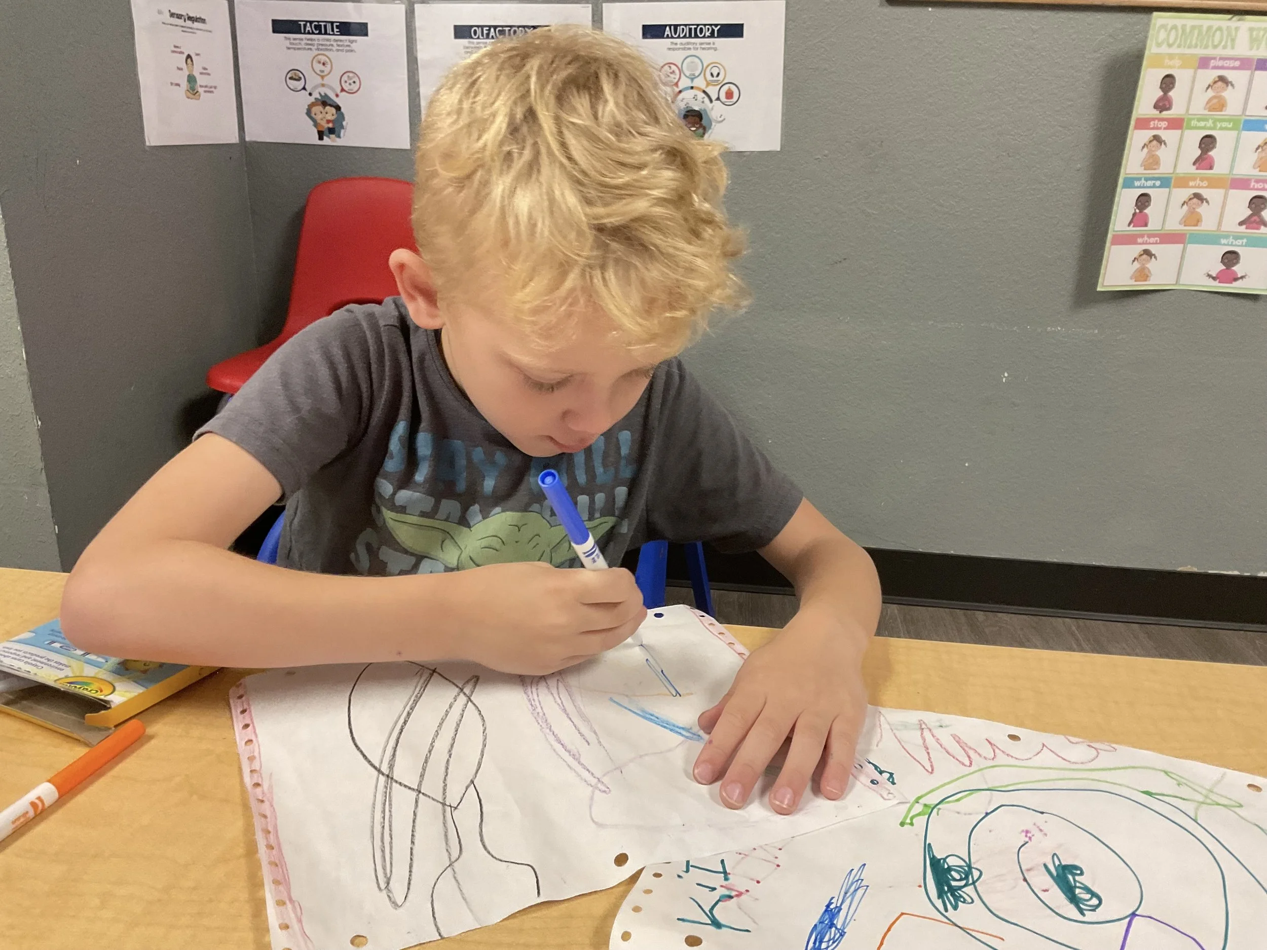 Happy Monday, we are starting this week off learning about opposites! Today, we read How do Dinosaurs Say Good Night? by Jane Yolen. This book talks about the ways you should and shouldn’t act when it’s time for bed. First, during our math and cognition activity, we compared different objects to see what would float and what would sink. Then, for our sensory and science activity, we used rags and water to clean our dirty chairs and talked about how the opposite of dirty is clean. Lastly, for our fine motor and literacy activity, we practiced tracing our names.