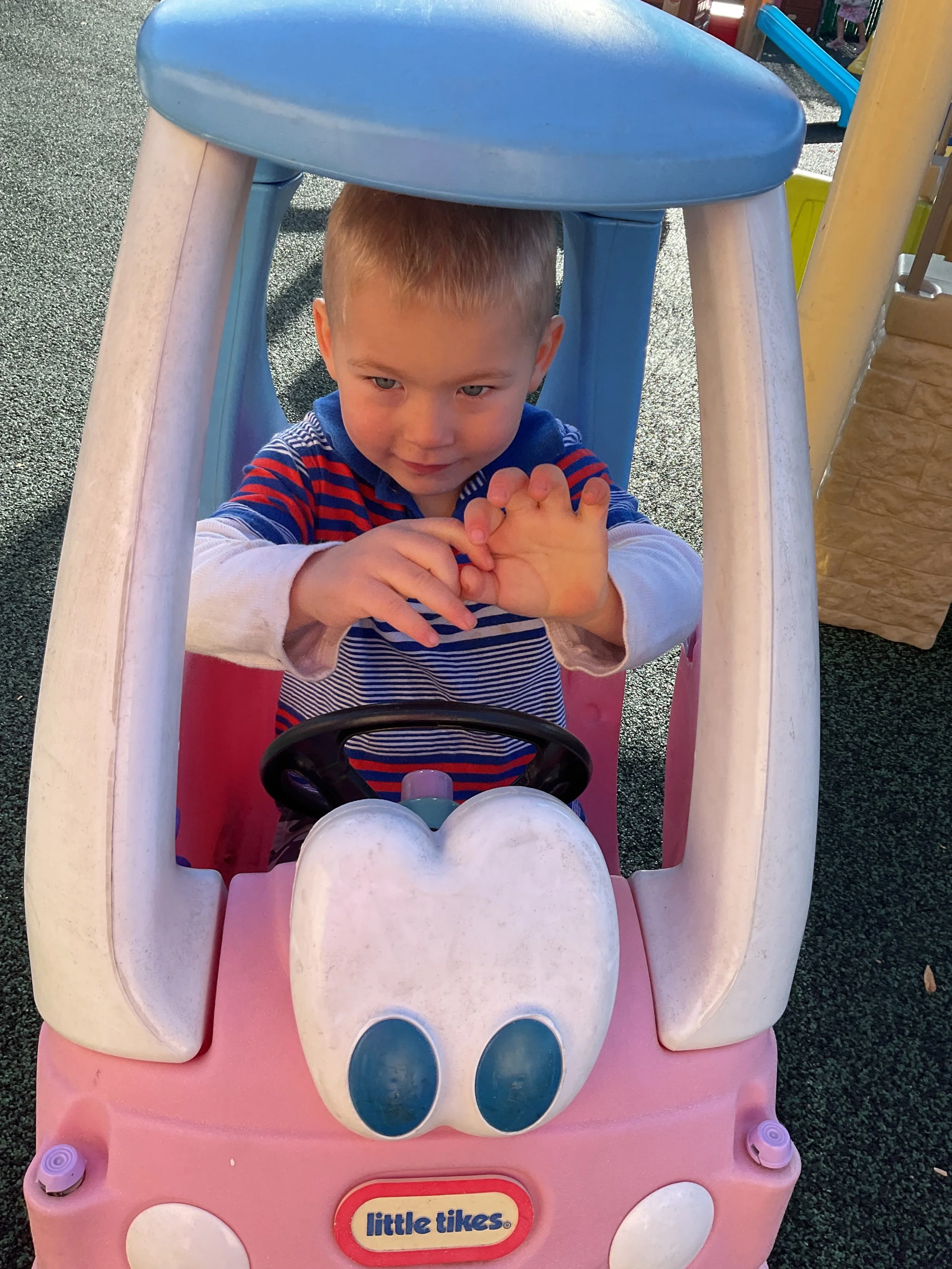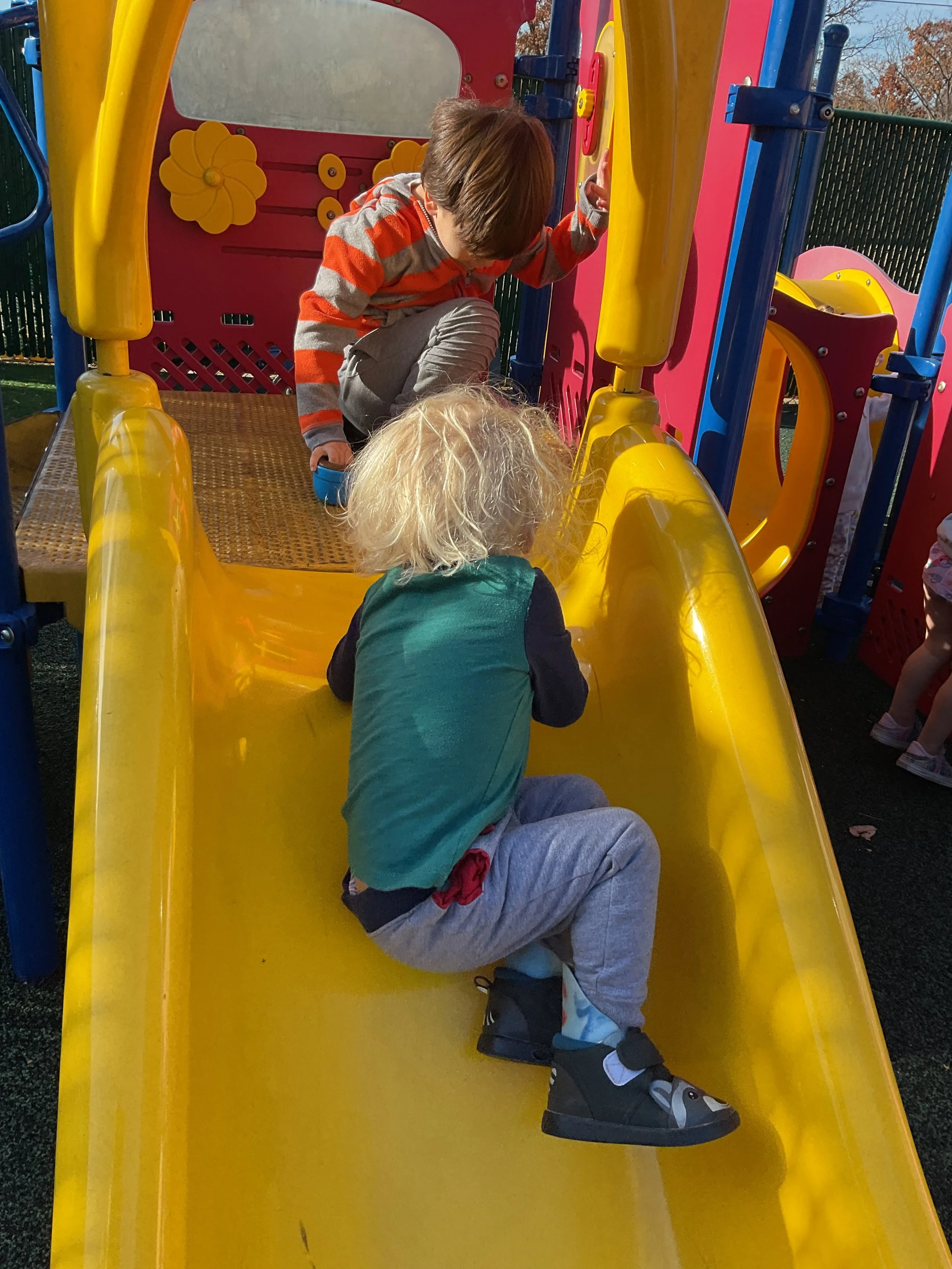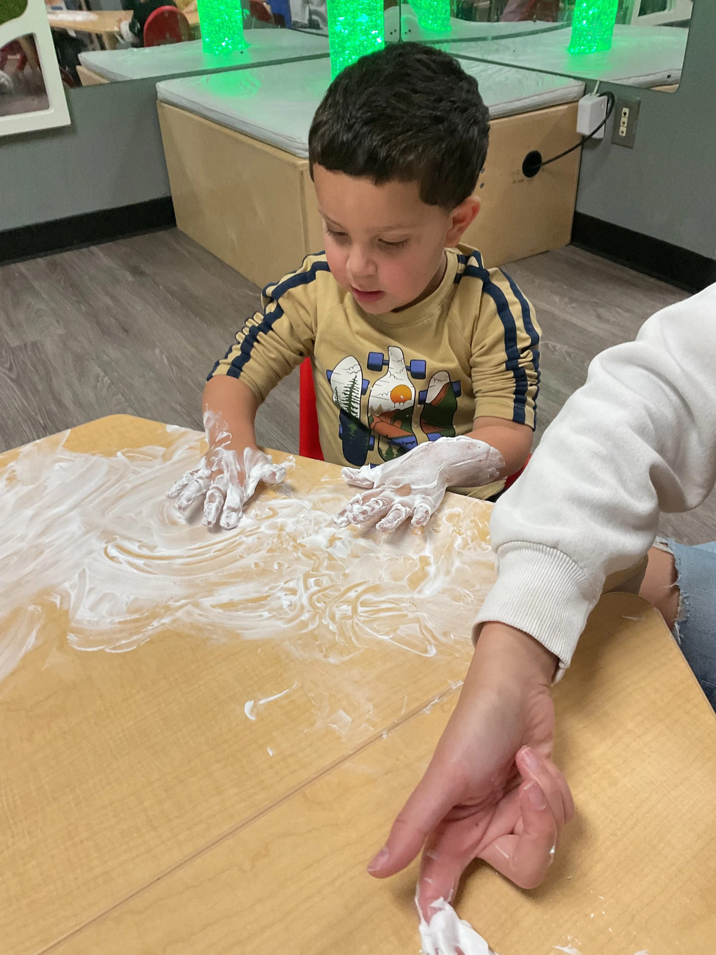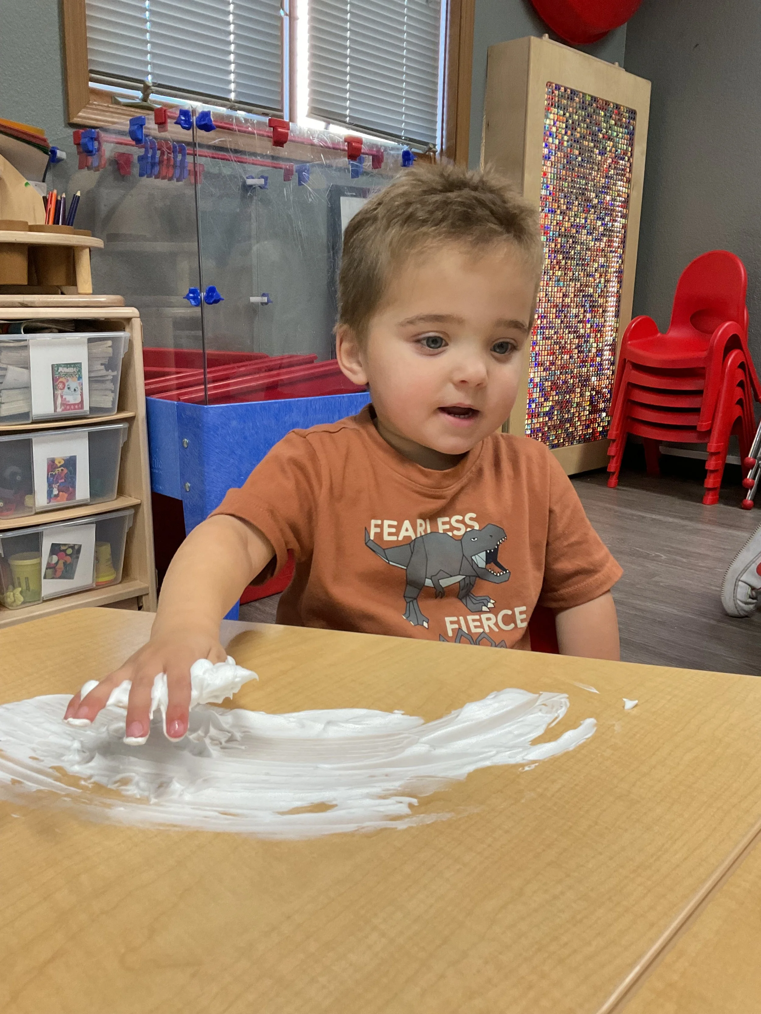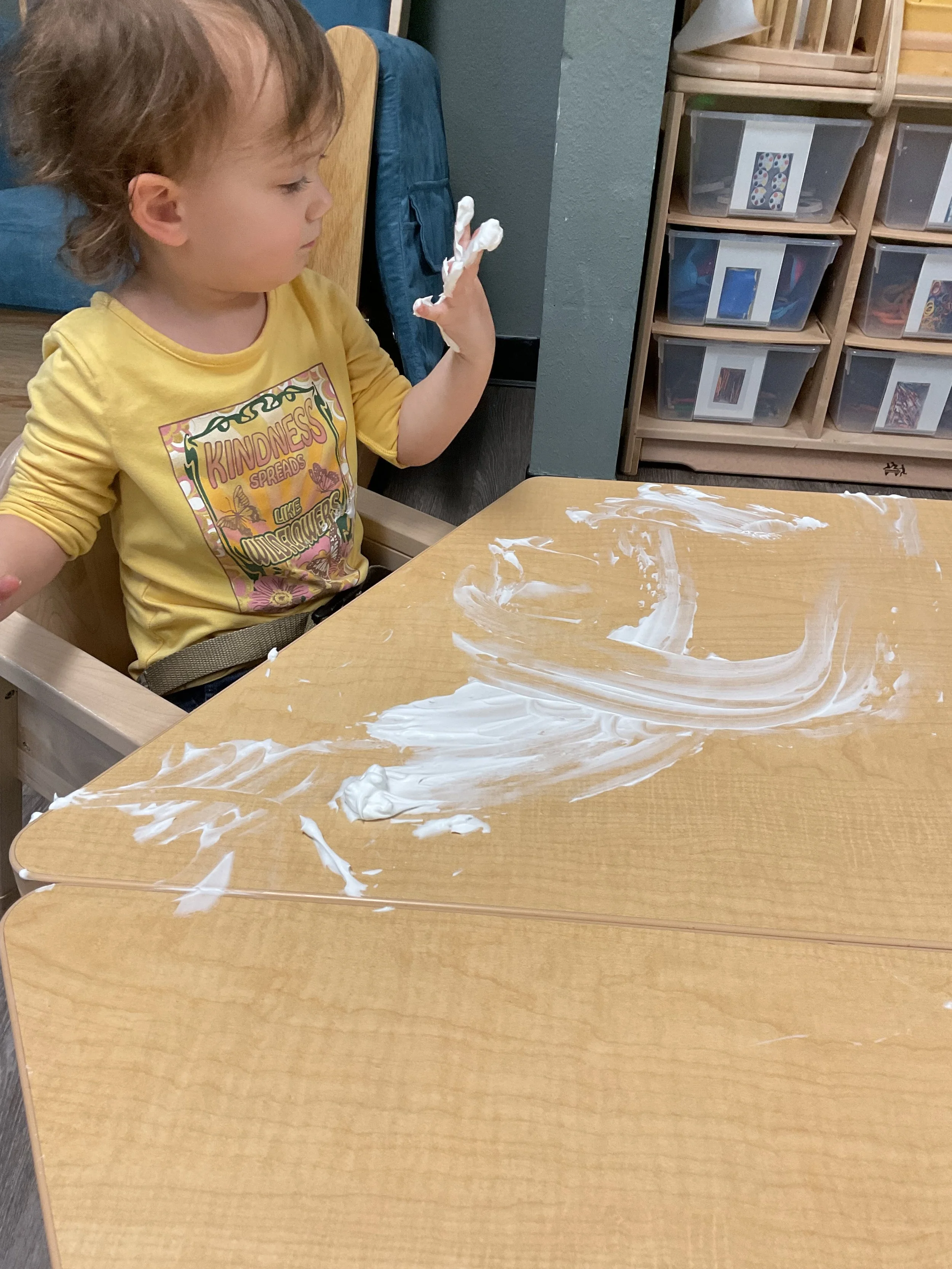 Today we read the book 10 Fat Turkeys by Tony Johnston. This book is about a group of turkeys who were sitting on a fence. One by one they fell off by doing tricks until there were no turkeys left on the fence. For math and cognition time we practiced counting with shaving cream and cut out pies. During our science and sensory time we painted turkeys. Lastly, during fine motor and literacy time we listened to a book on tape.