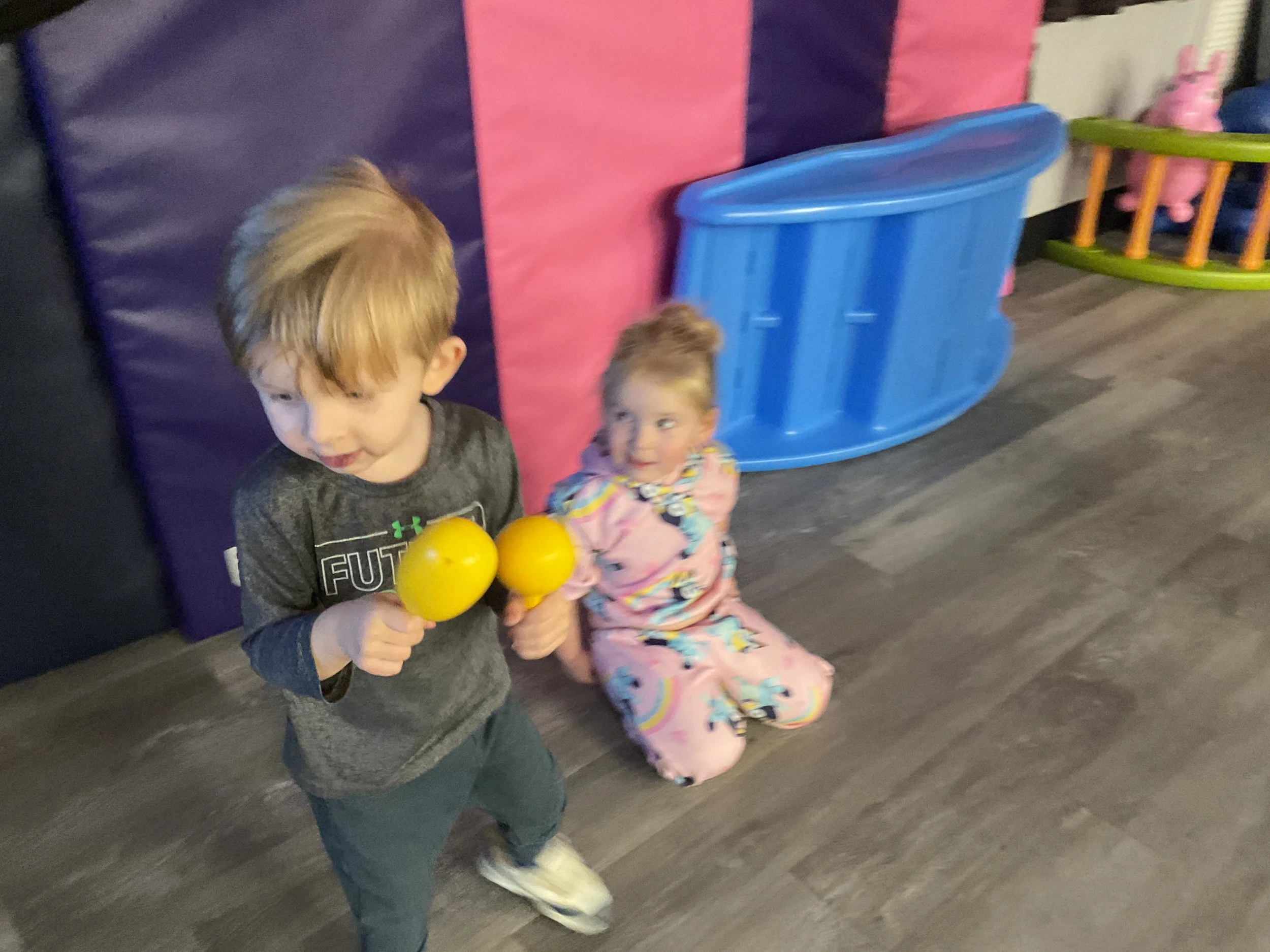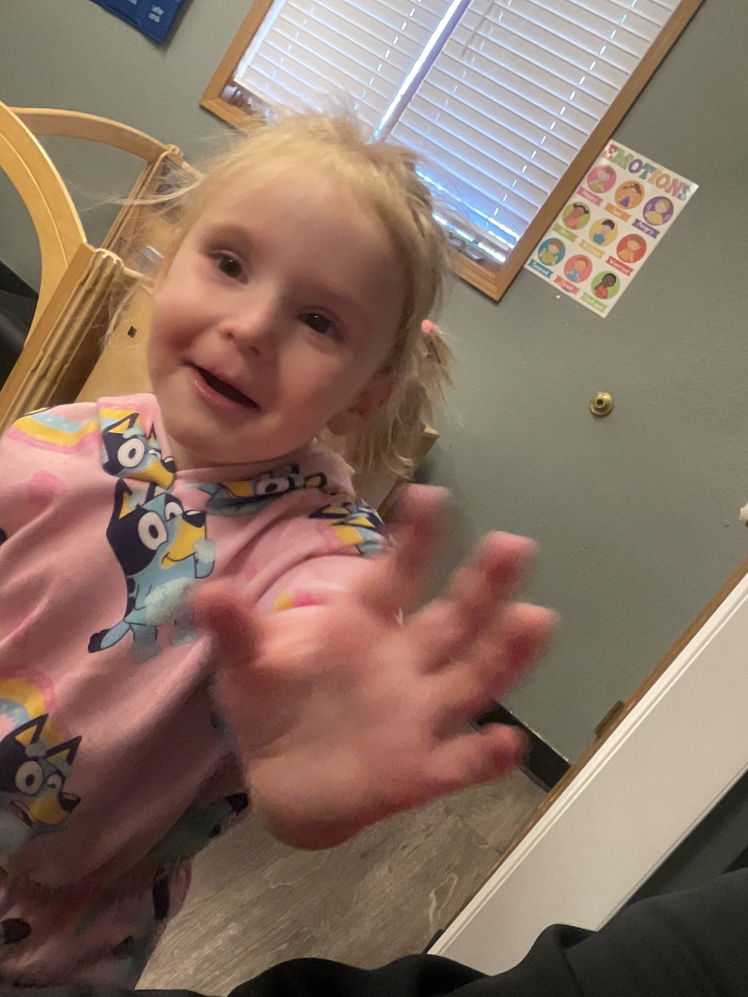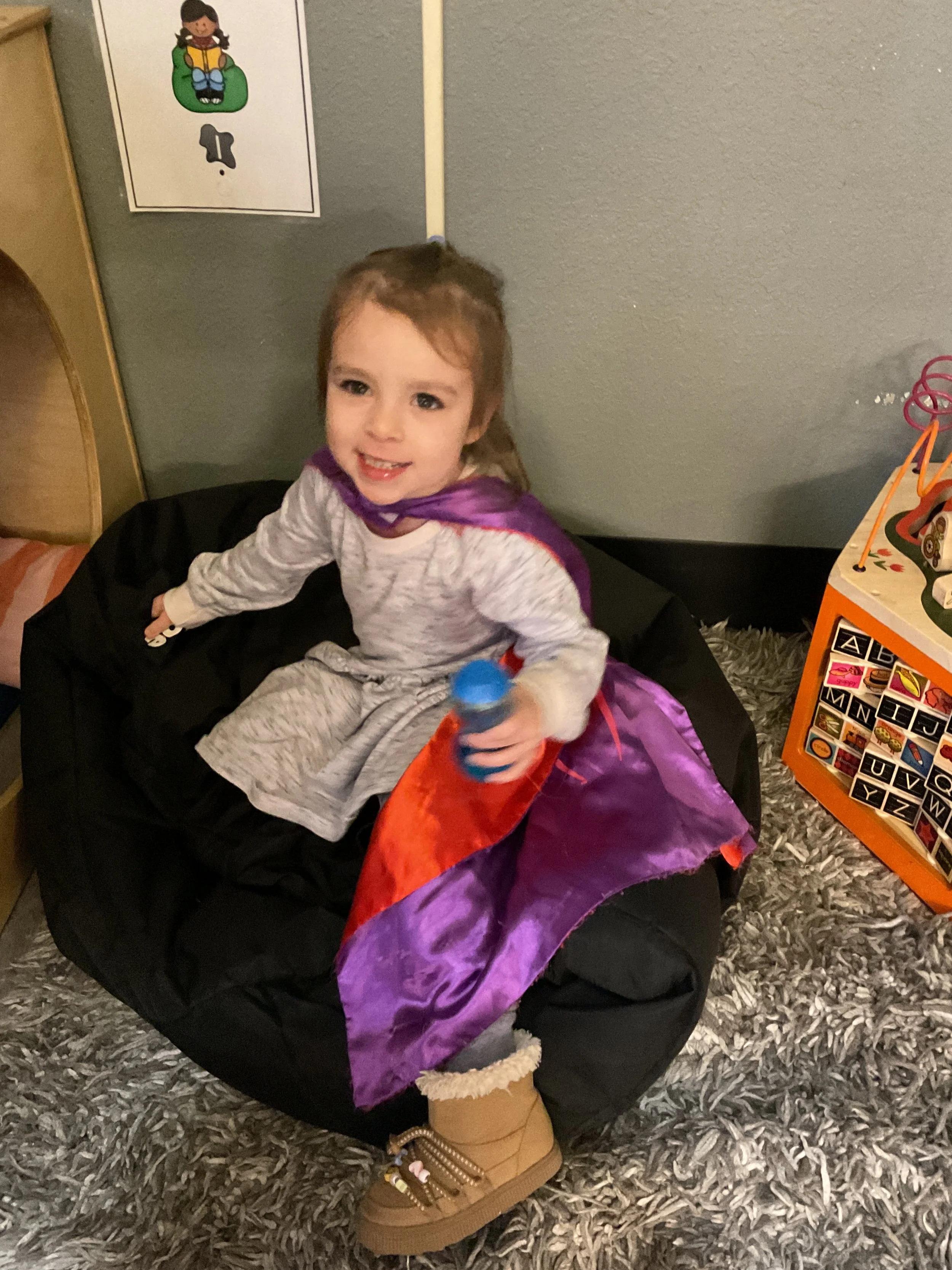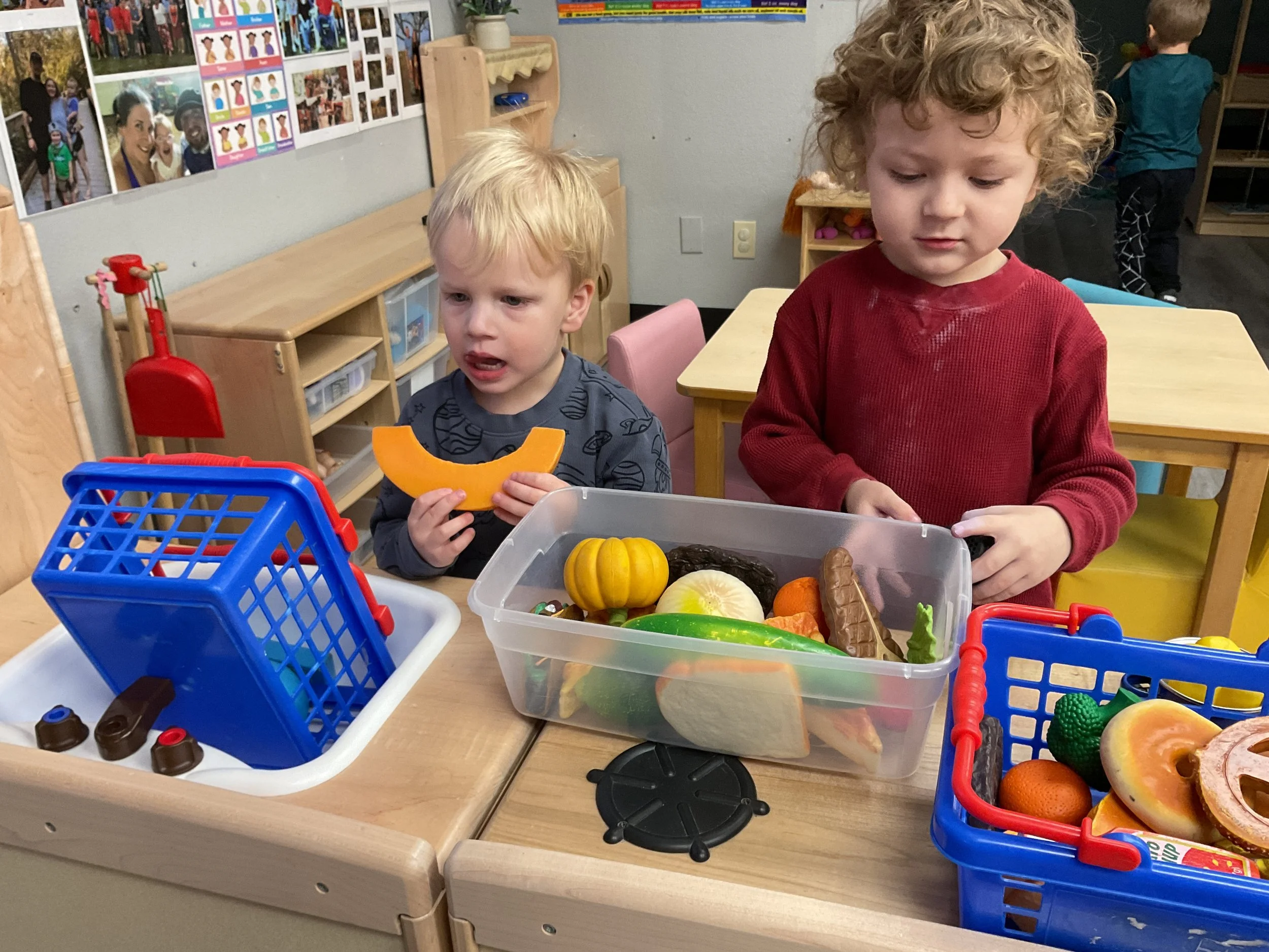 This morning, we read the book Pancakes, Pancakes written and illustrated by Eric Carle. During our music and movement time, we had a fun obstacle course to go through! Then, during our math and cognition lesson, we used dishes from the kitchen to make patterns. Next, for our science and sensory lesson, we used playdough to make our favorite foods. Finally, for our literacy and fine motor lesson, we worked on our cutting skills.