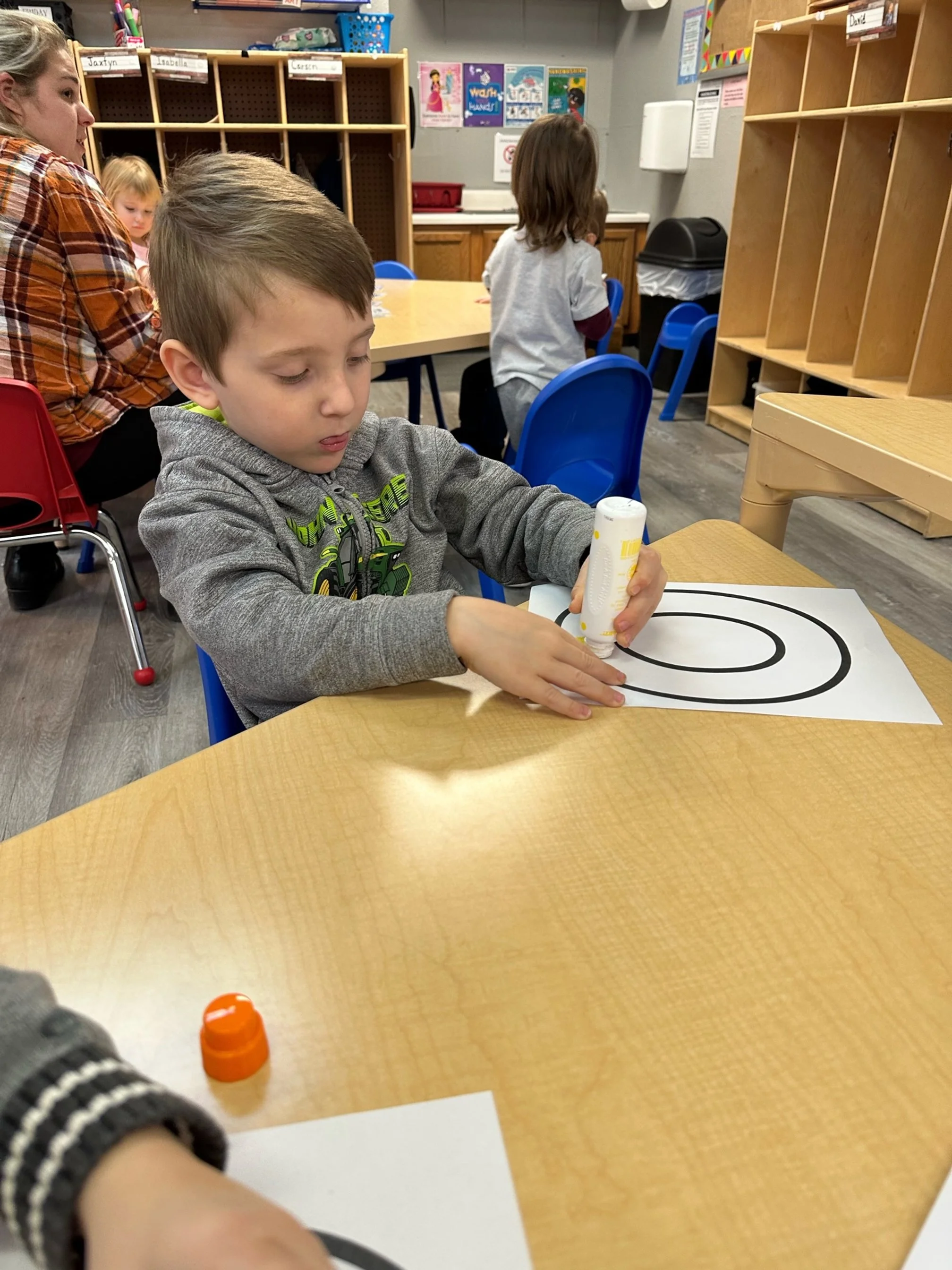 Today we read Penguins by Jill Esbaum. In this book, we learned about how penguins waddle through the freezing cold arctic to go get their food. During our sensory and science activity, we did an arctic ice science experiment. We made the little bit of milk that we put in the bottom of a bowl then we colored it blue with some food coloring before putting a little drop of soap to watch the magic happen. Then we used our literacy and fine motor skills to make our letter ‘O’ creation. We made our letter ‘O’ into an ornament. For our math and cognition activity, we did a penguin matching game. We matched the penguin to the correct igloo for it to stay warm away from the cold winds.