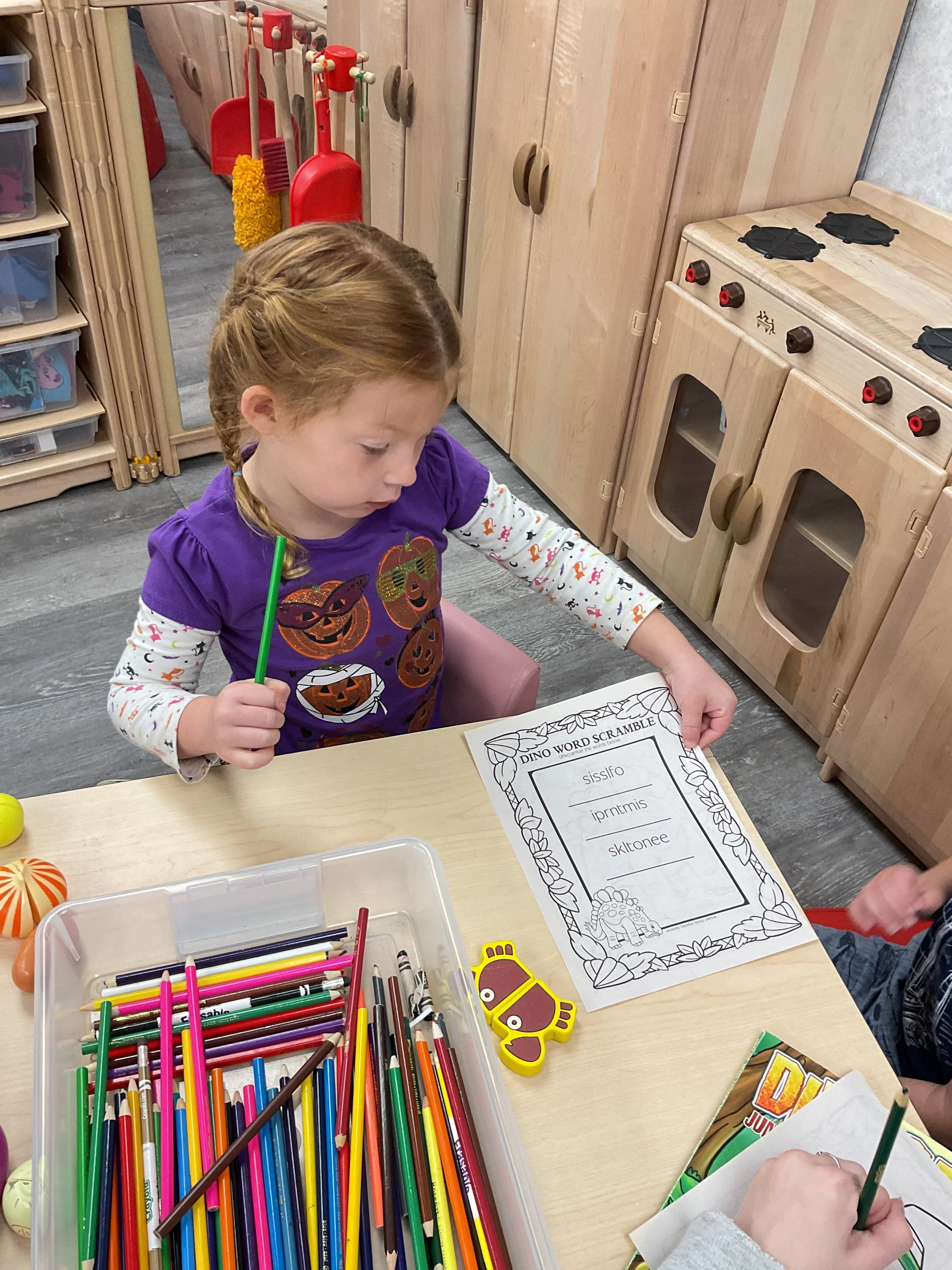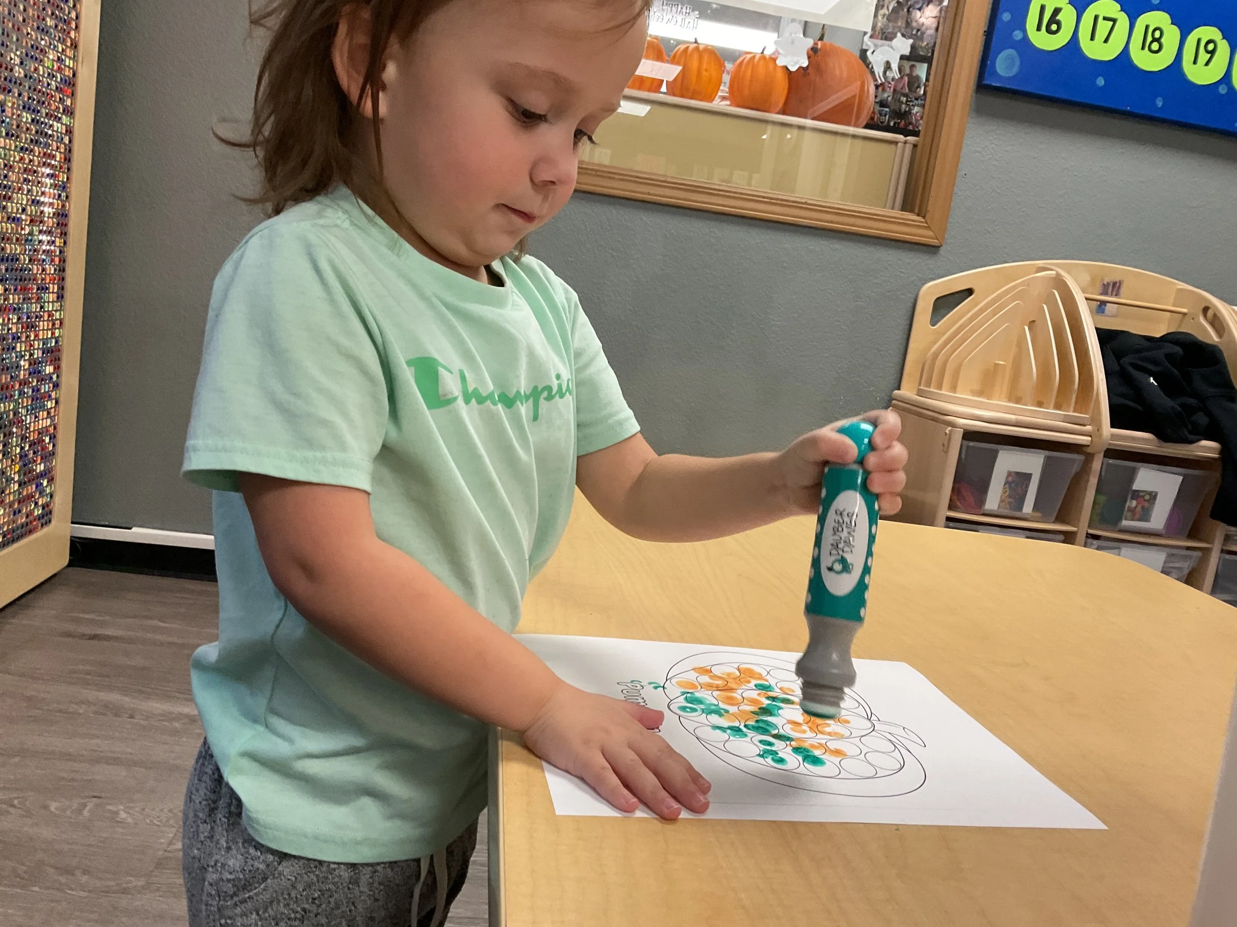 Today we read the book Perfect Pumpkins by Jeff Bauer. During our math and cognition lesson, we worked on our beginning letter sounds. Then, during our science and sensory lesson, we made silly looking pumpkins using playdough. Finally, for our literacy and fine motor activity, we practiced our cutting skills!