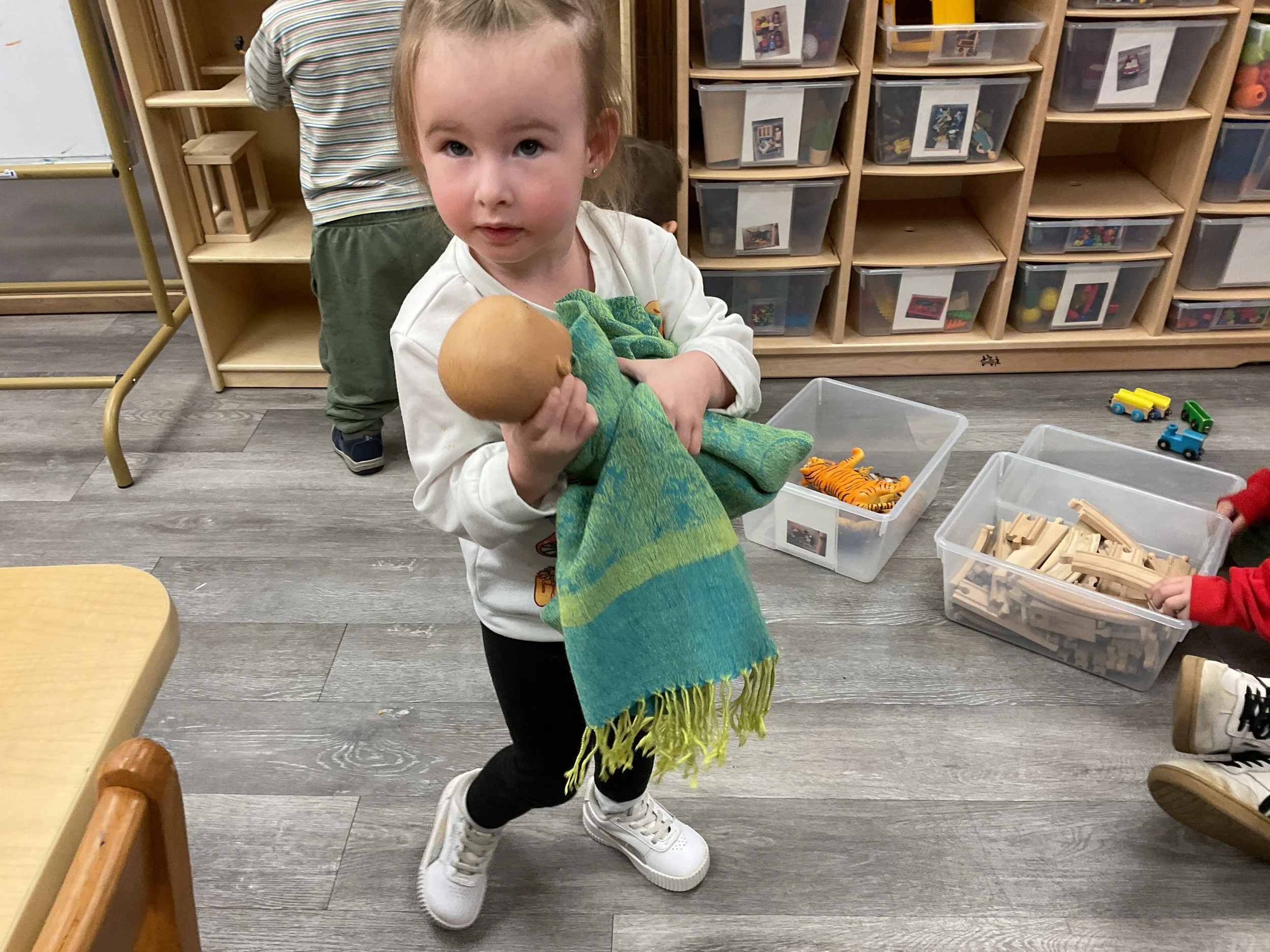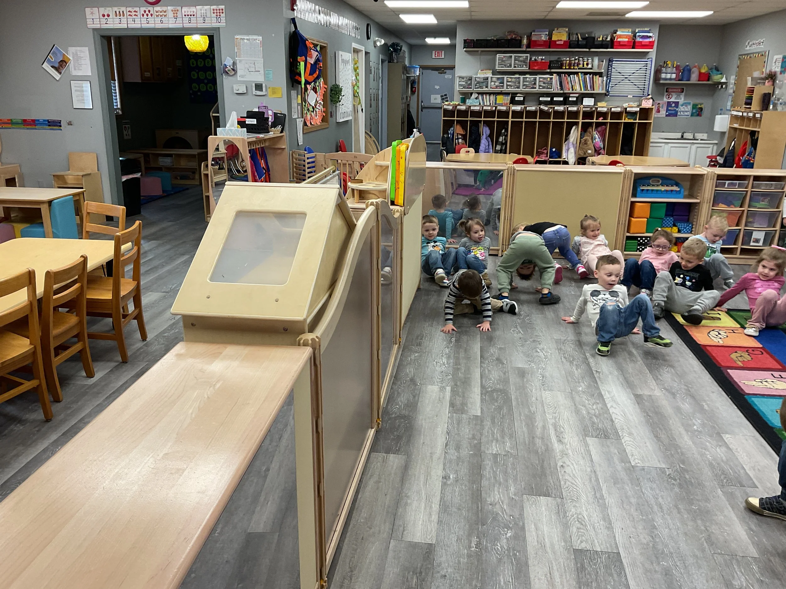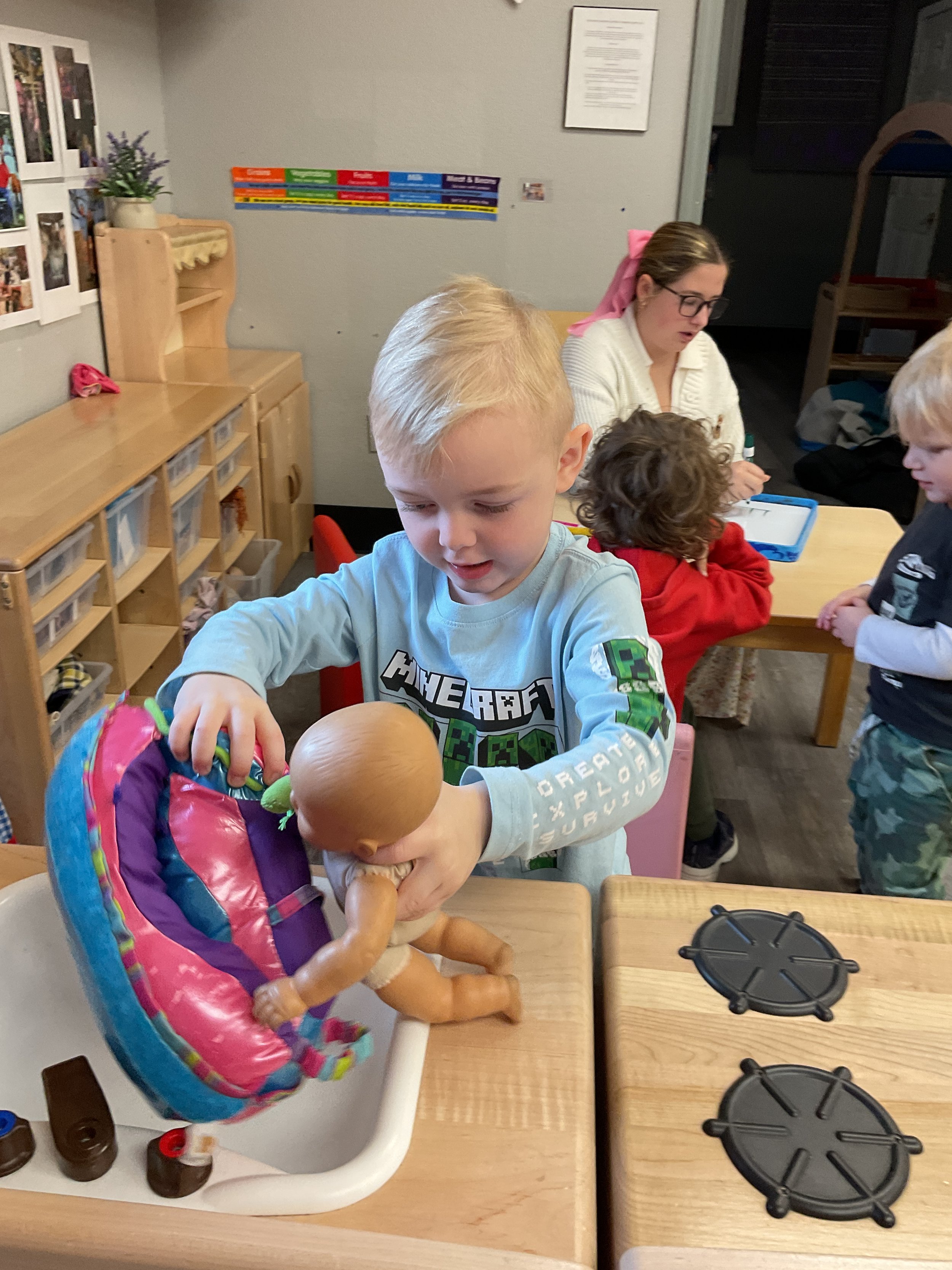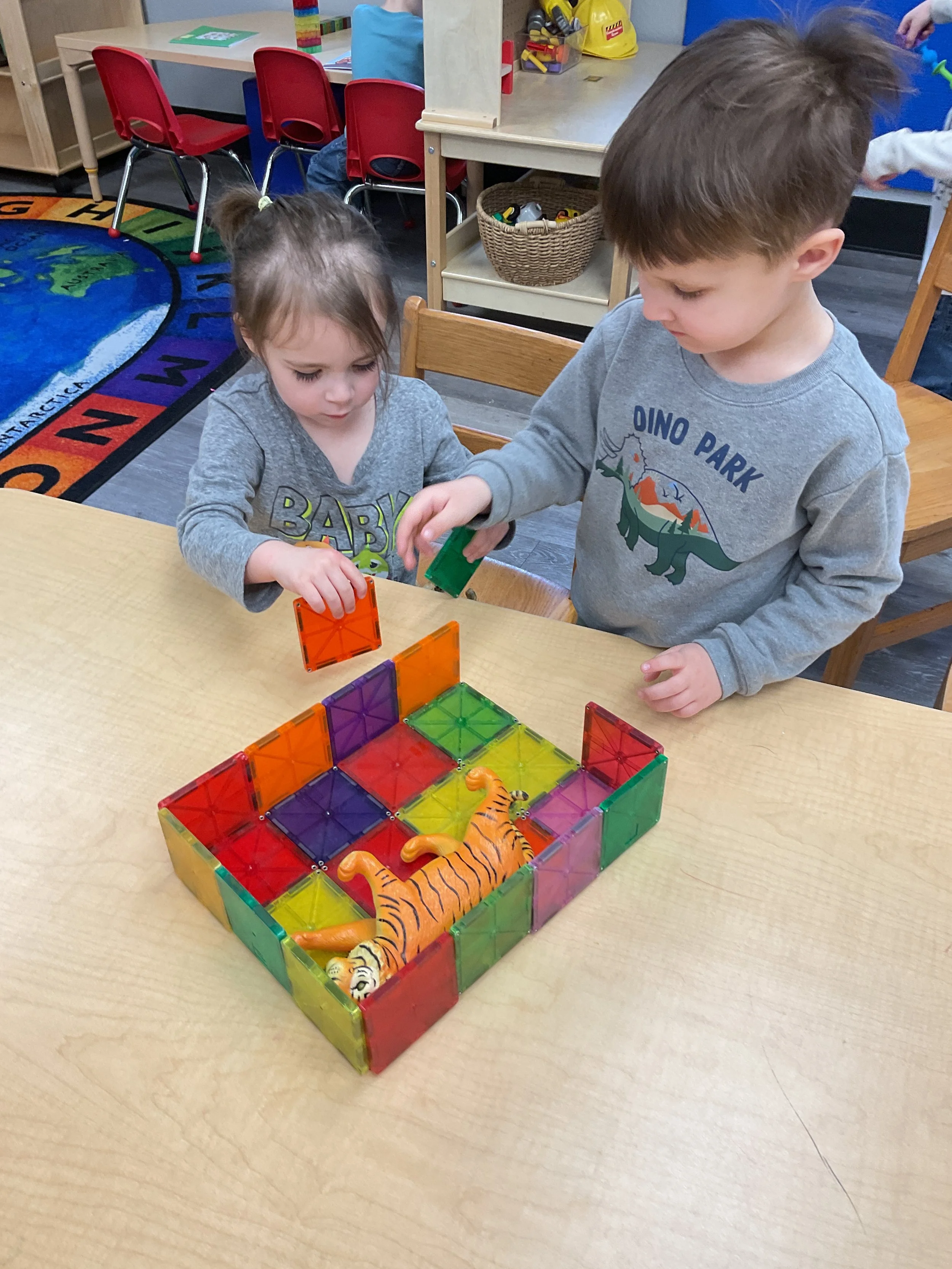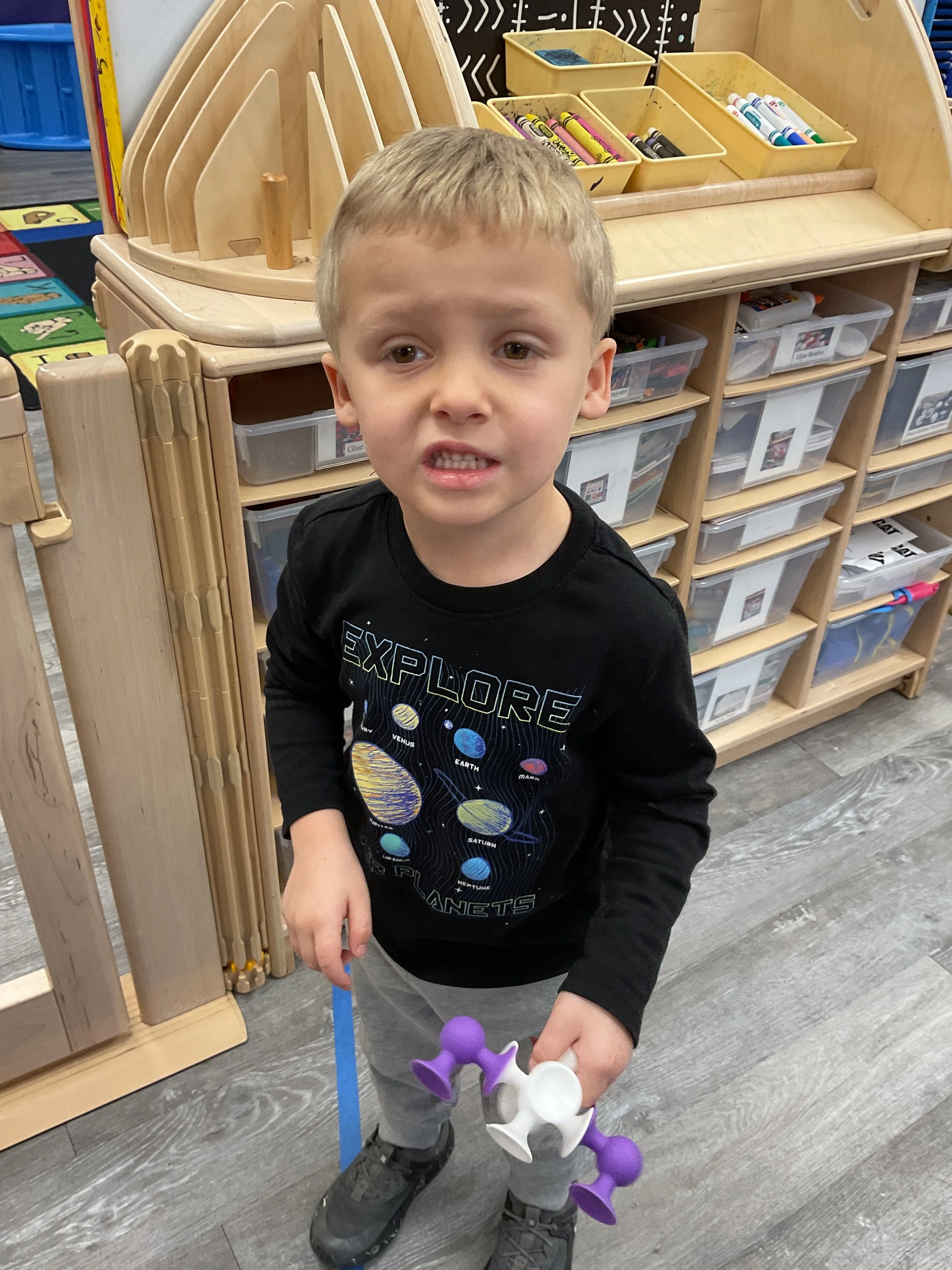 This morning, we read the book Push! Dig! Scoop! written by Rhonda Gowler Greene and illustrated by Daniel Kirk. During our music and movement time, we played Red Light, Green Light. We really liked walking like crabs during our game. Then, during our math and cognition lesson, we sorted different modes of transportation by size. Next, for our science and sensory lesson, we made a stoplight. Finally, for our literacy and fine motor lesson, we listened to a book on tape.