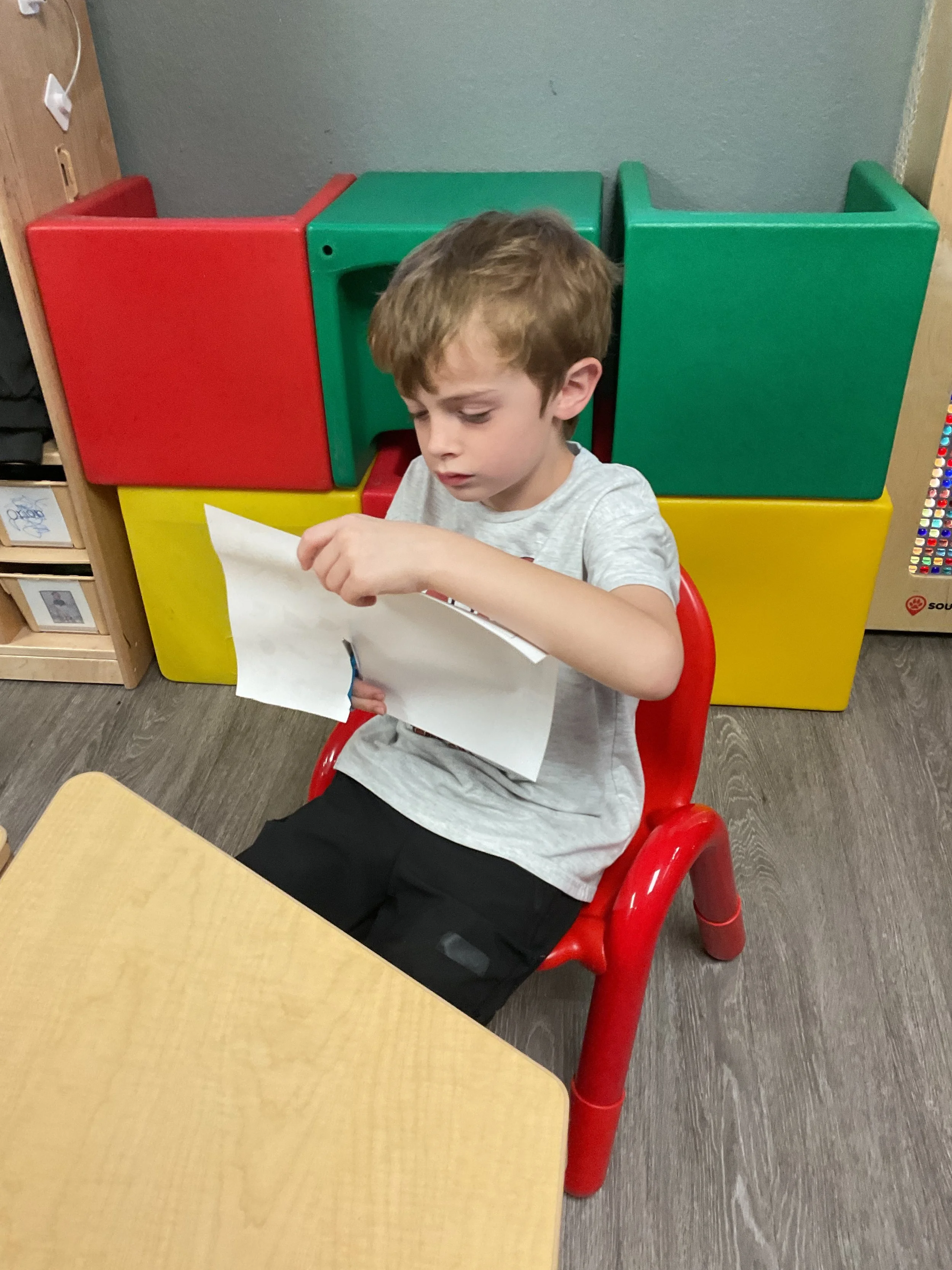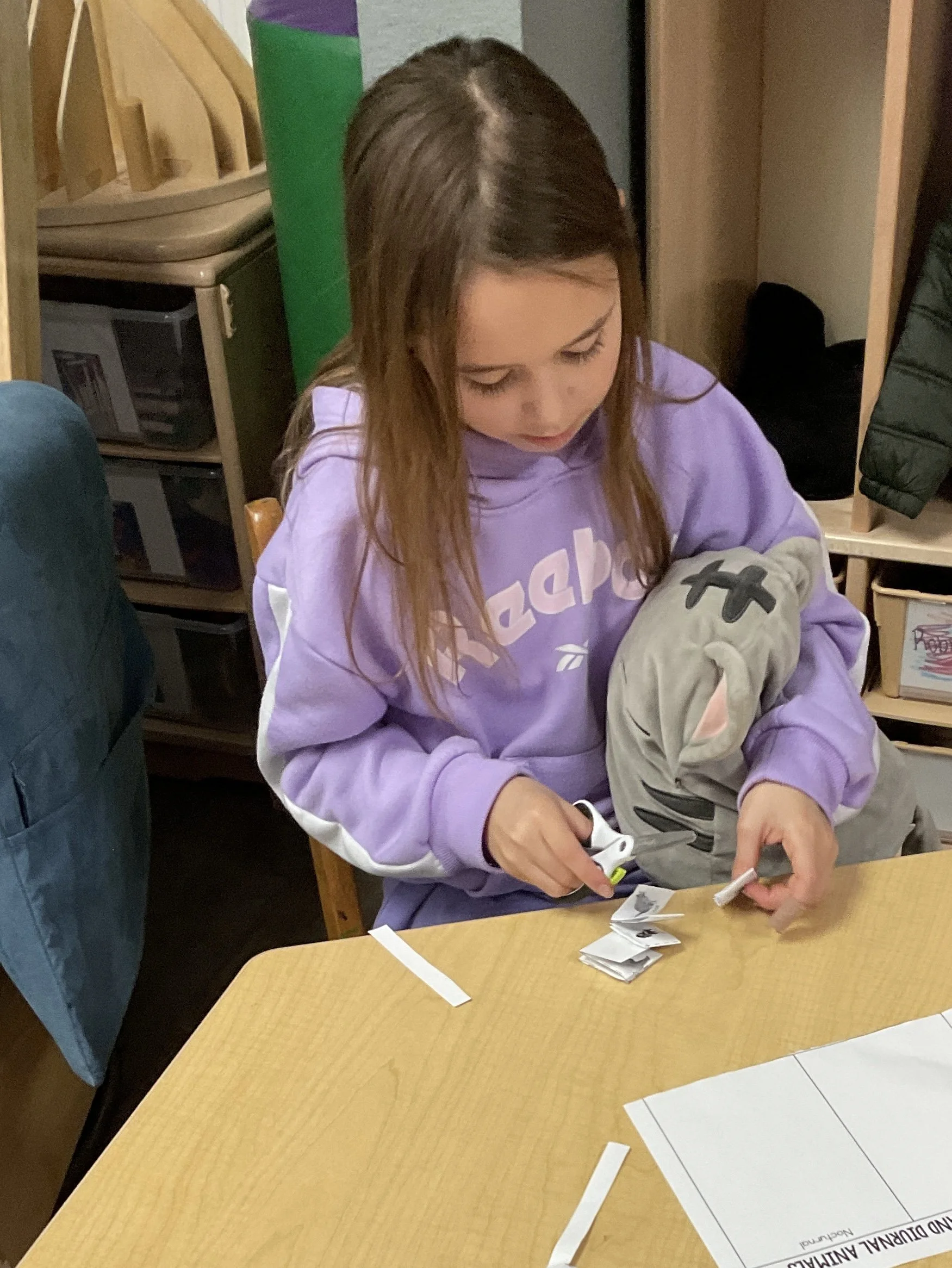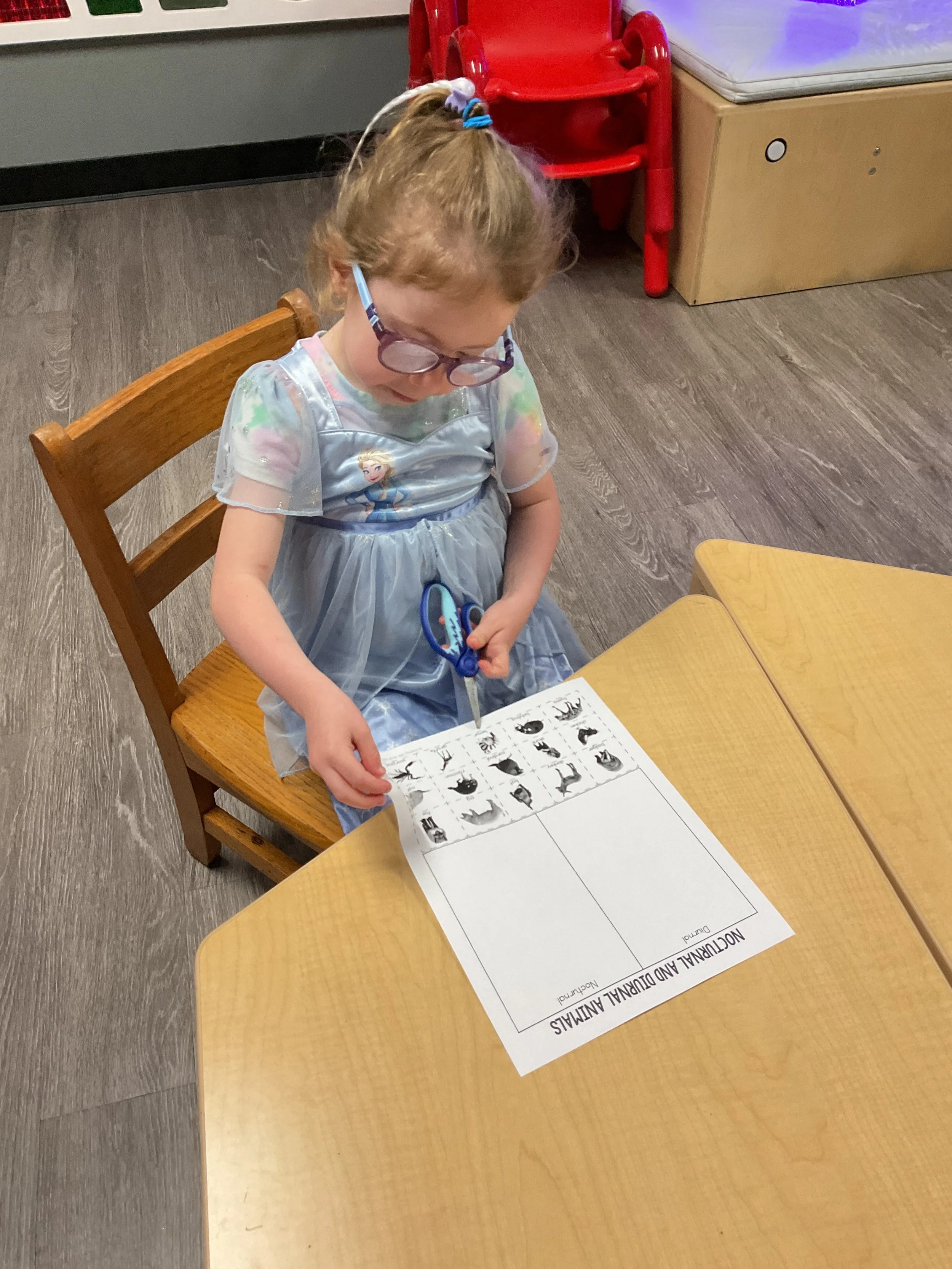 This morning, we read the book Night is Coming written by W. Nikola-Lisa and illustrated by Jamichael Henterly. During our music and movement time, we played with balloons. Then, during our math and cognition lesson, we worked on simple addition. Next, for our science and sensory lesson, we made an “eyes at night” picture. Finally, for our literacy and fine motor lesson, we listened to a book on tape.